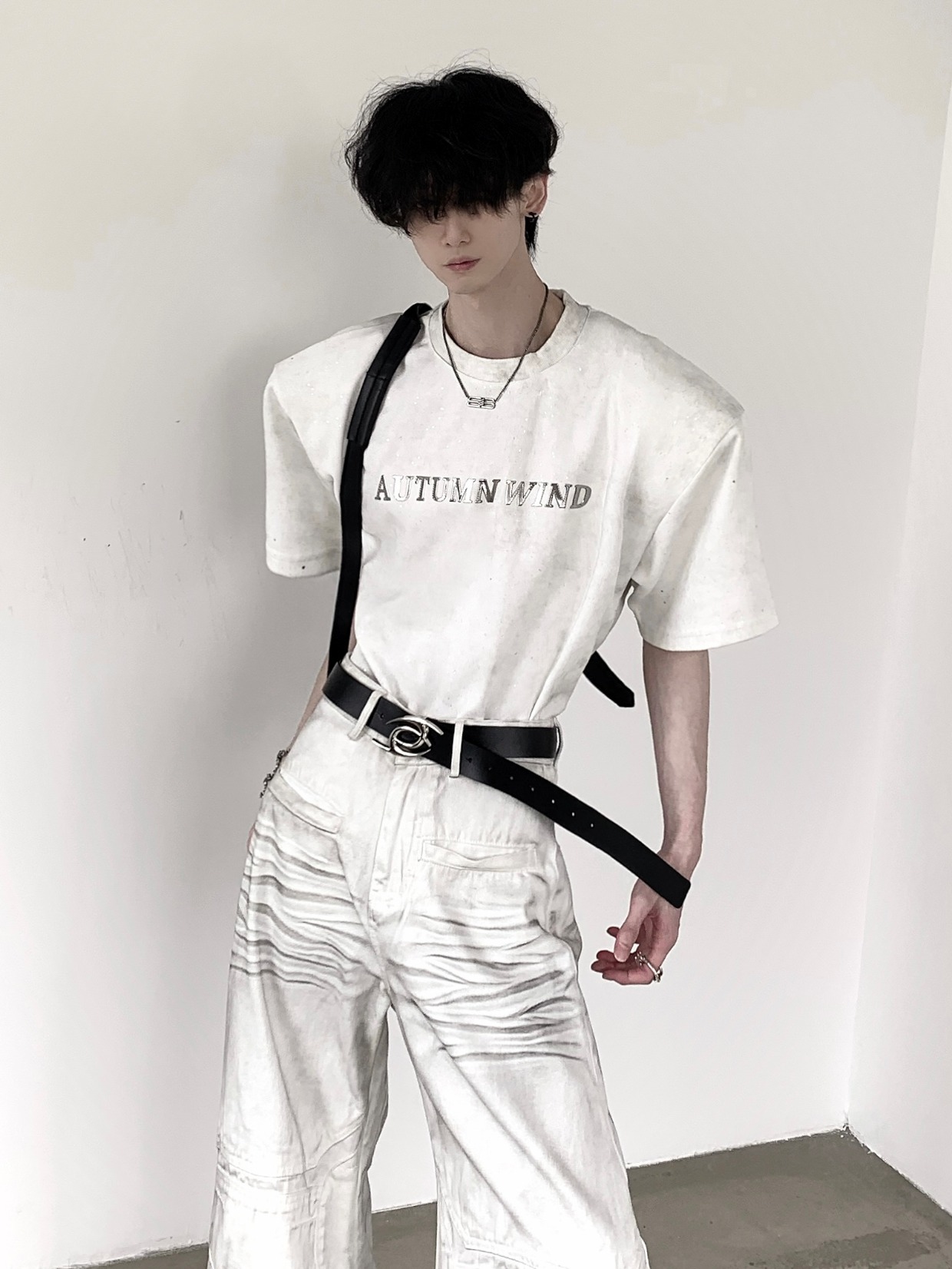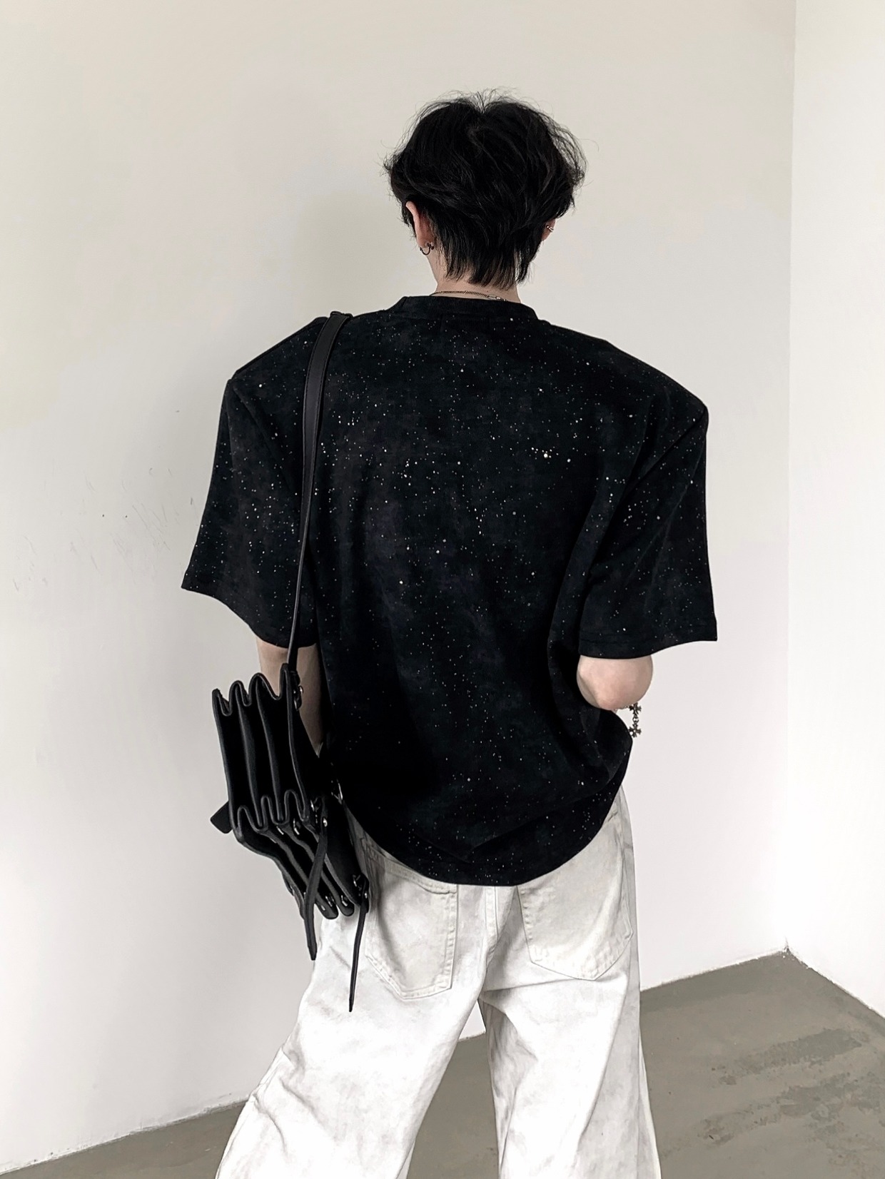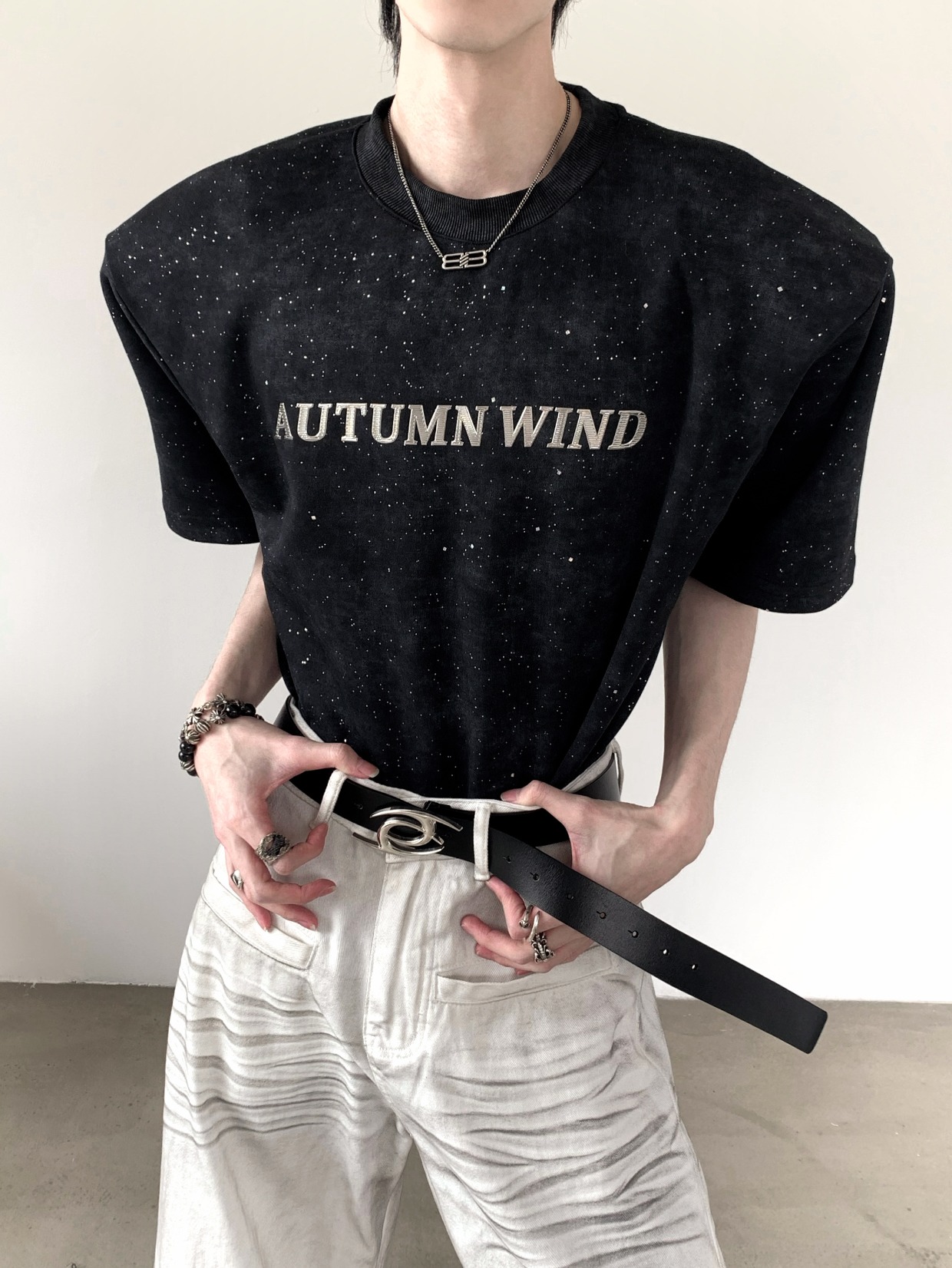 Metal Design Shoulder-Pad Short Sleeve T-Shirt WN20337