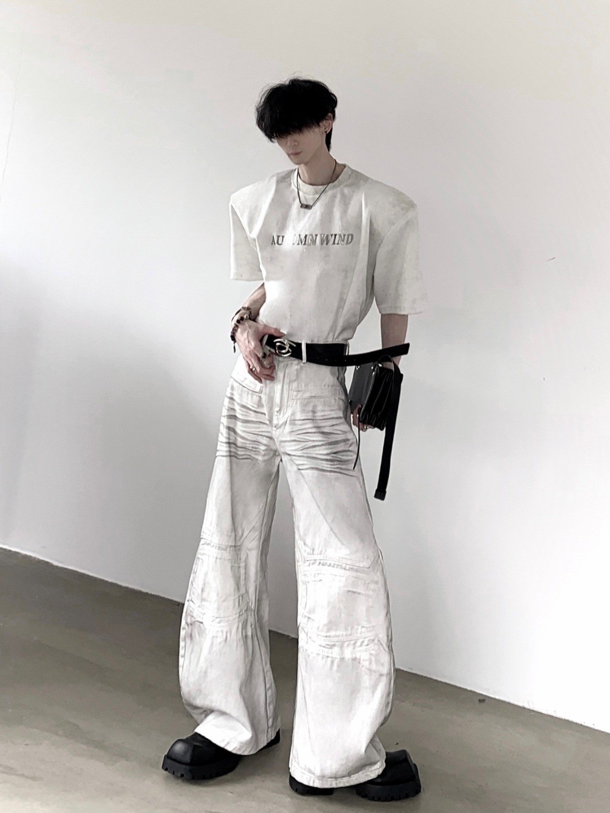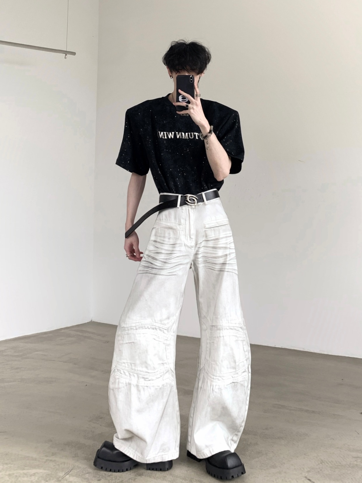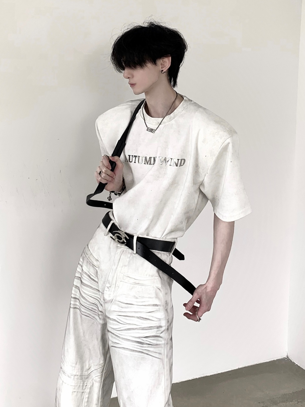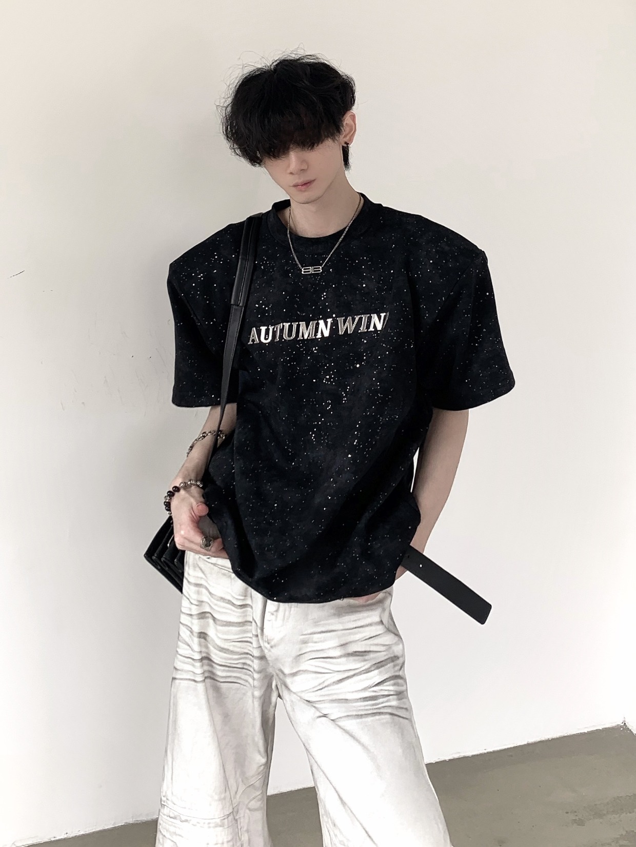 Metal Design Shoulder-Pad Short Sleeve T-Shirt WN20337