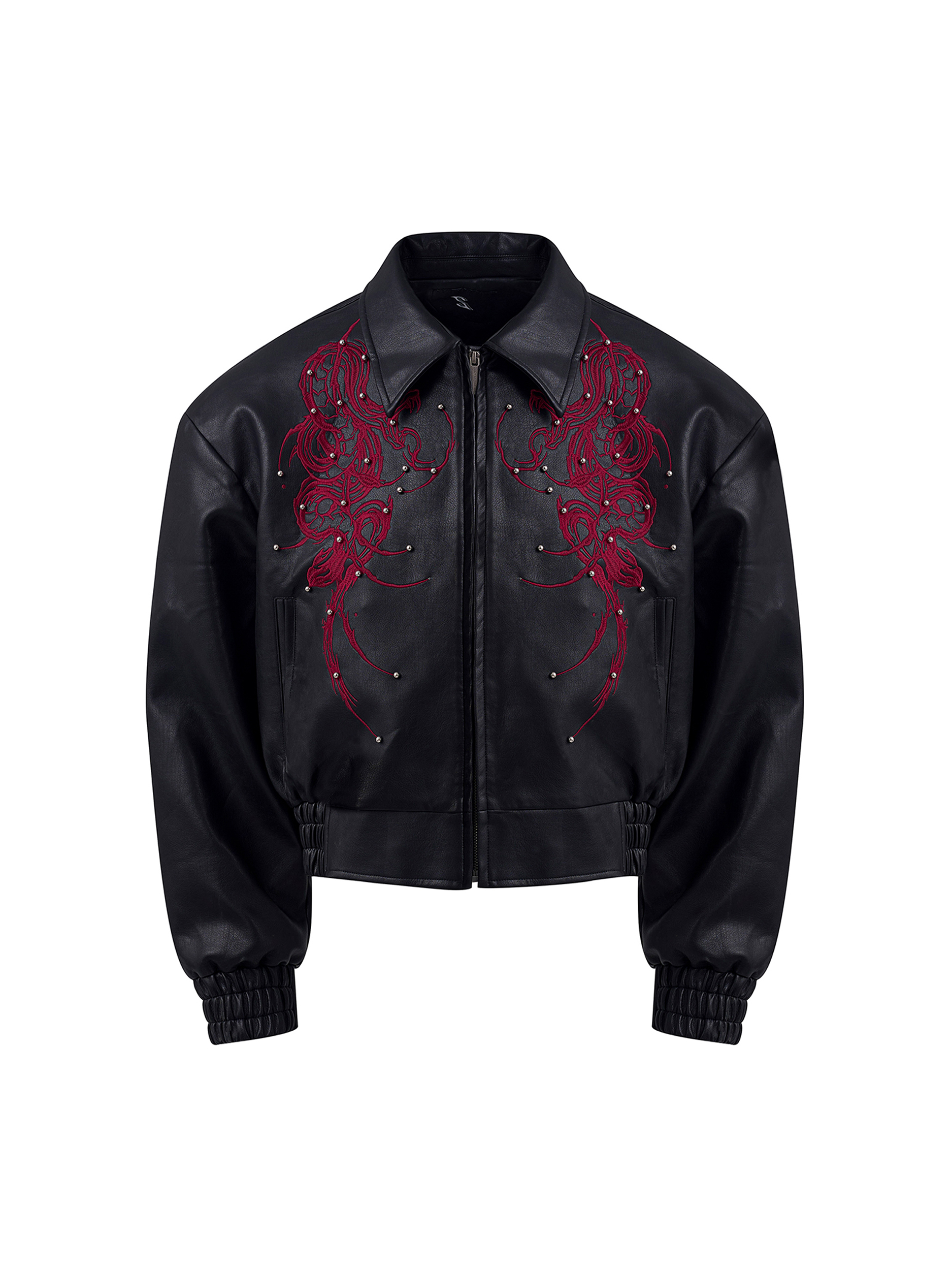 Thorn Embroidery Beaded Oversize PU Leather Jacket WN20385