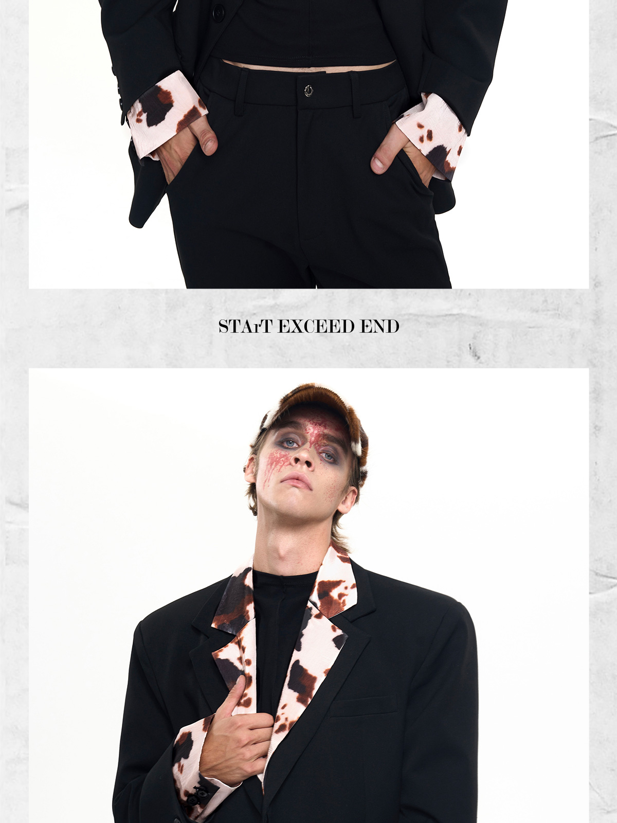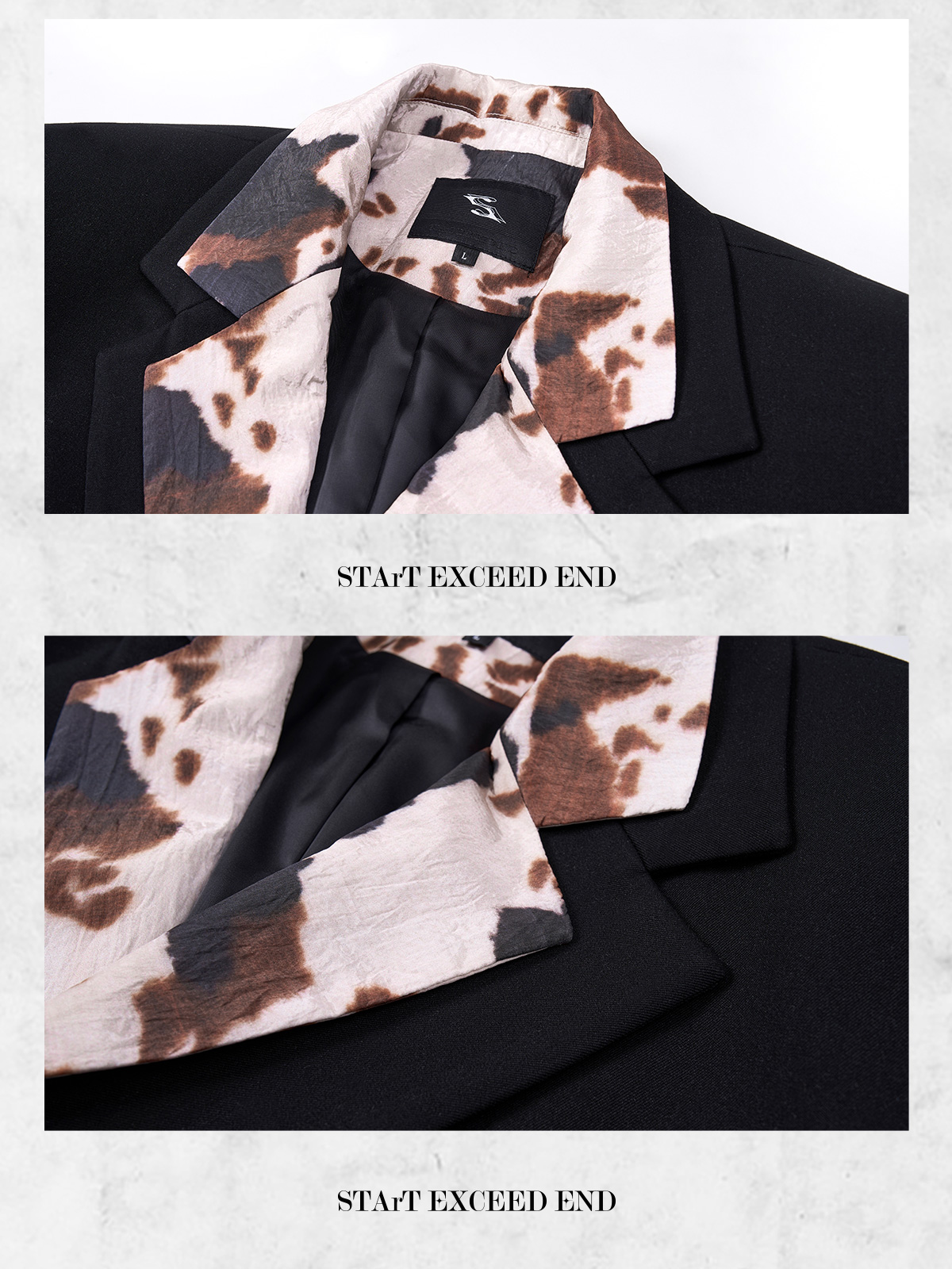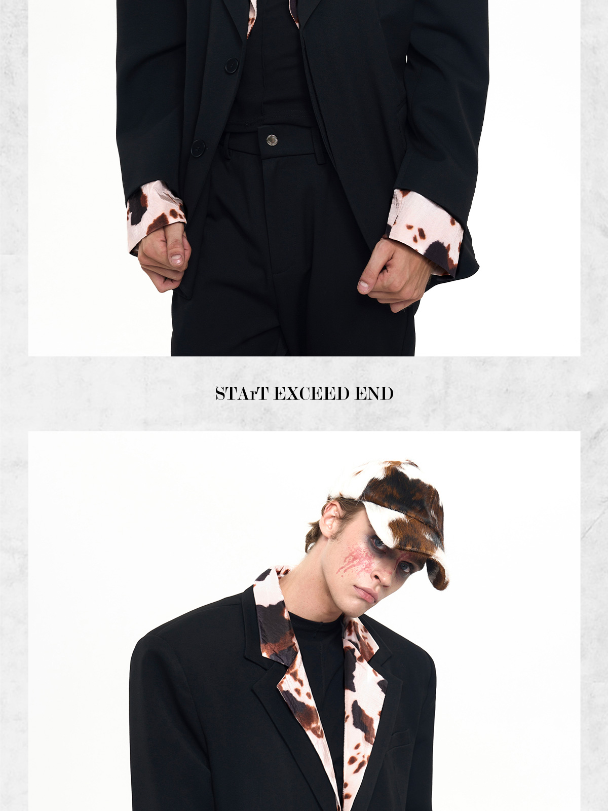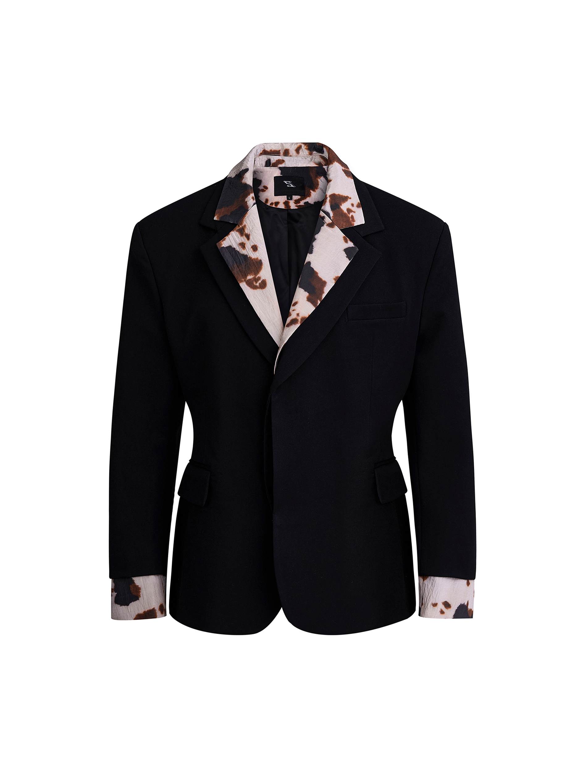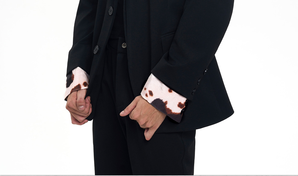Cow Print Fake Layered Oversize Tailored Jacket & Flare Trousers Setup WN20389