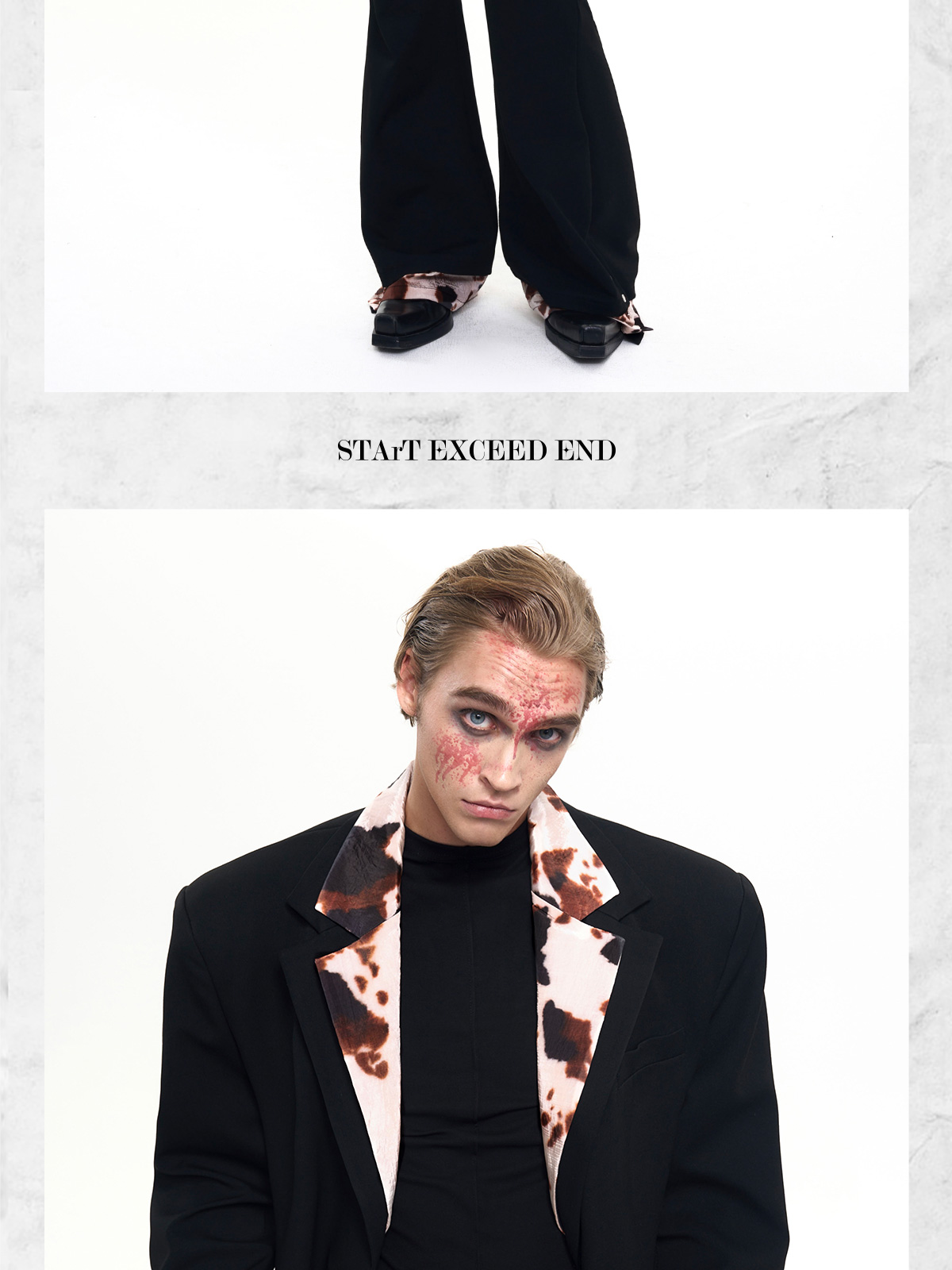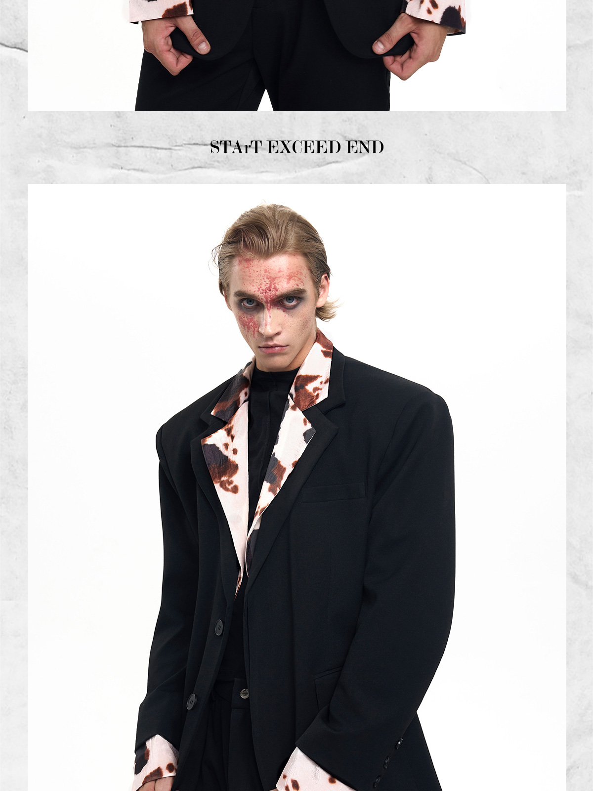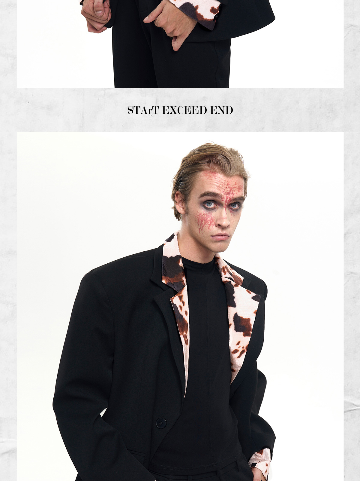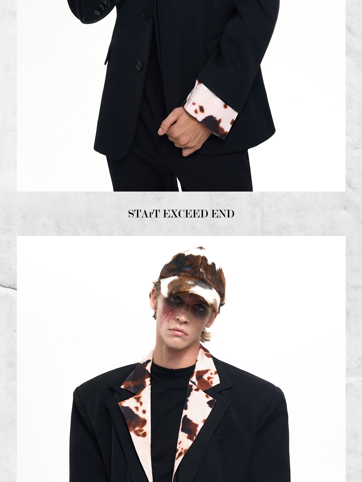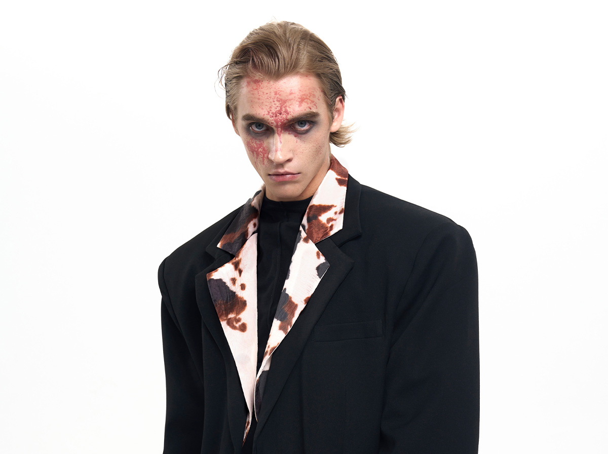 Cow Print Fake Layered Oversize Tailored Jacket & Flare Trousers Setup WN20389