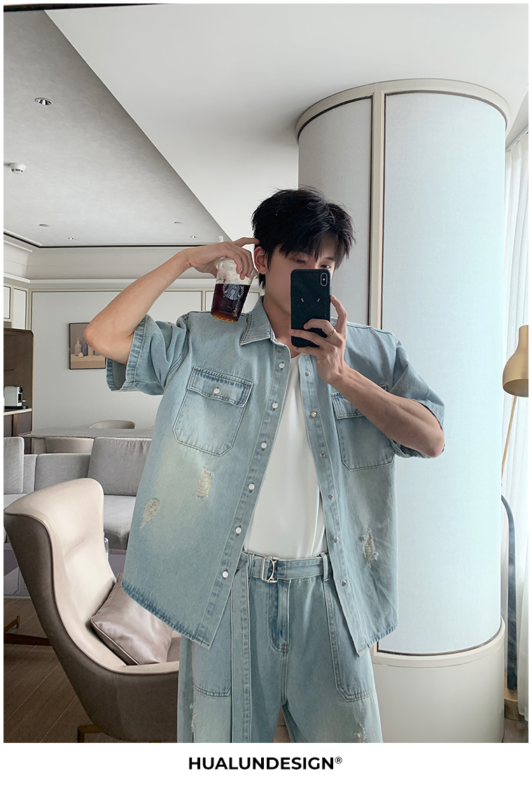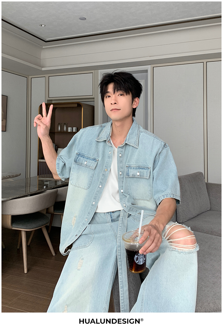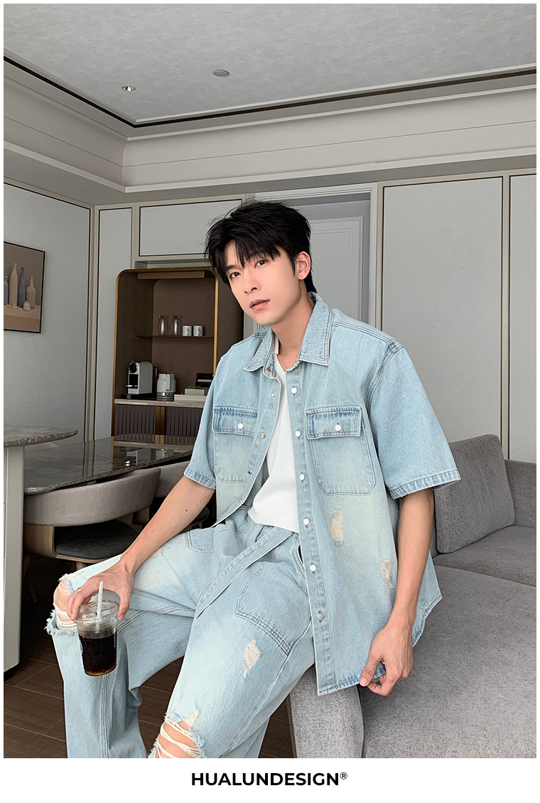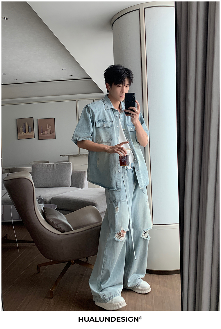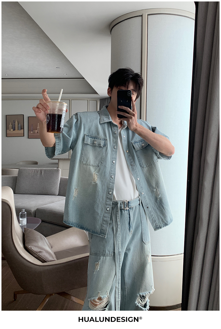 Damage Denim Short Sleeve Shirt & Denim Jeans Setup WN20423