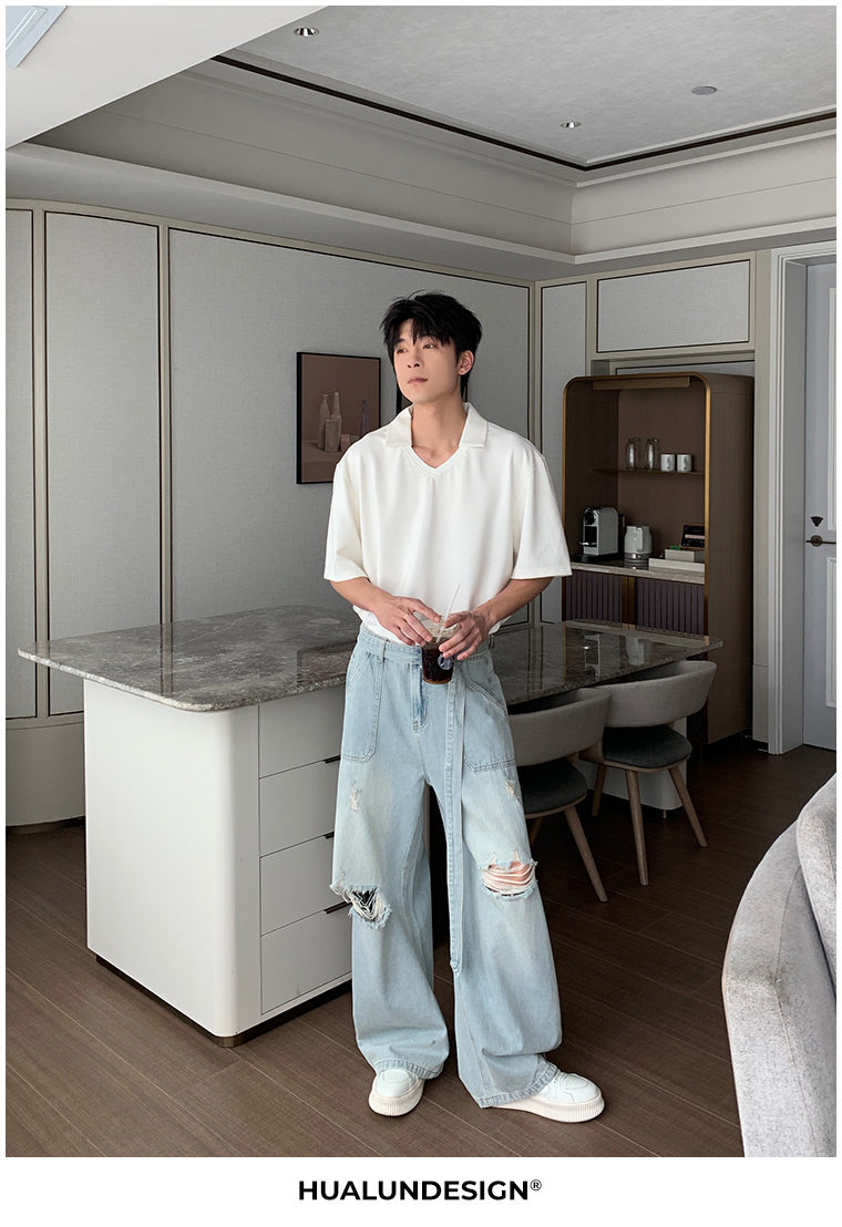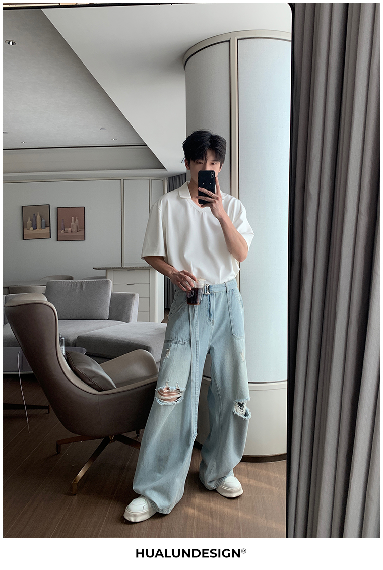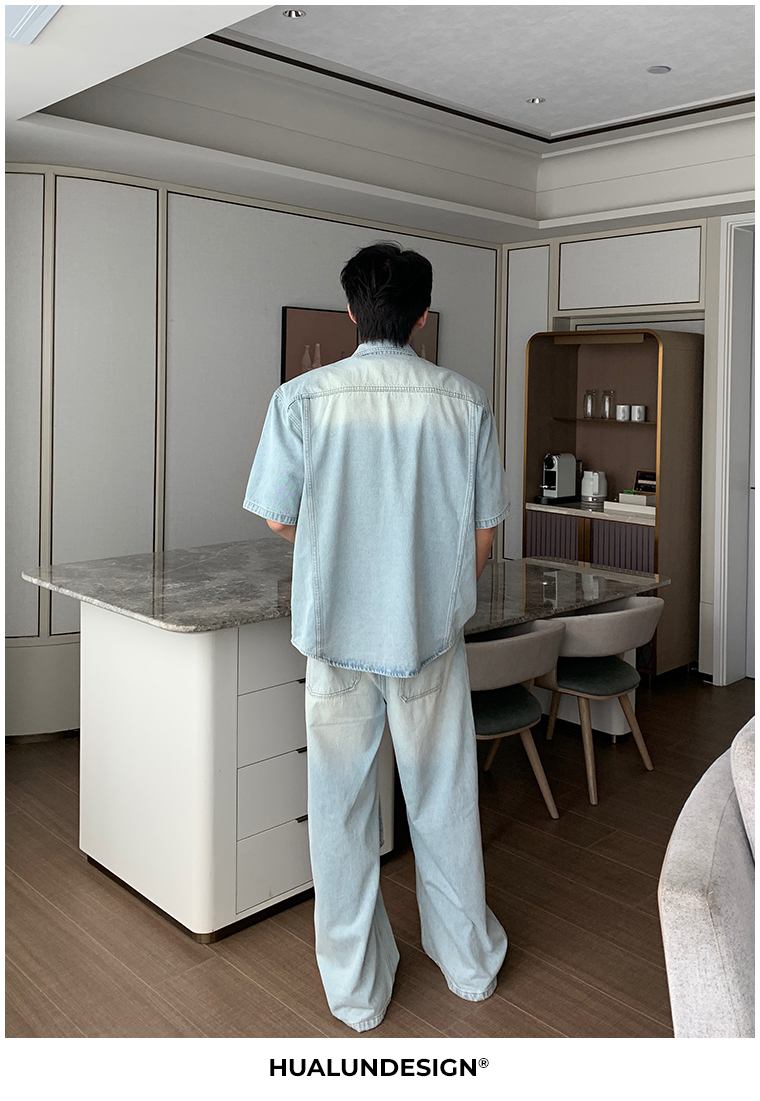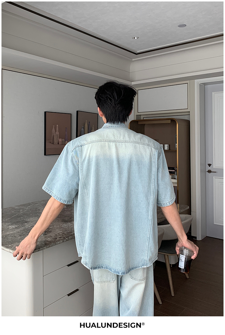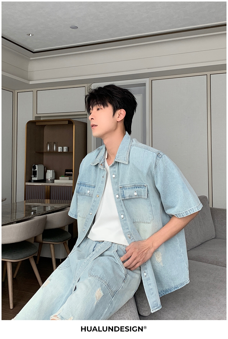 Damage Denim Short Sleeve Shirt & Denim Jeans Setup WN20423