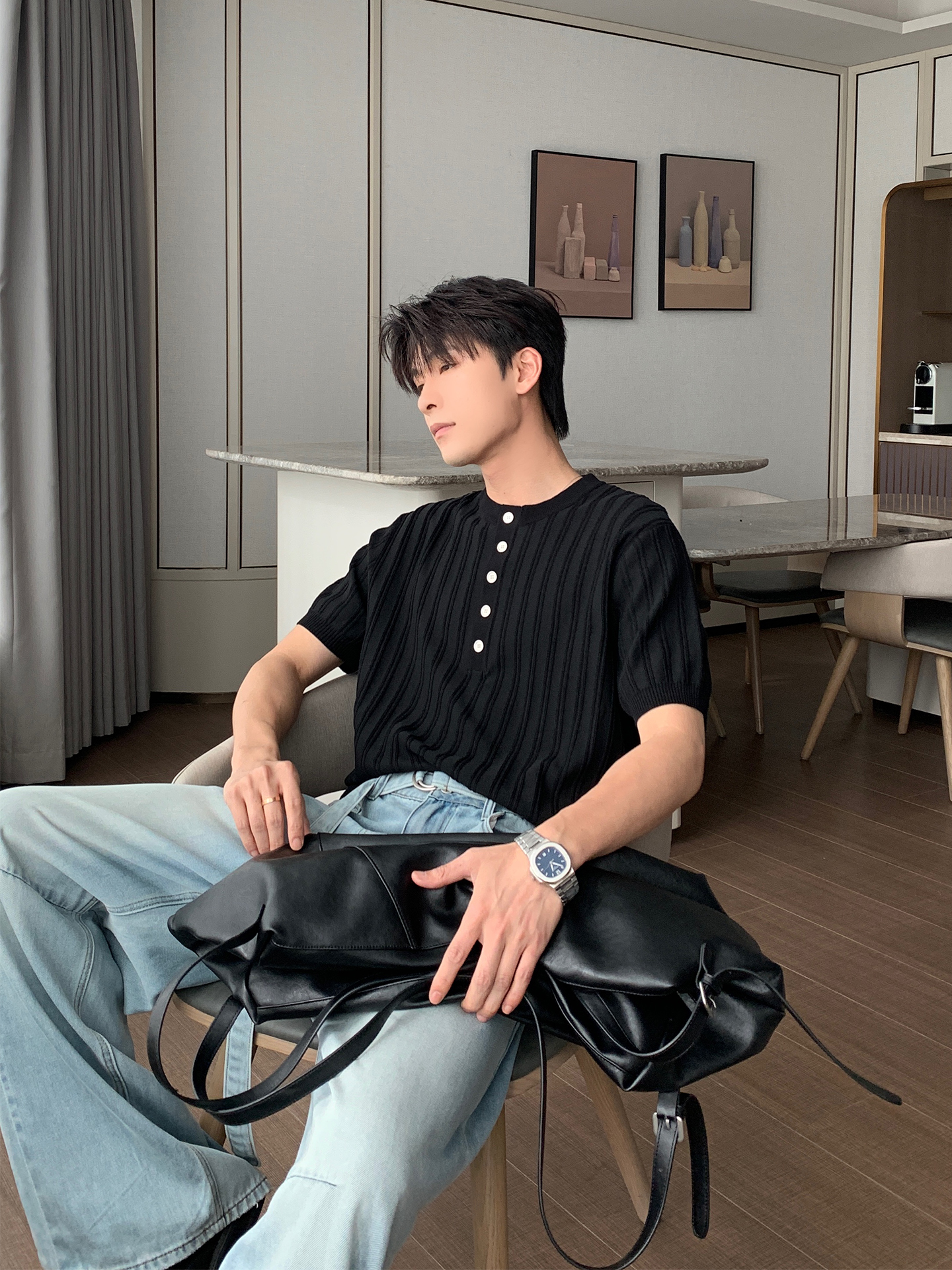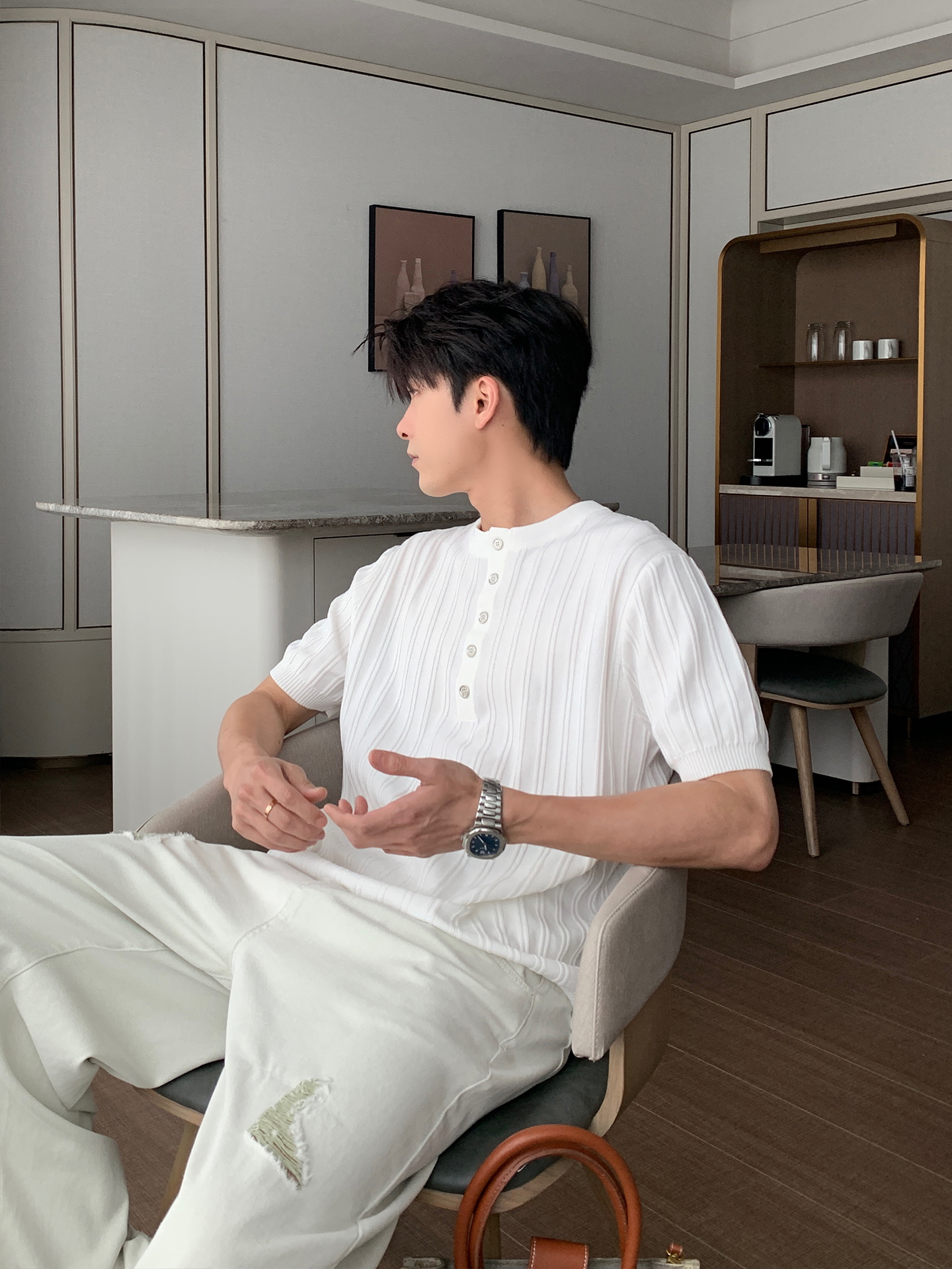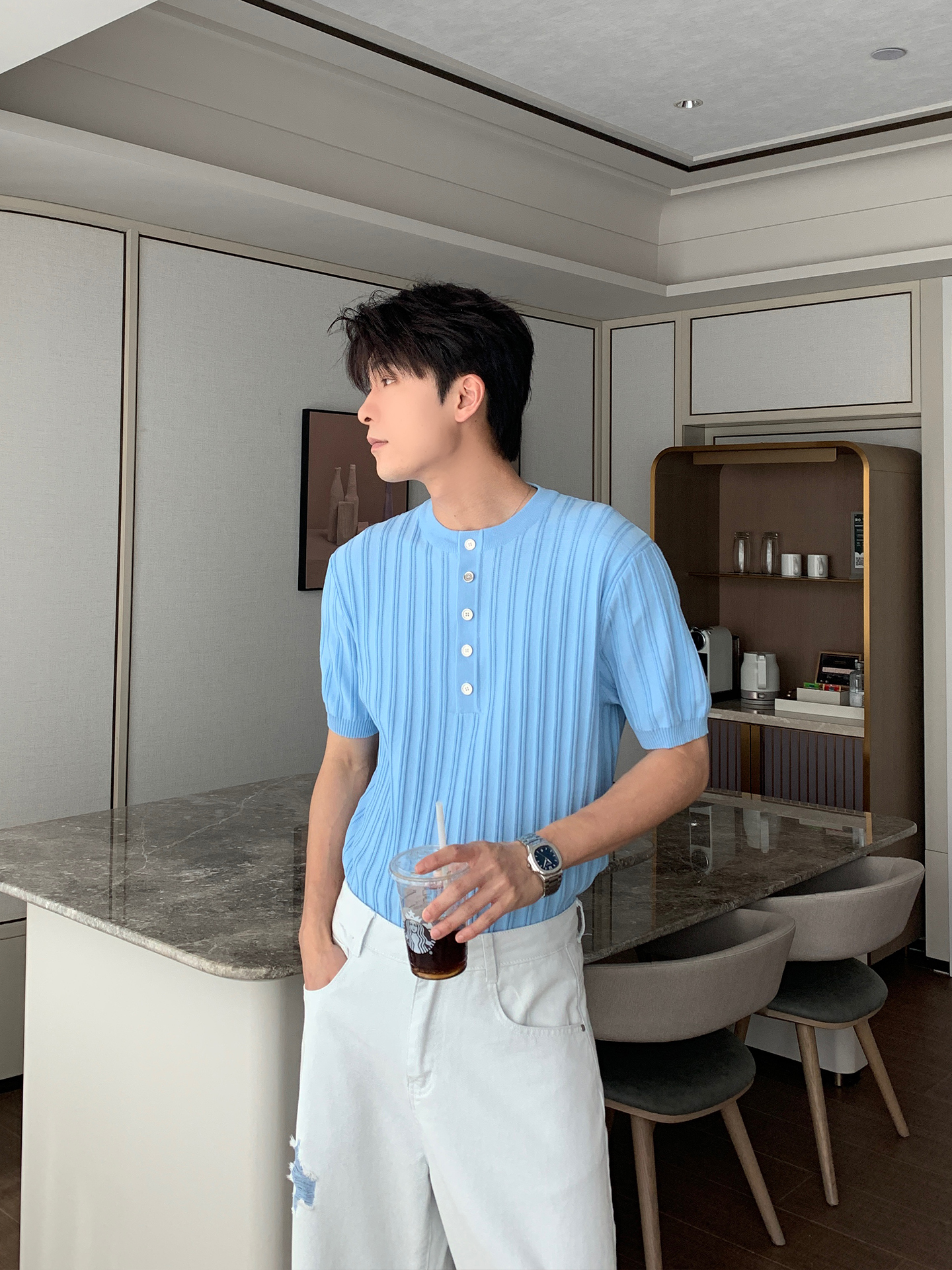 Henry Neck Oversize Short Sleeve T-Shirt WN20454