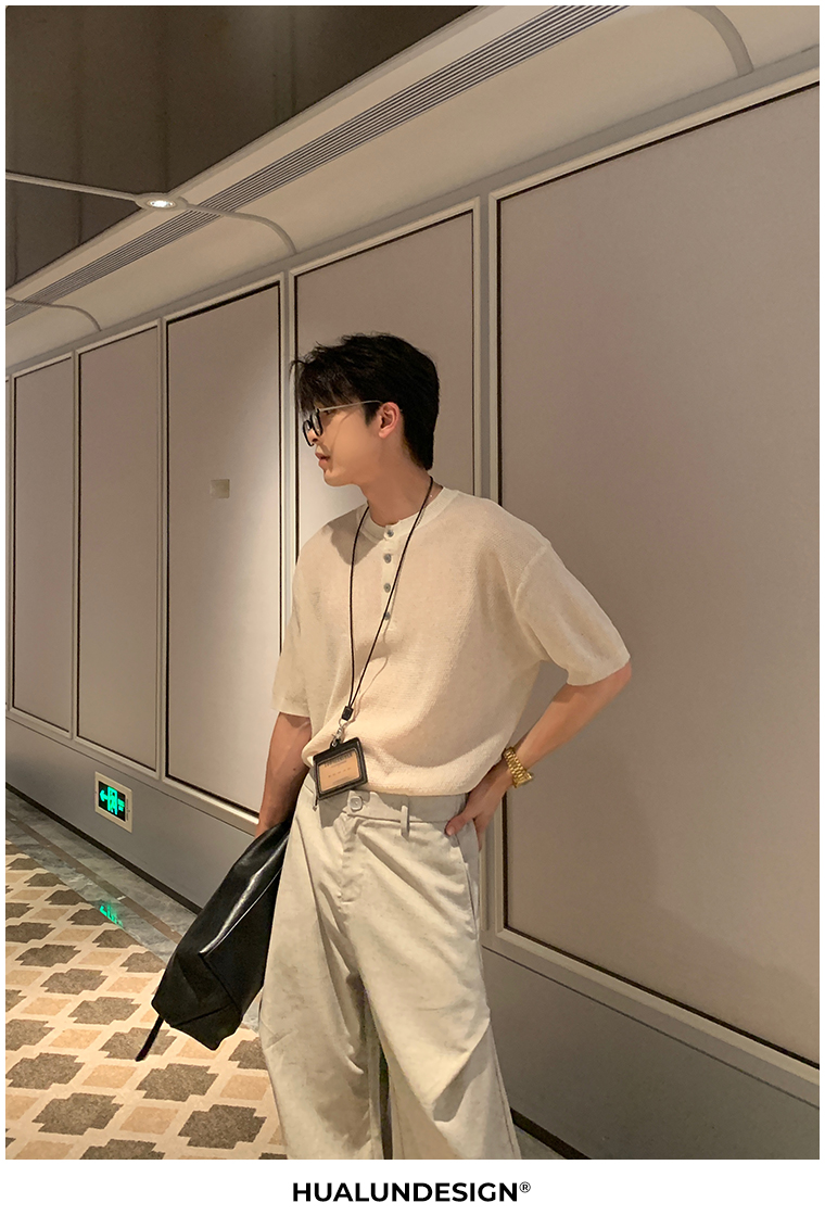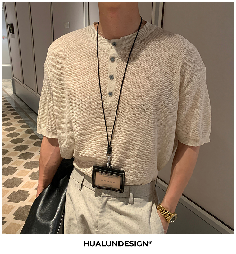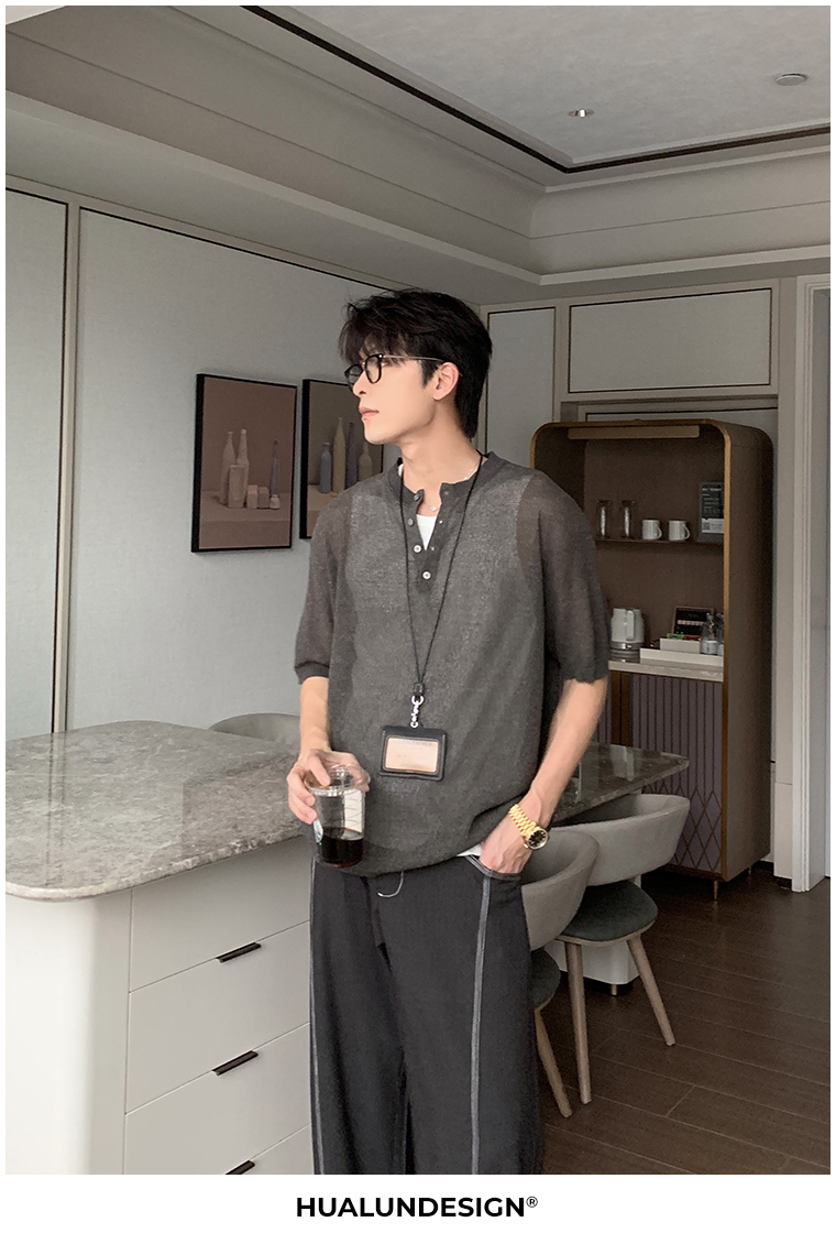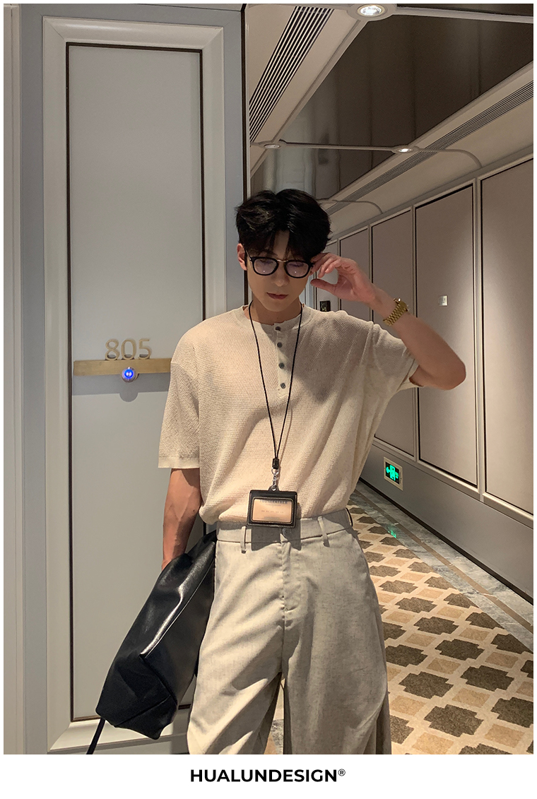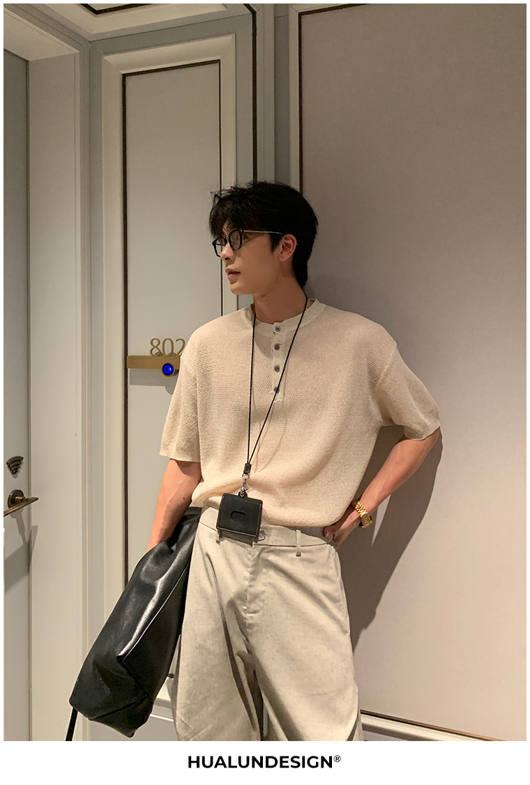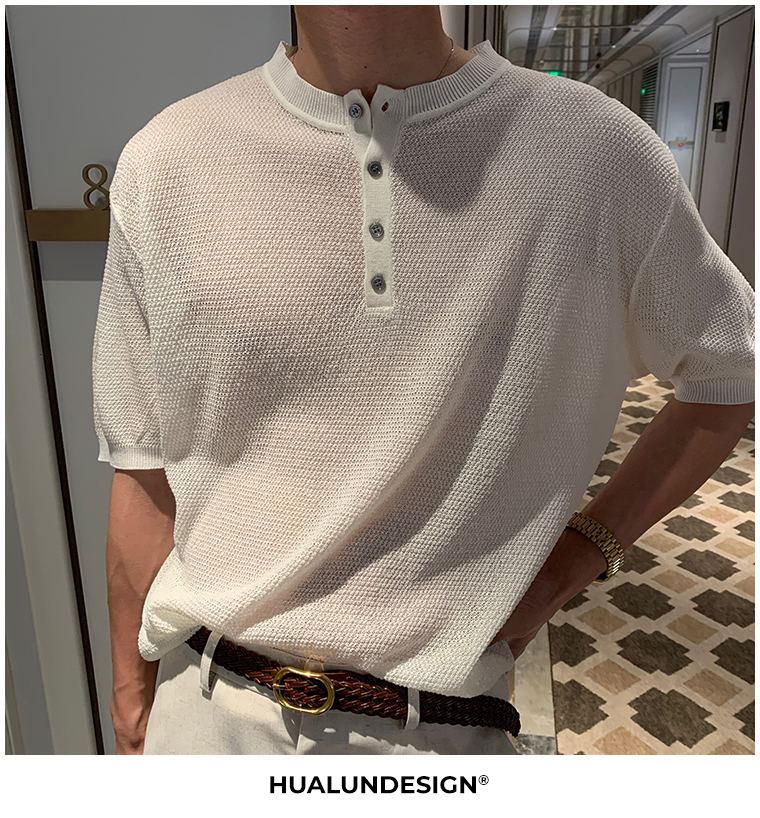 Cooling Linen Knit Henry Neck Short Sleeve T-Shirt WN20468