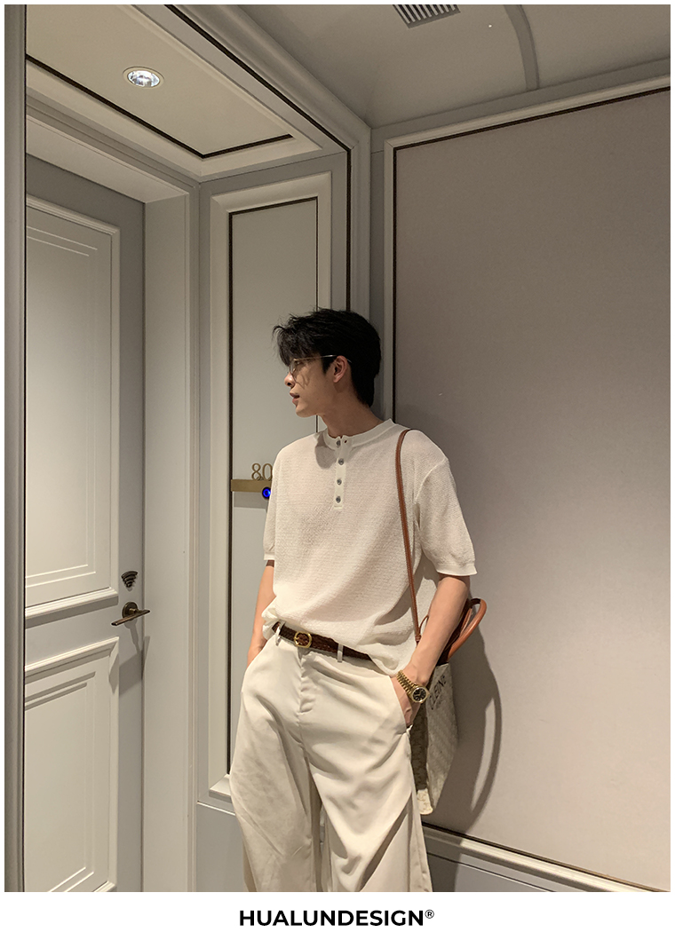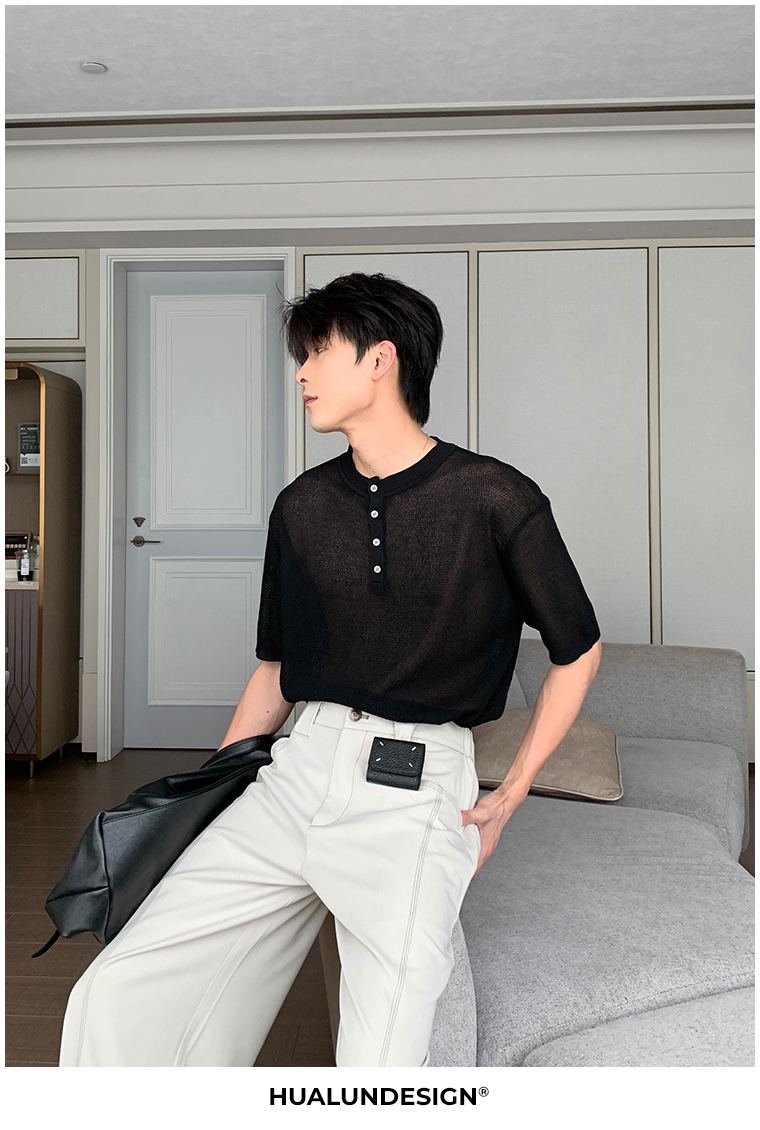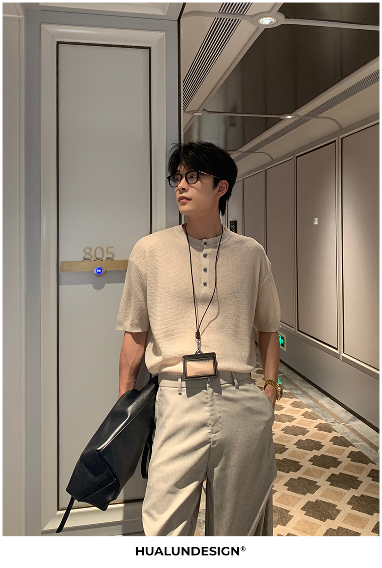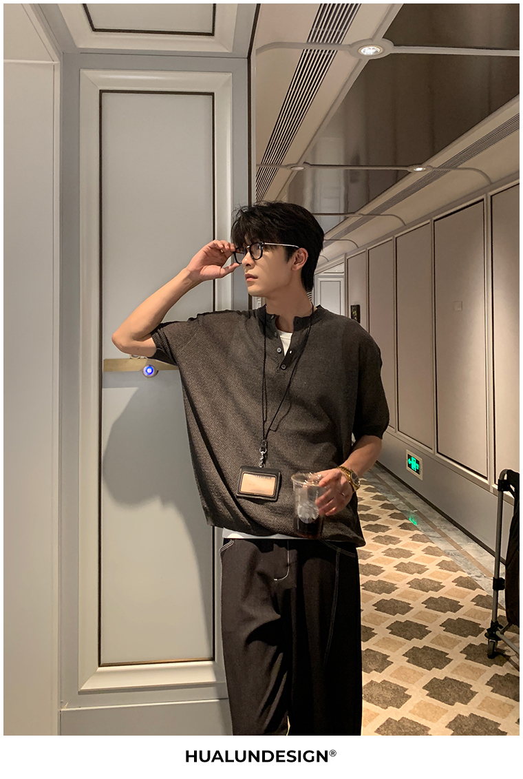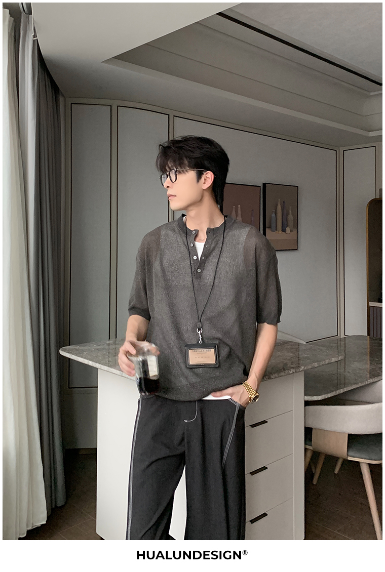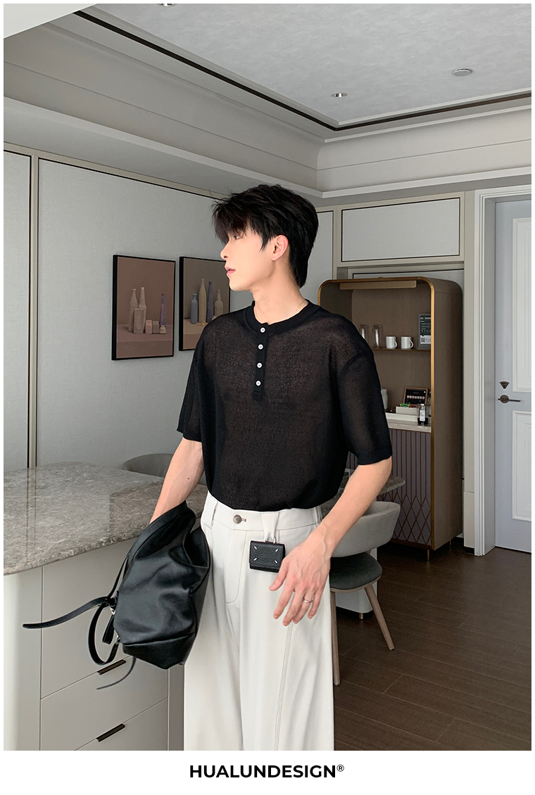 Cooling Linen Knit Henry Neck Short Sleeve T-Shirt WN20468