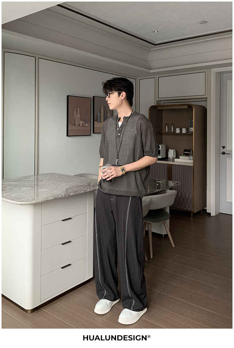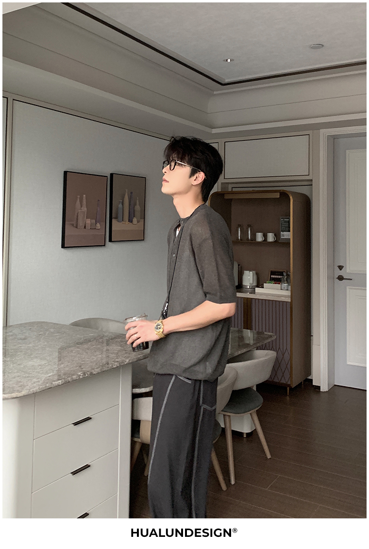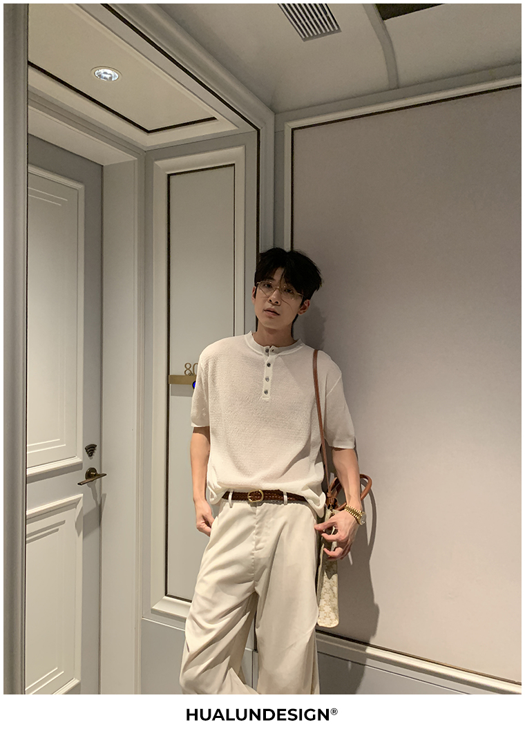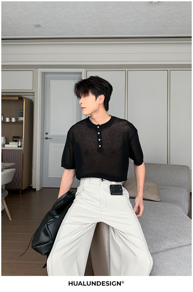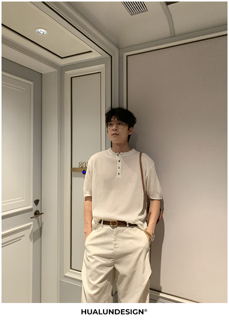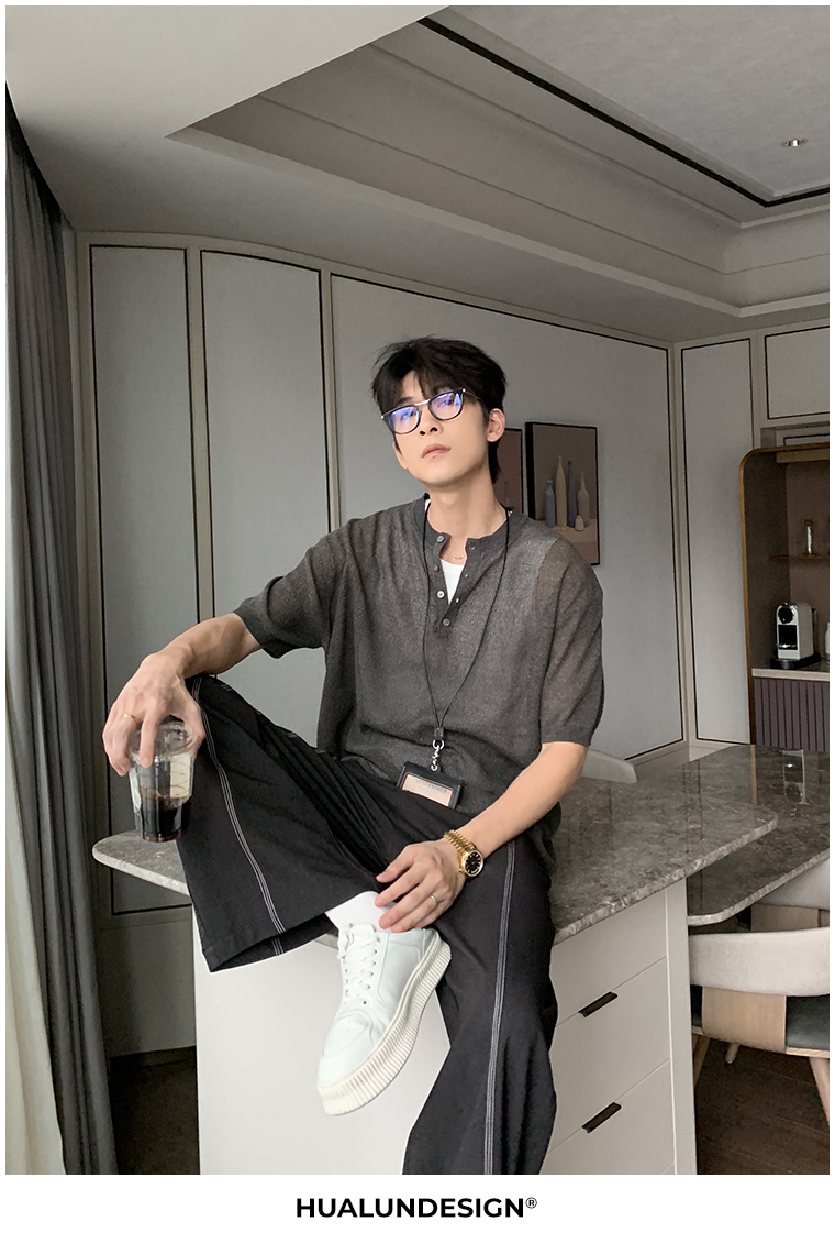 Cooling Linen Knit Henry Neck Short Sleeve T-Shirt WN20468