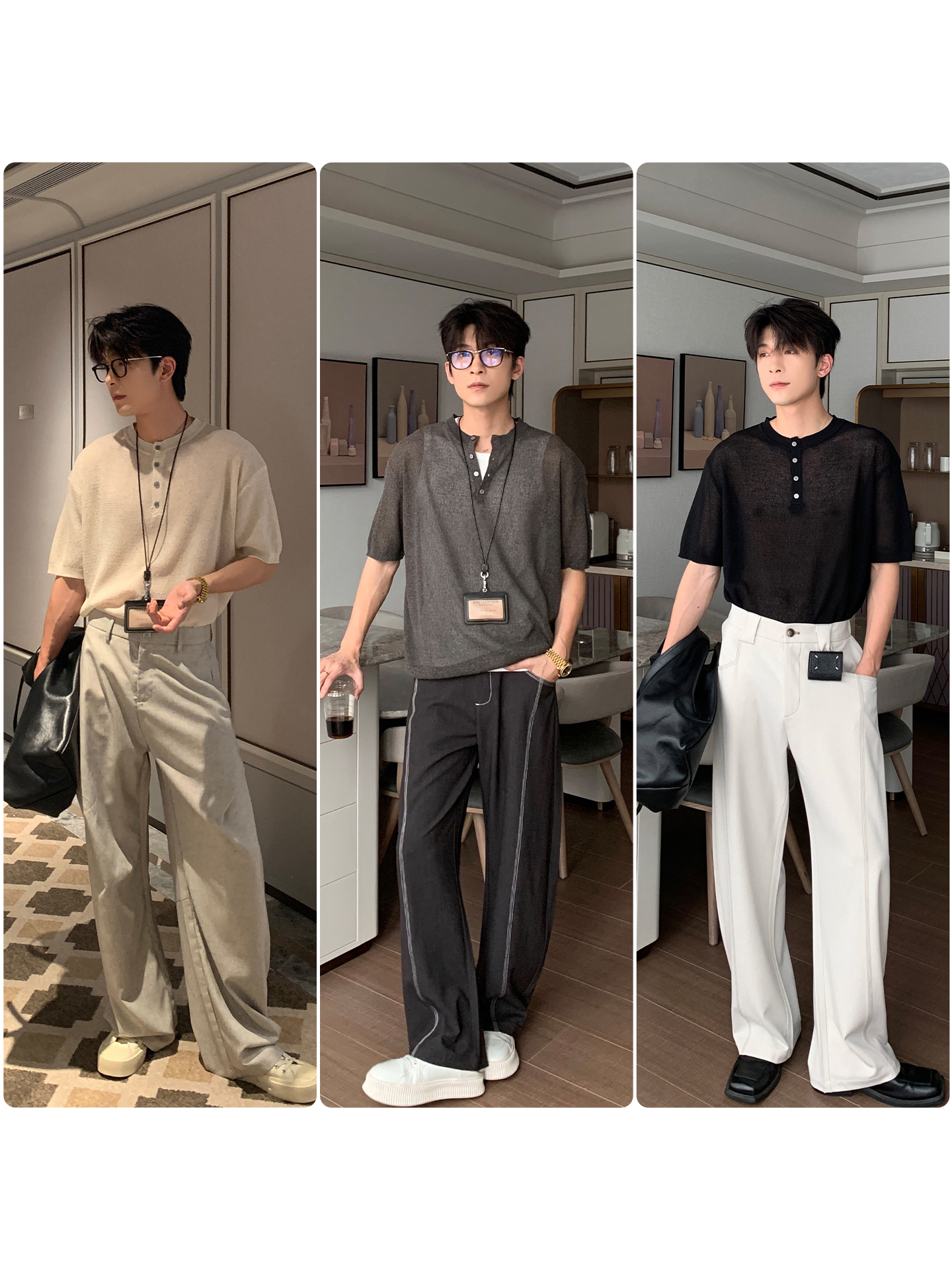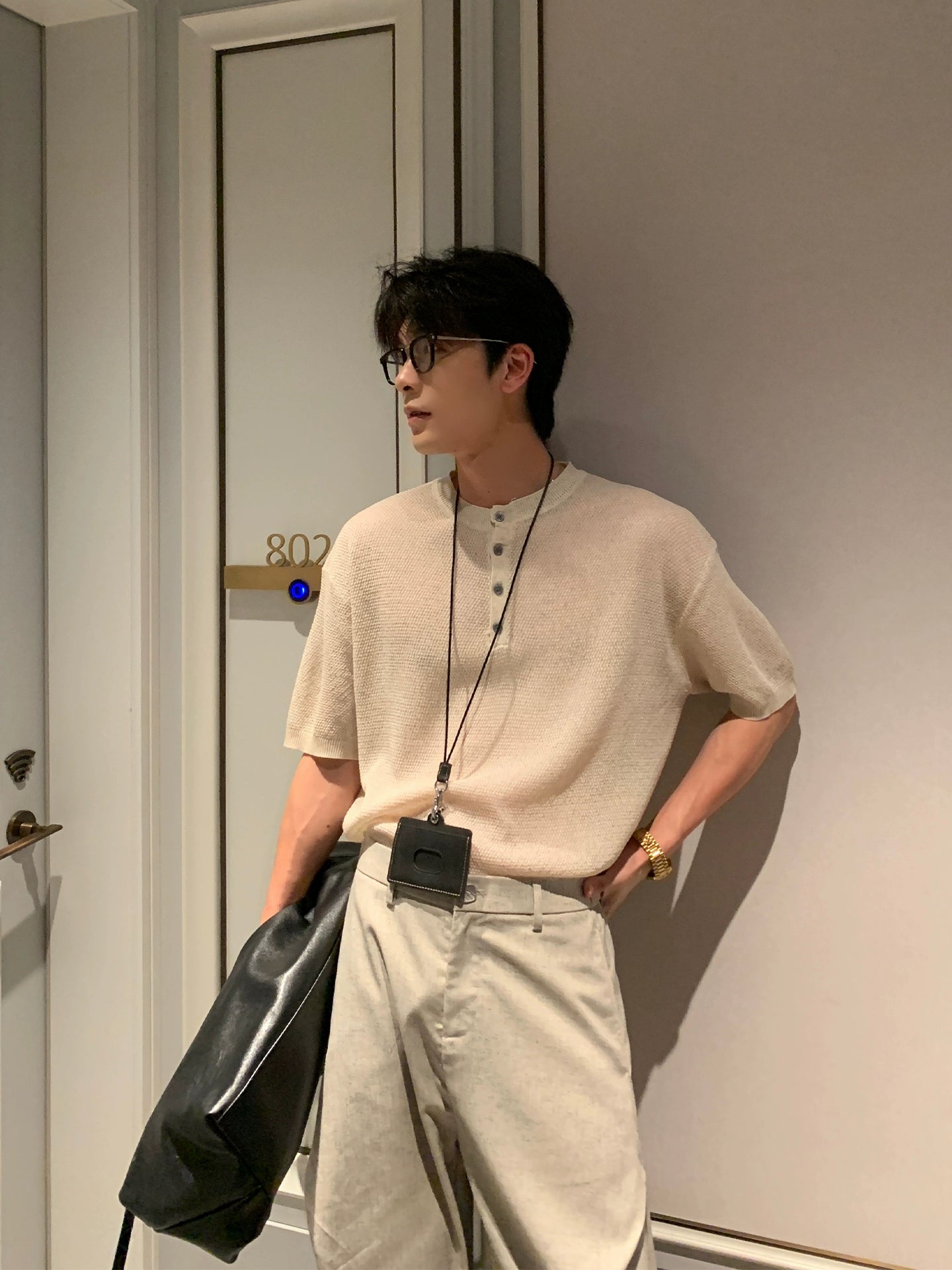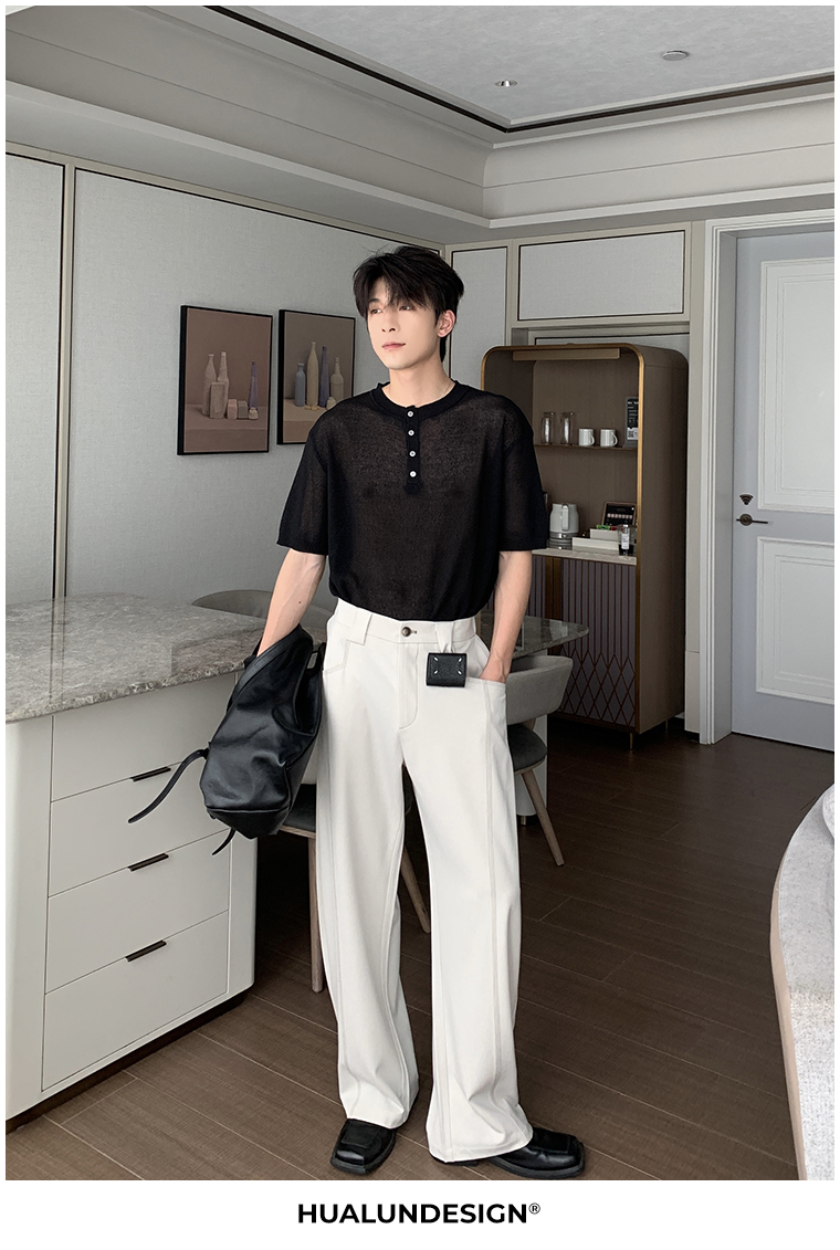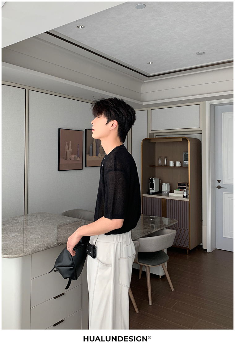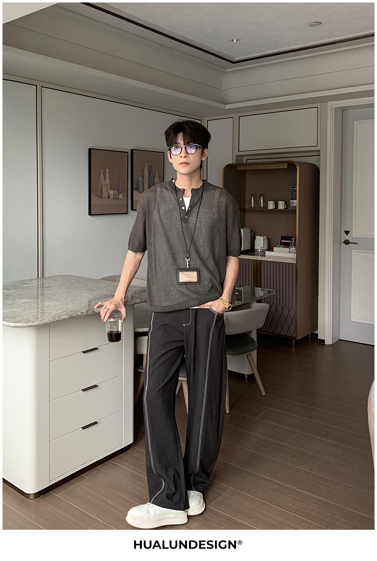 Cooling Linen Knit Henry Neck Short Sleeve T-Shirt WN20468