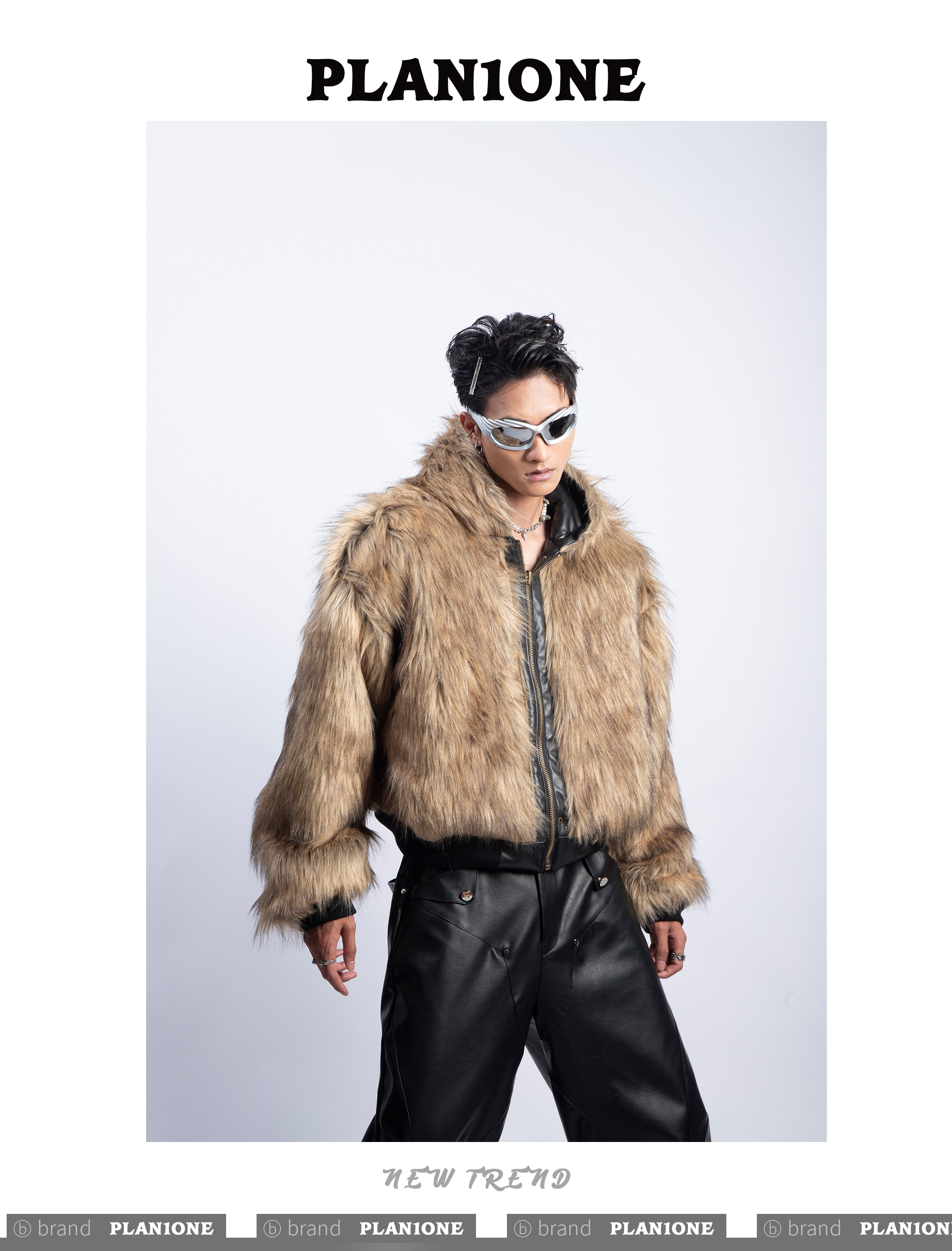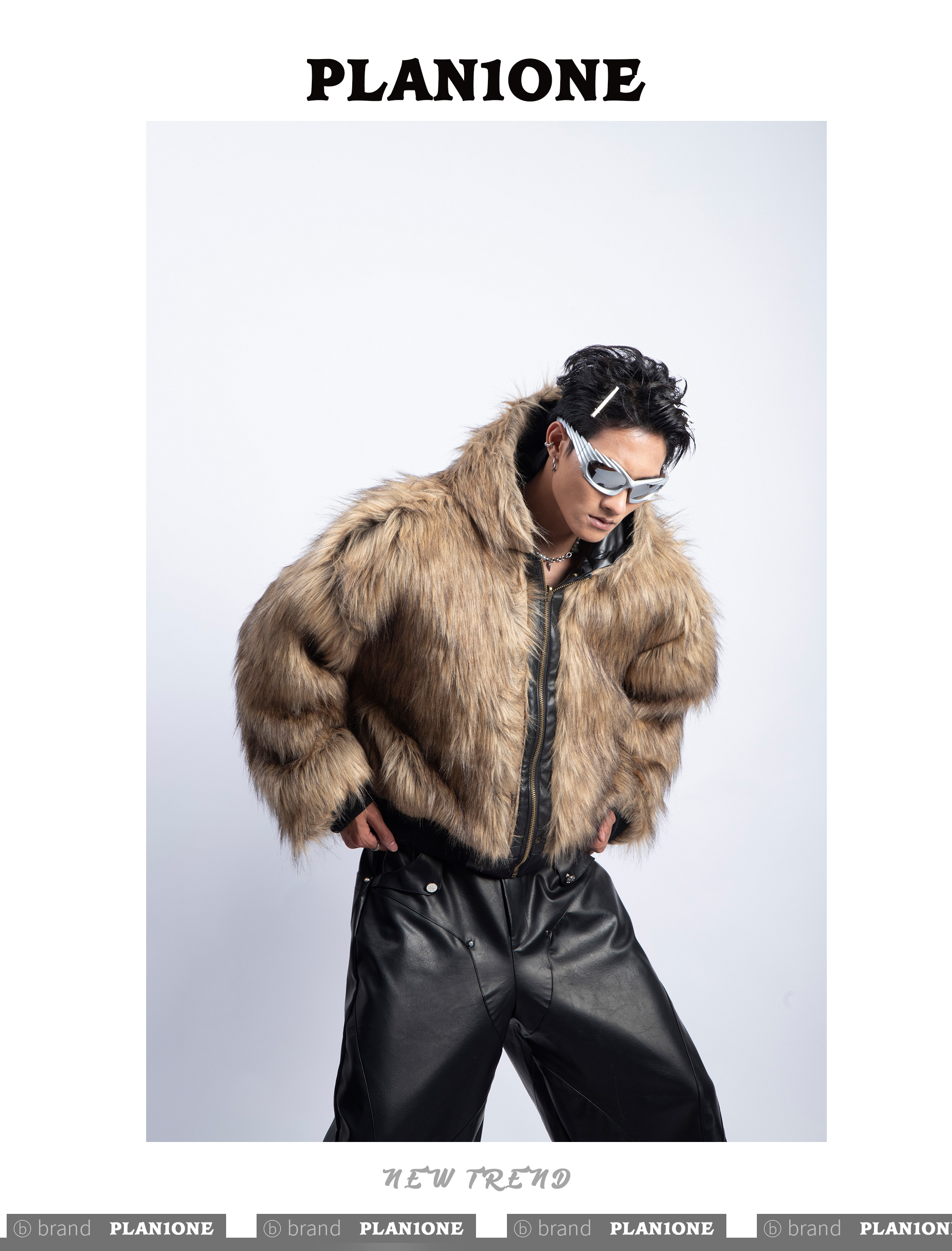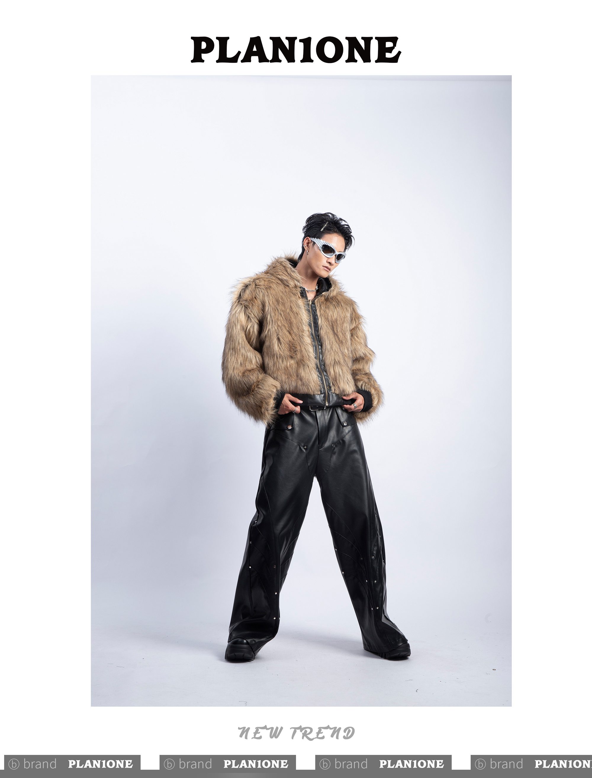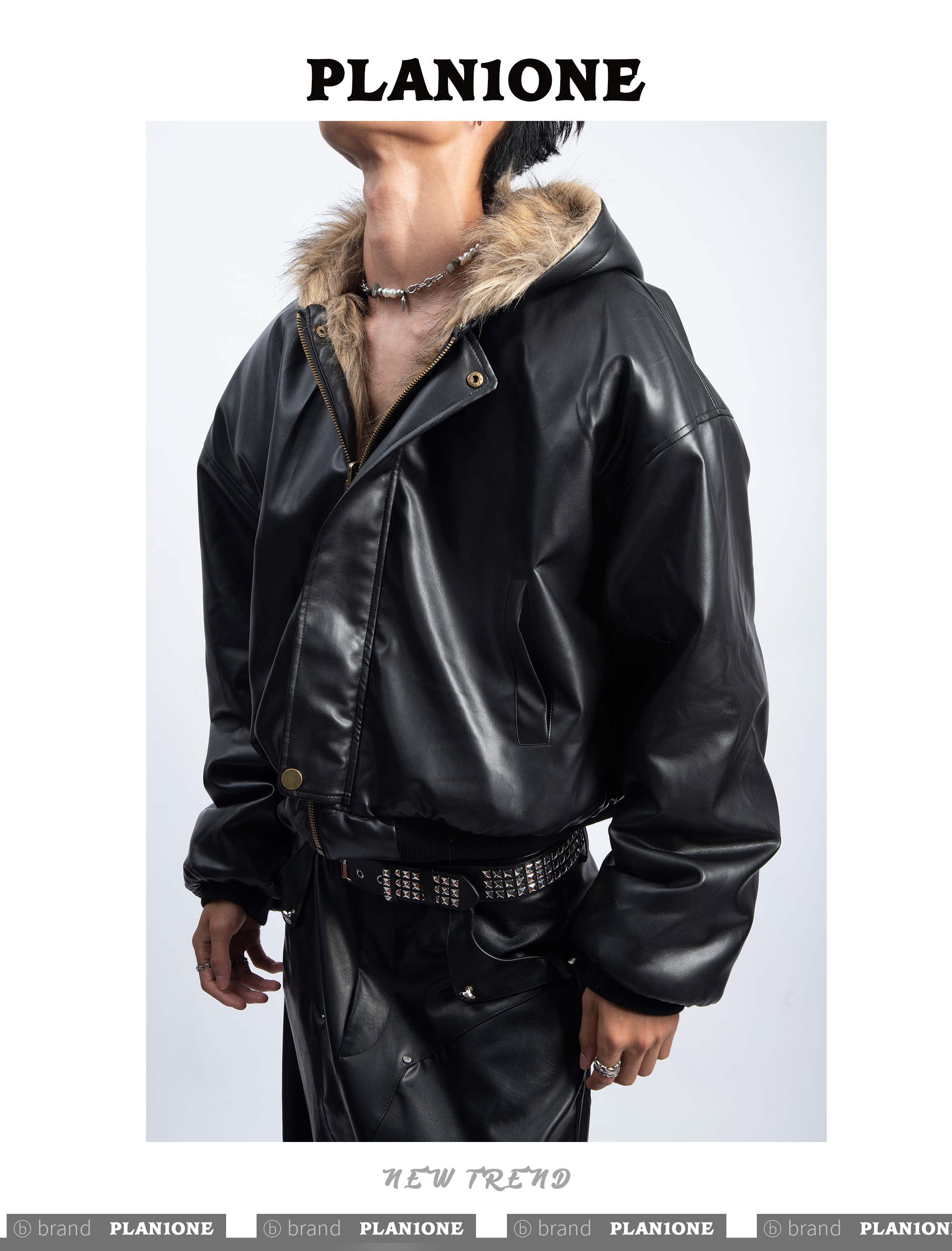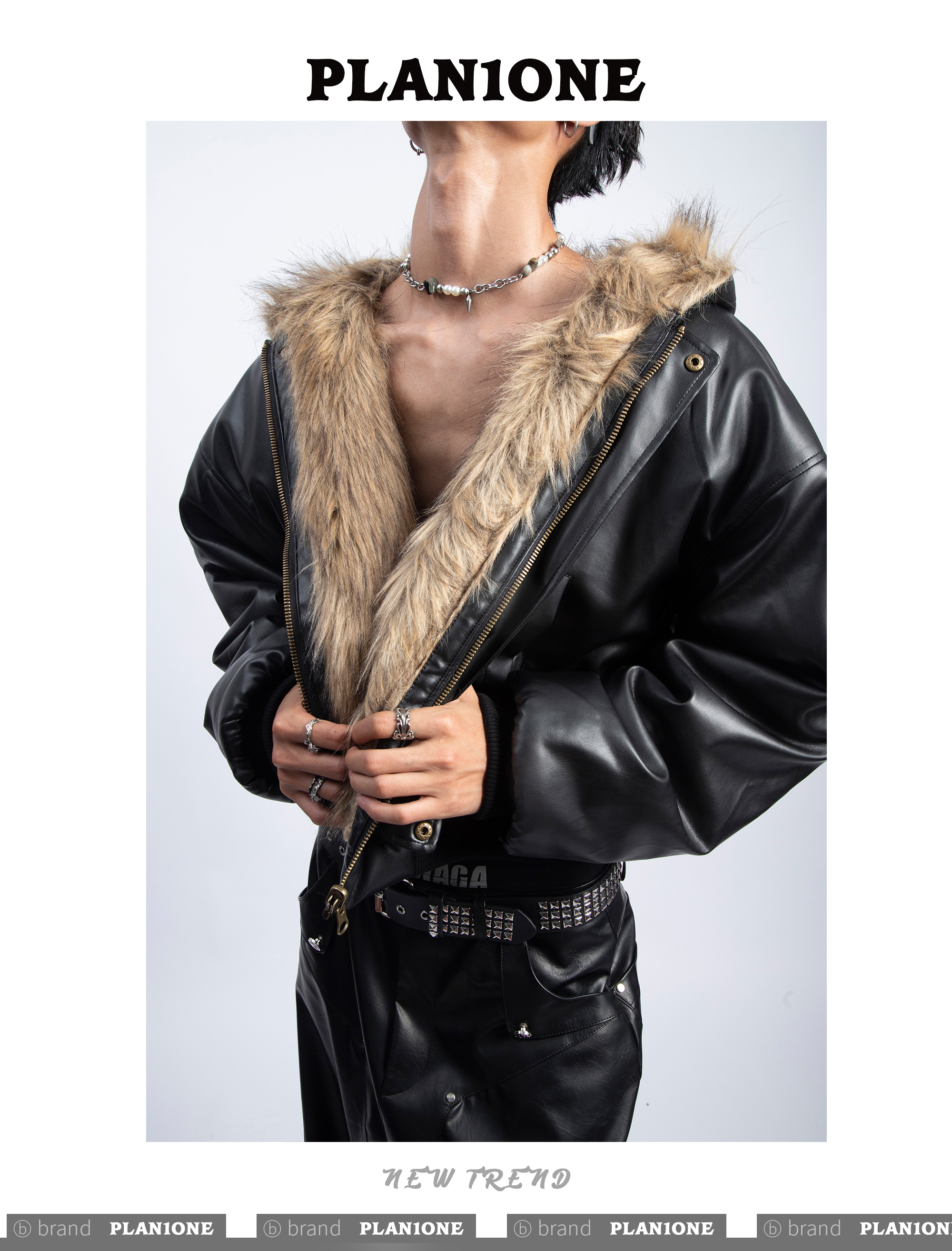 Reversible Fake Fur PU Leather Jacket WN20548-K