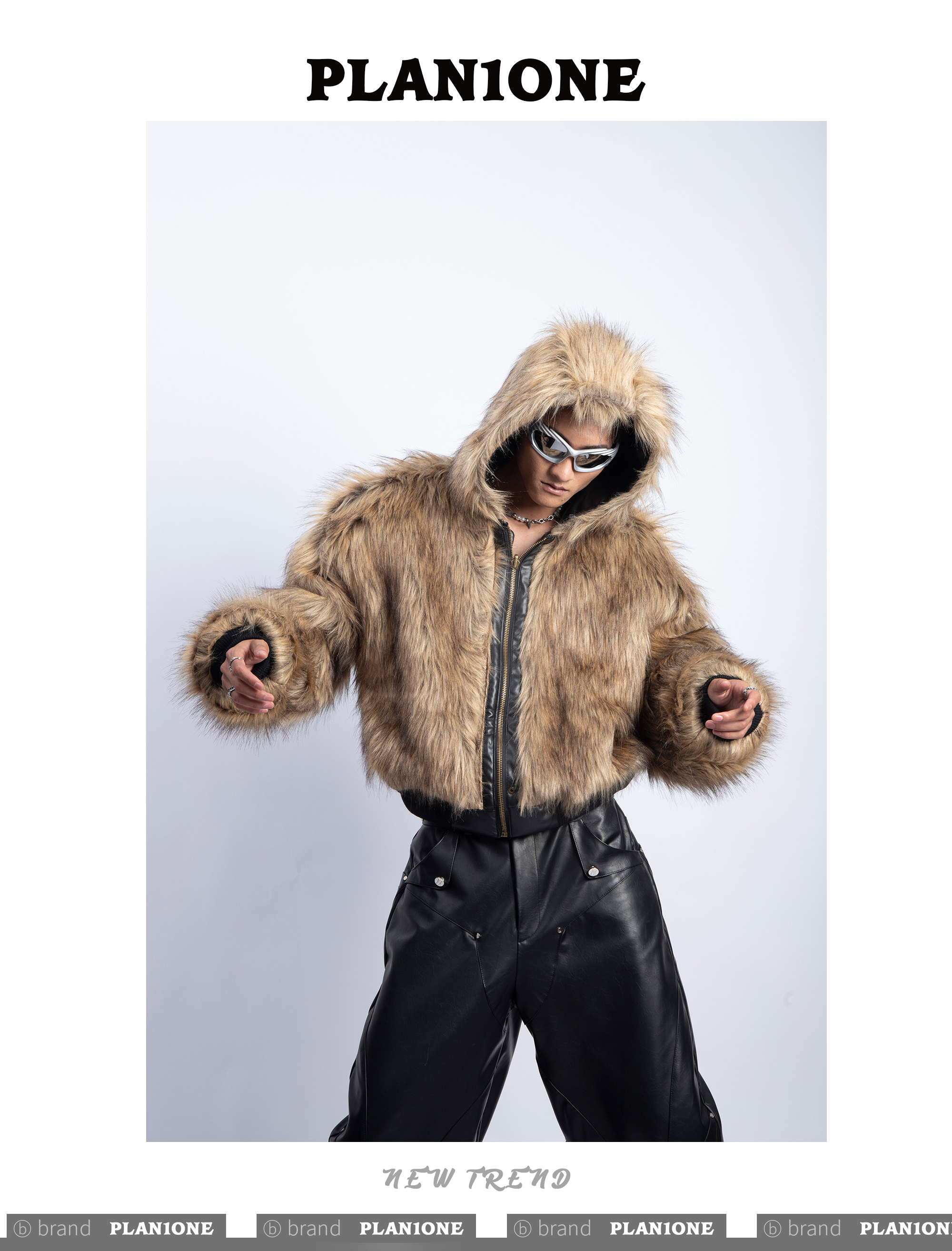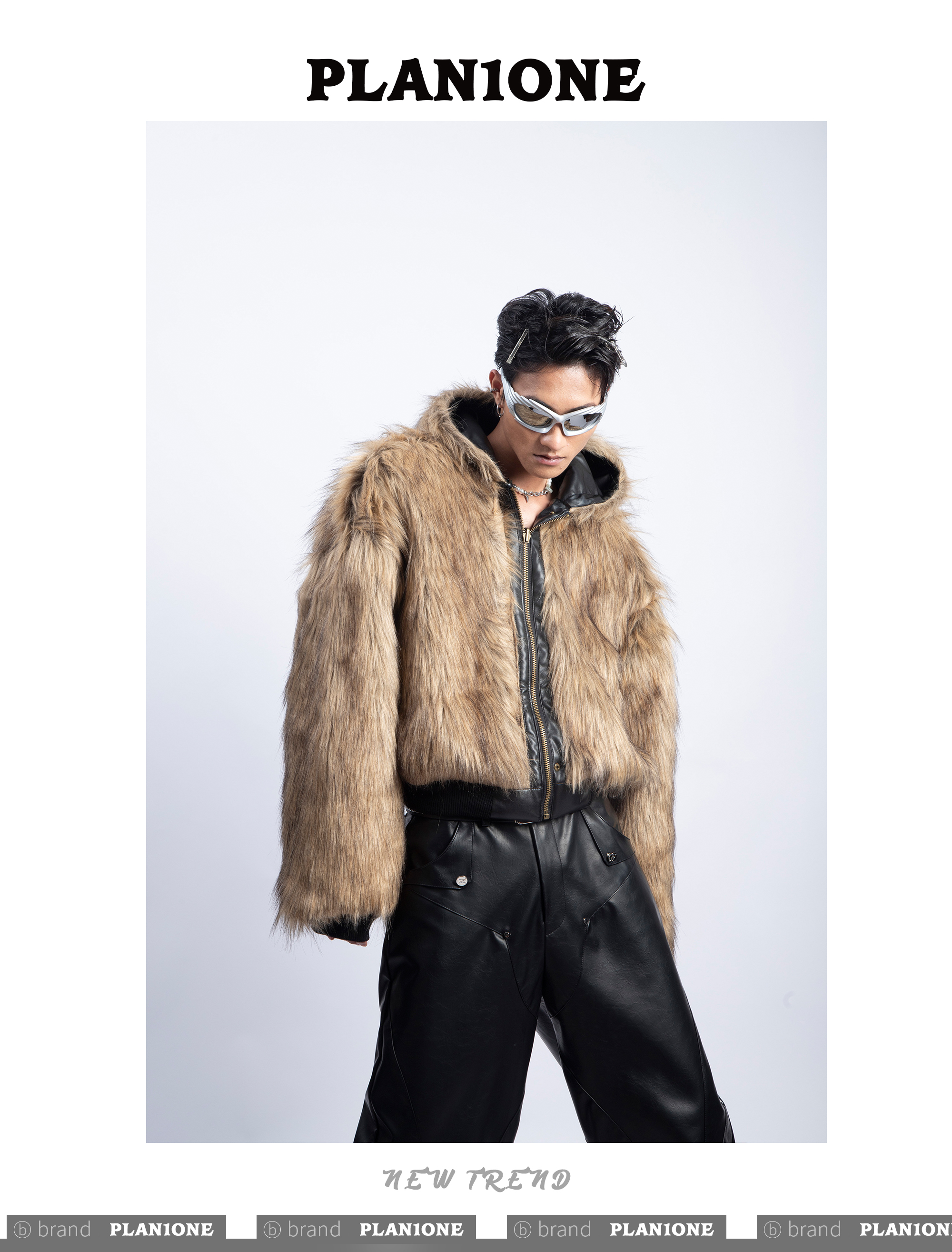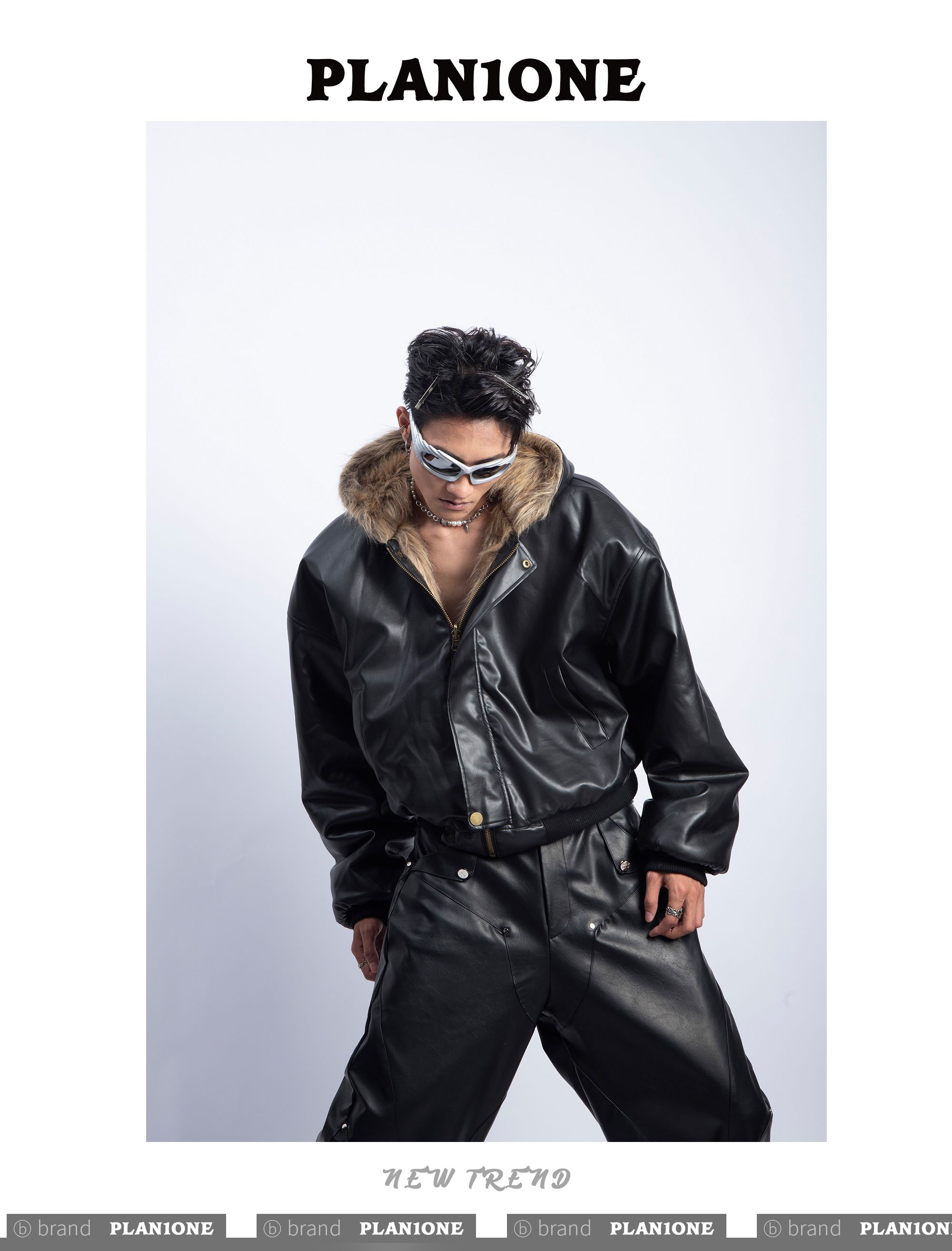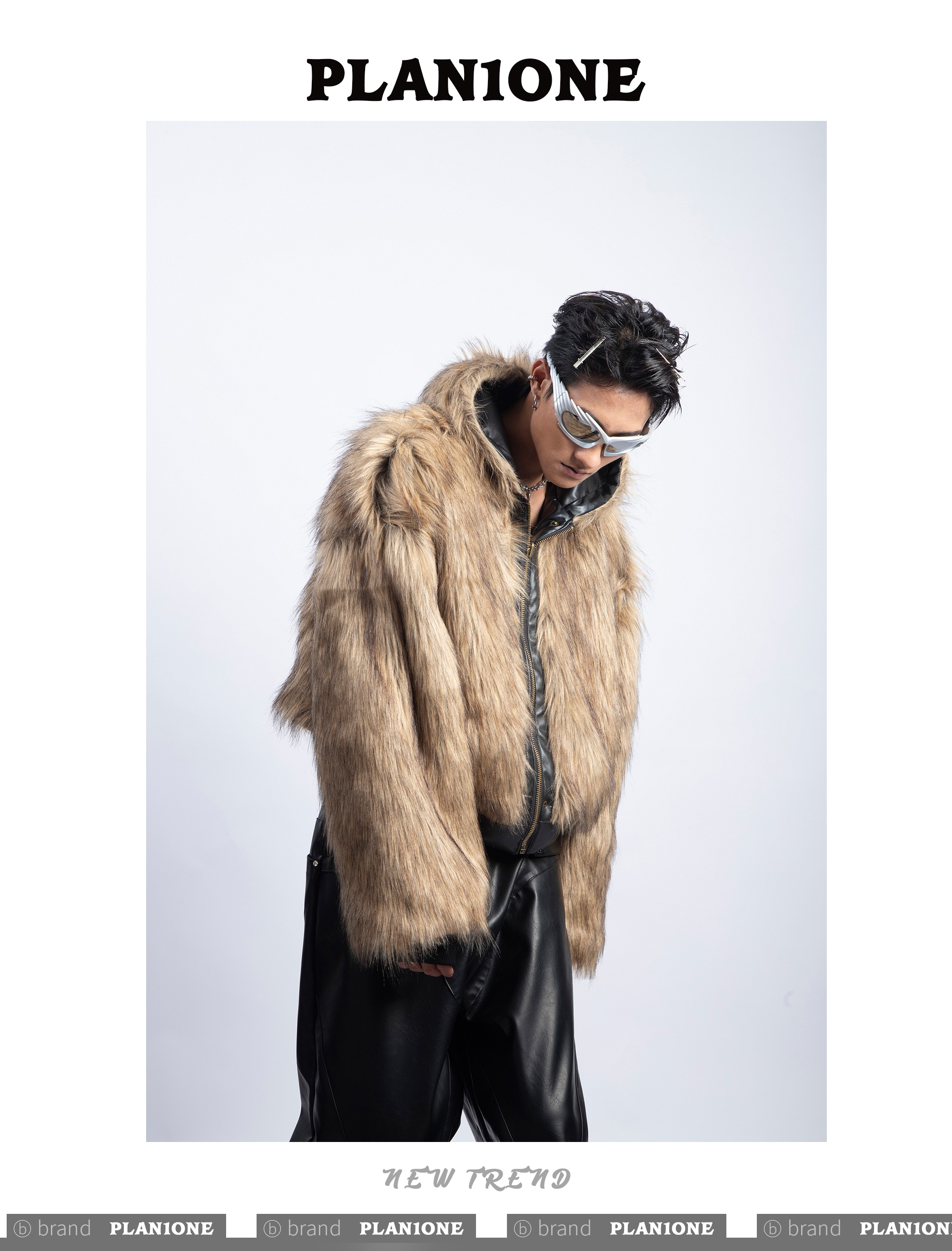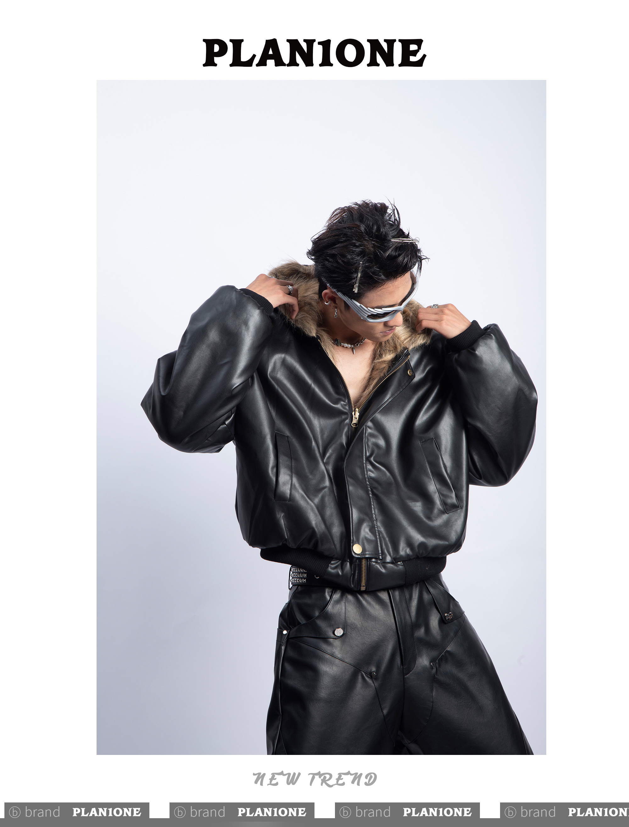 Reversible Fake Fur PU Leather Jacket WN20548-K