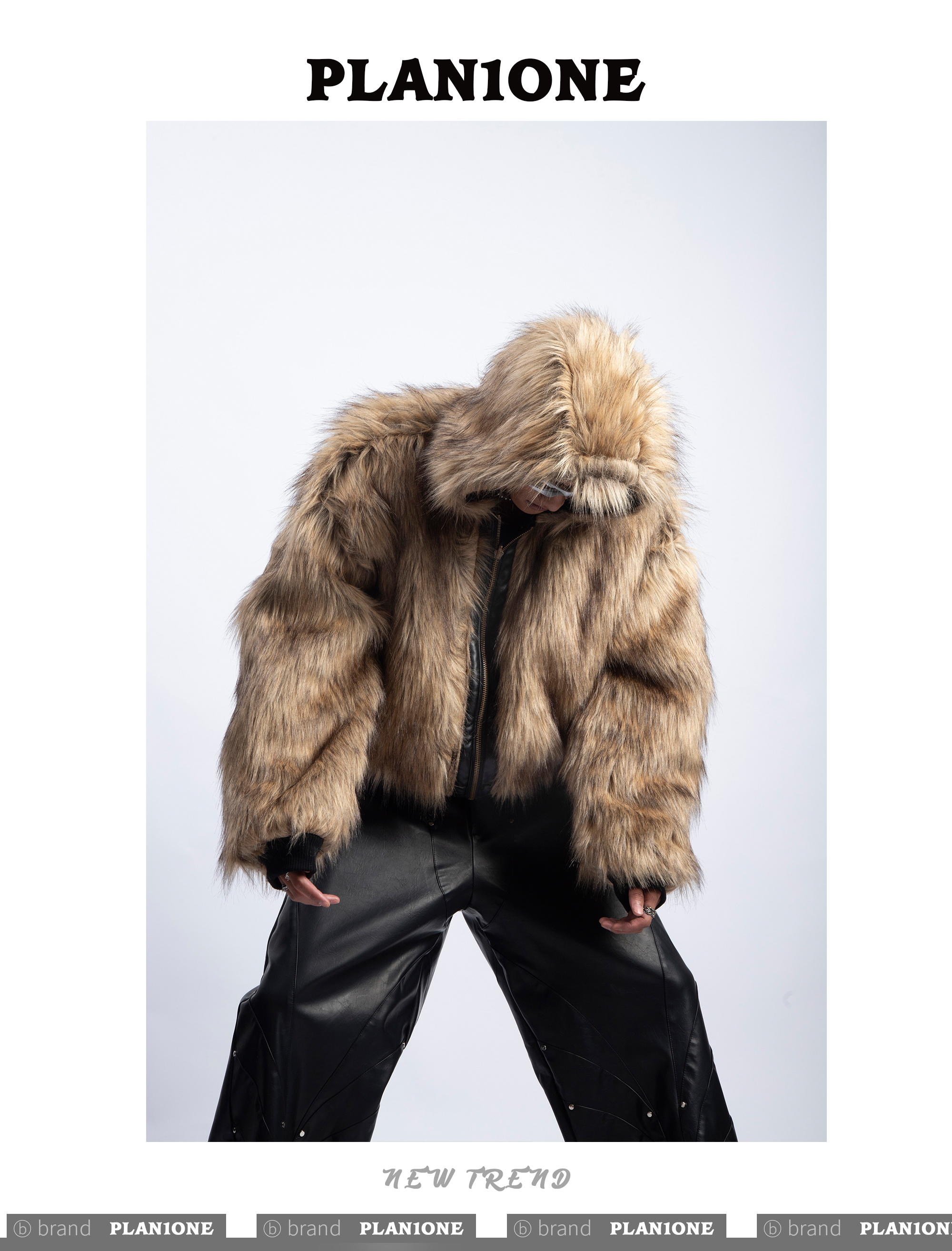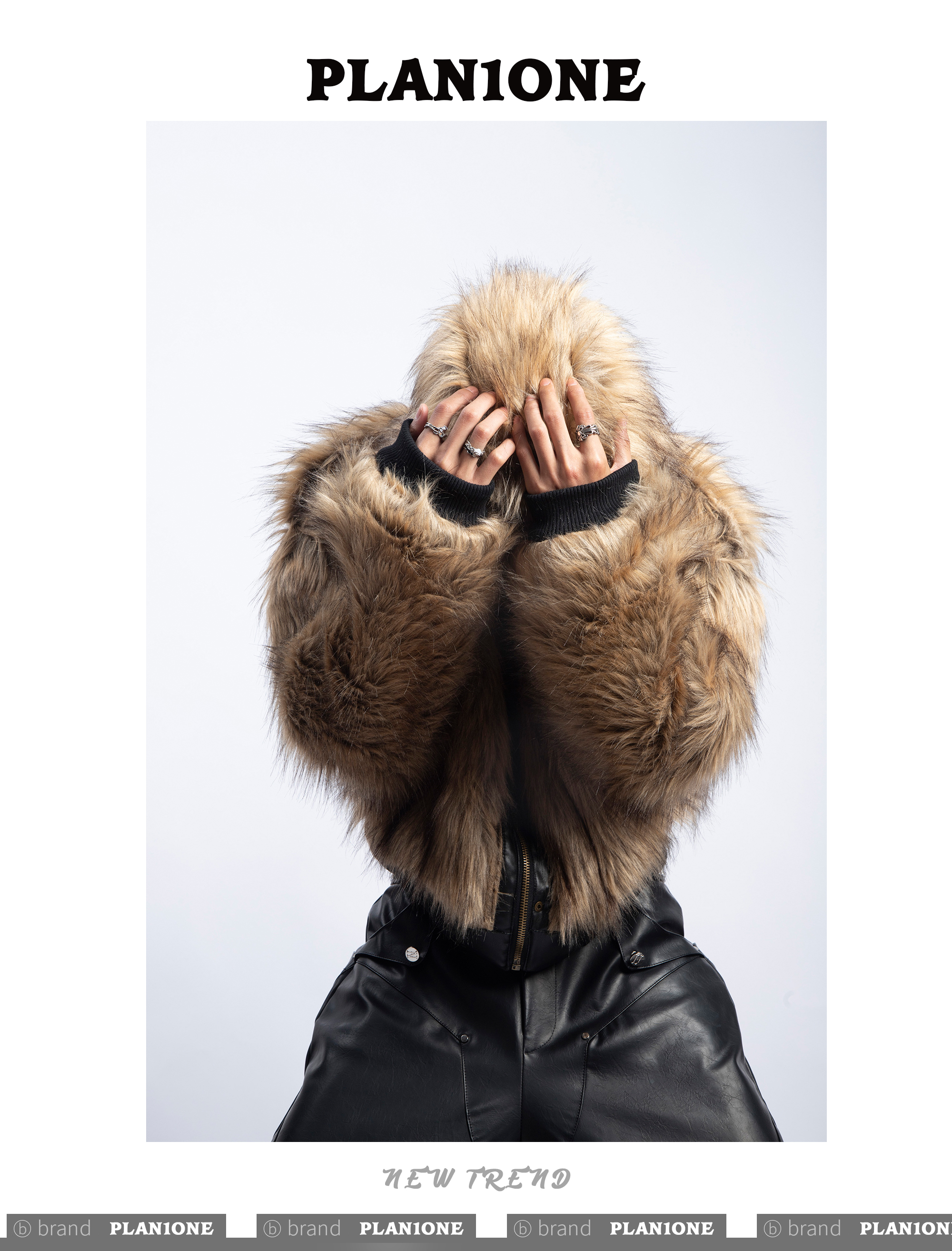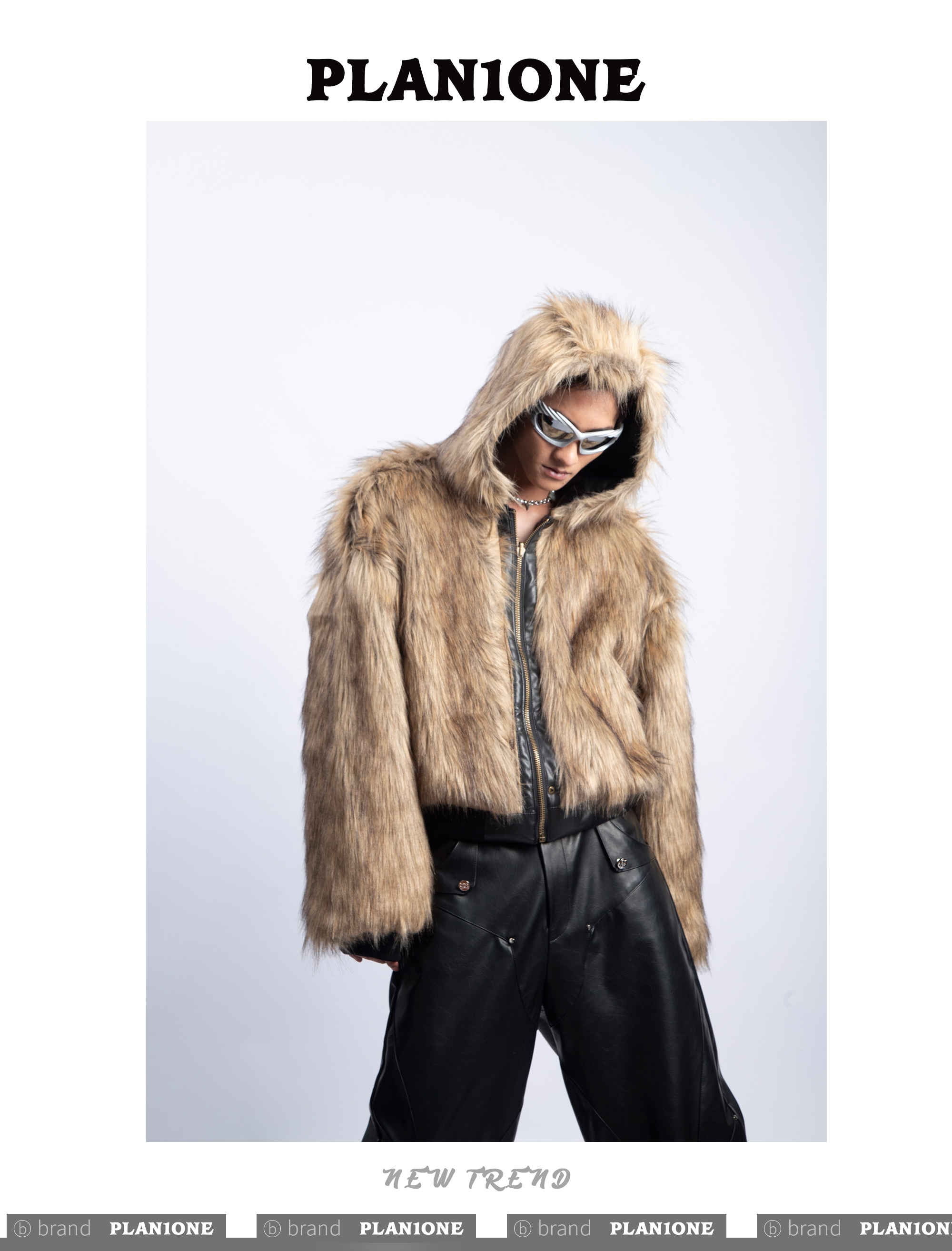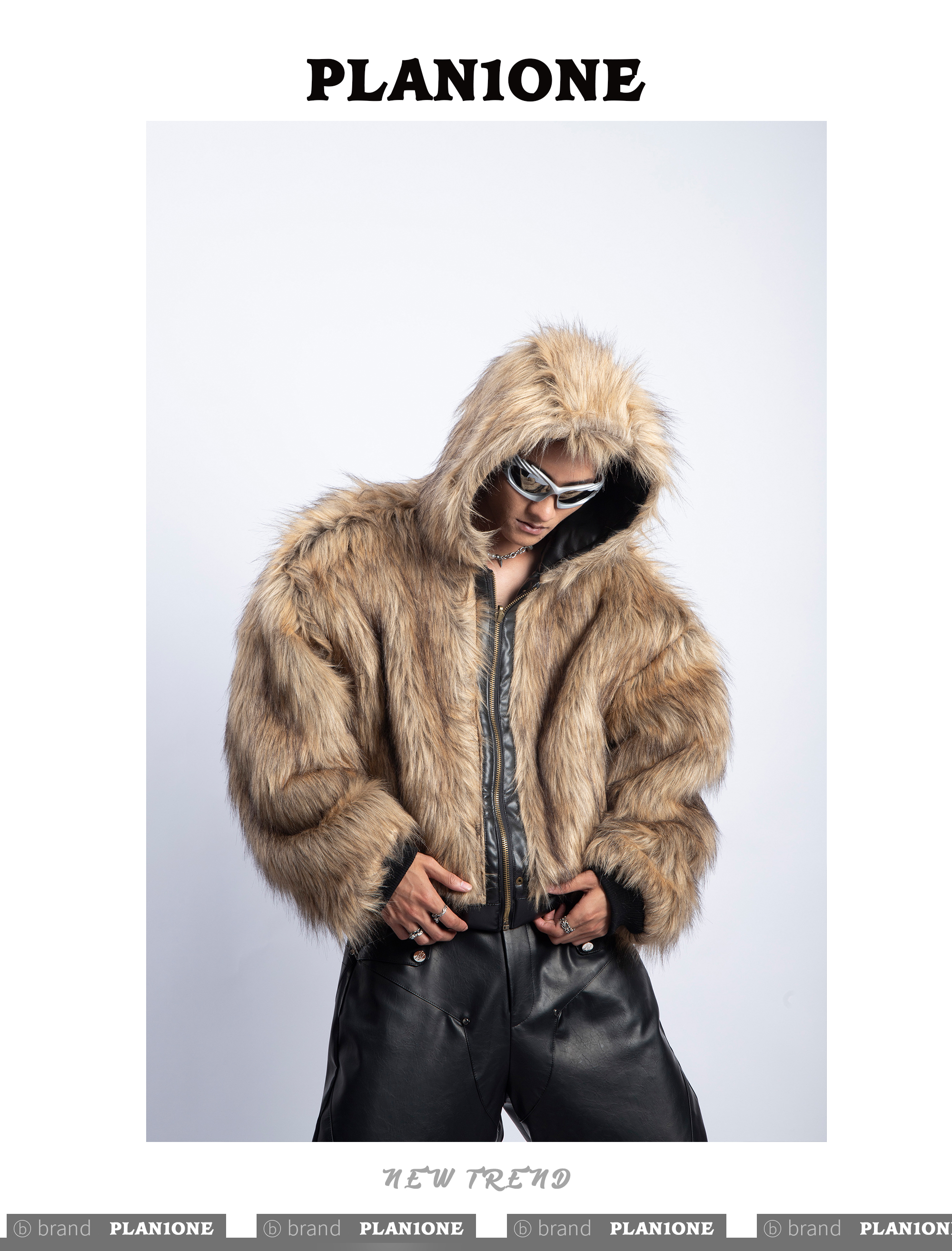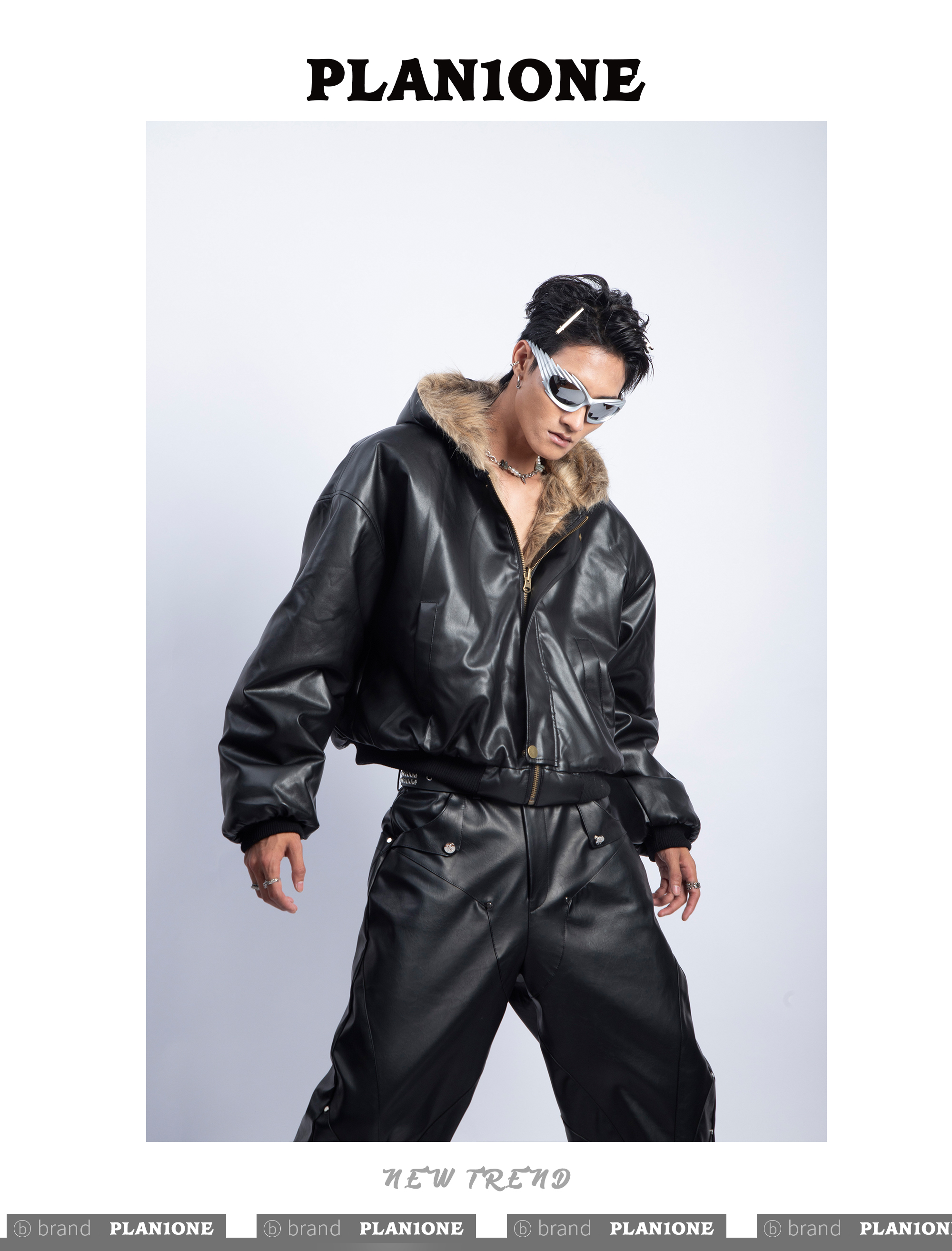 Reversible Fake Fur PU Leather Jacket WN20548-K