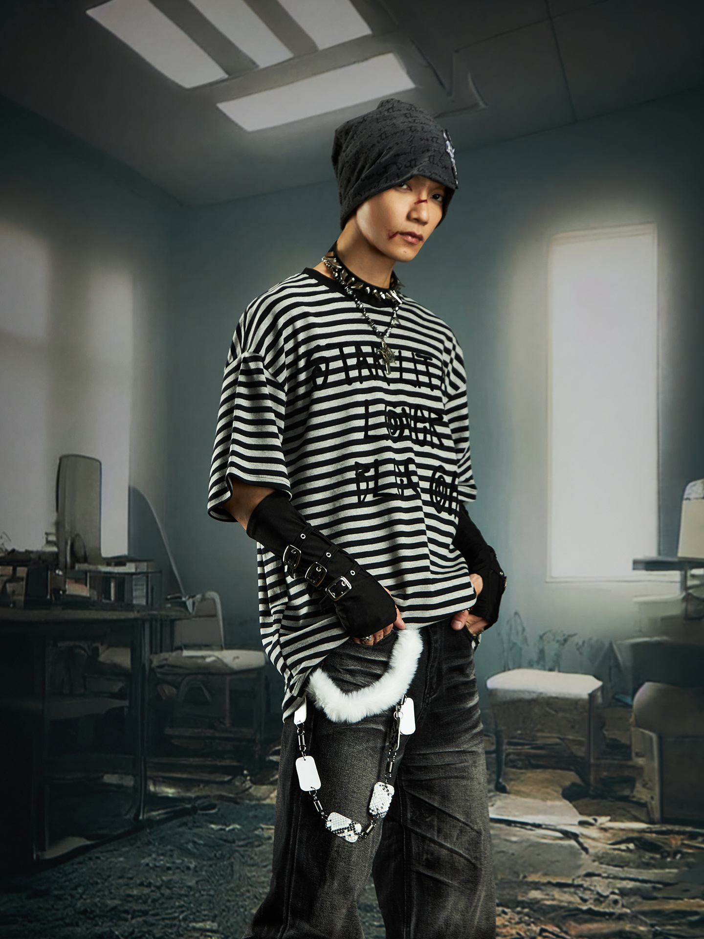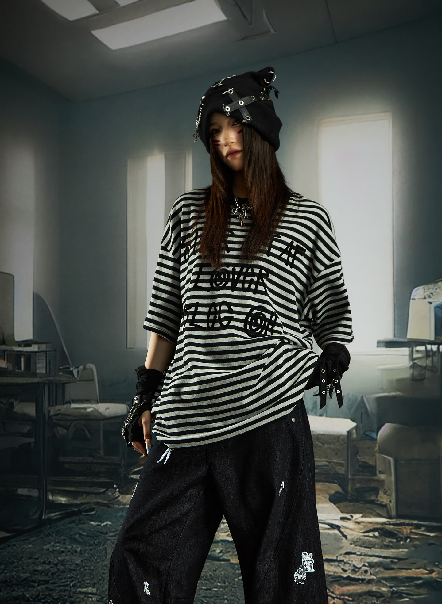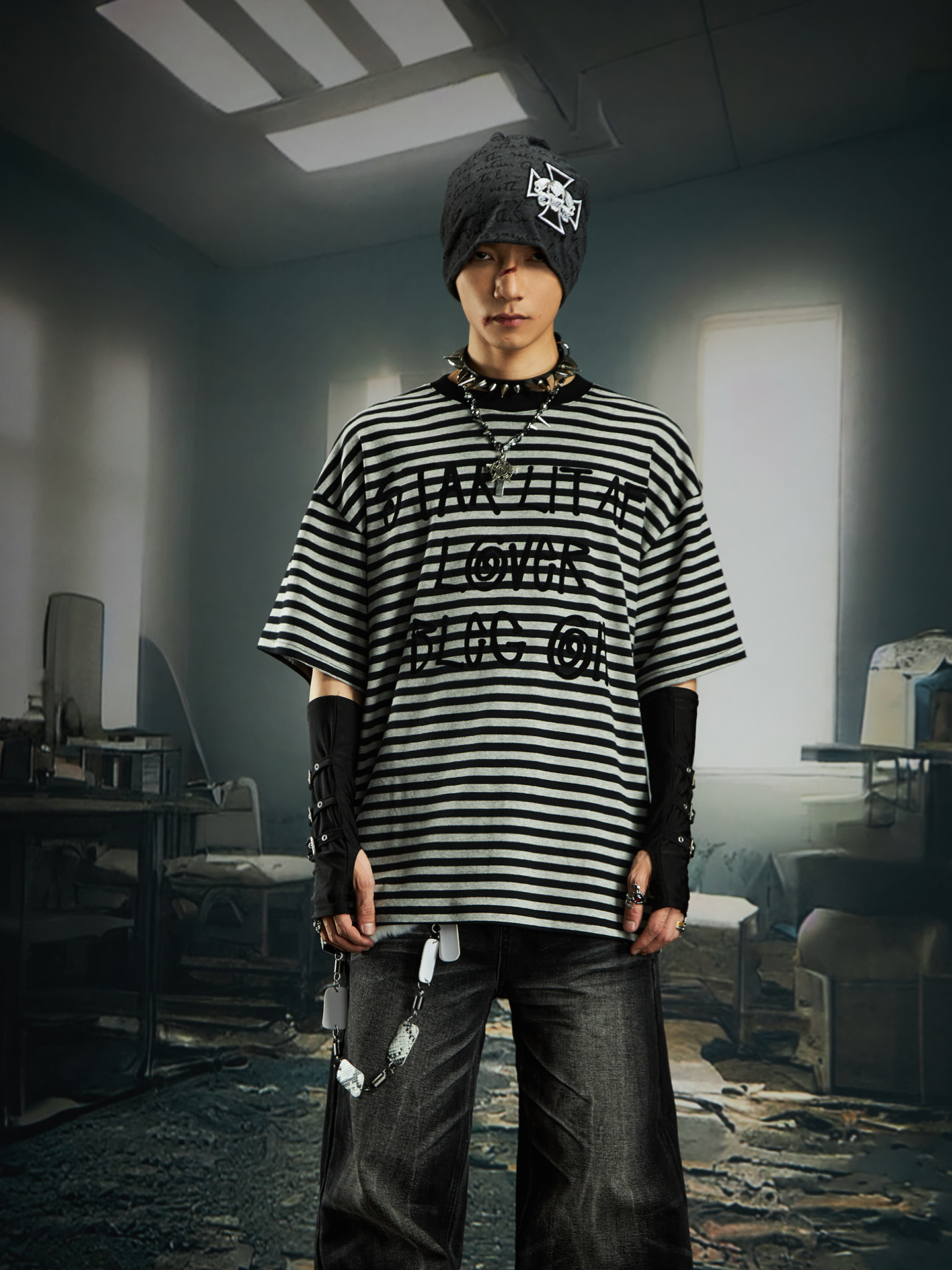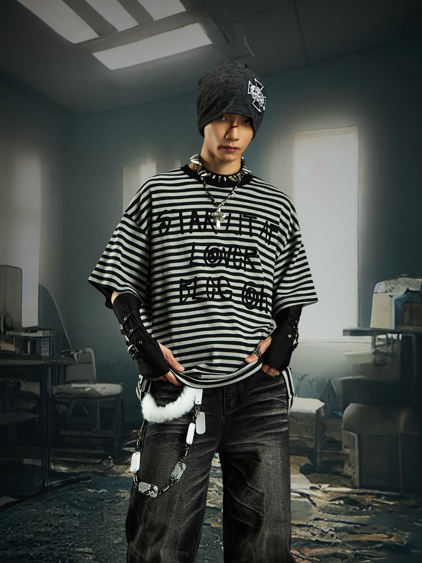 Stripe Letter Print Short Sleeve T-Shirt WN20552