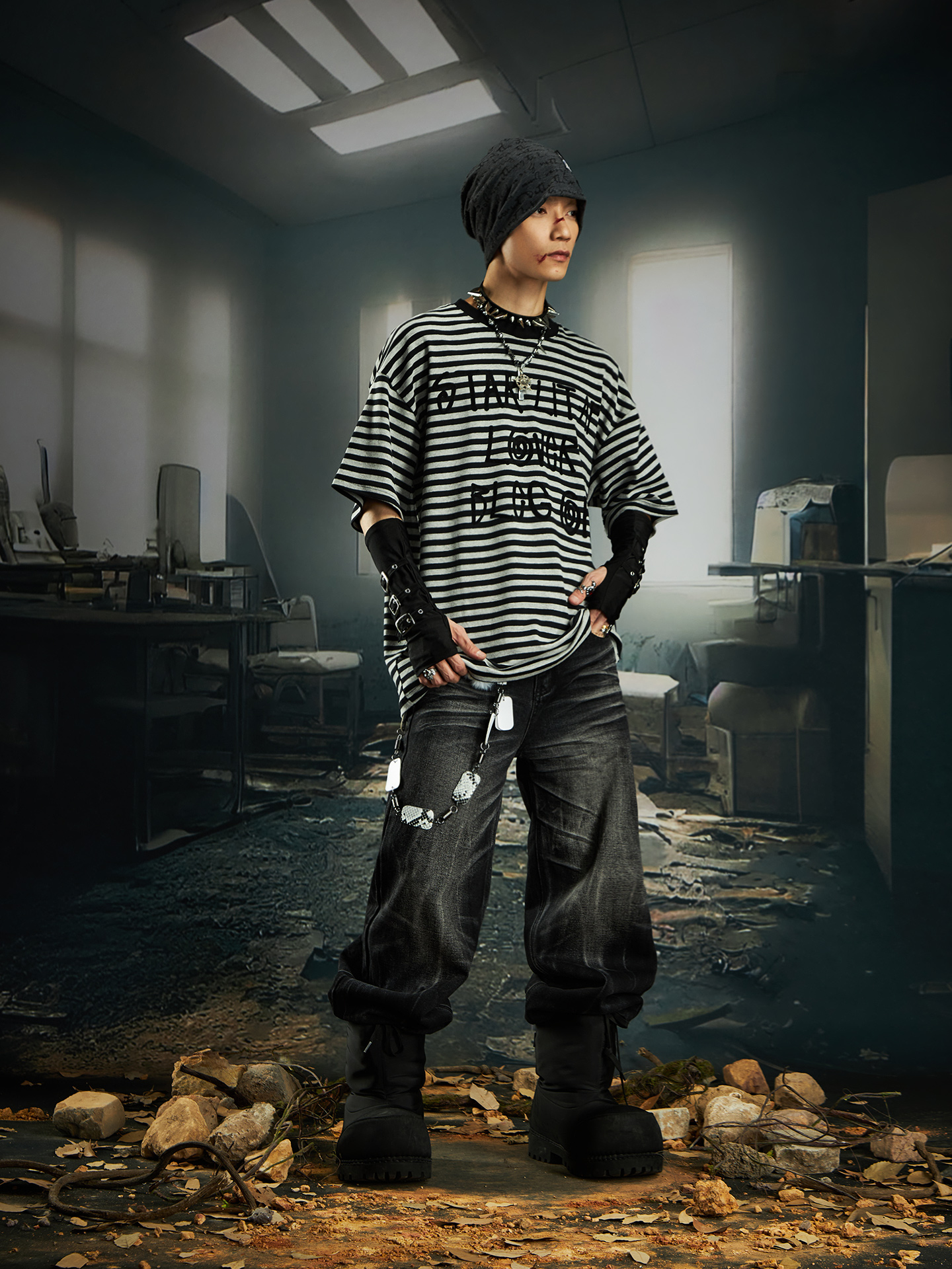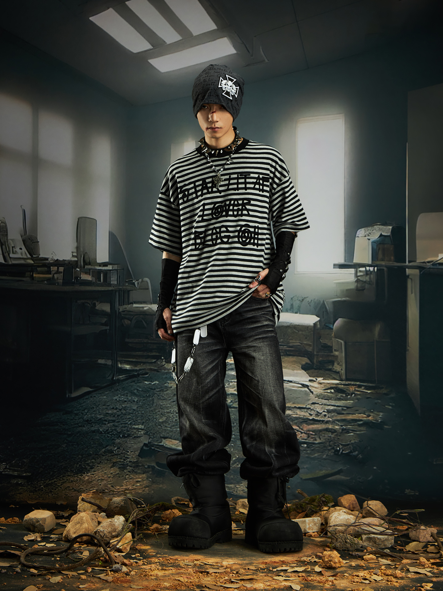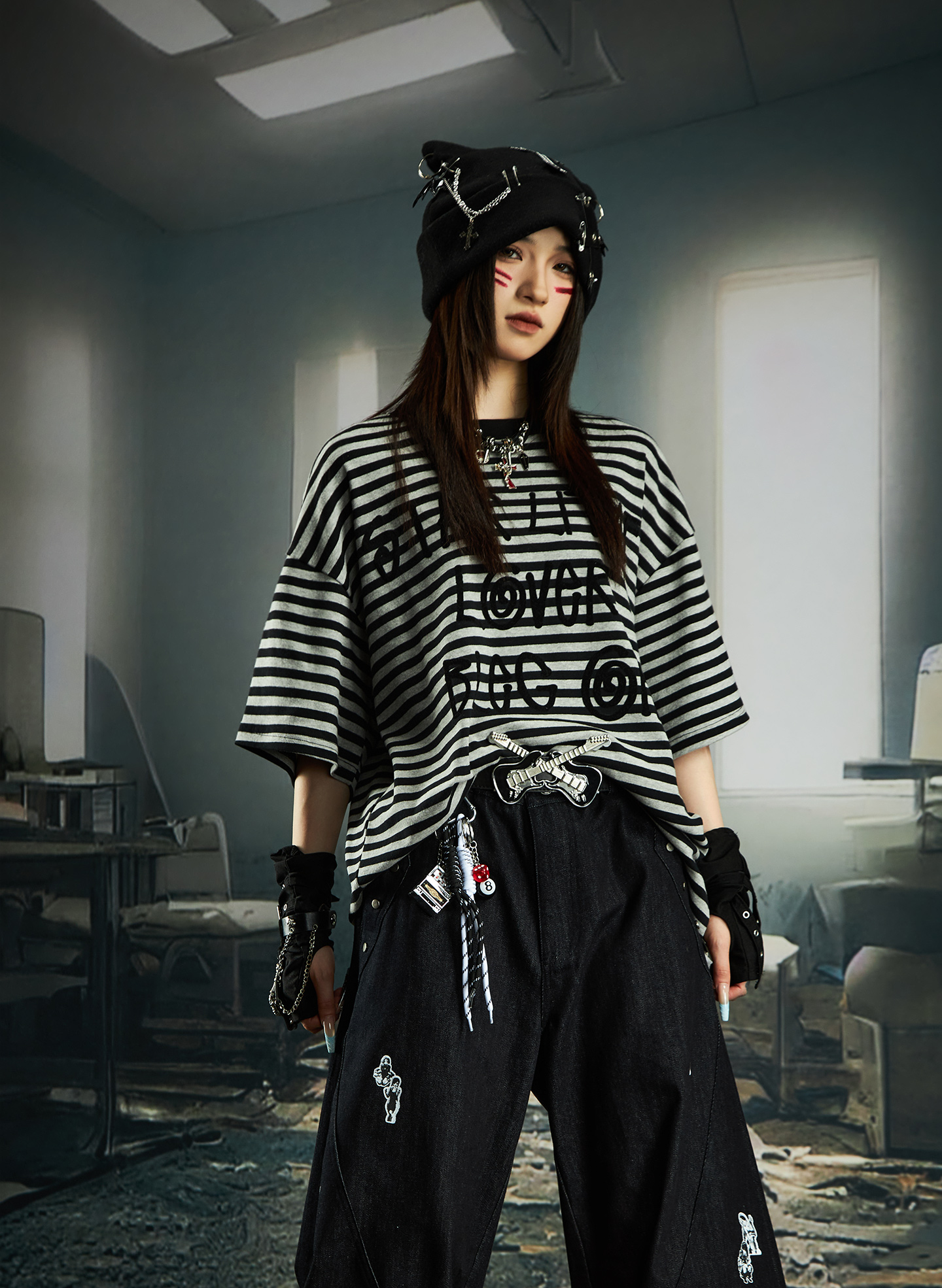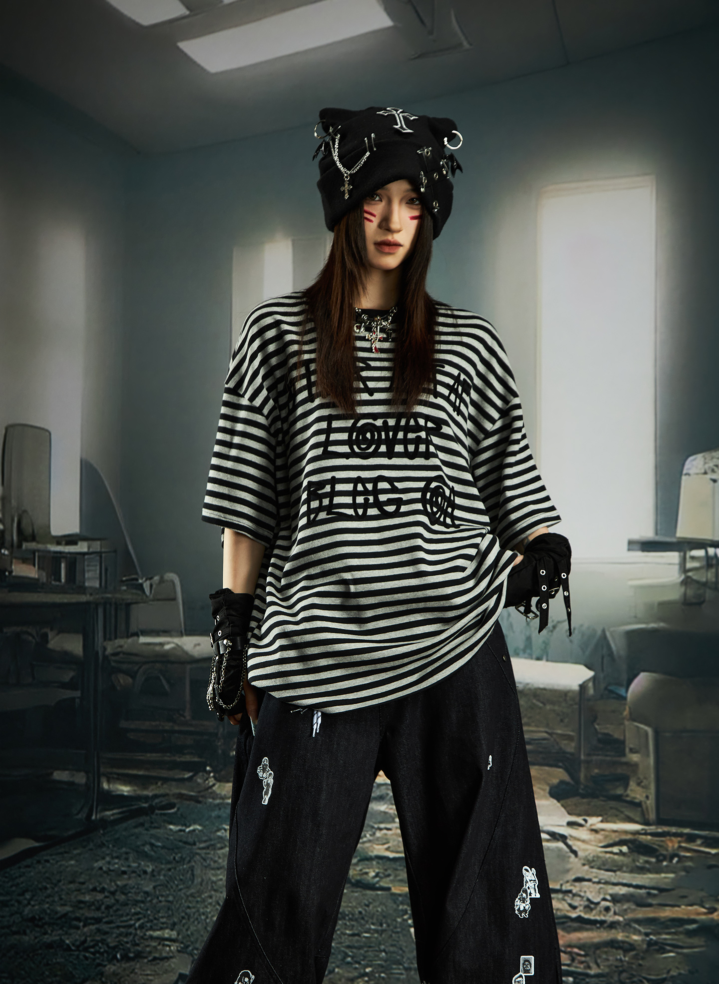 Stripe Letter Print Short Sleeve T-Shirt WN20552