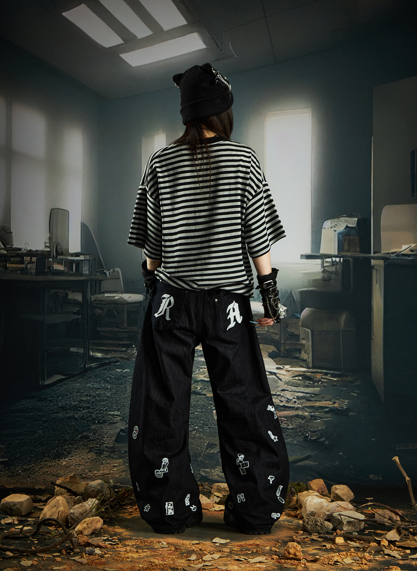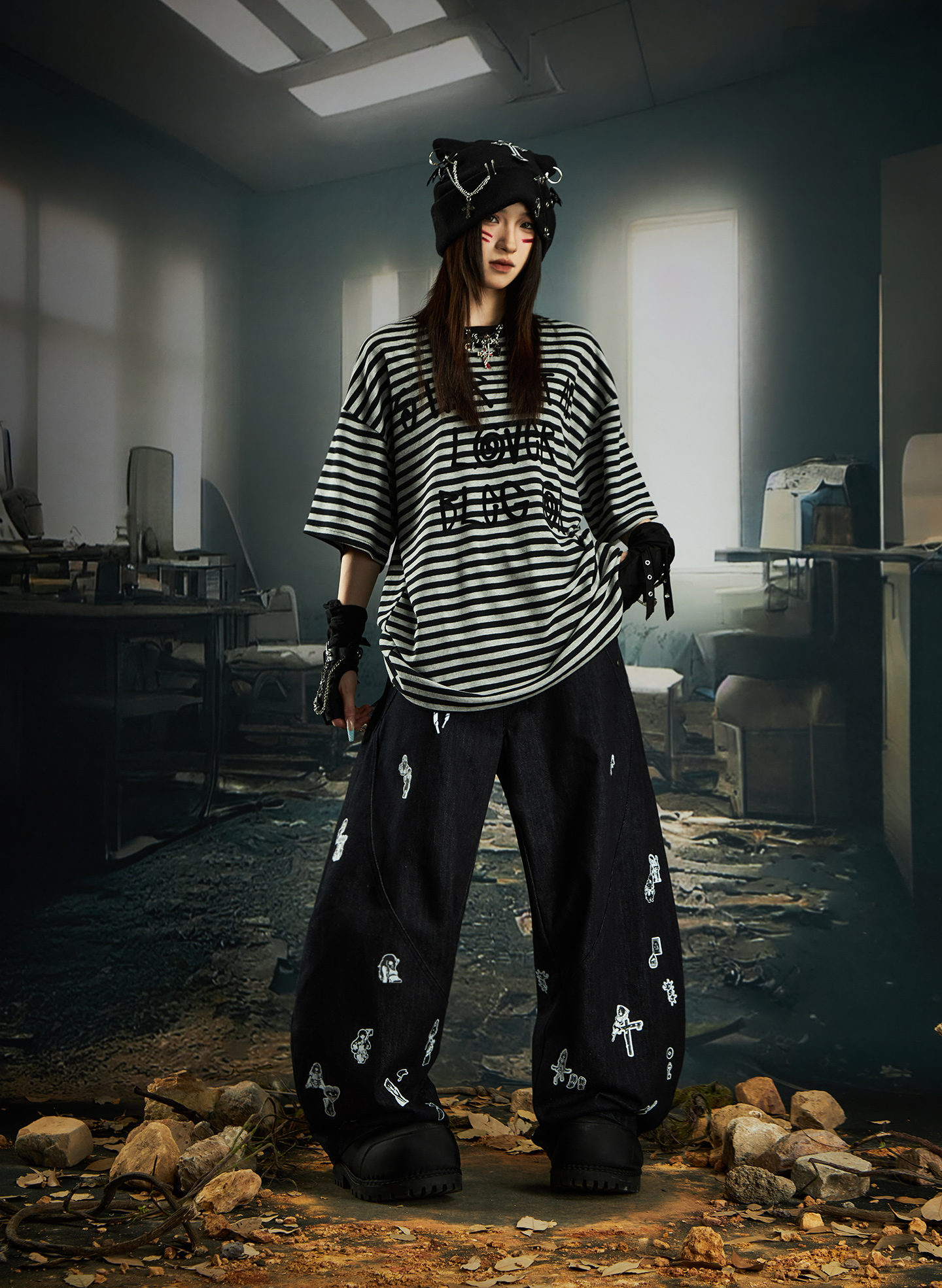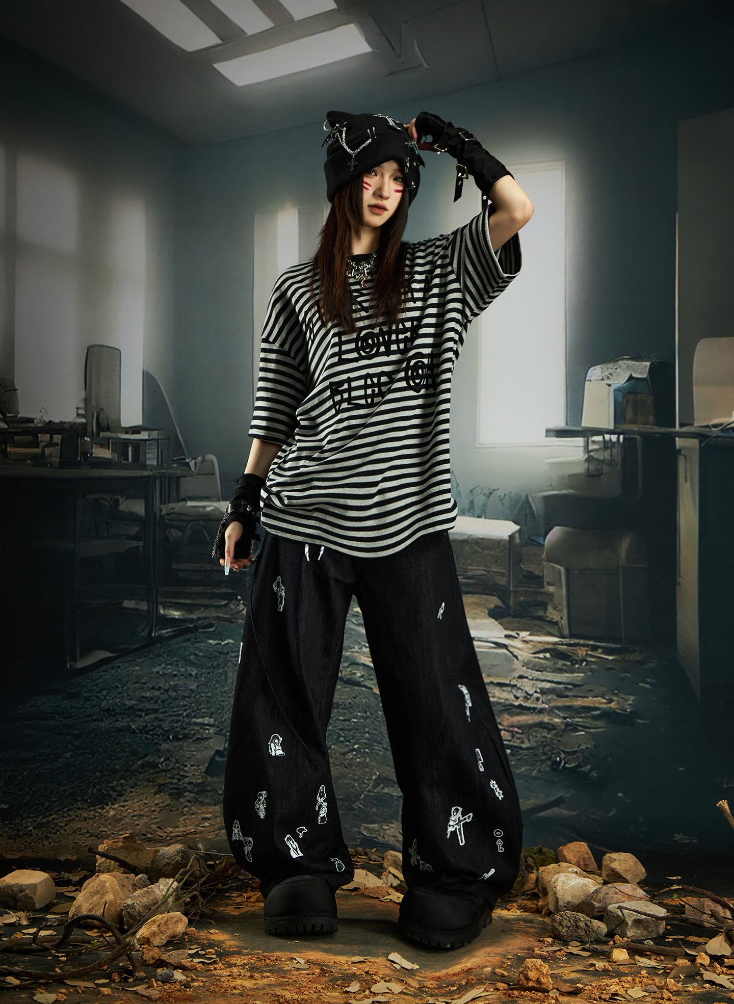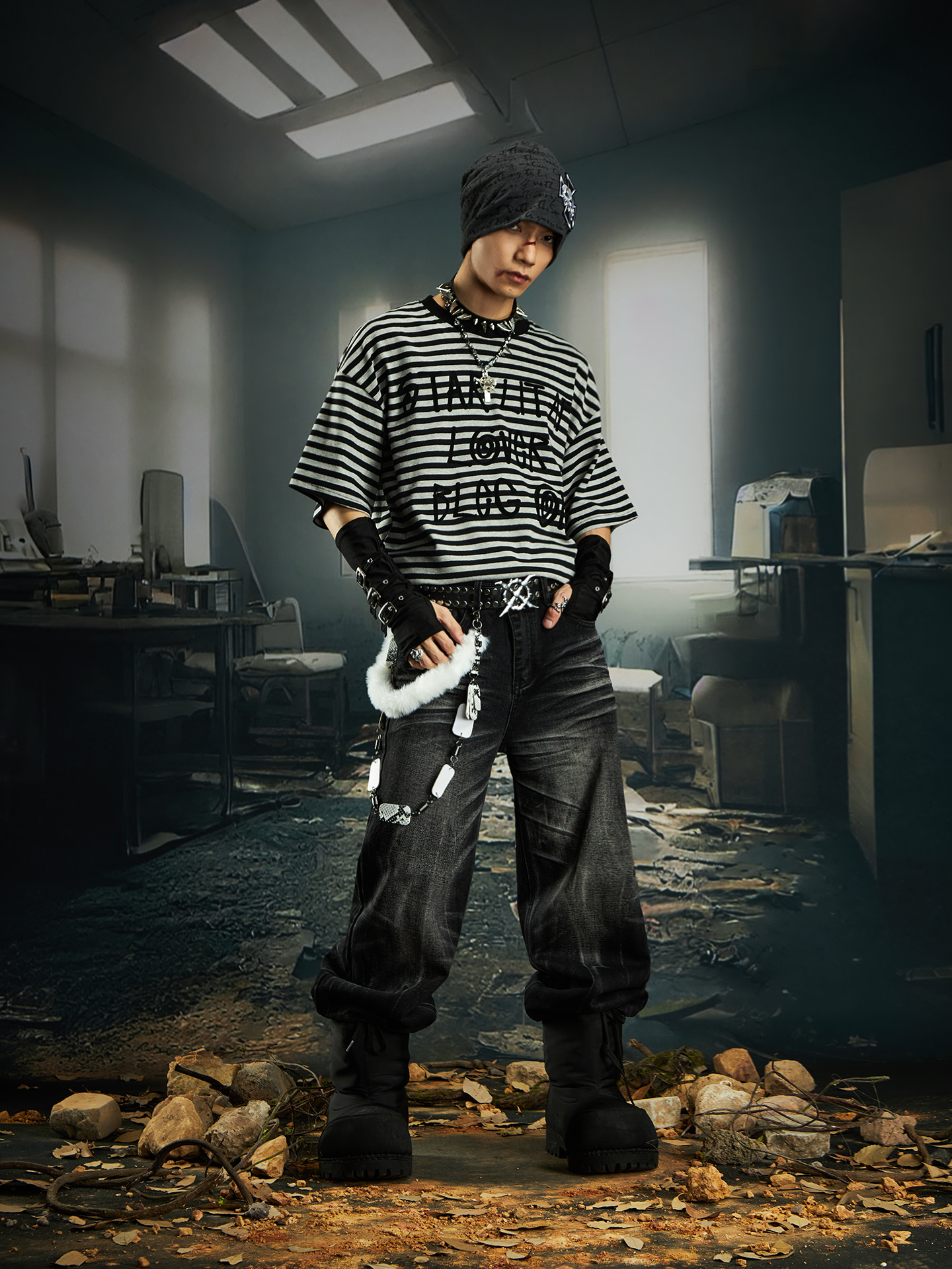 Stripe Letter Print Short Sleeve T-Shirt WN20552