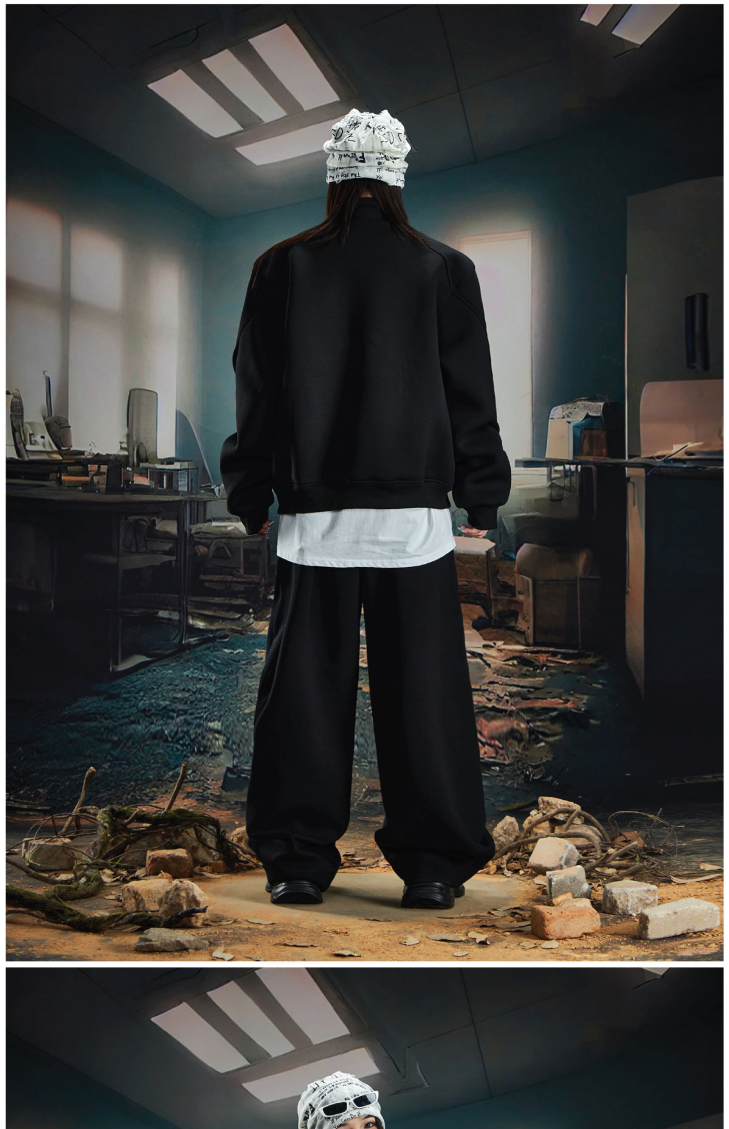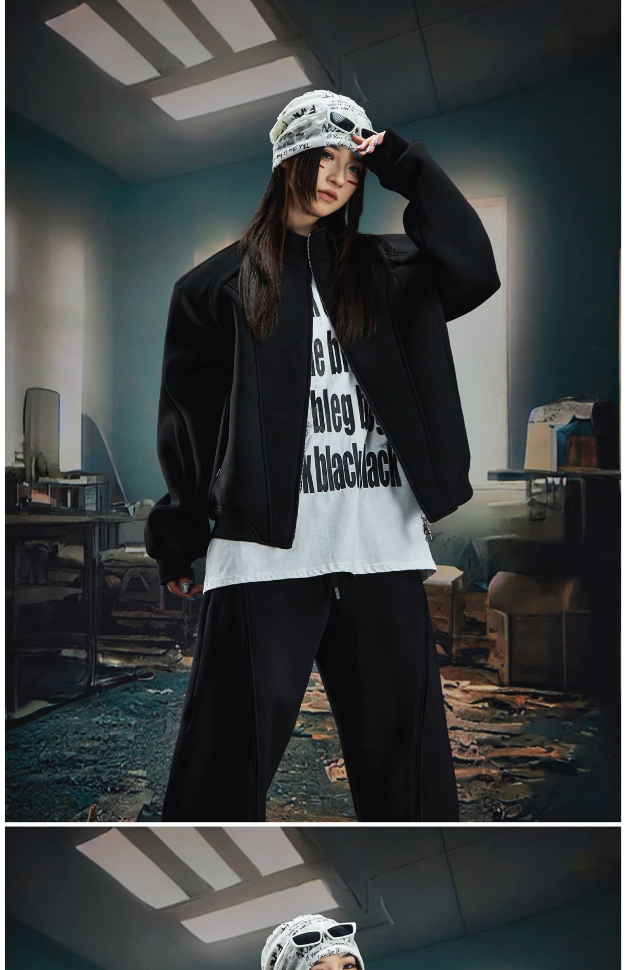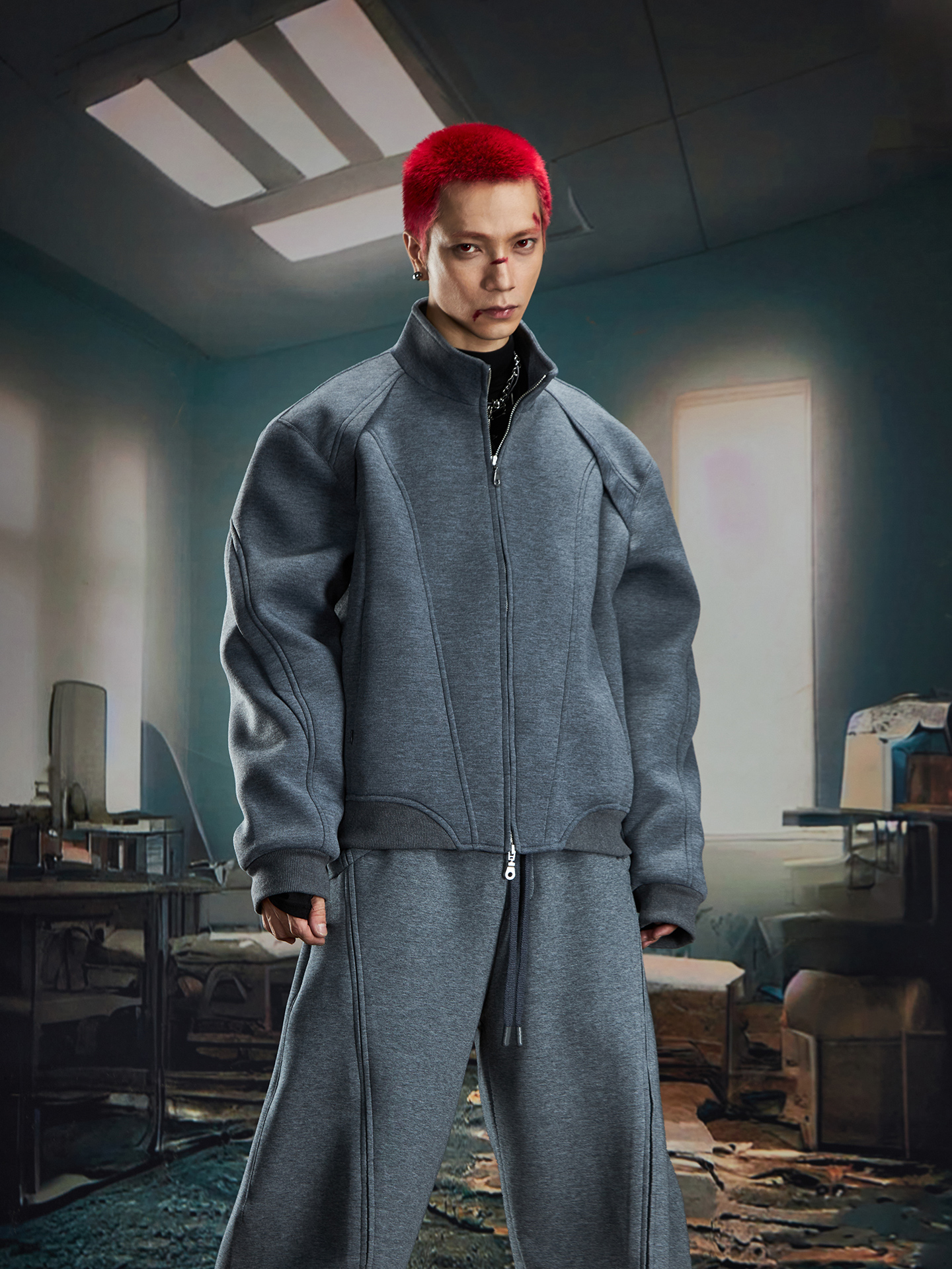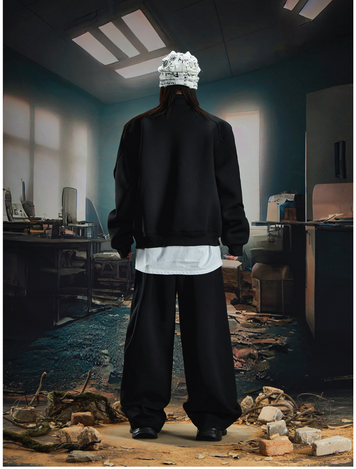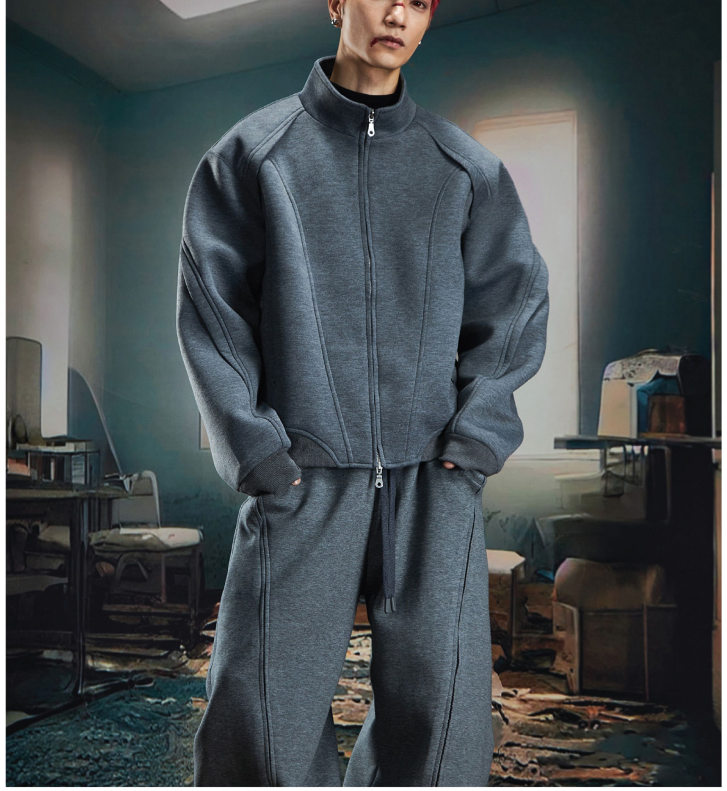Deconstructed Oversize Zipper Stand Neck Jacket & Wide Leg Pants Setup WN20586