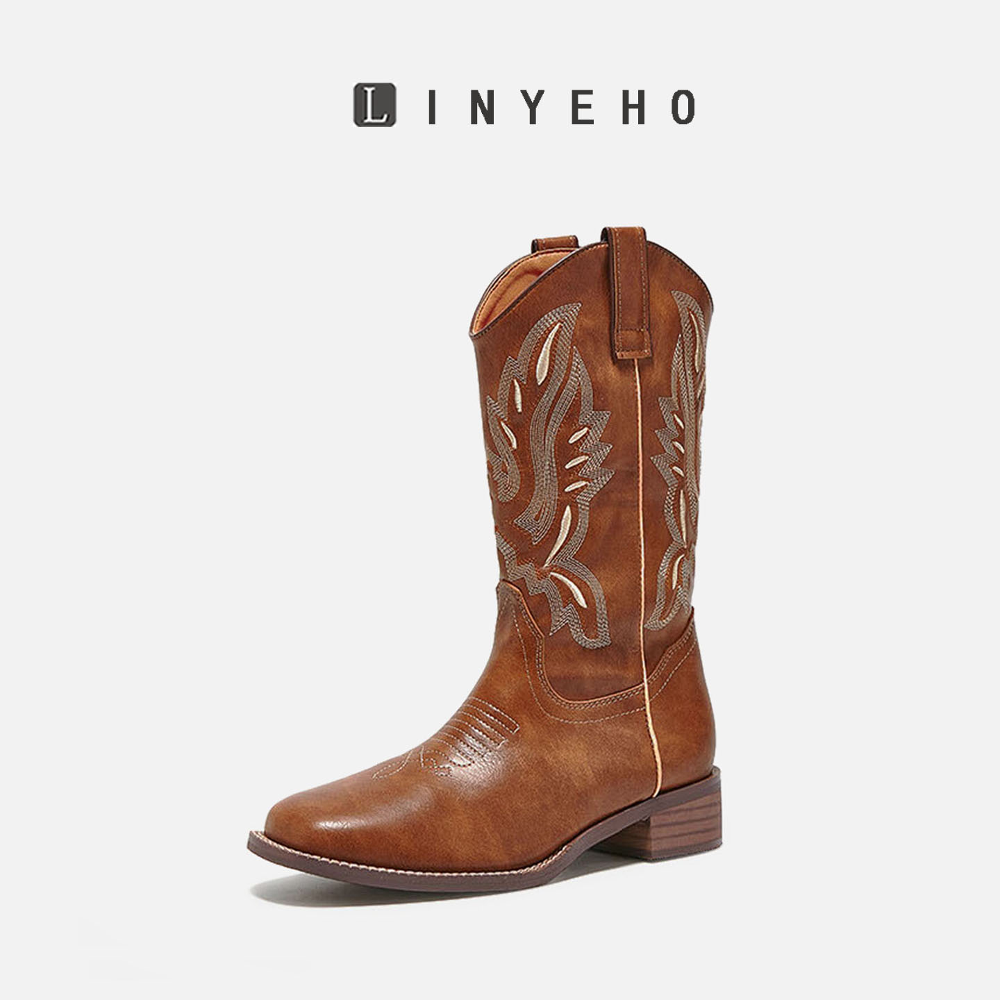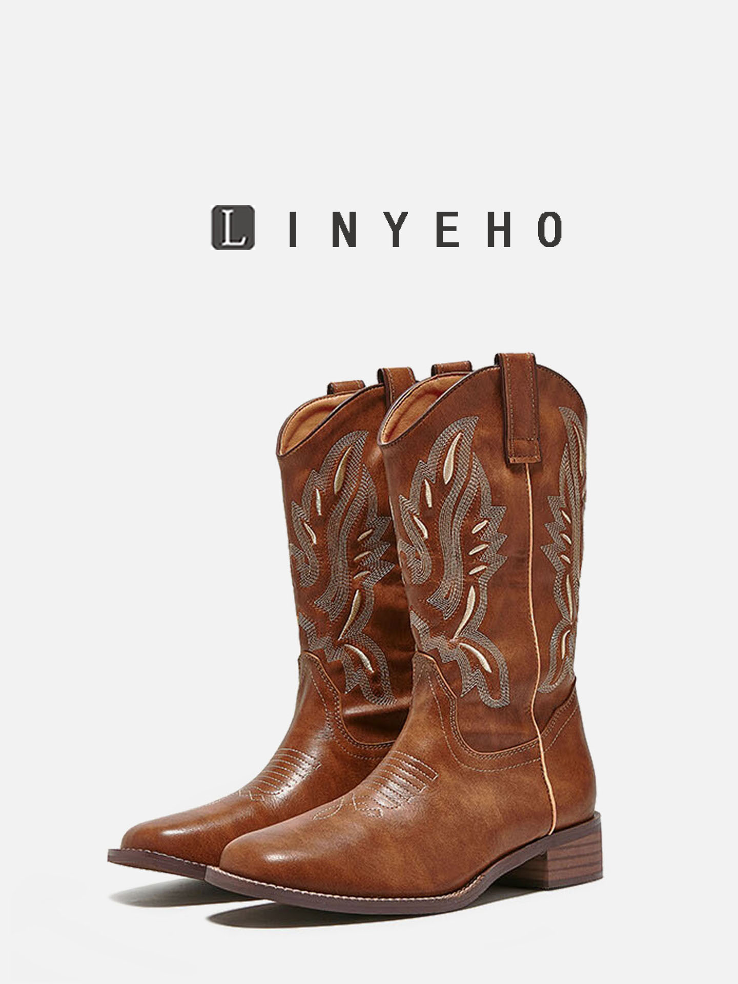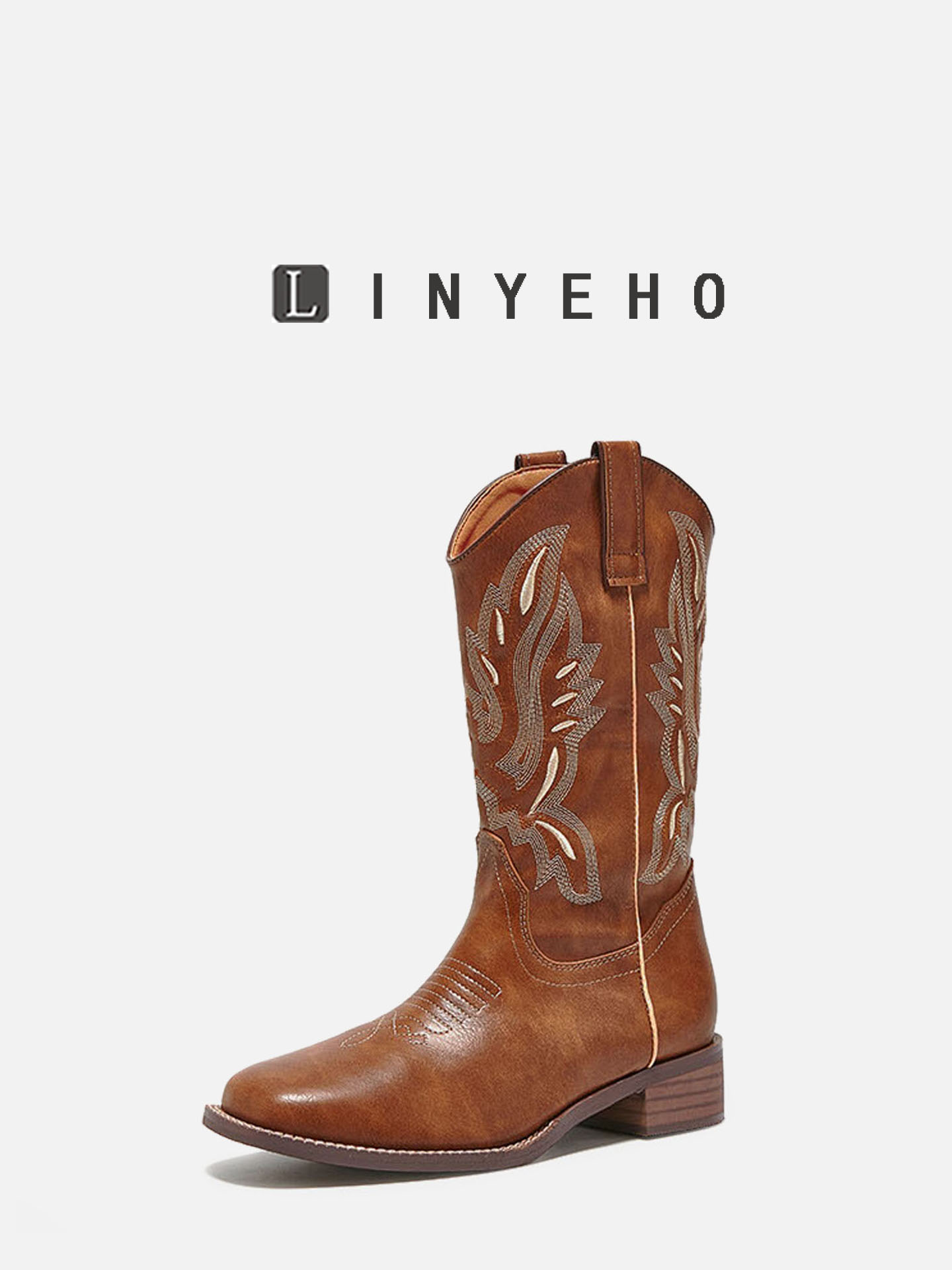 Embroidery Square-Toe Mid-Calf Boots WN20608