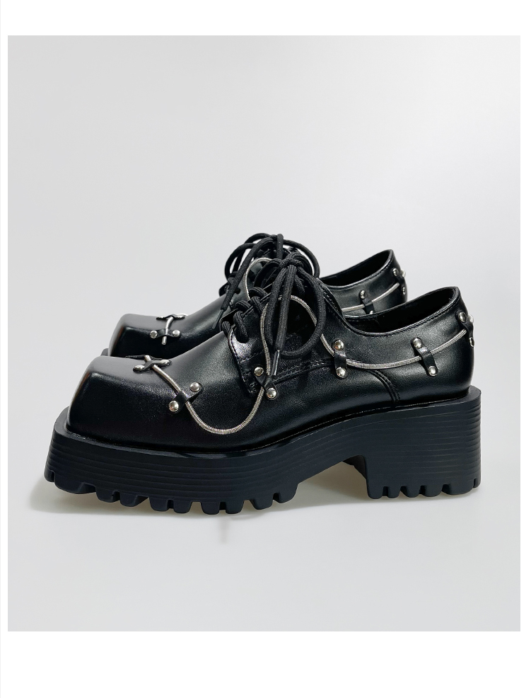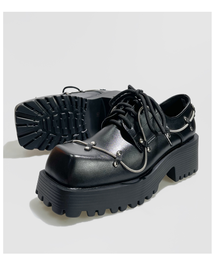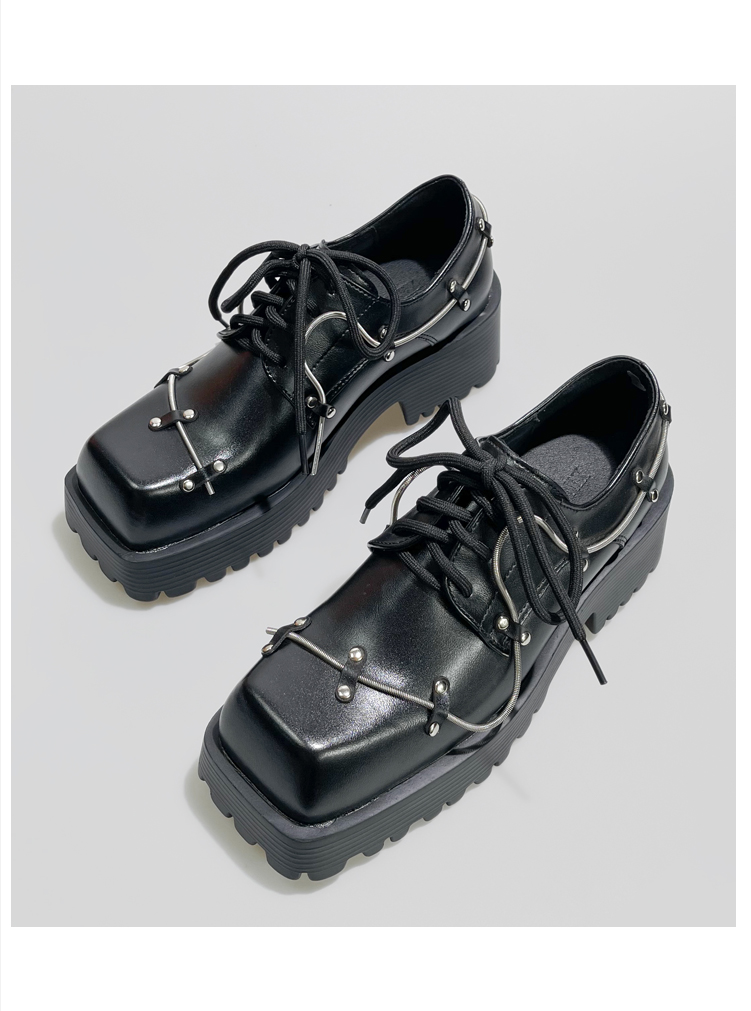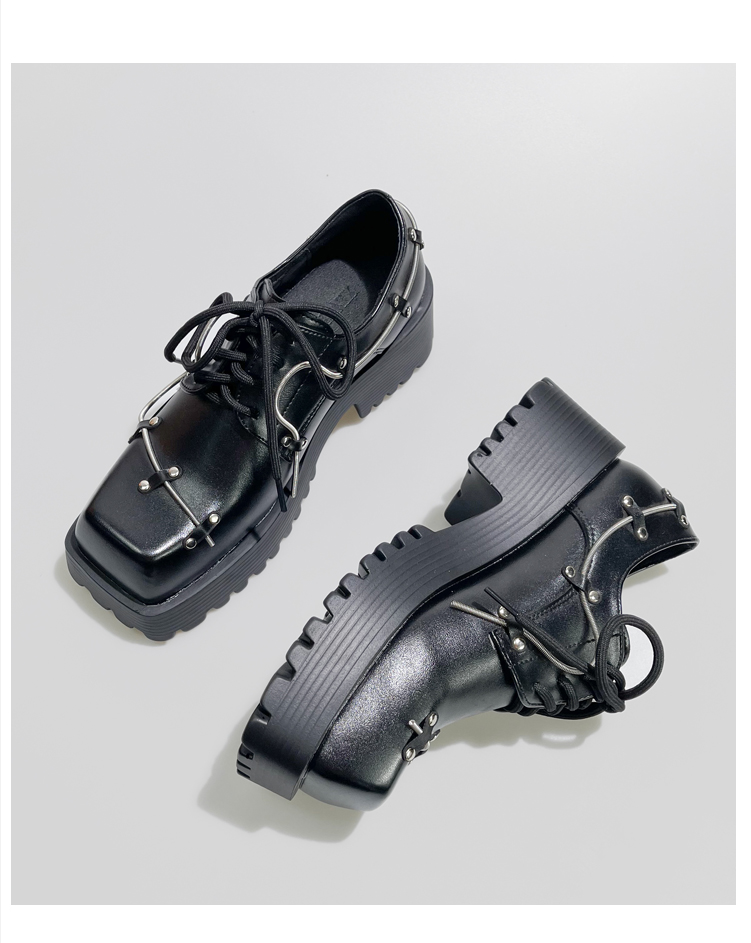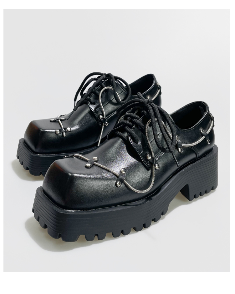 Square Toe Chunky Heel Leather Platform Derby Shoes WN20612