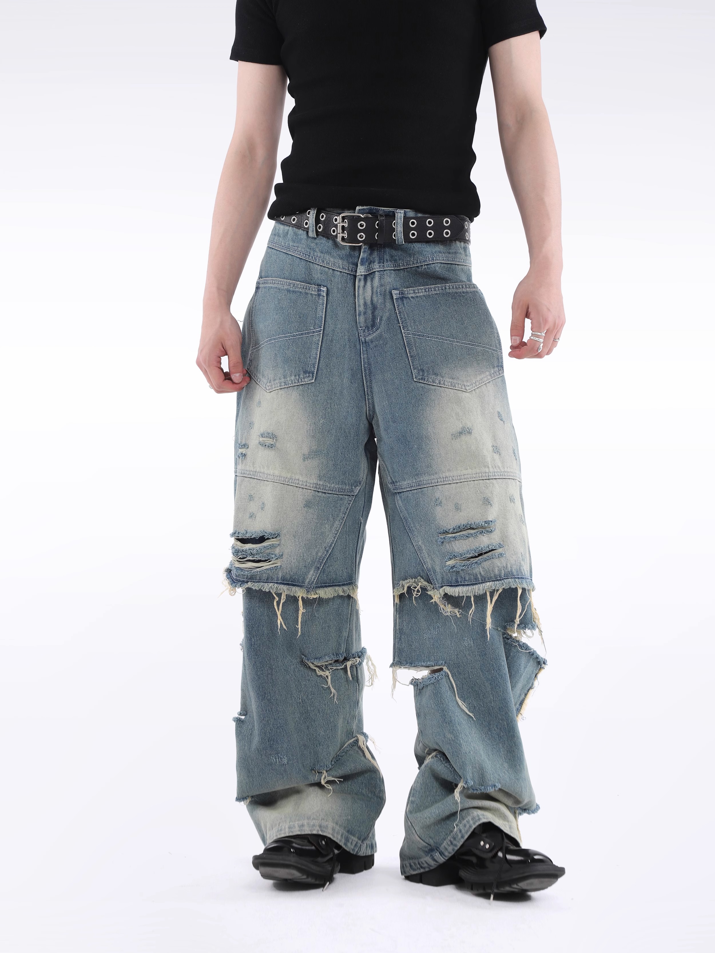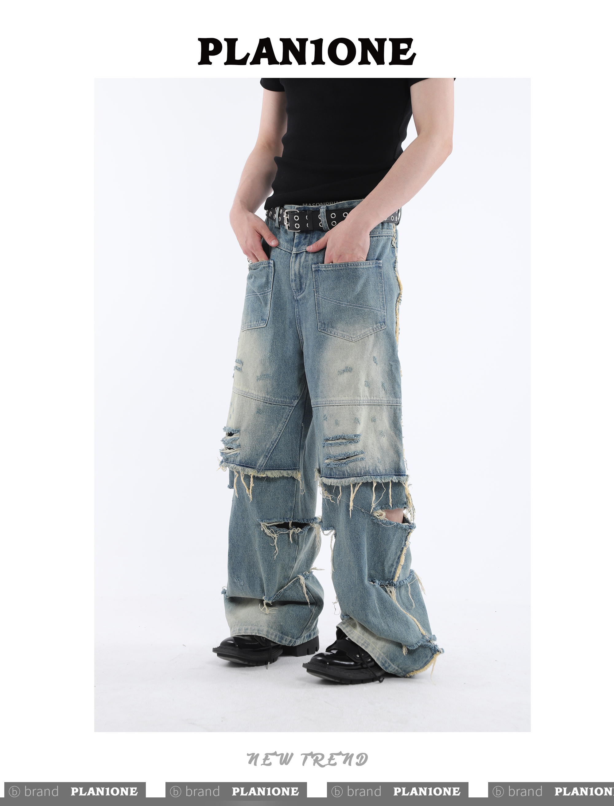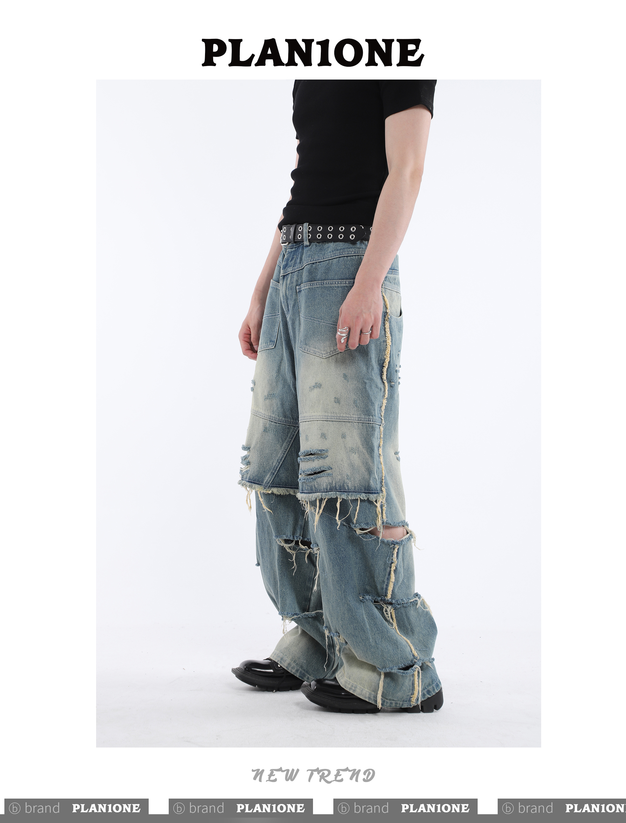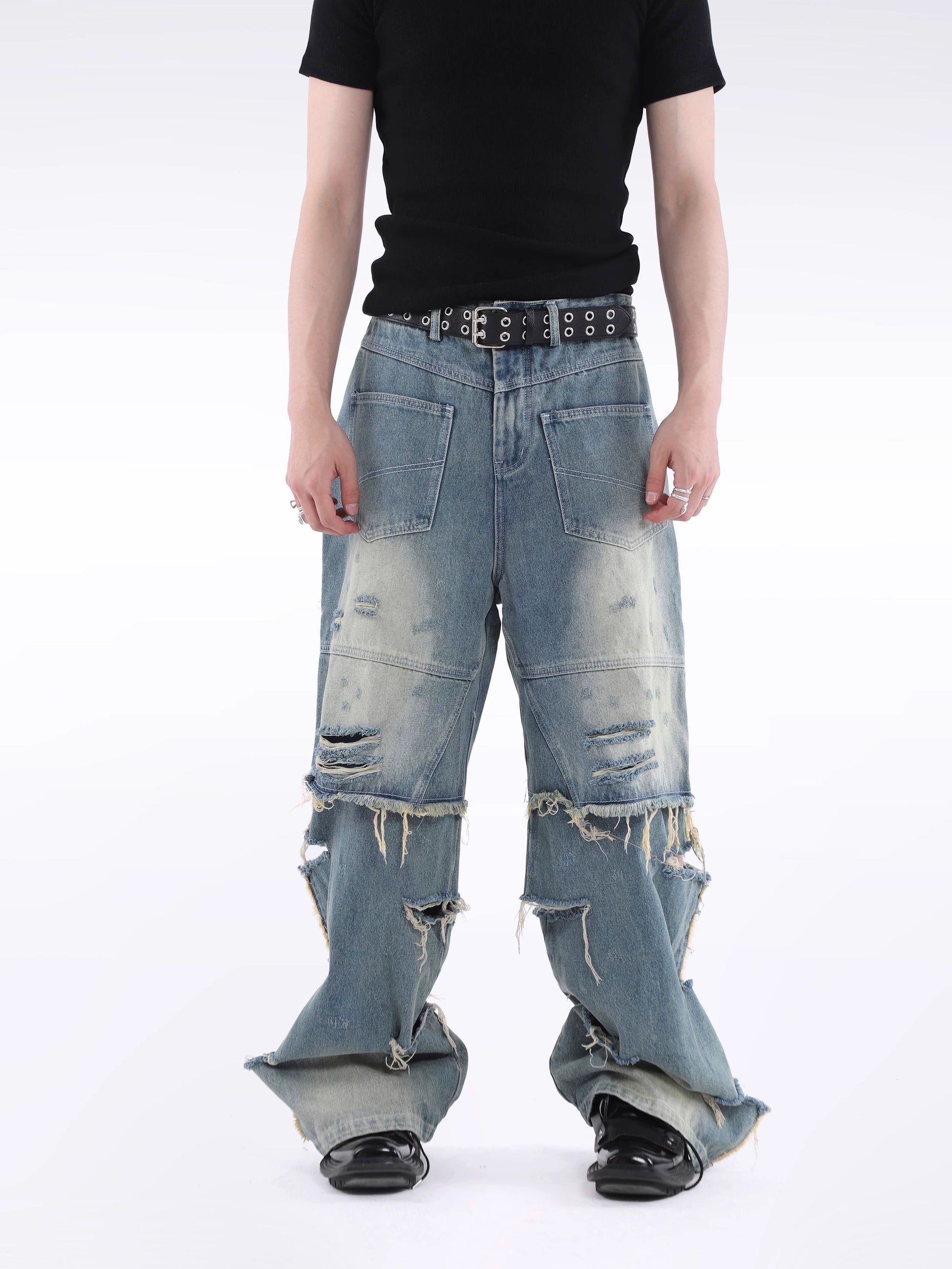 Fringe Damage Wide Leg Denim Jeans WN20638