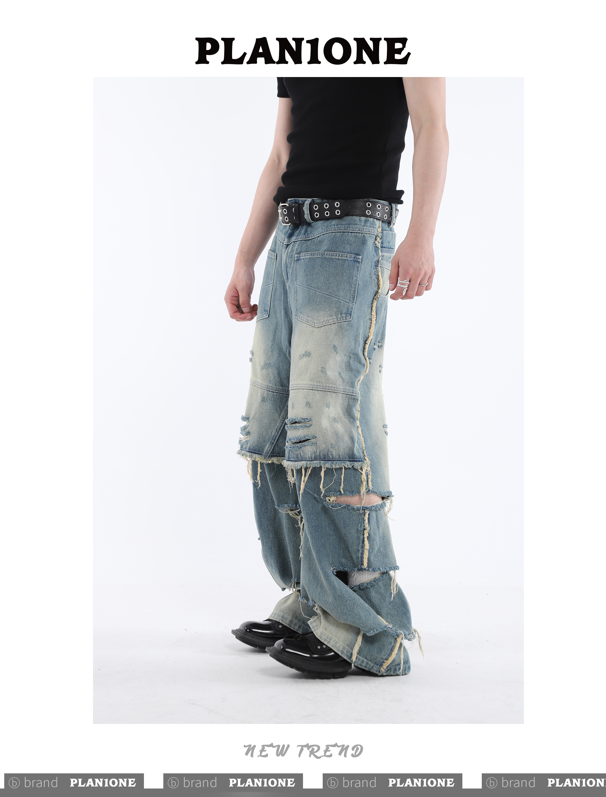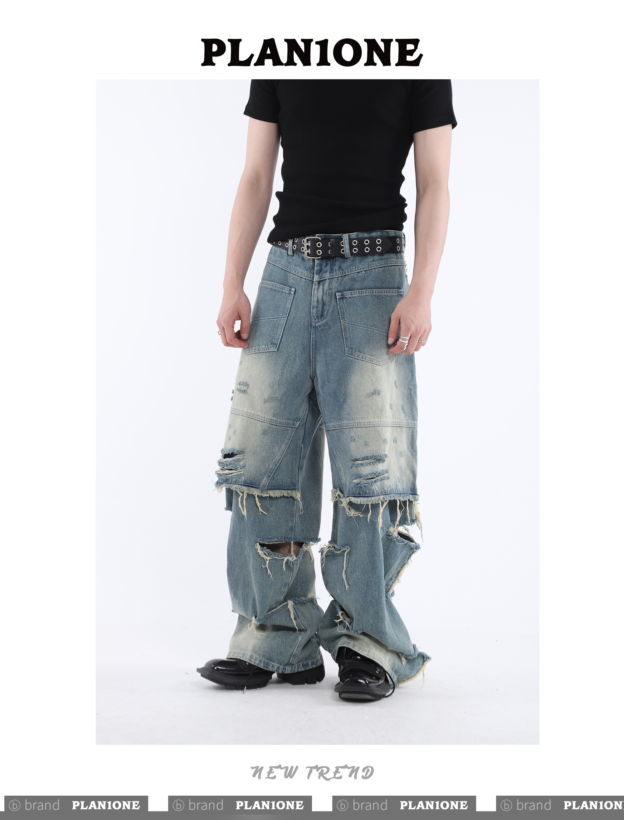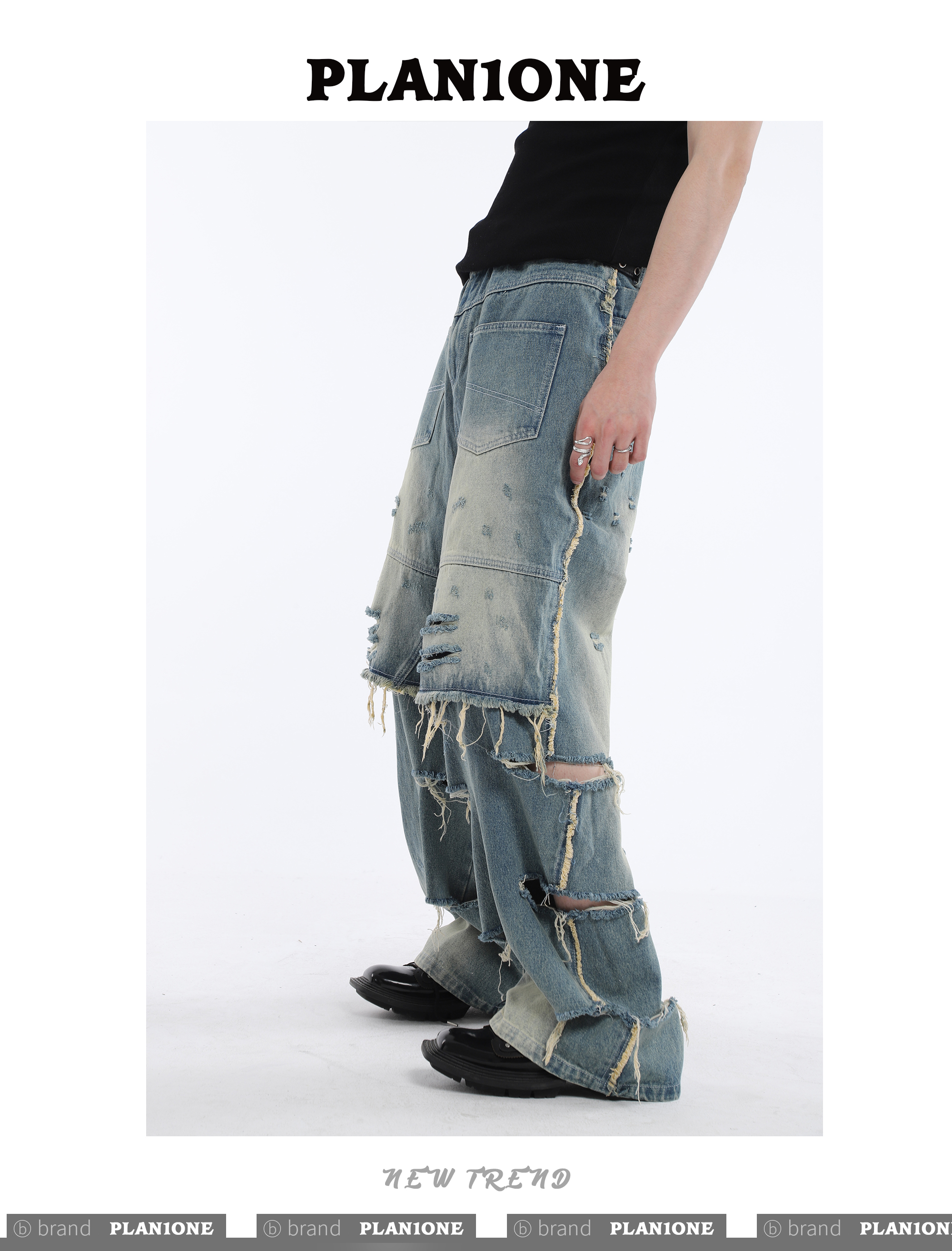 Fringe Damage Wide Leg Denim Jeans WN20638