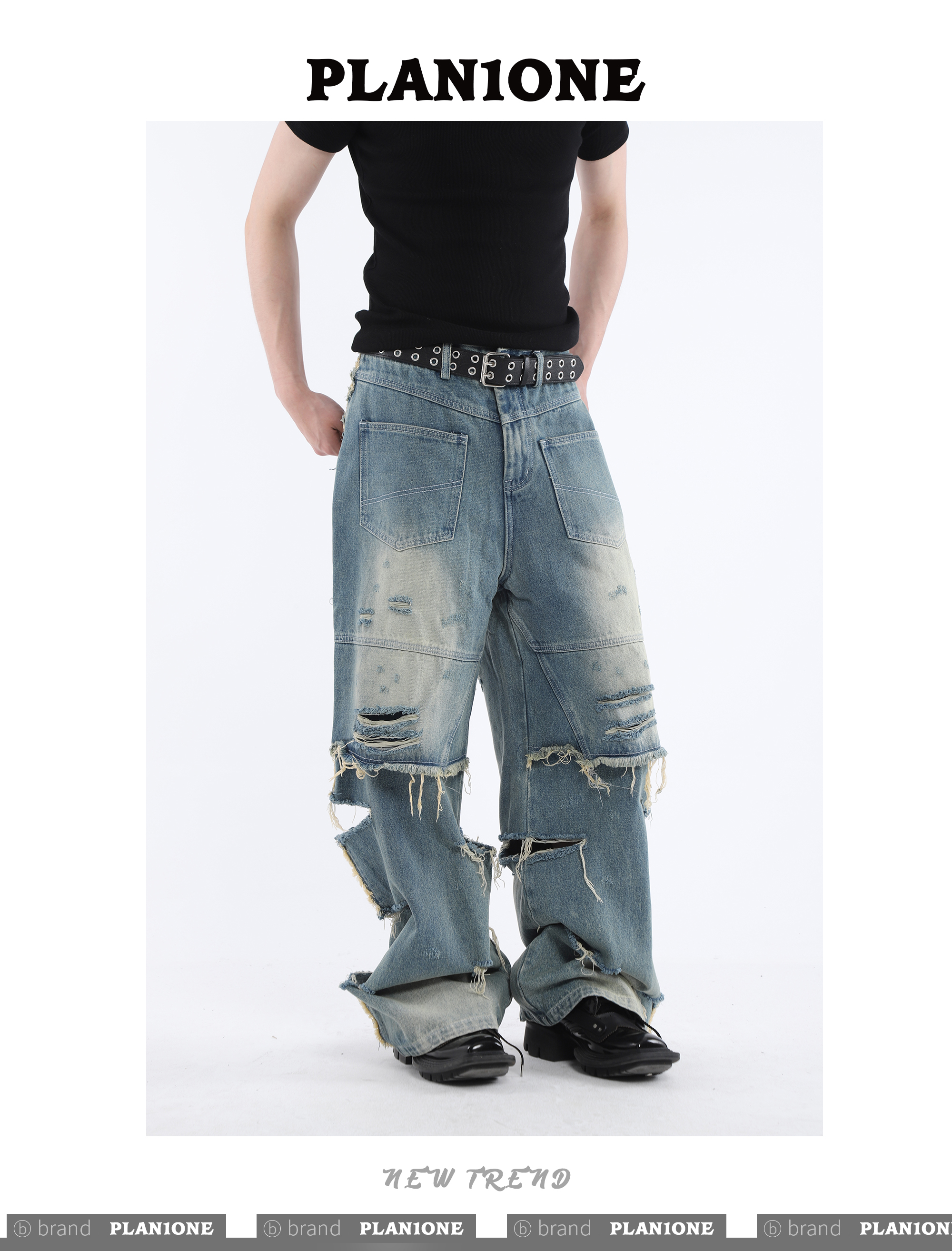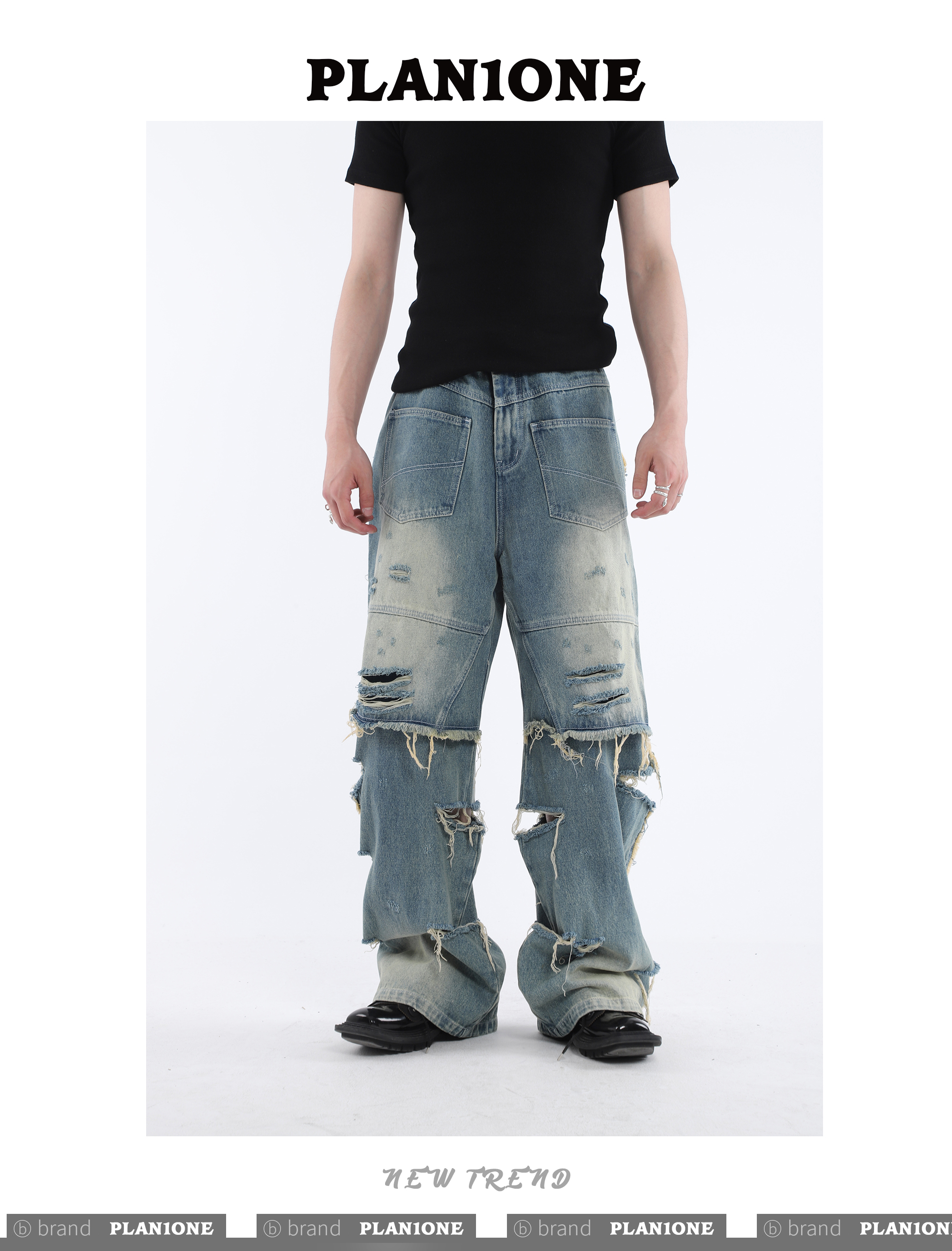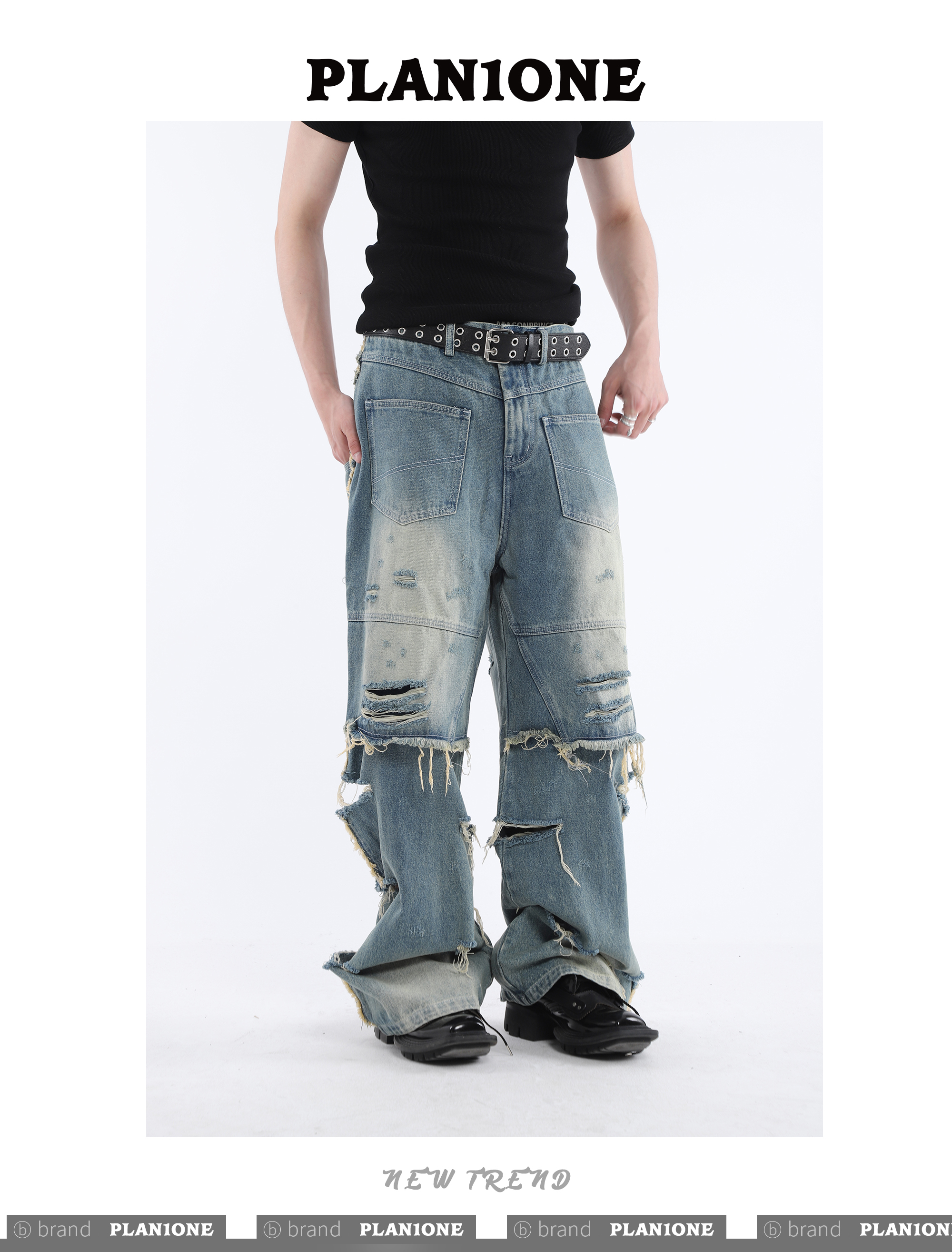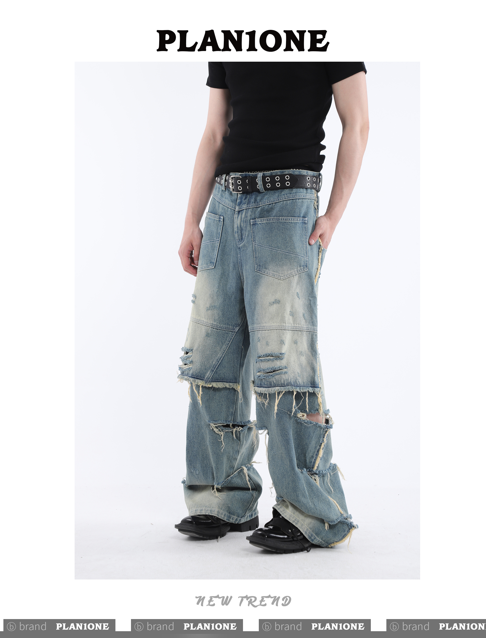 Fringe Damage Wide Leg Denim Jeans WN20638