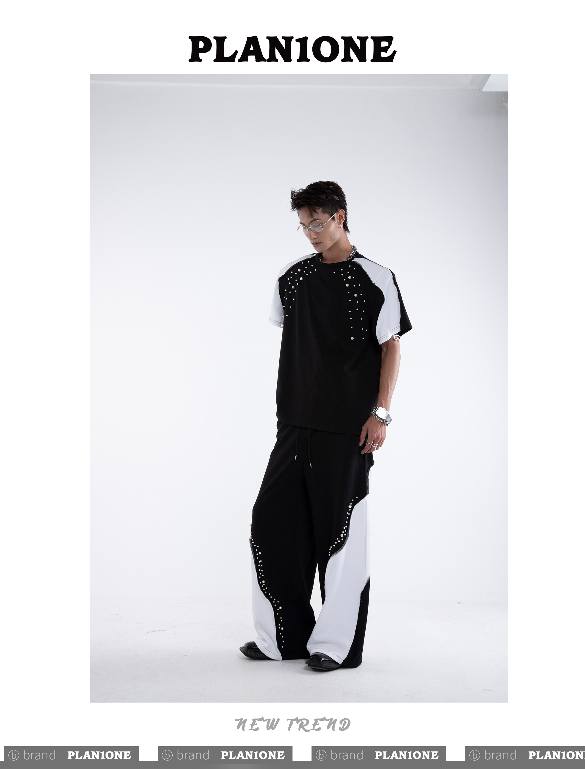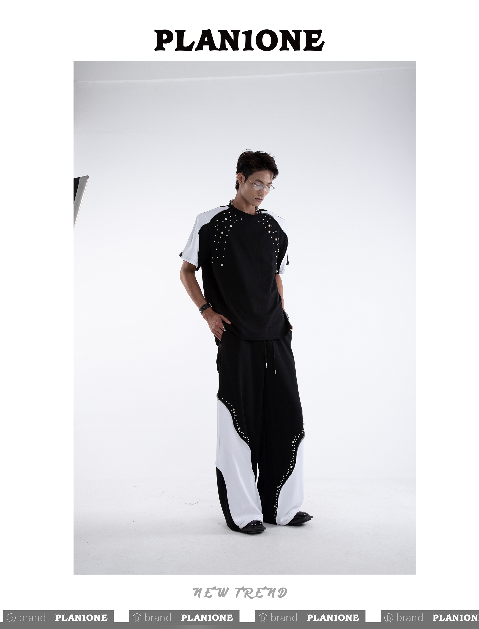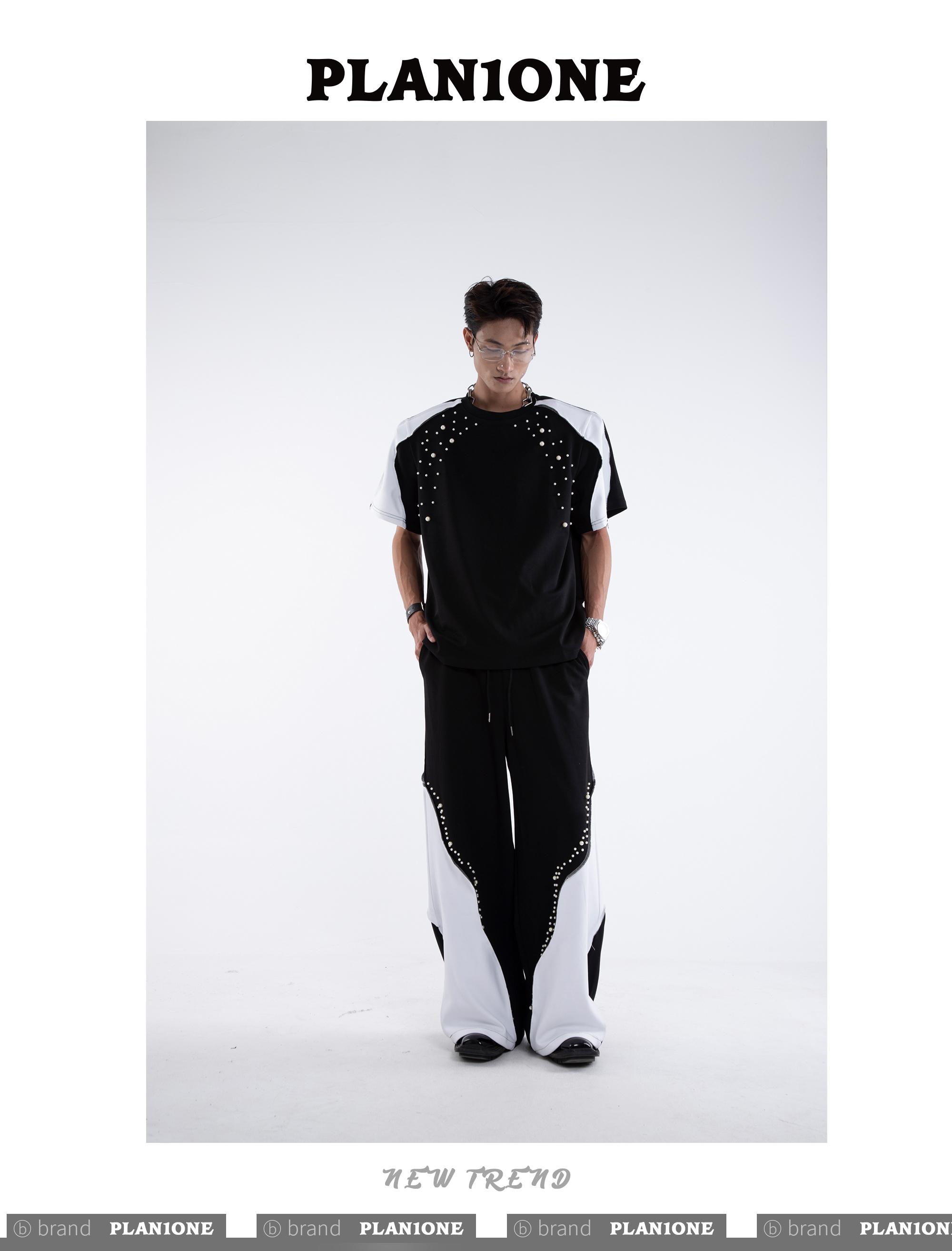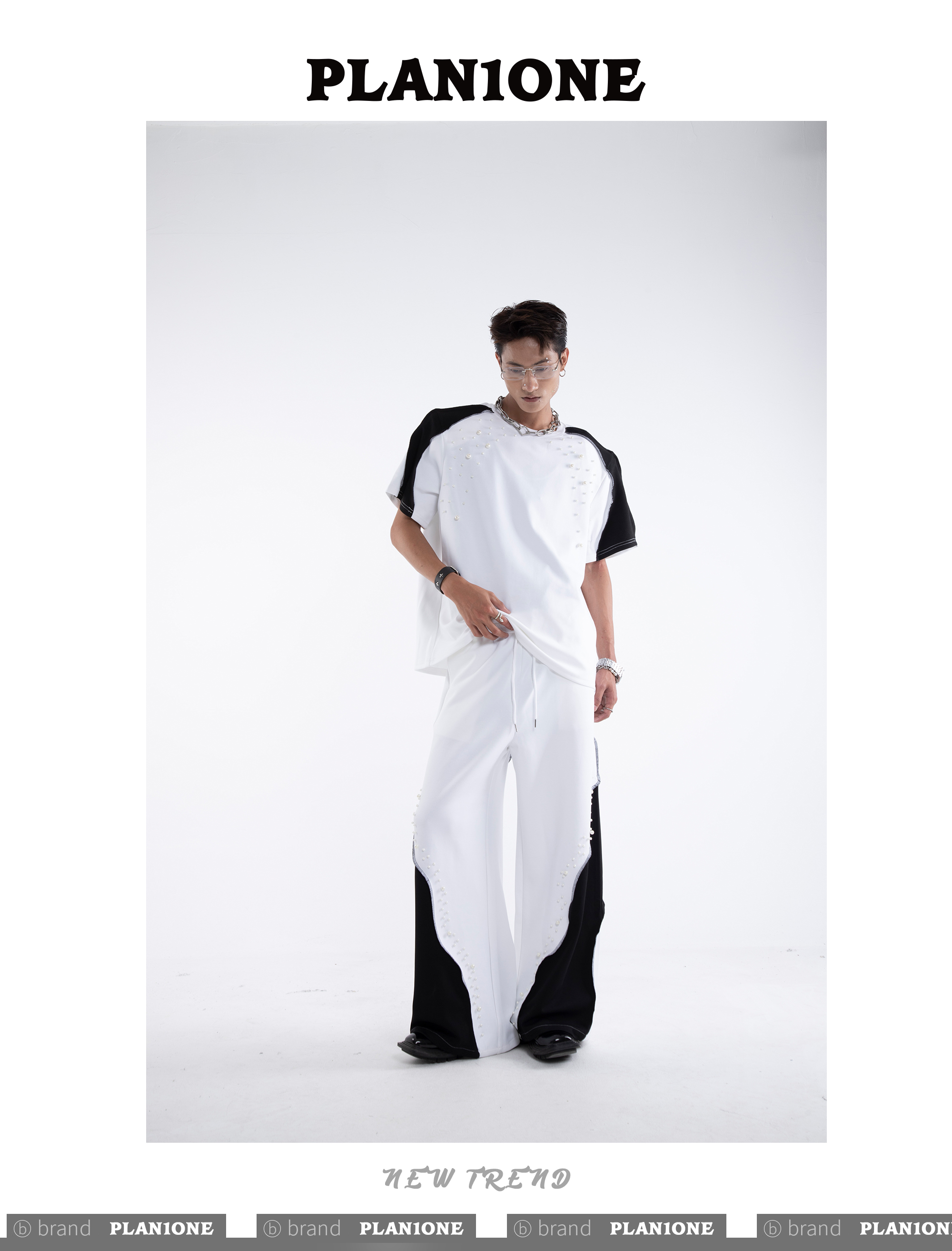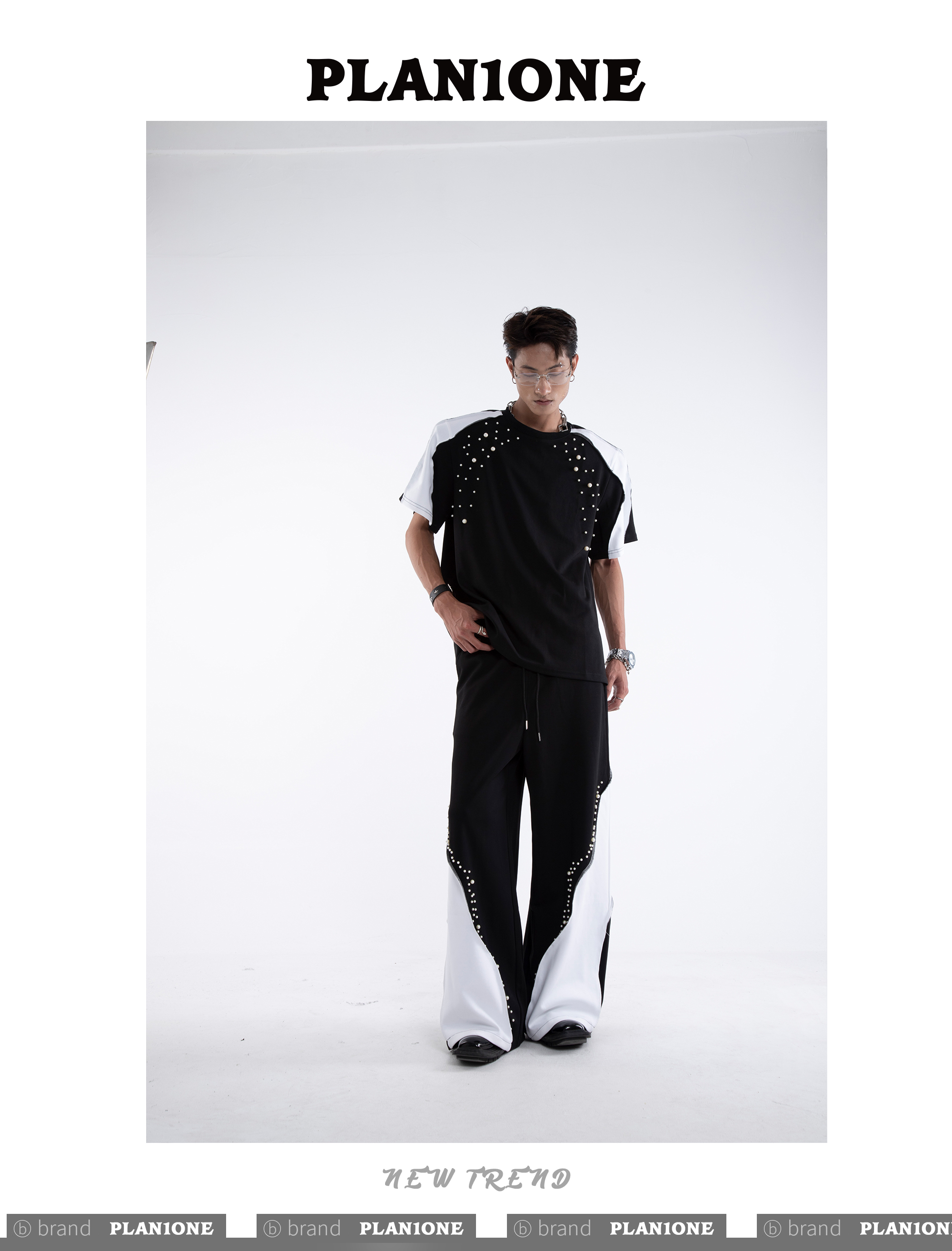 Beading Paint Shoulder-Pad Short Sleeve T-Shirt & Wide Leg Pants Setup WN20640