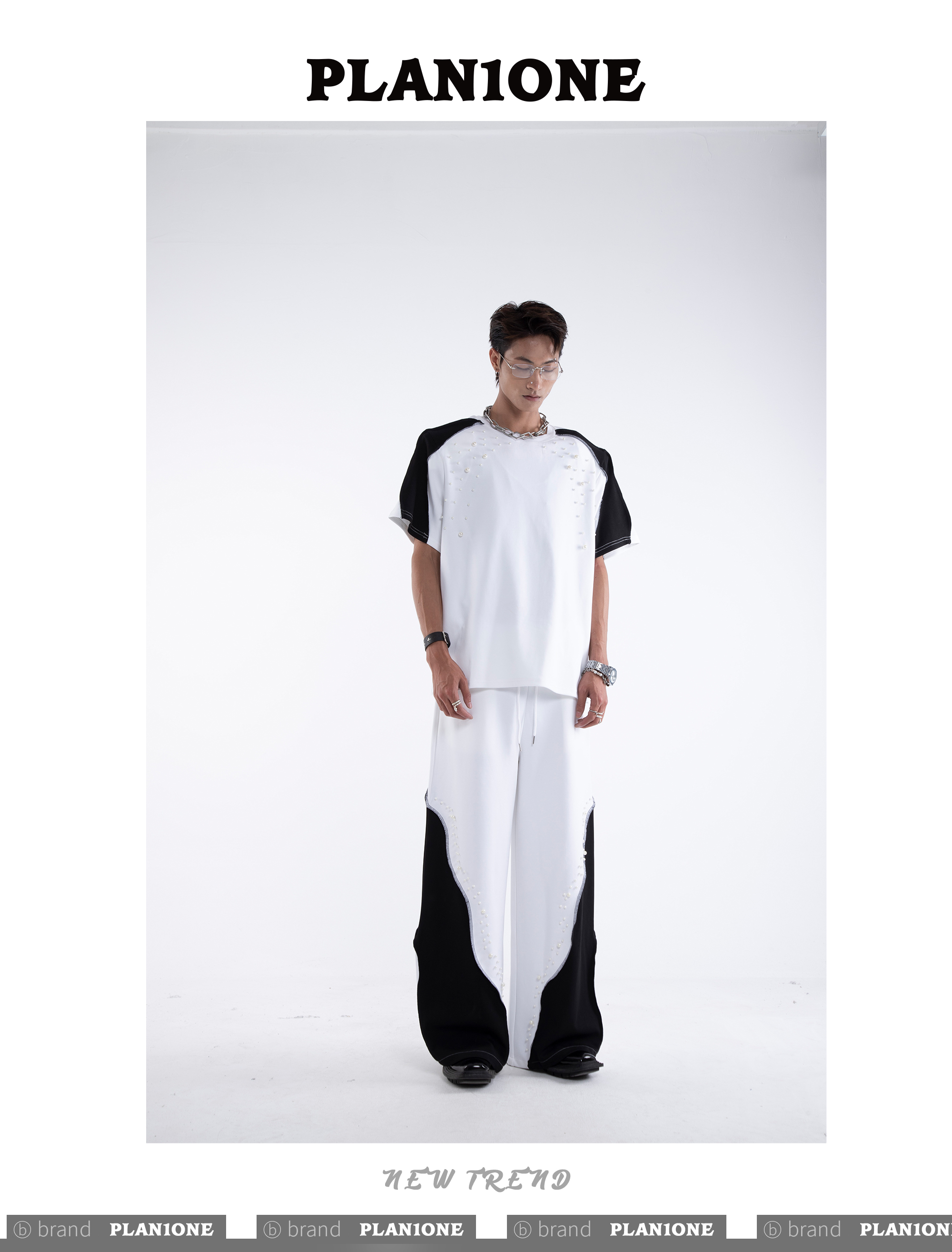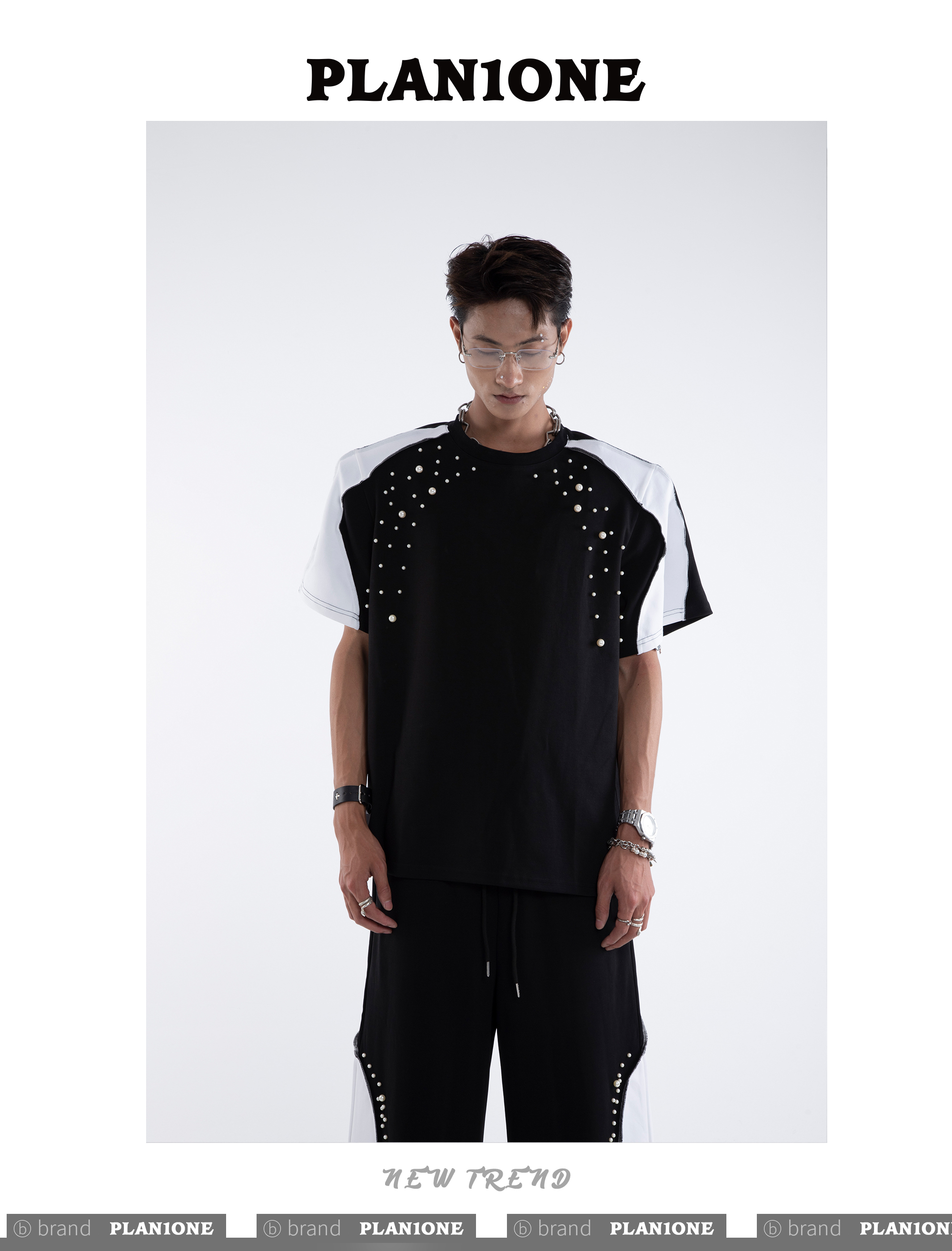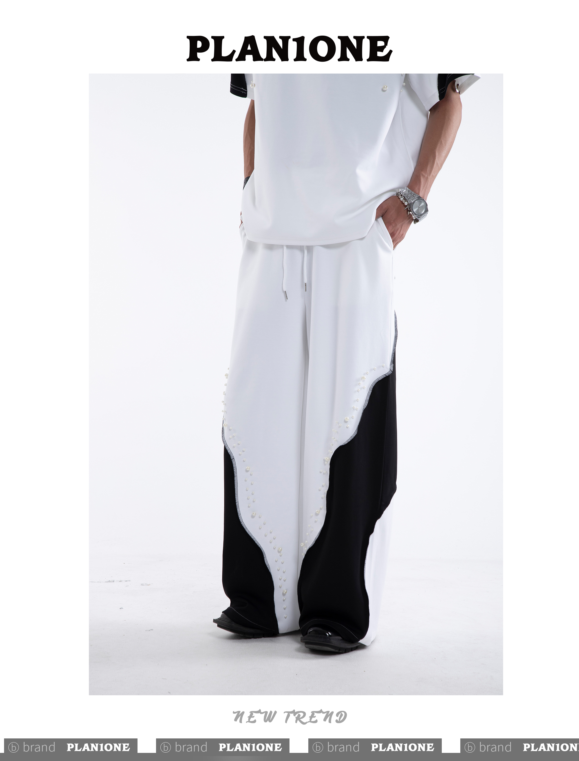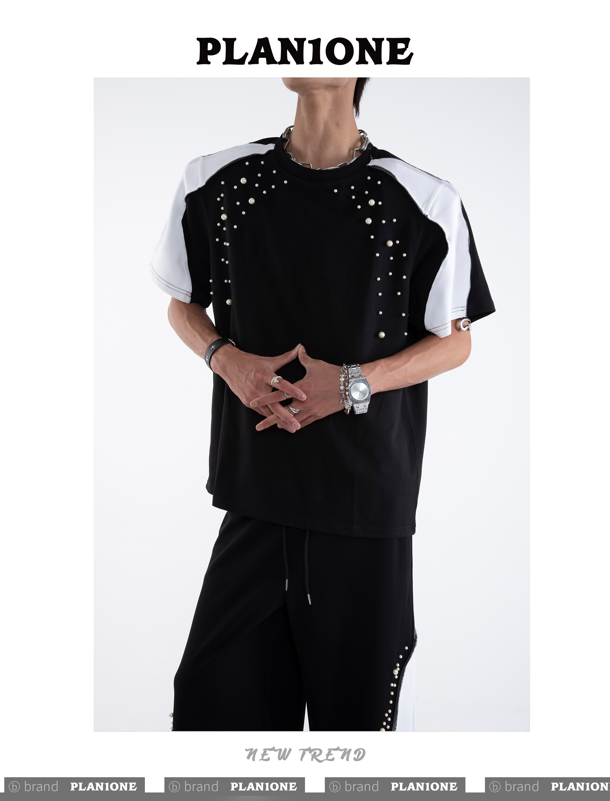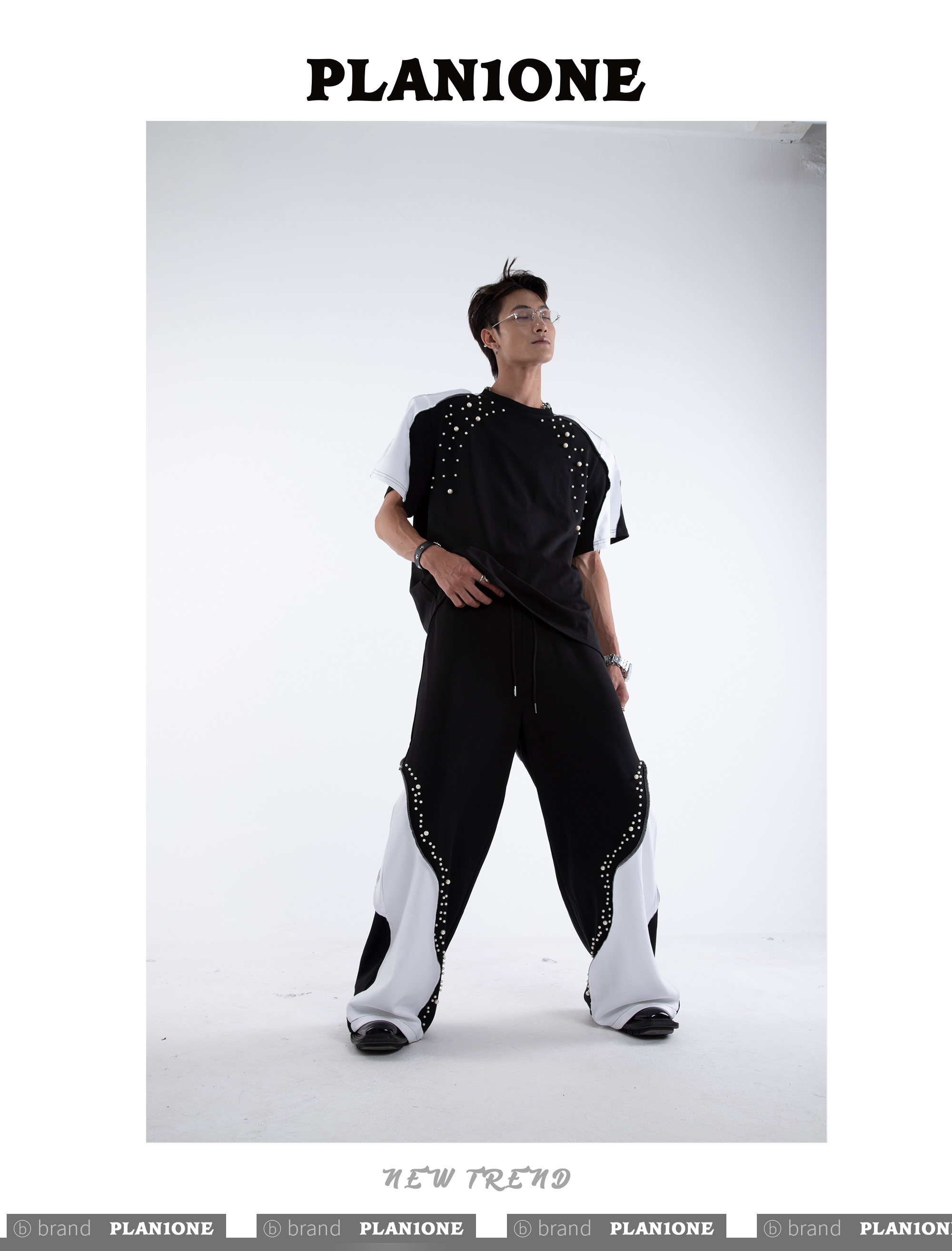 Beading Paint Shoulder-Pad Short Sleeve T-Shirt & Wide Leg Pants Setup WN20640