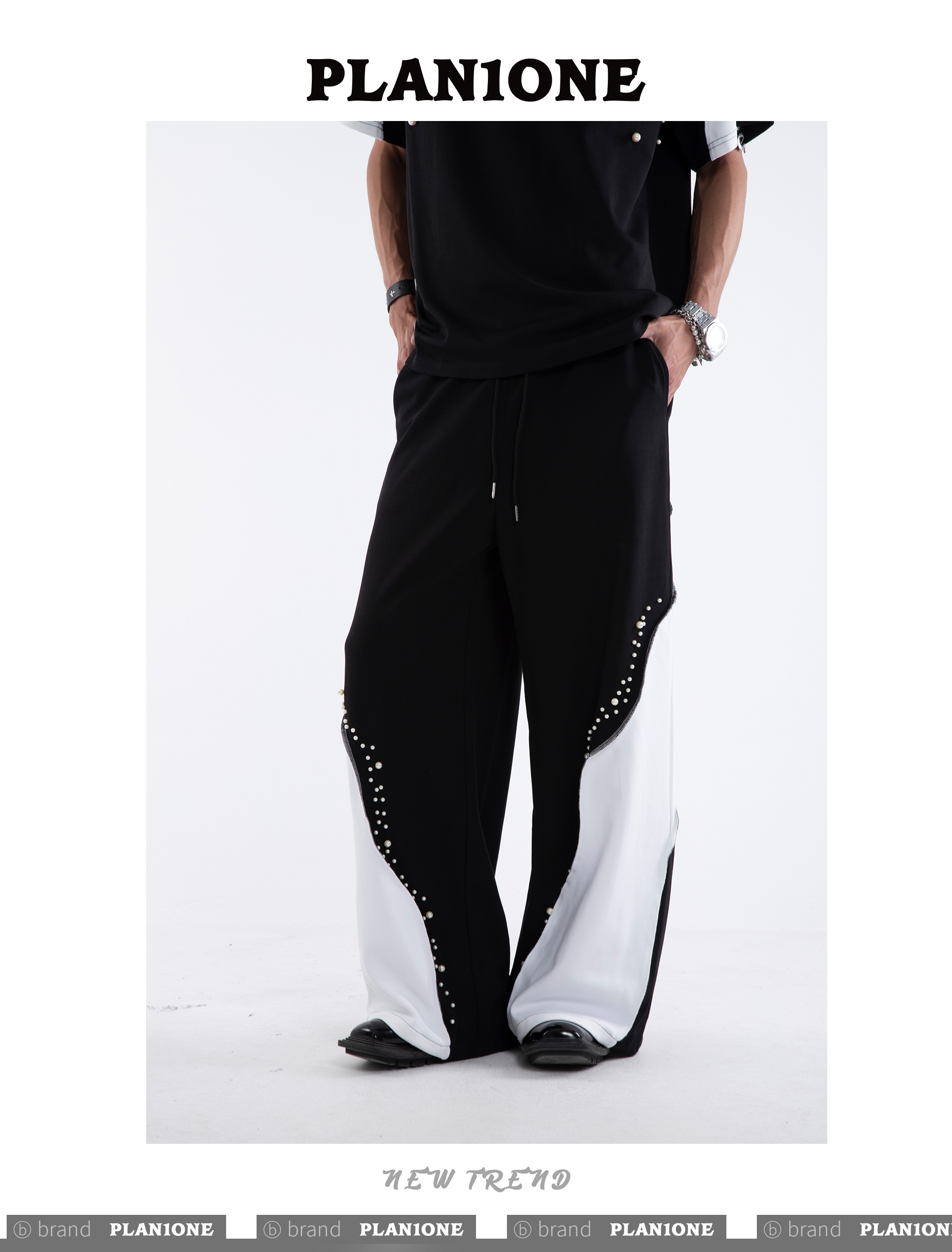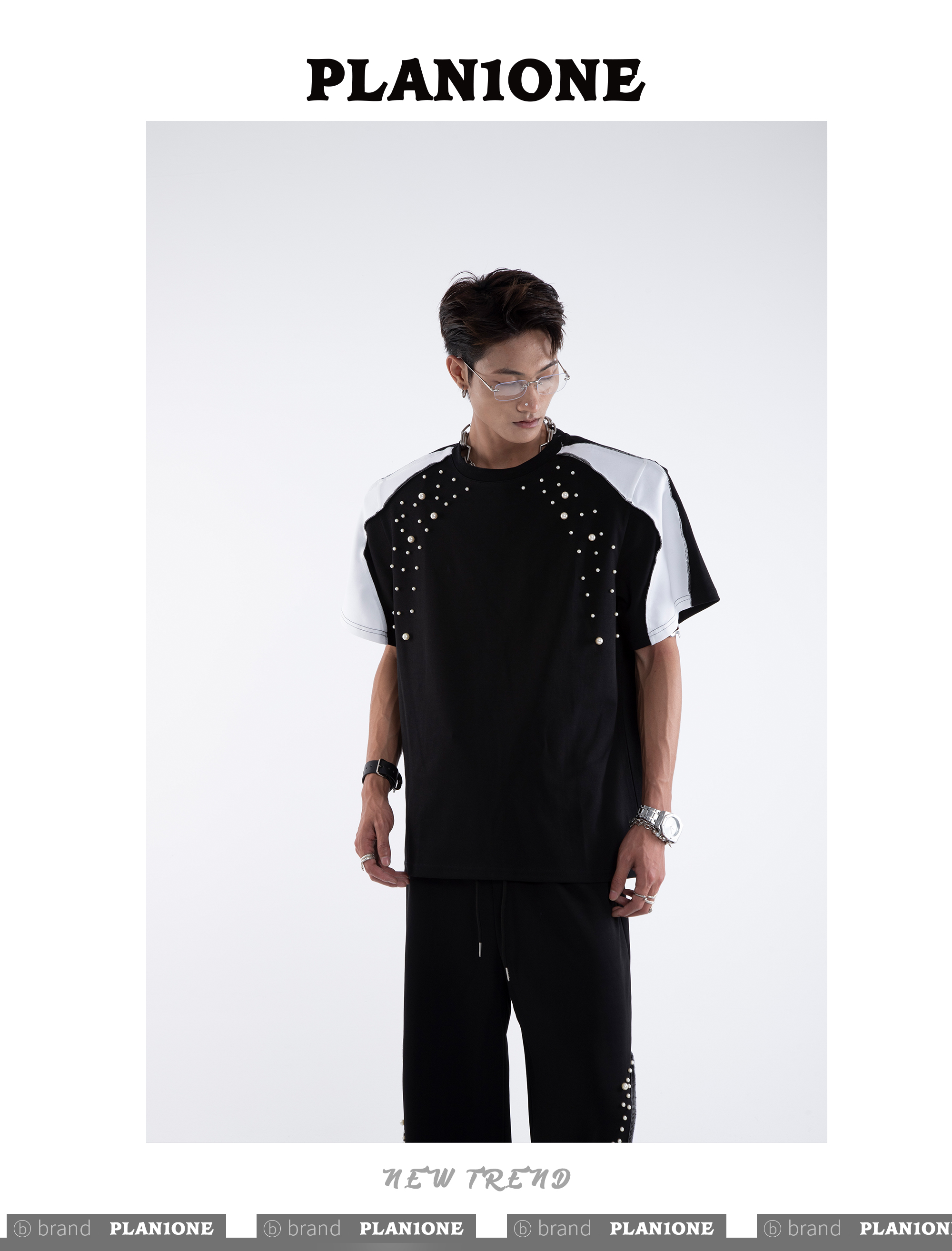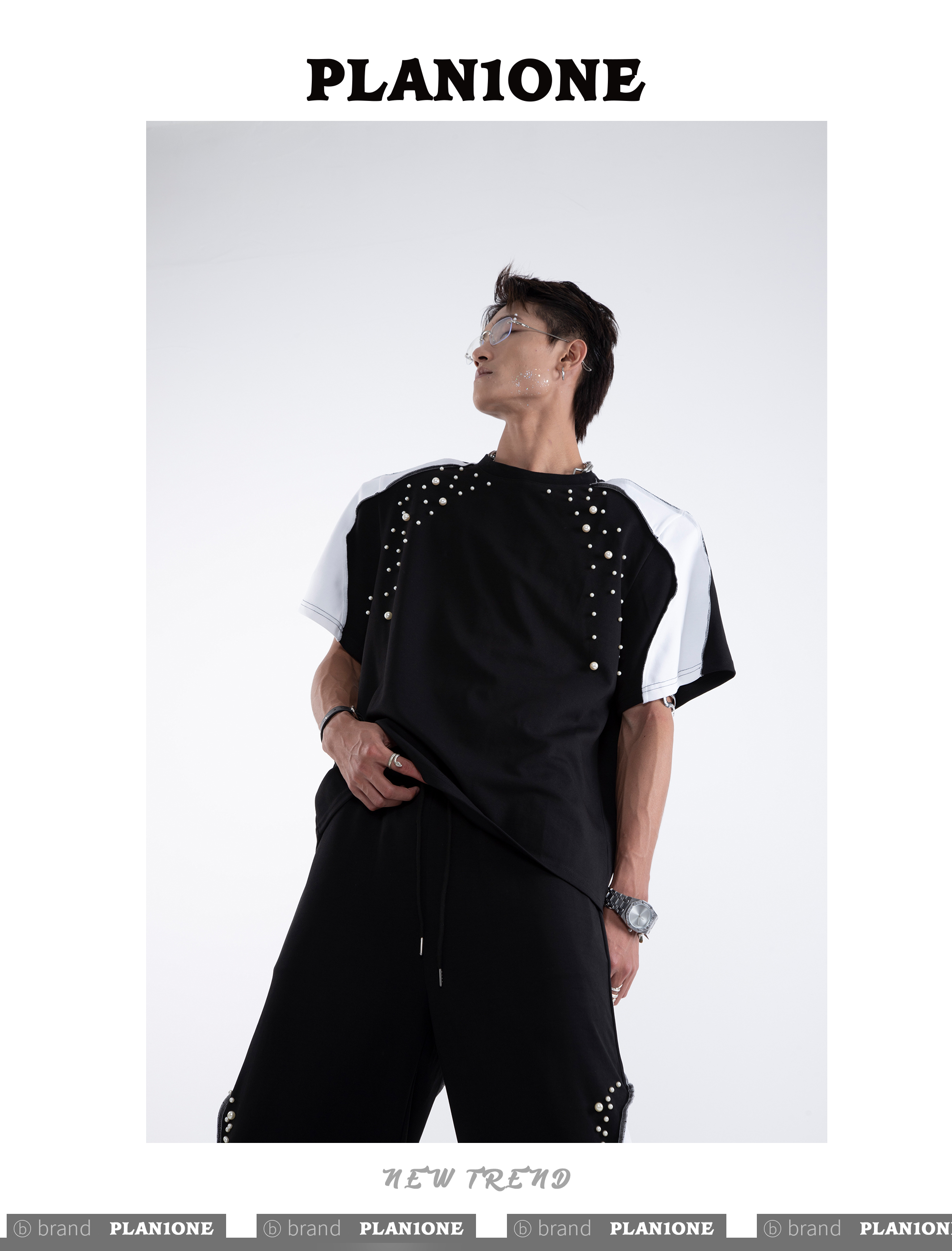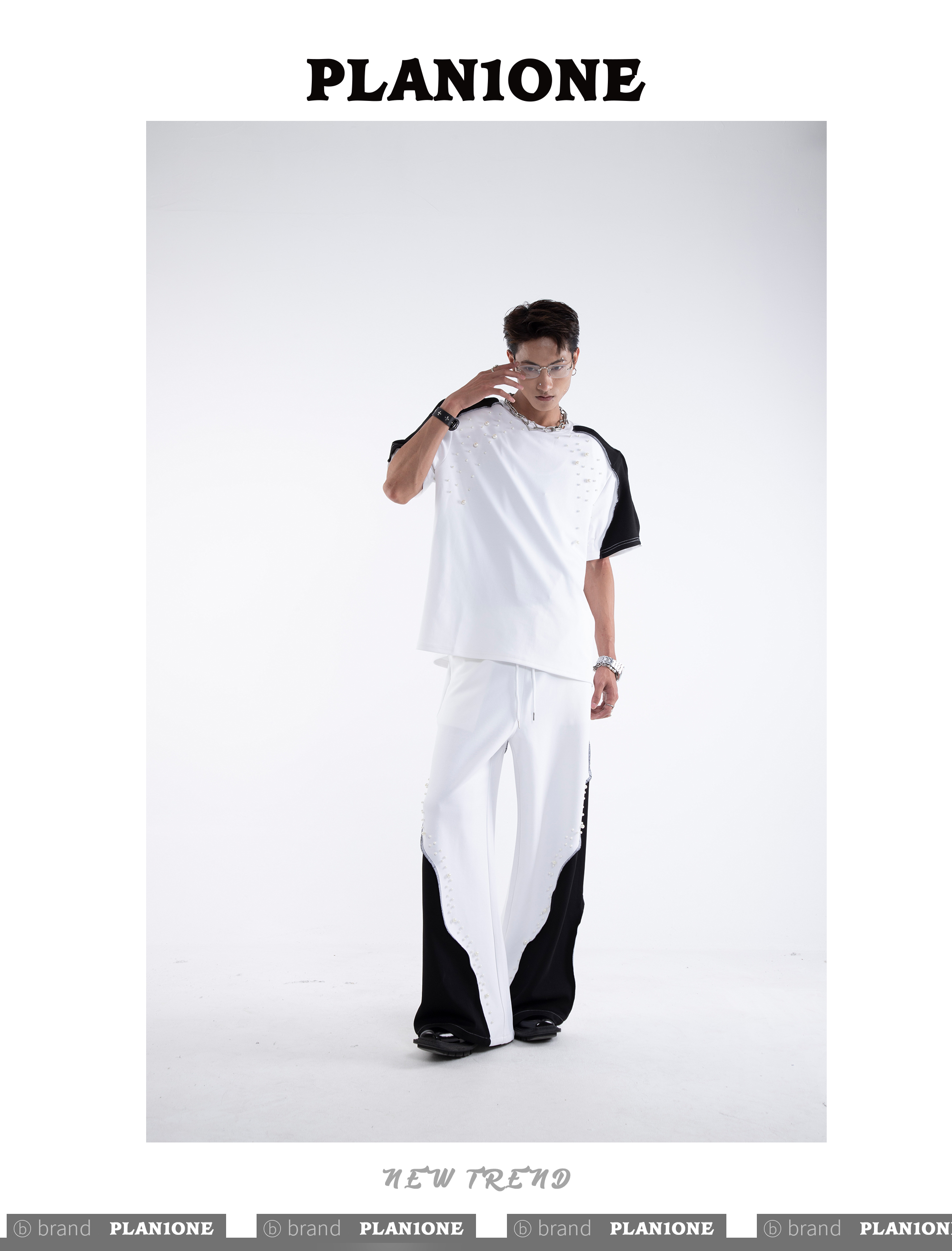 Beading Paint Shoulder-Pad Short Sleeve T-Shirt & Wide Leg Pants Setup WN20640