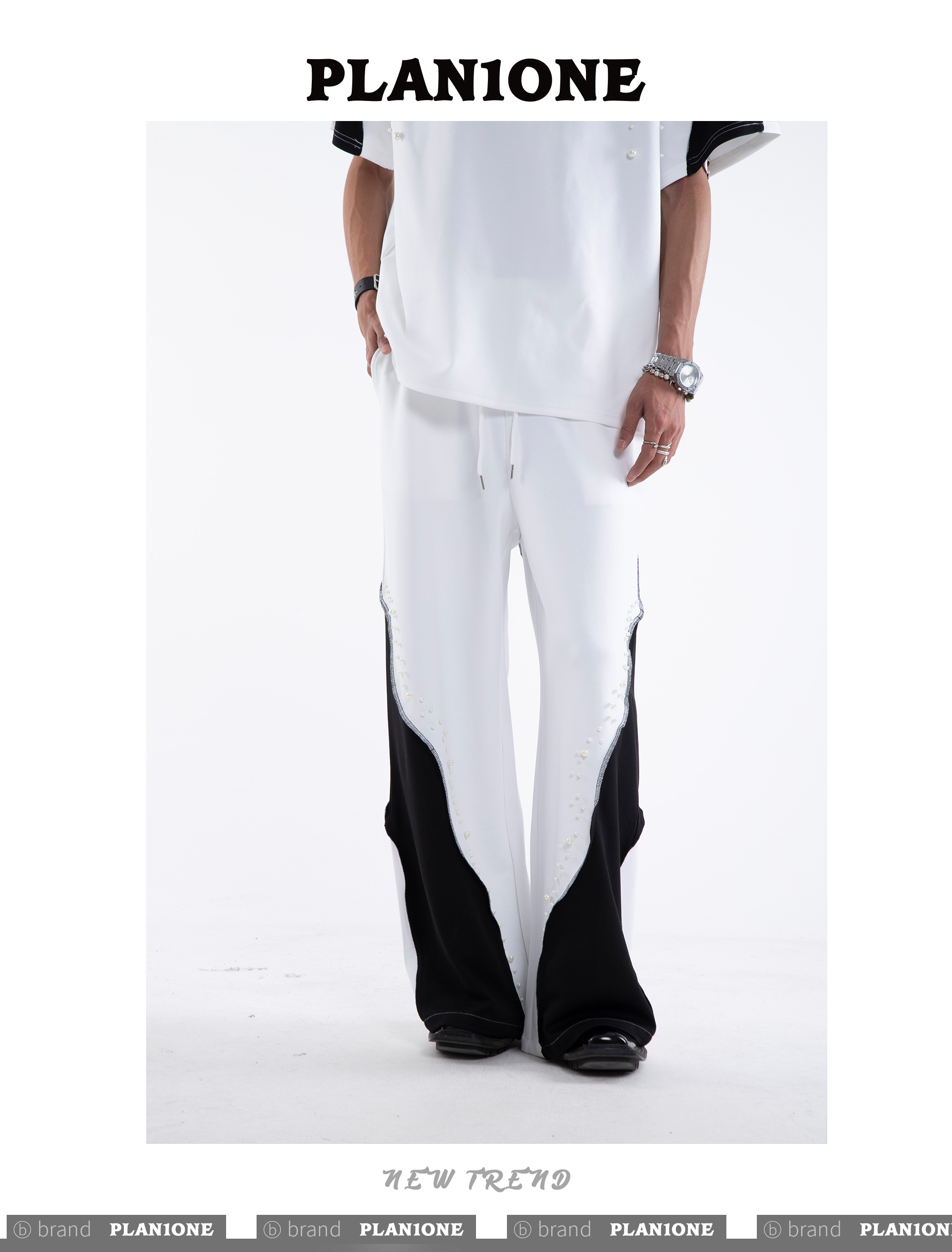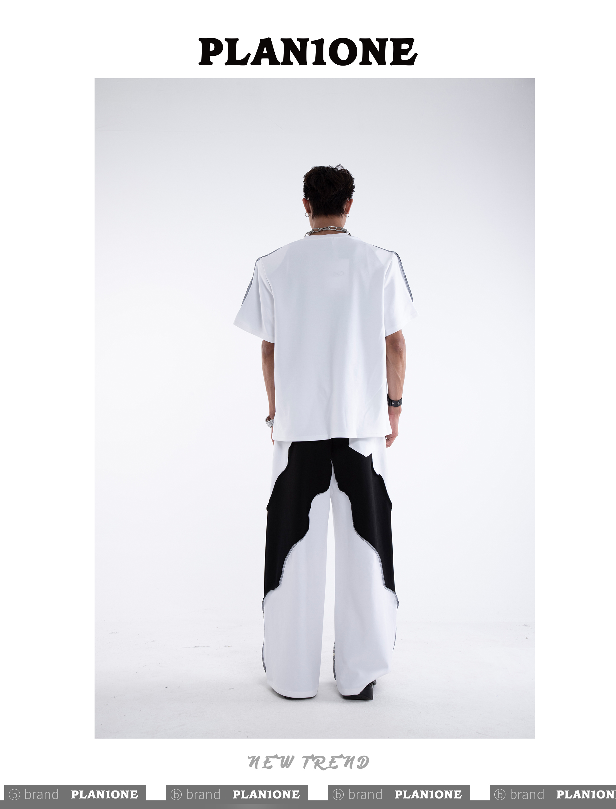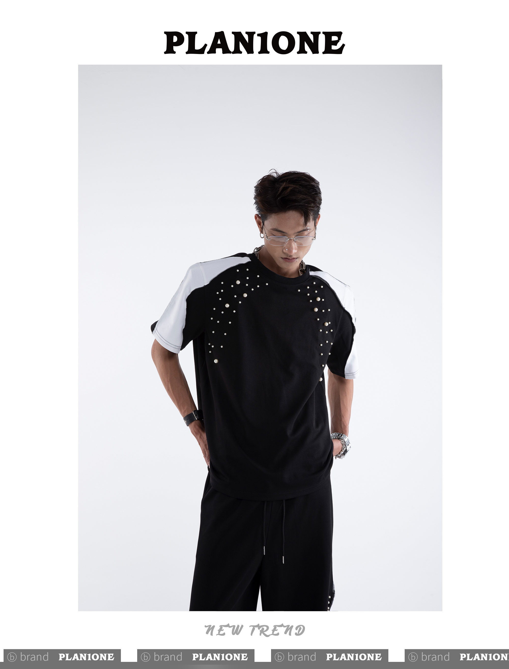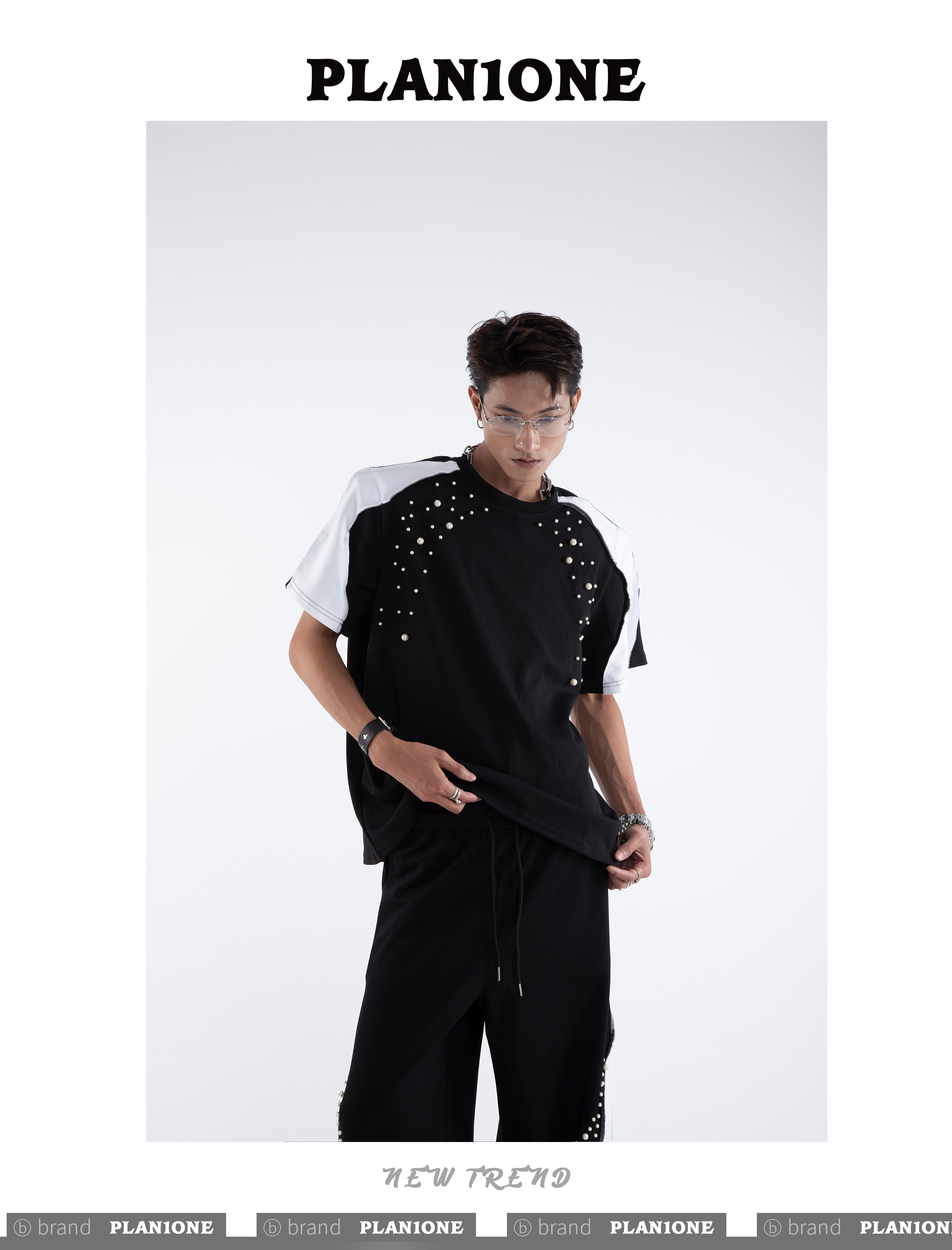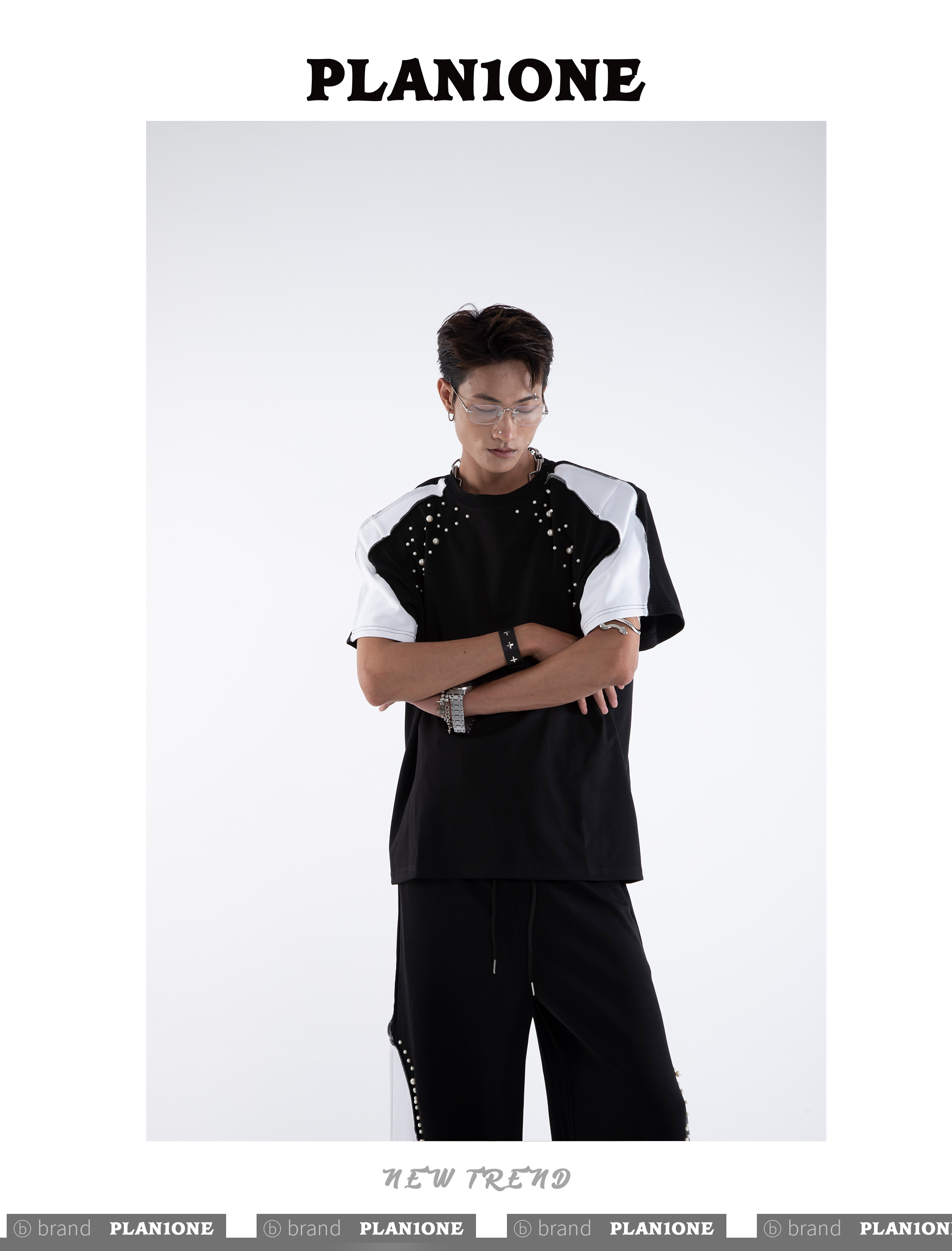 Beading Paint Shoulder-Pad Short Sleeve T-Shirt & Wide Leg Pants Setup WN20640