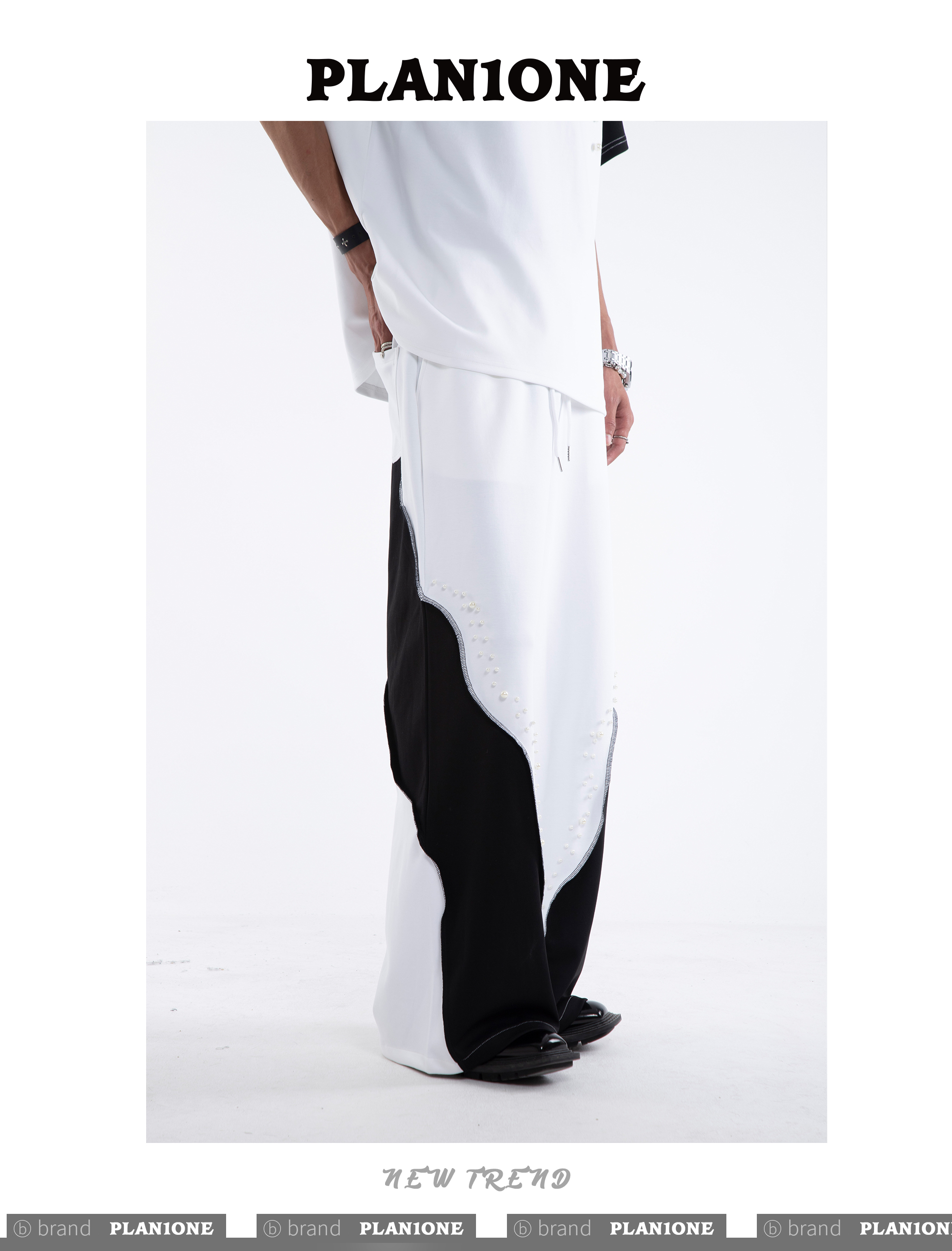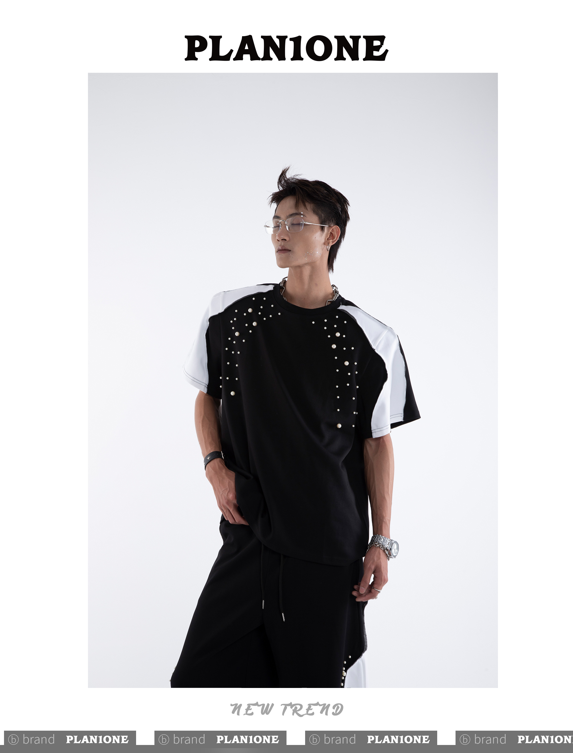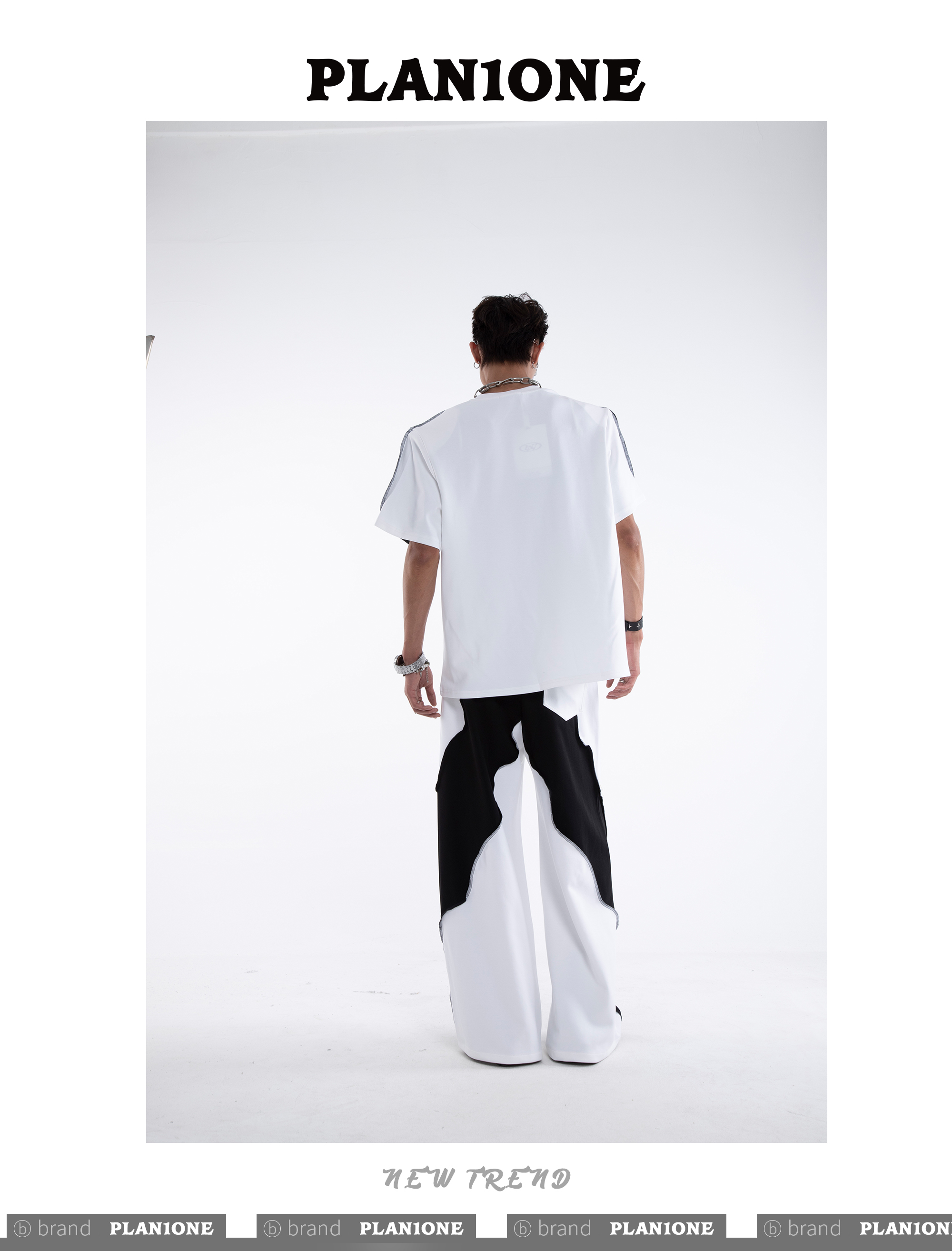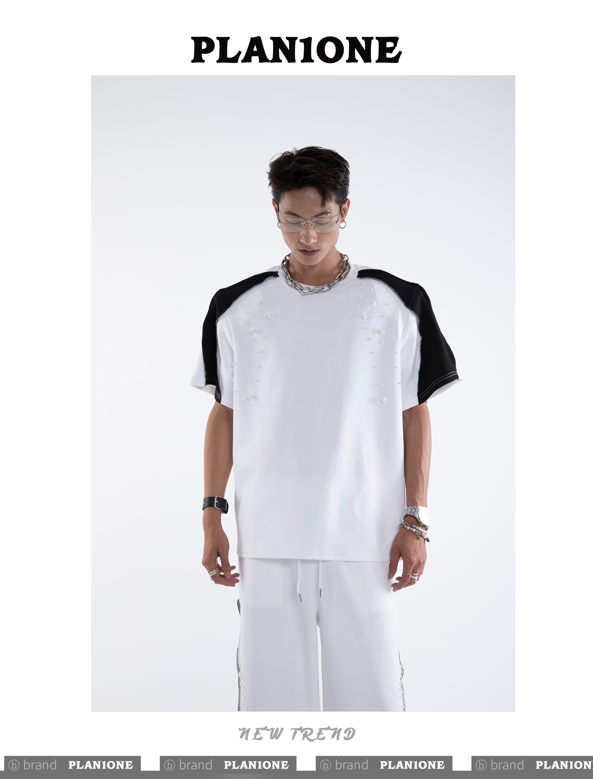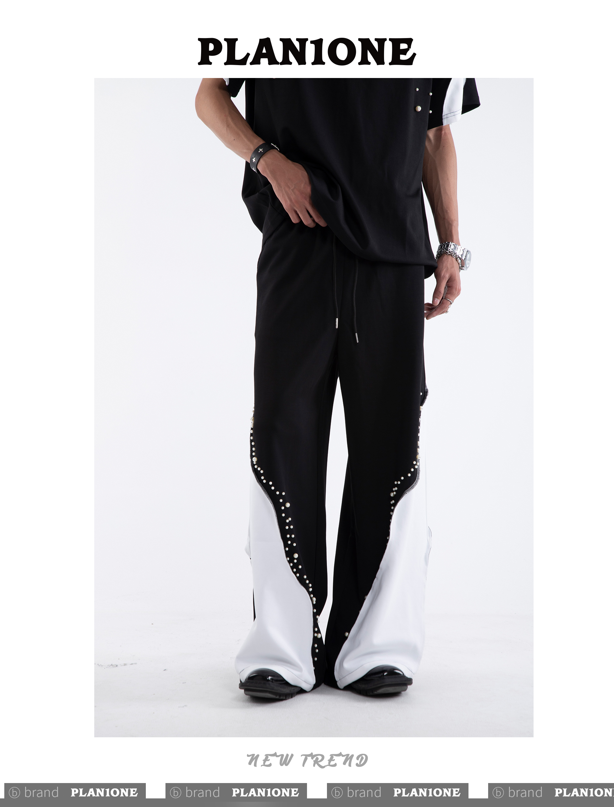 Beading Paint Shoulder-Pad Short Sleeve T-Shirt & Wide Leg Pants Setup WN20640