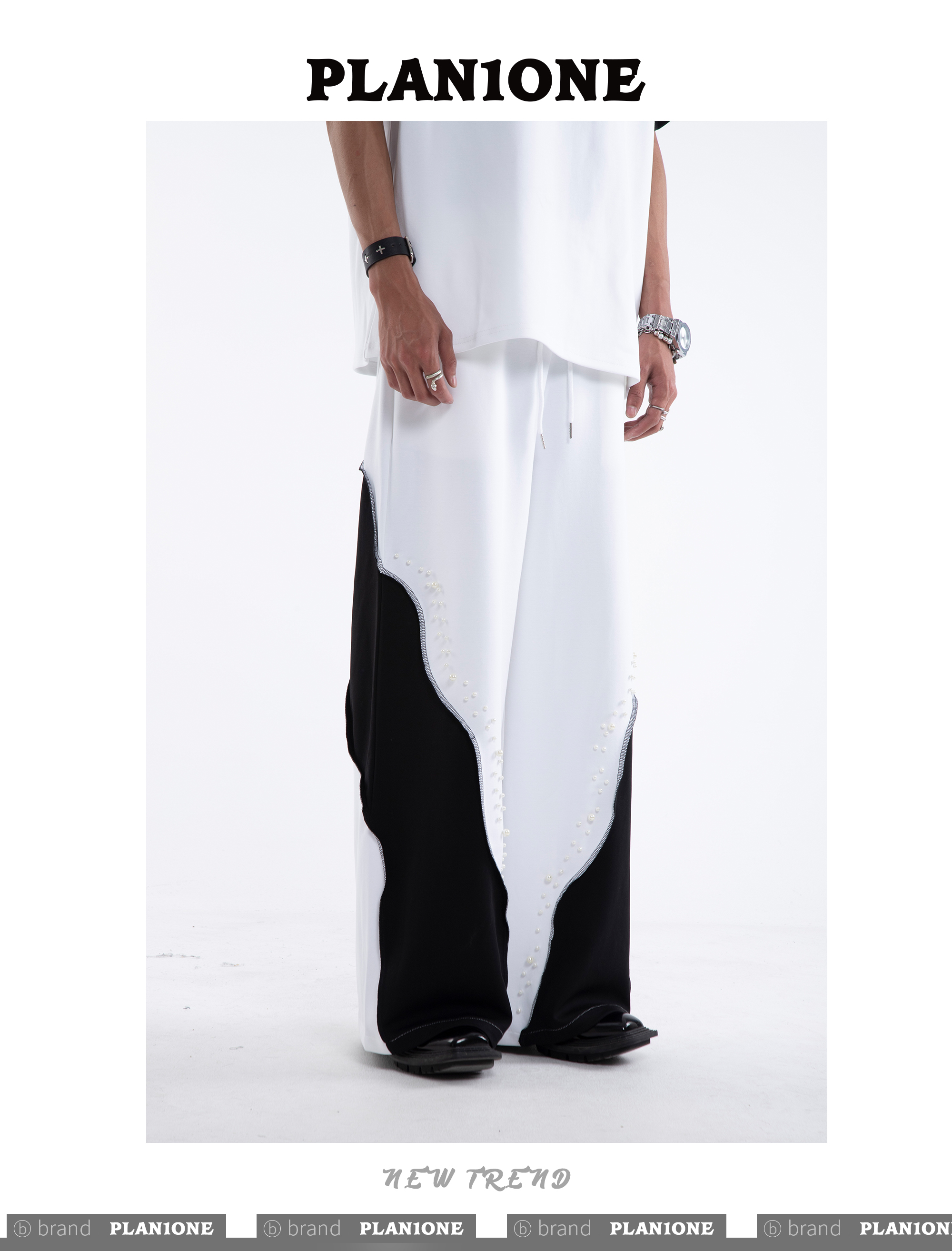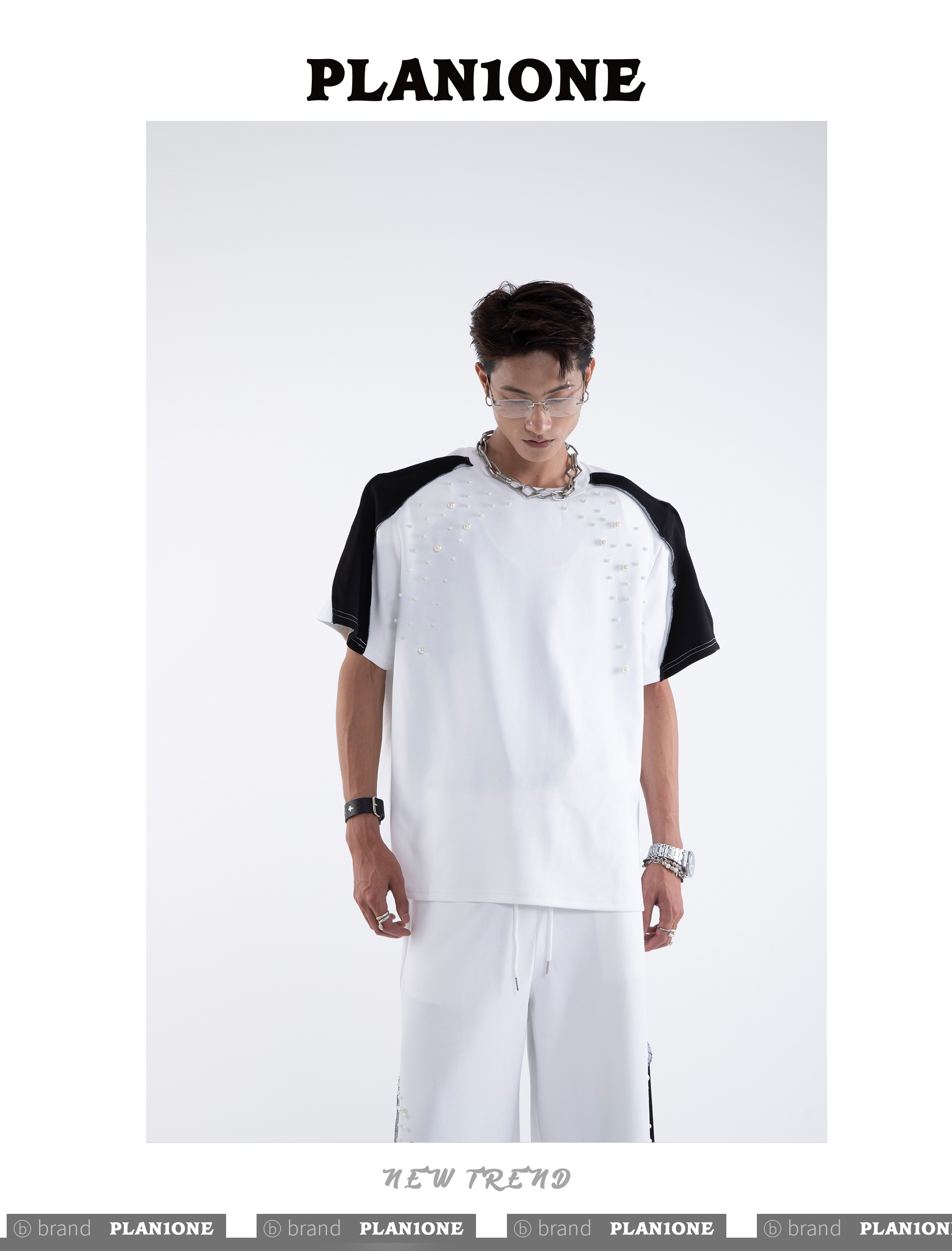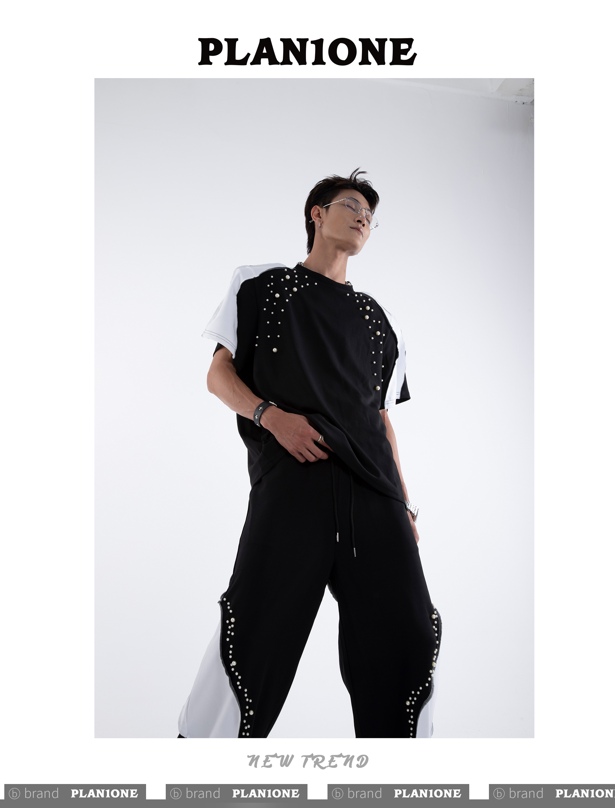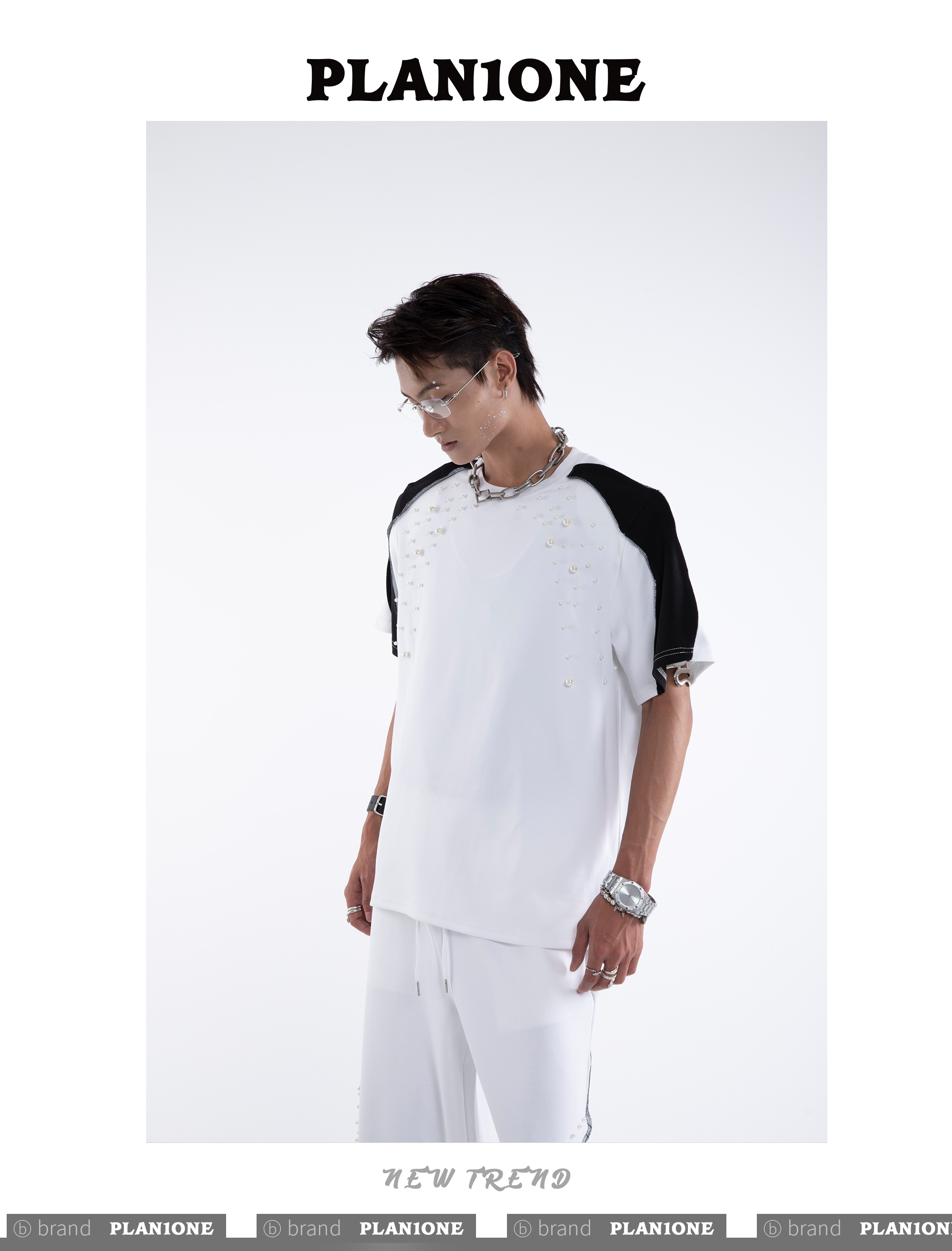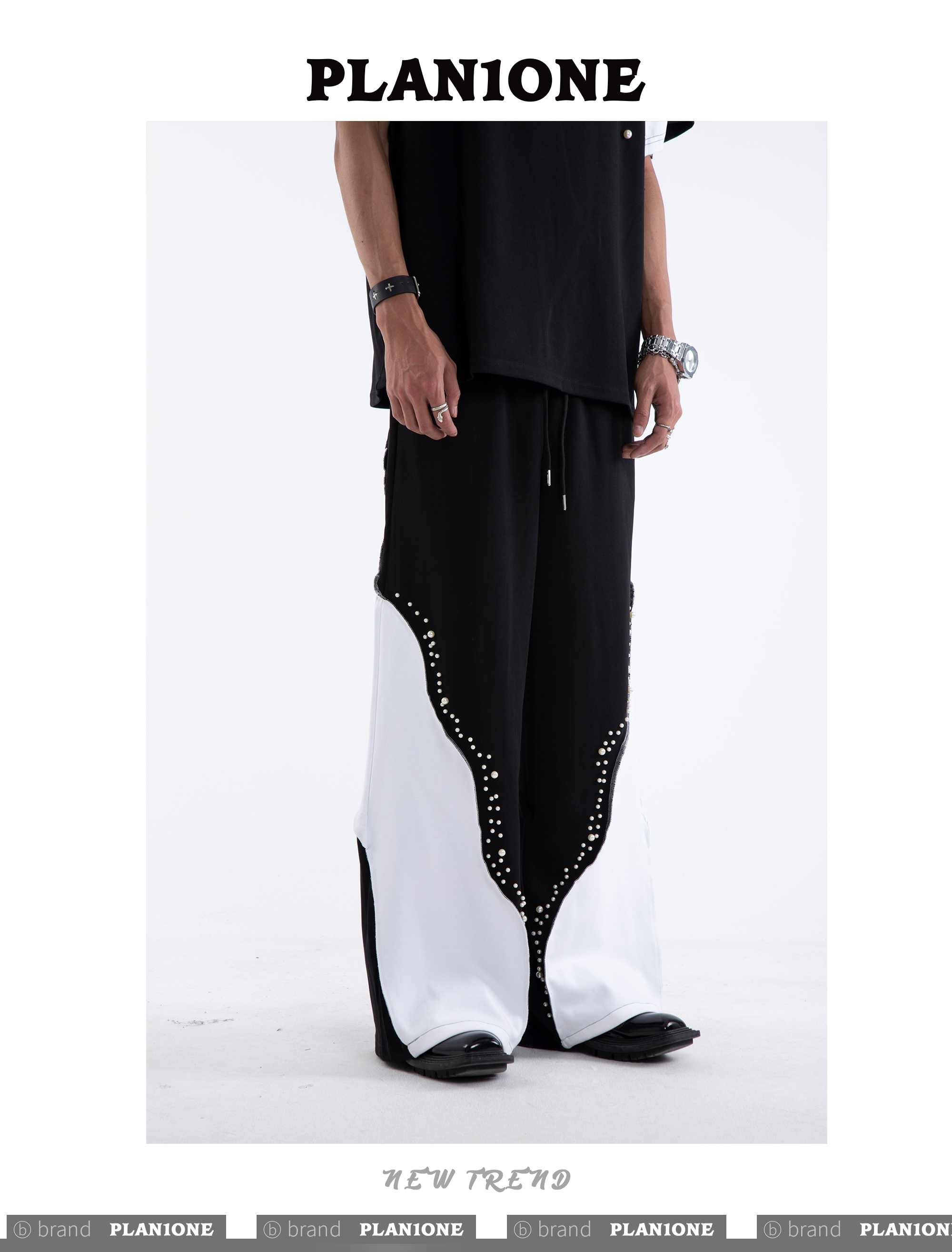 Beading Paint Shoulder-Pad Short Sleeve T-Shirt & Wide Leg Pants Setup WN20640
