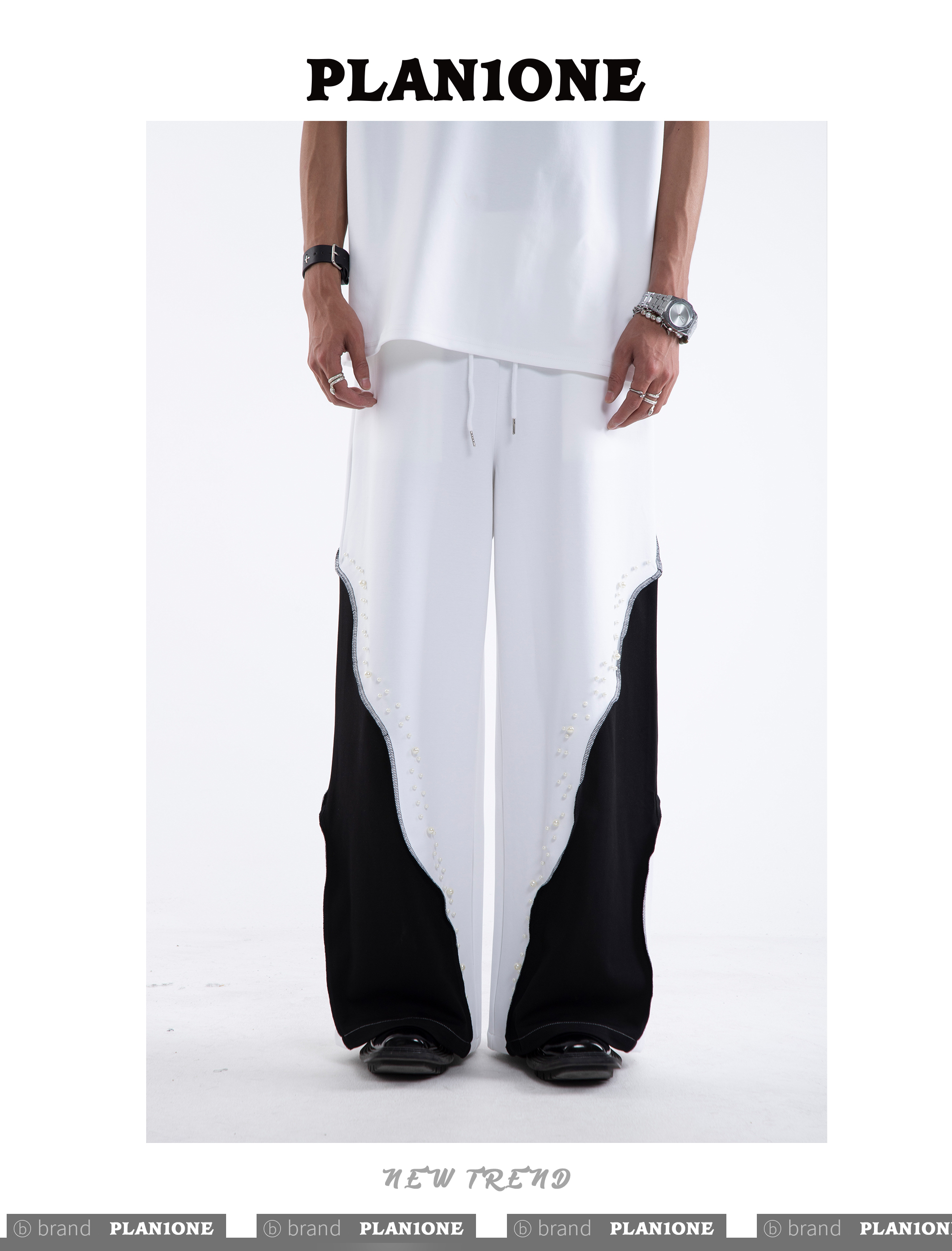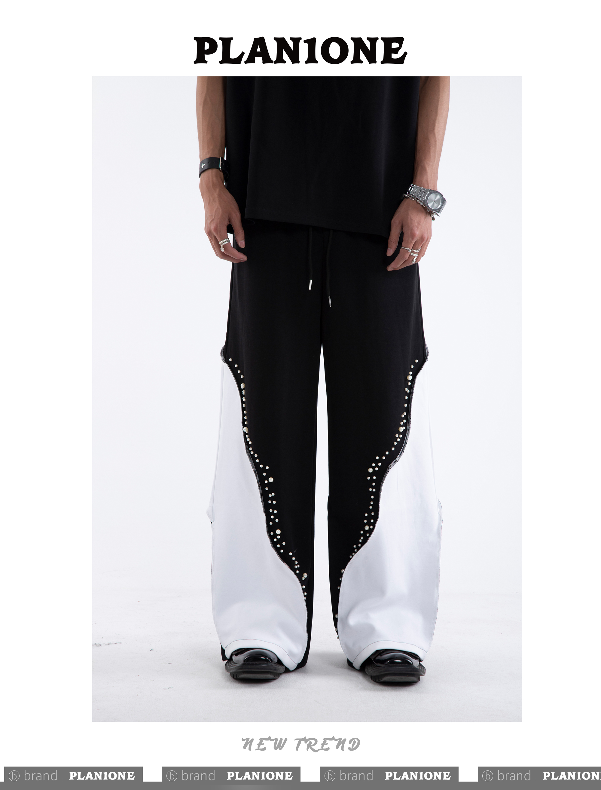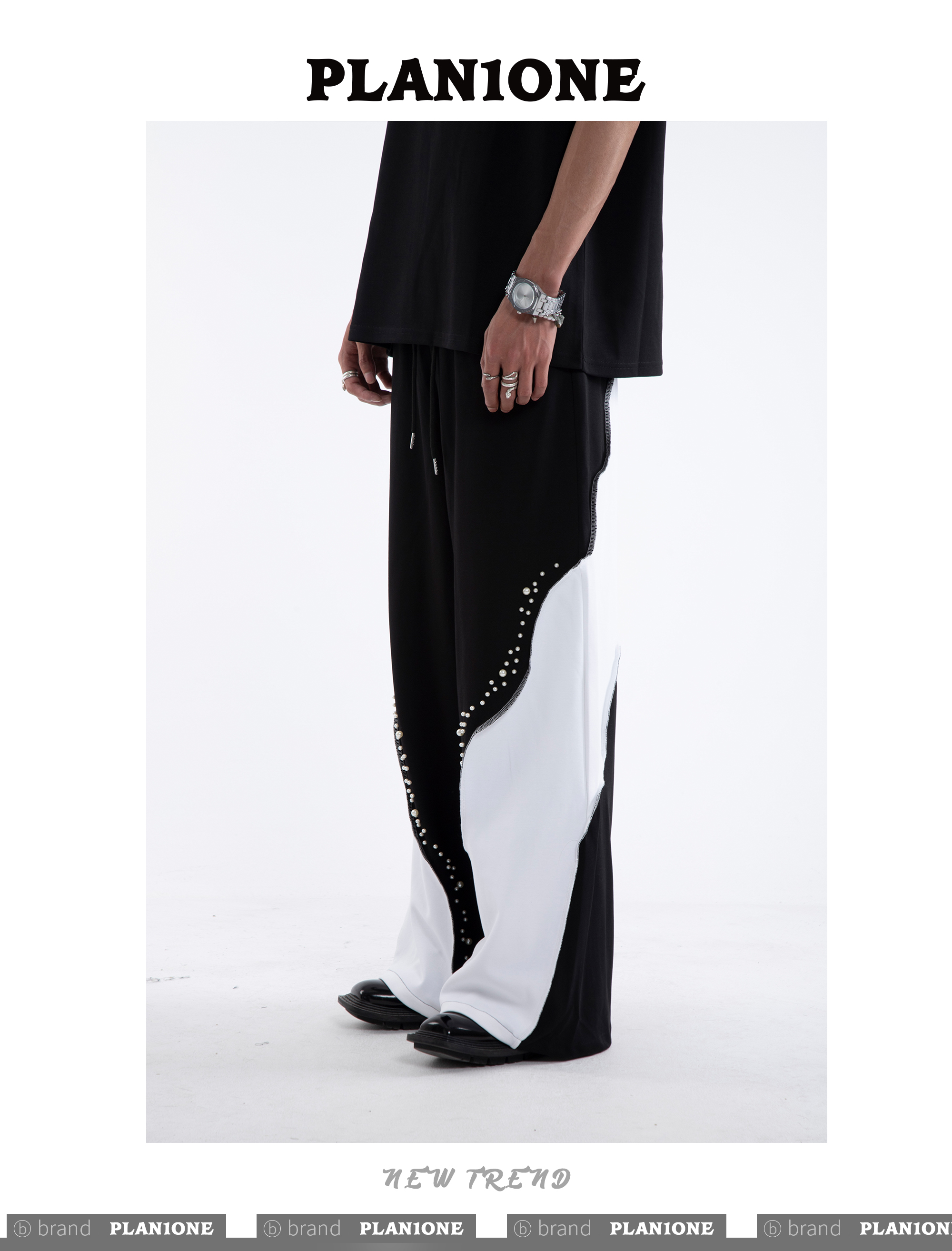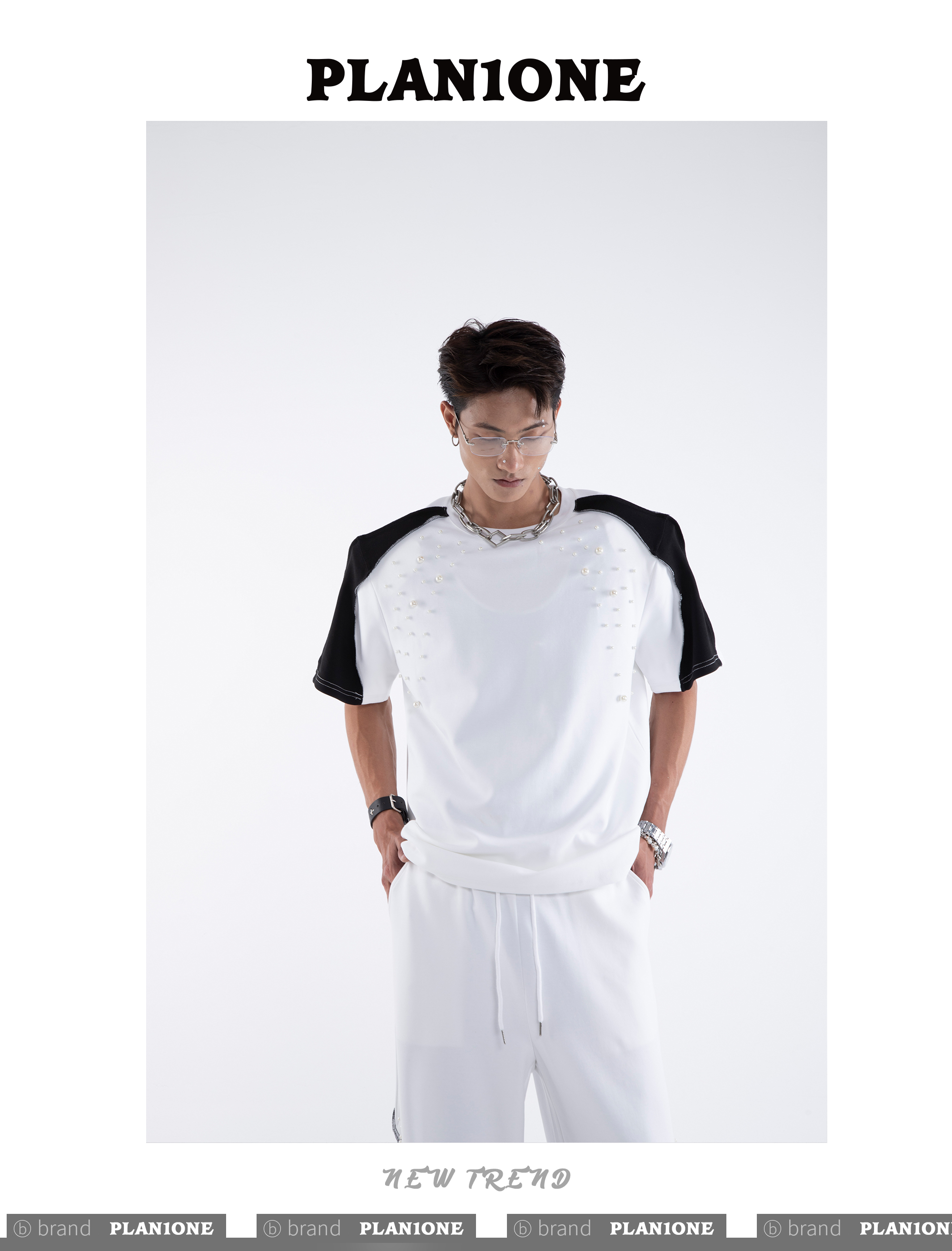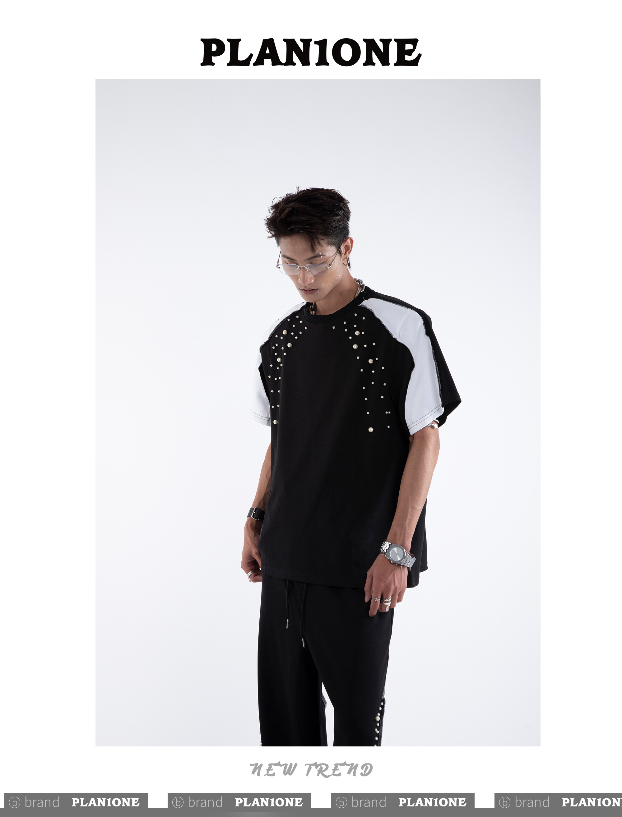 Beading Paint Shoulder-Pad Short Sleeve T-Shirt & Wide Leg Pants Setup WN20640