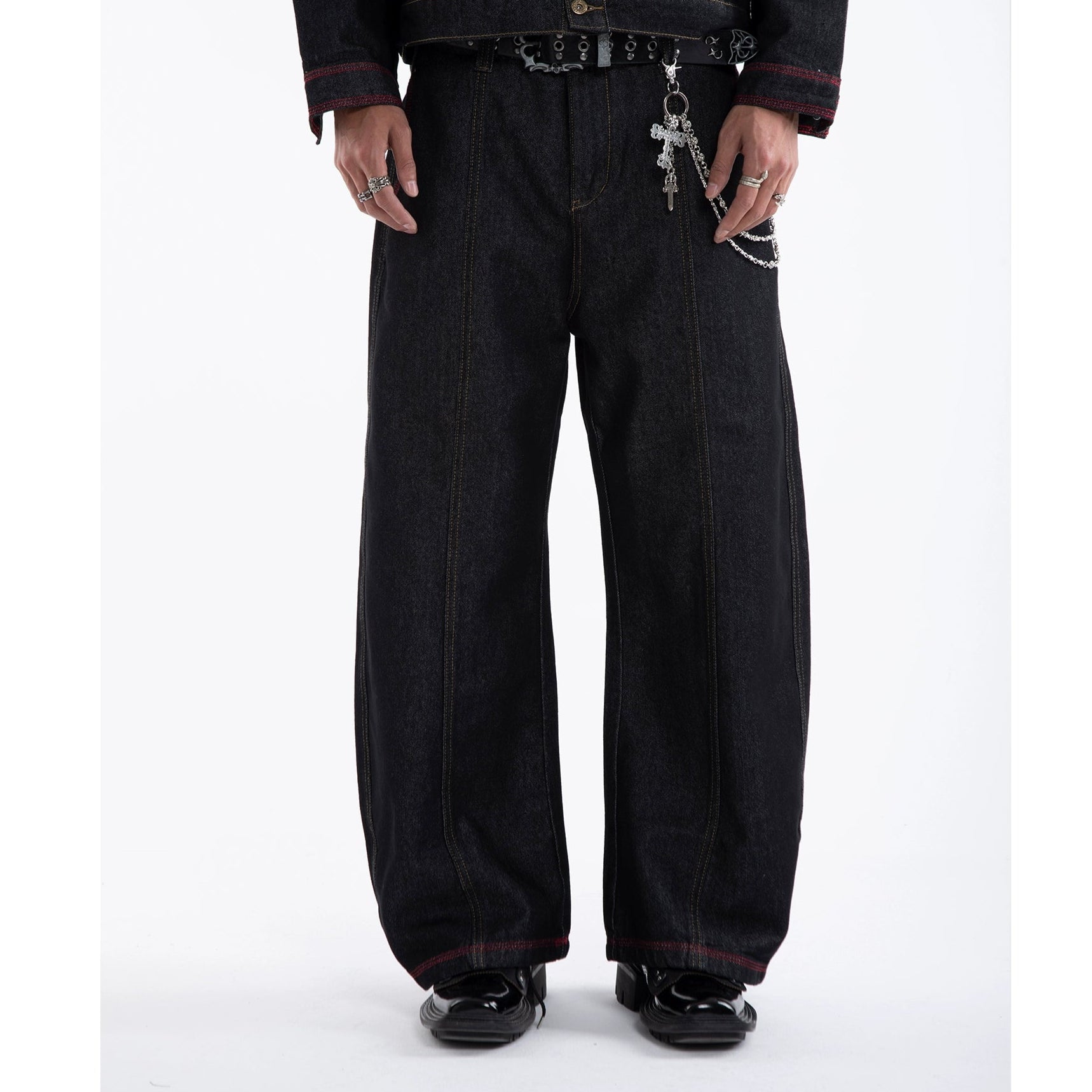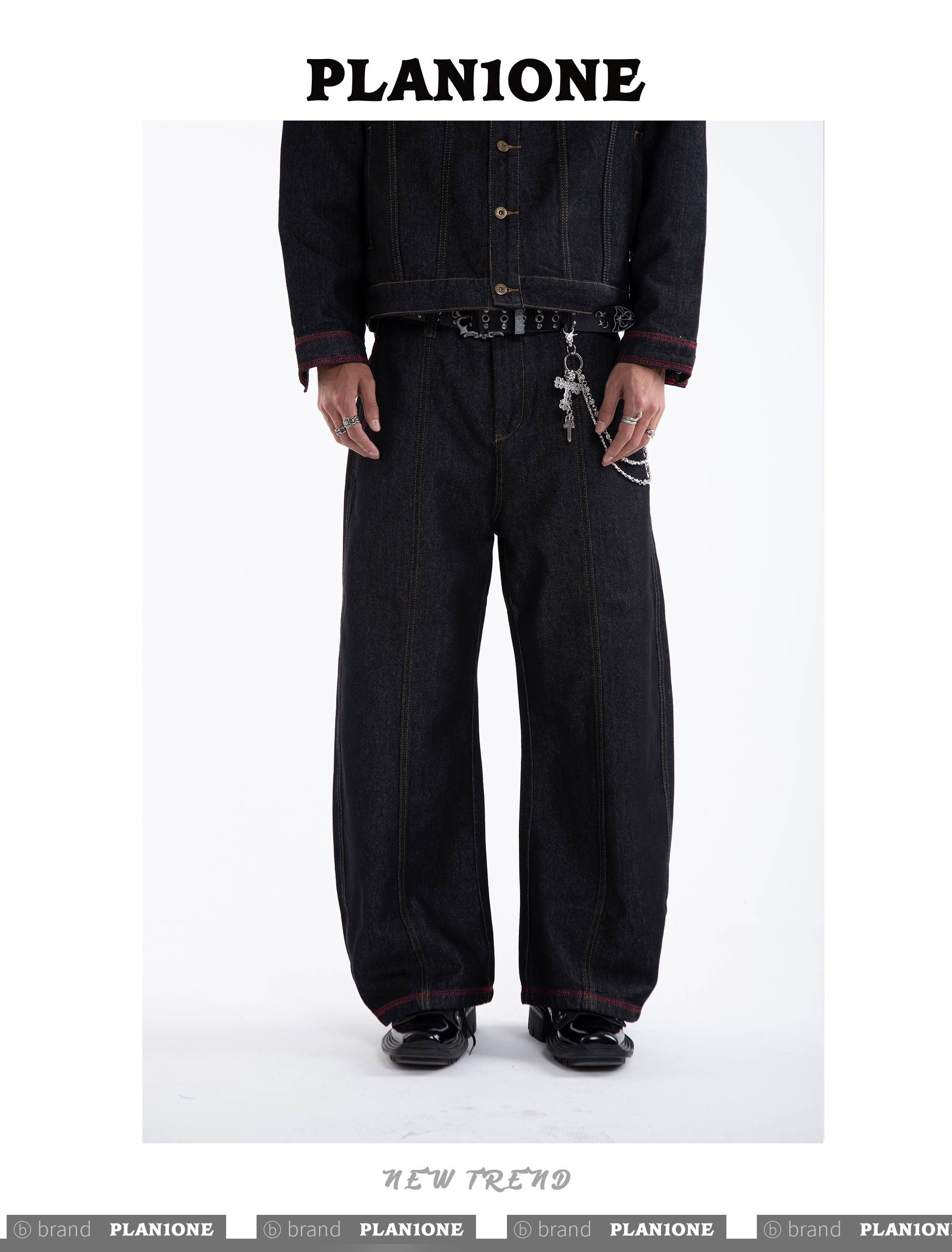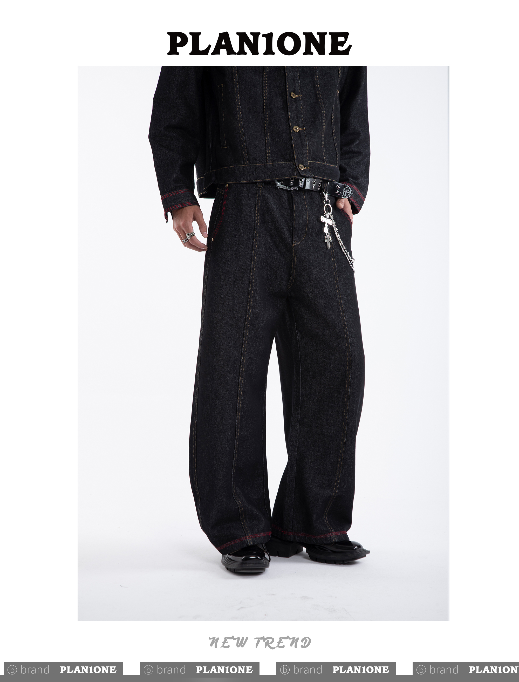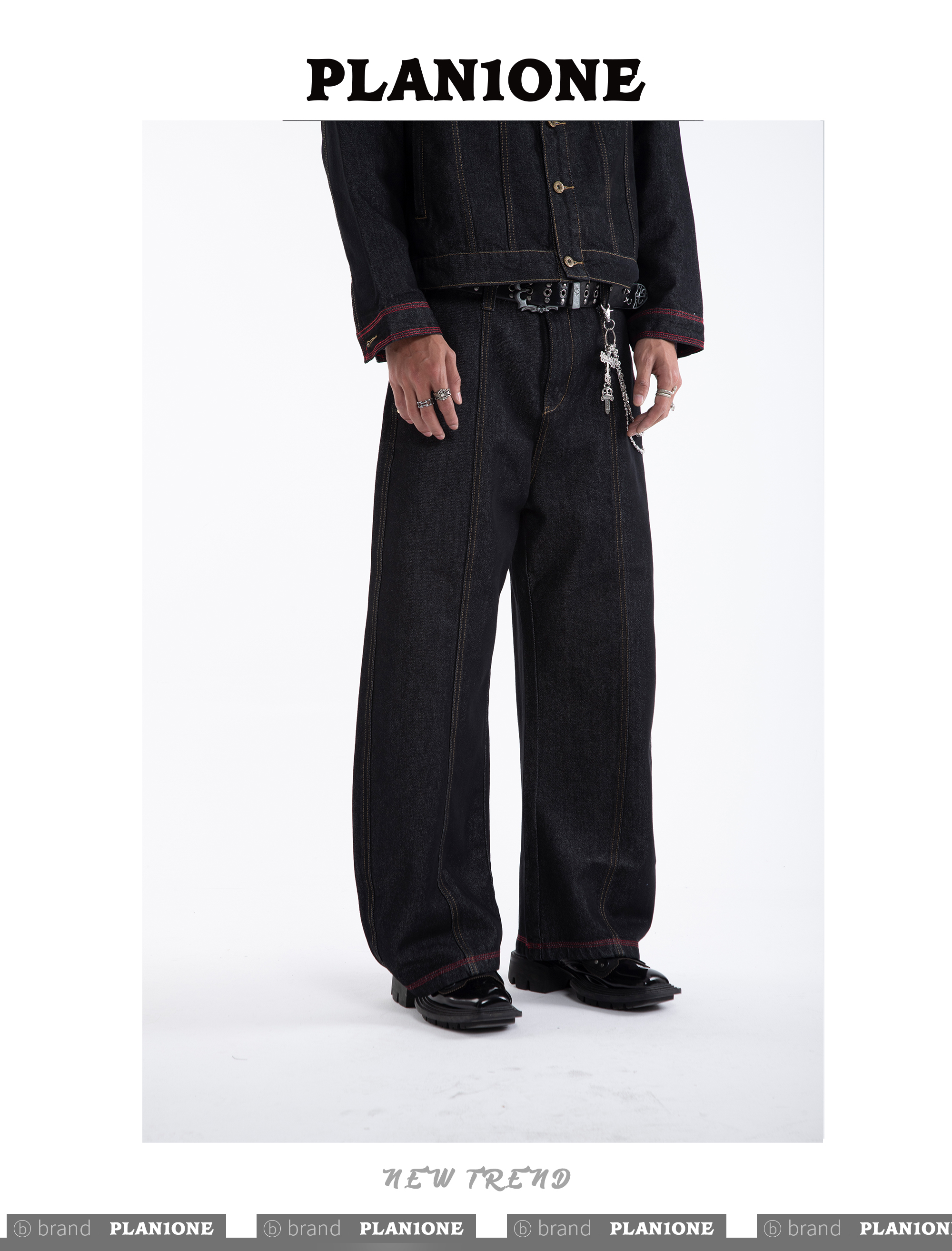 Standing-Collar Washed Denim Jacket & Denim Jeans Setup WN20655
