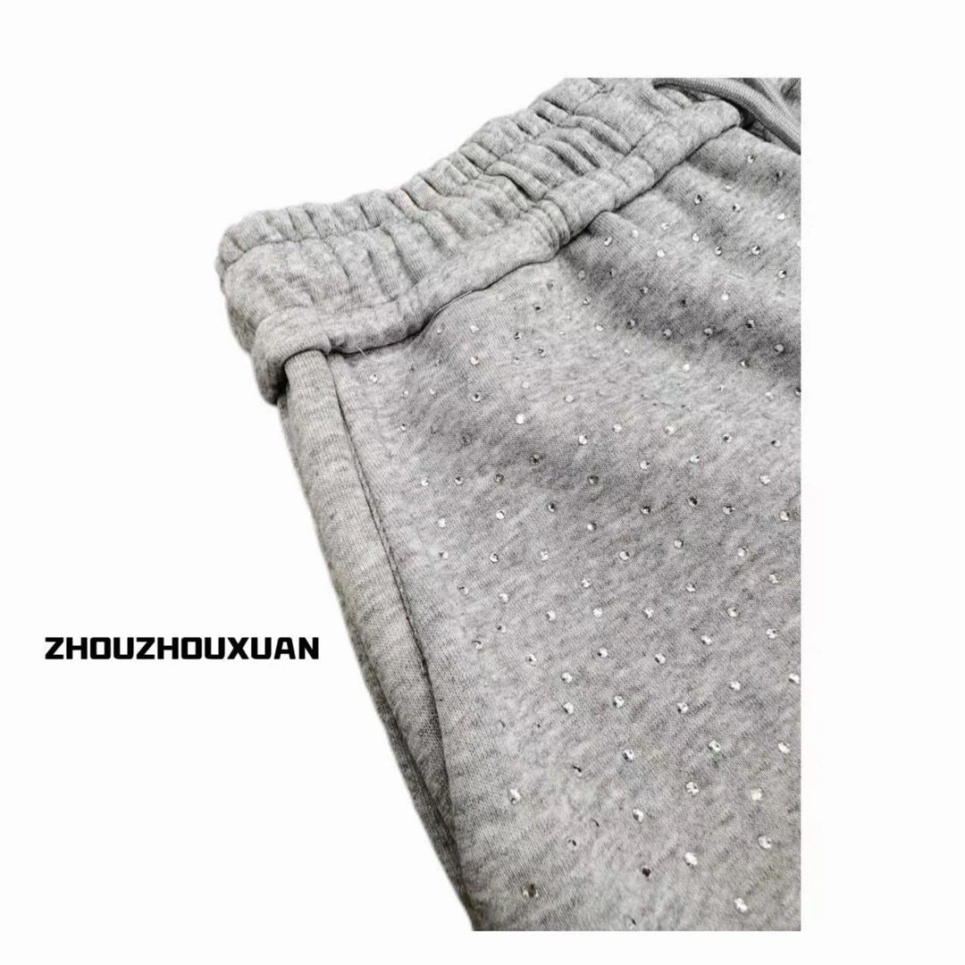 Rhinestone Adjustable Drawstring Sweatpants WN20710
