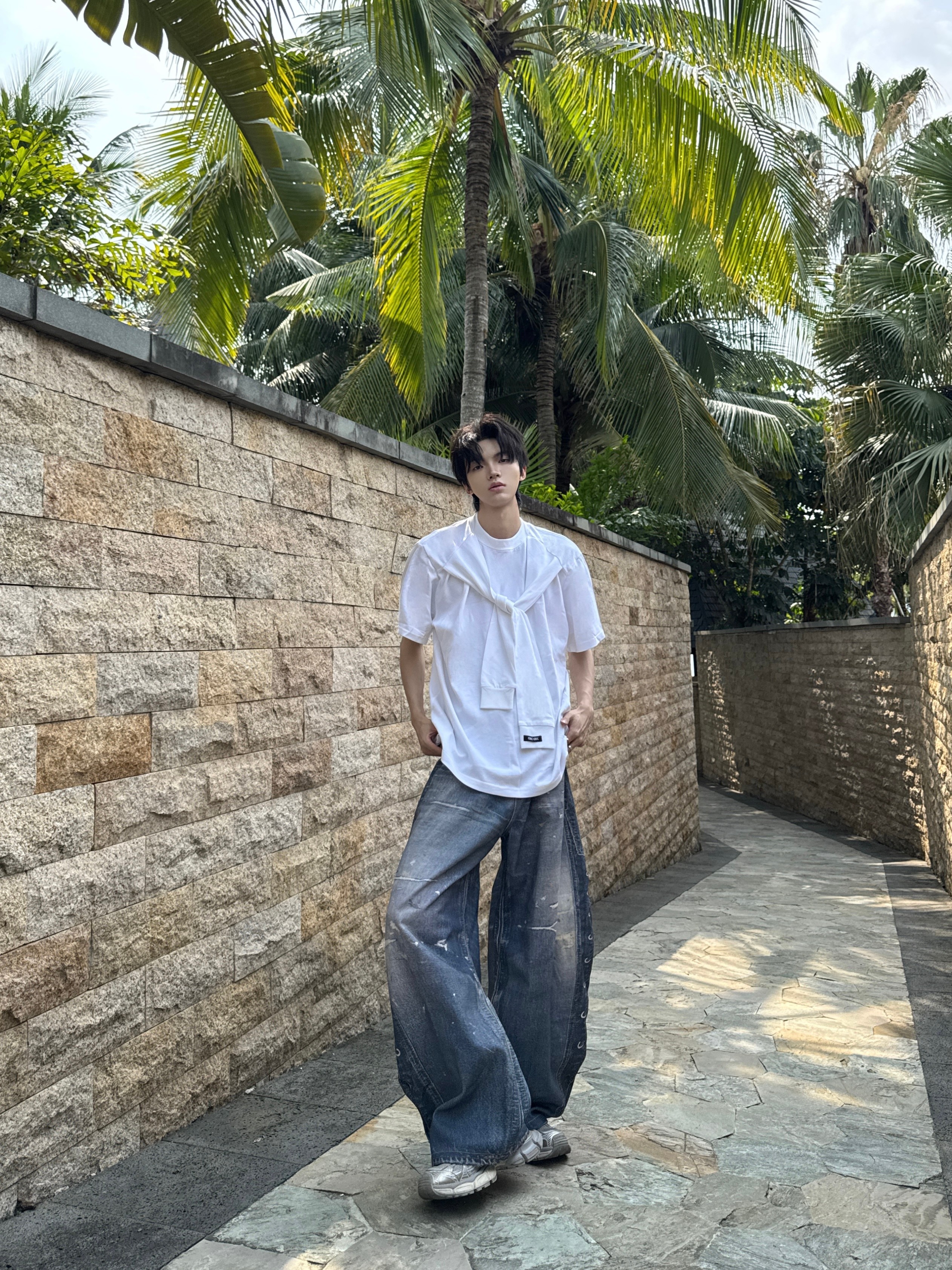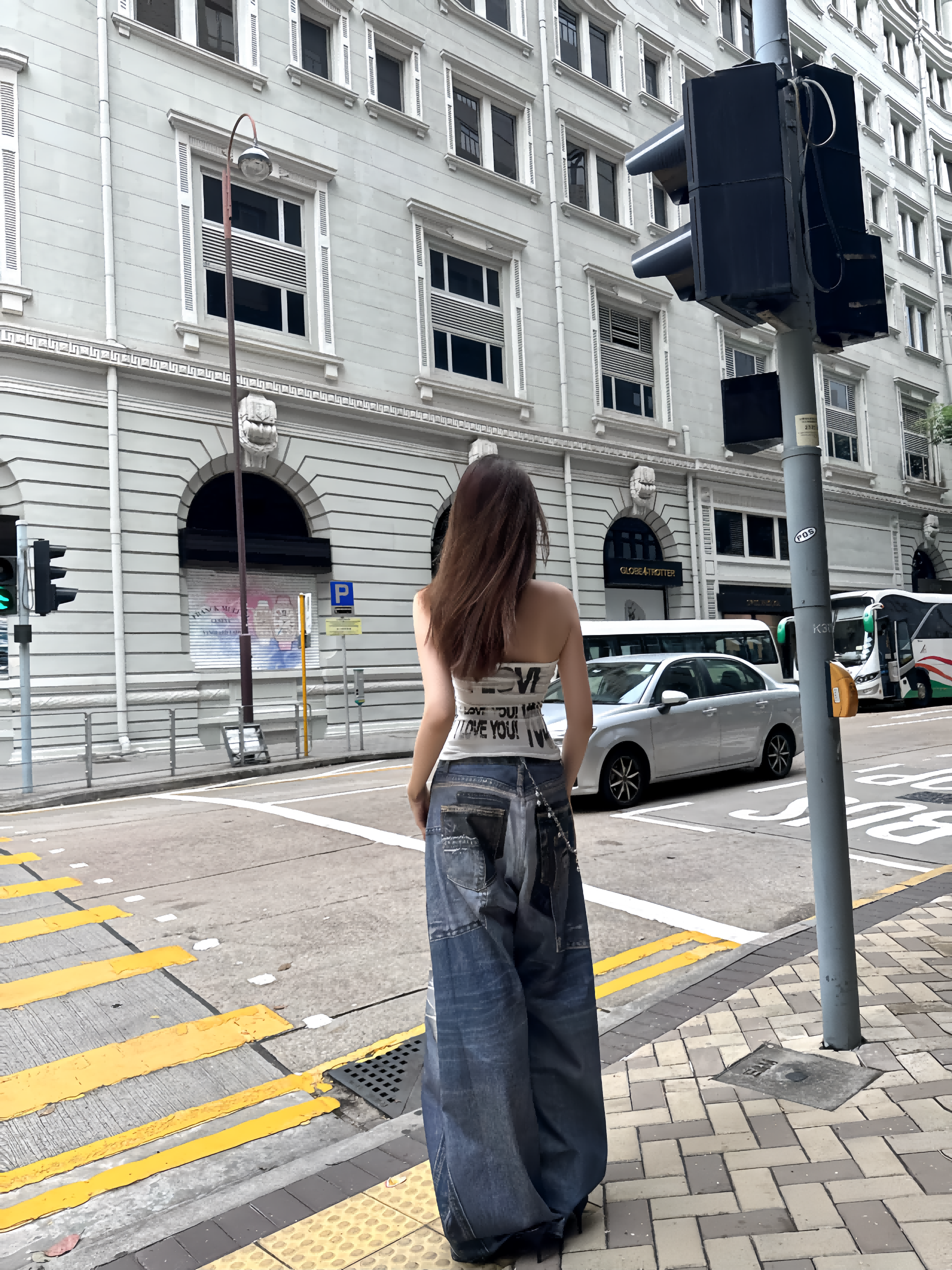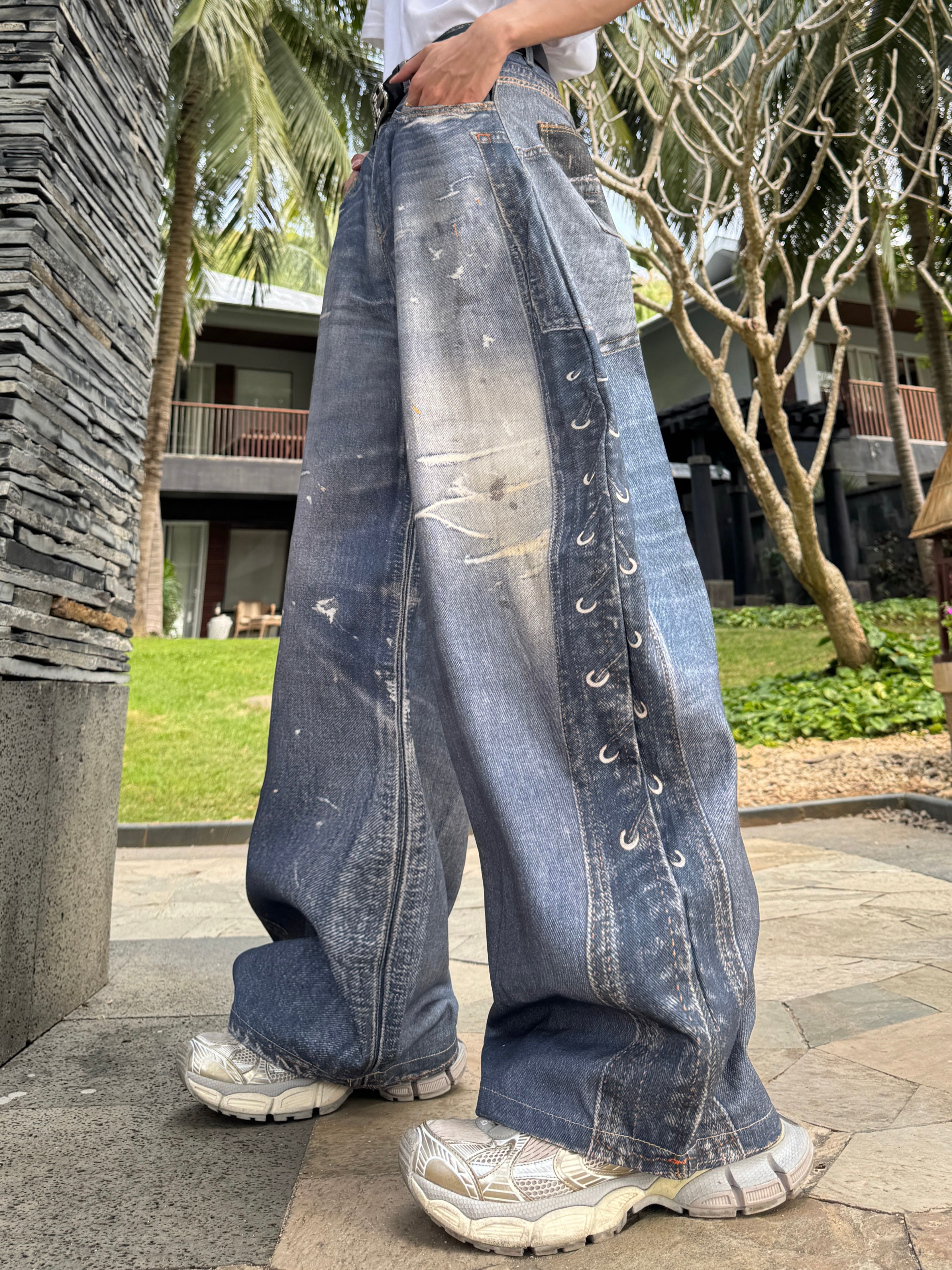 3D Print Wash Wide Leg Denim Jeans WN20741