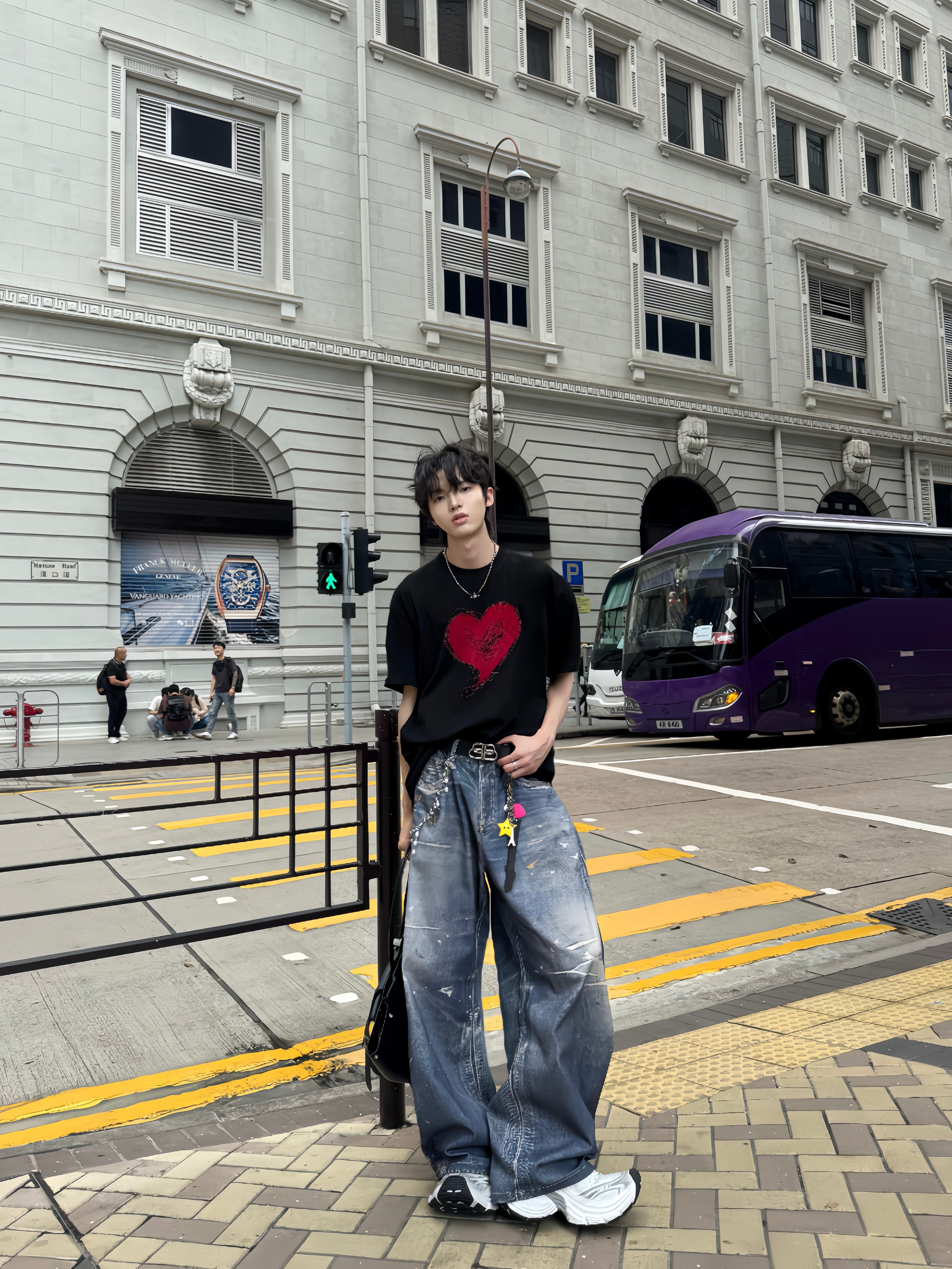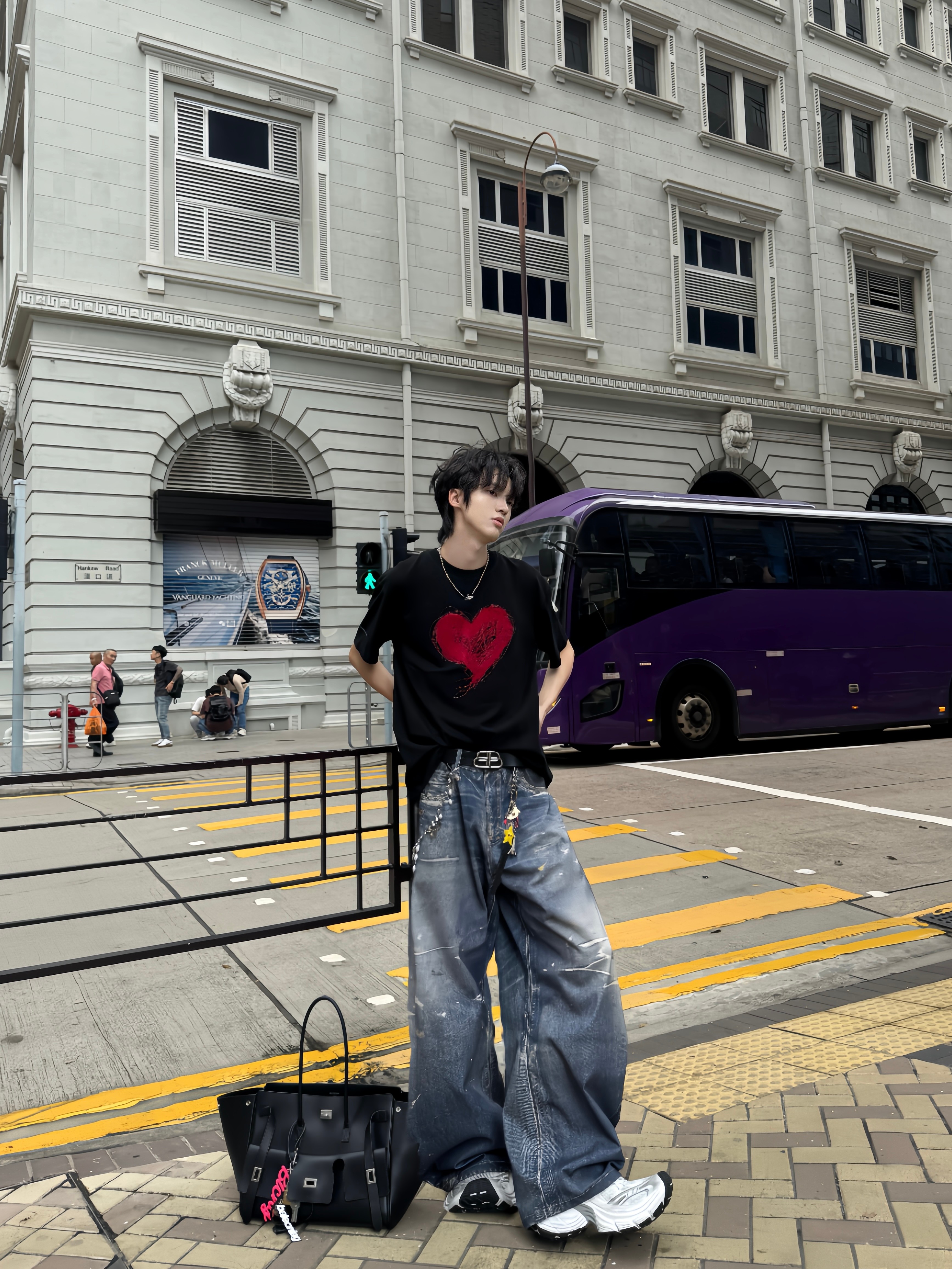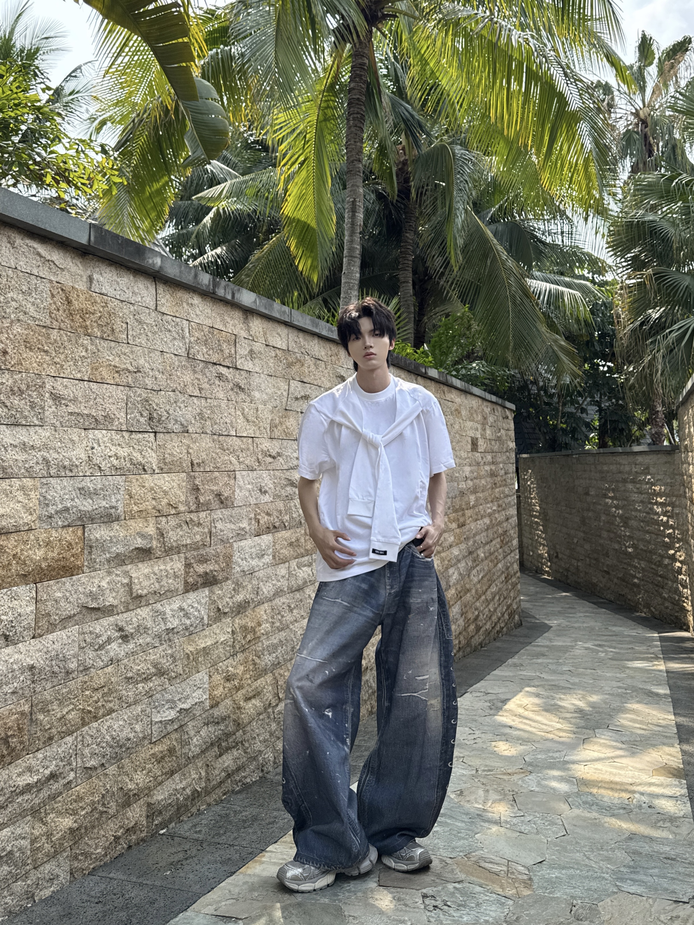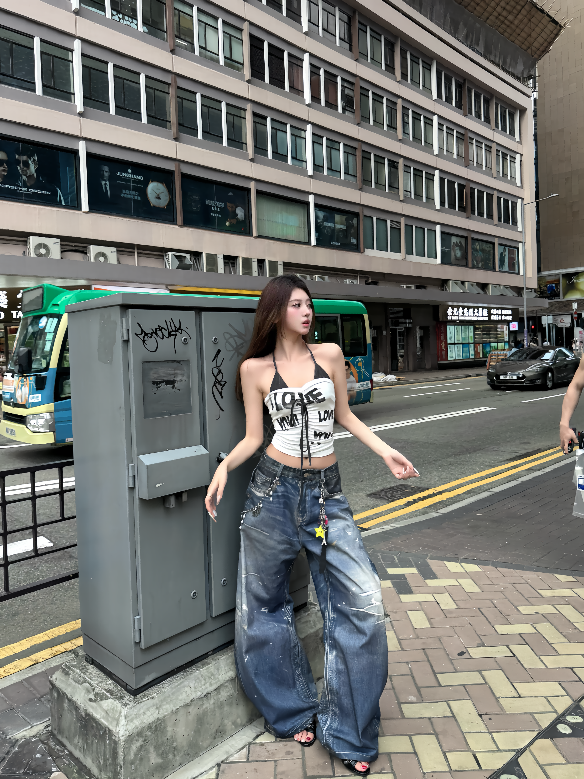 3D Print Wash Wide Leg Denim Jeans WN20741