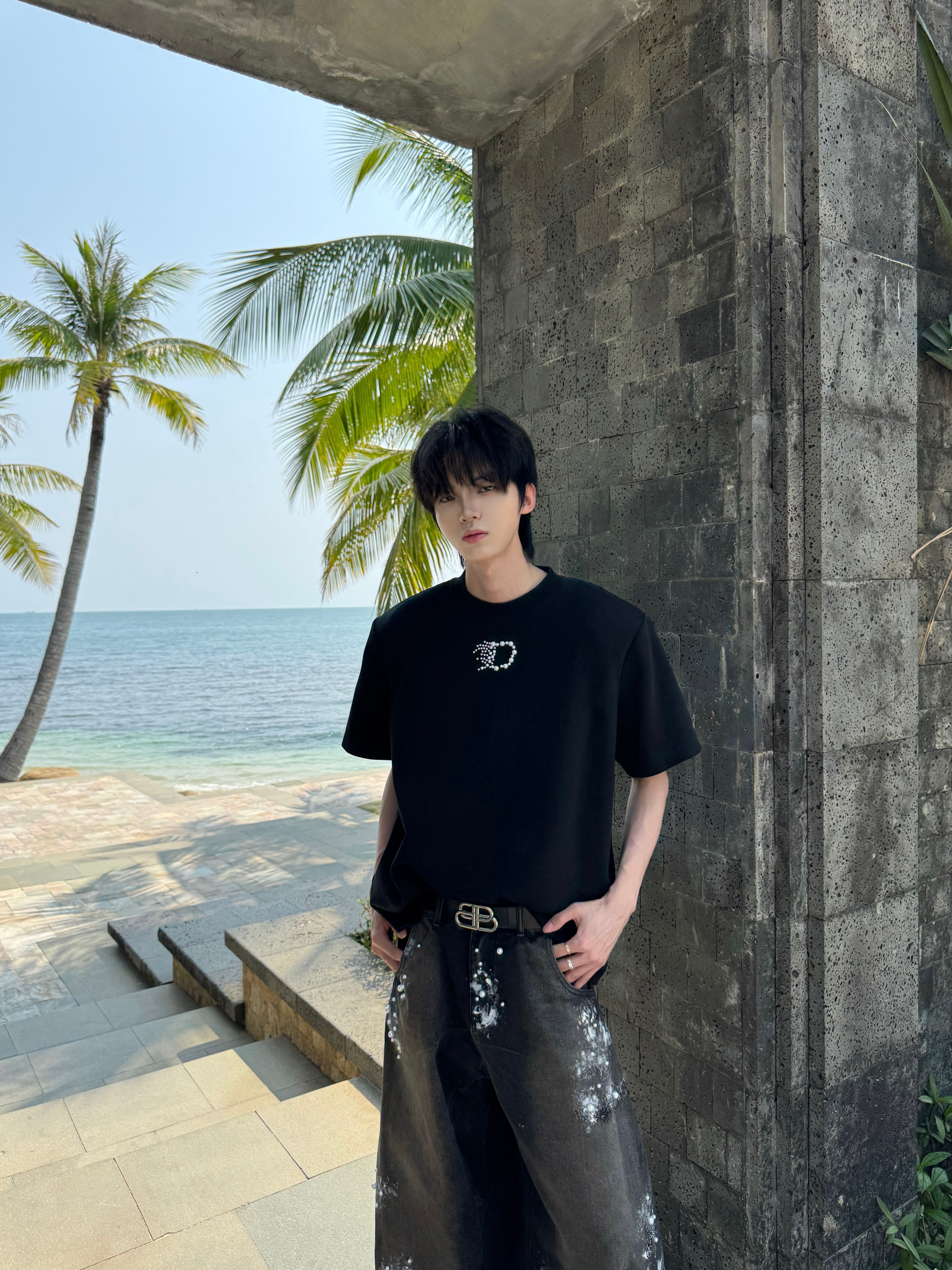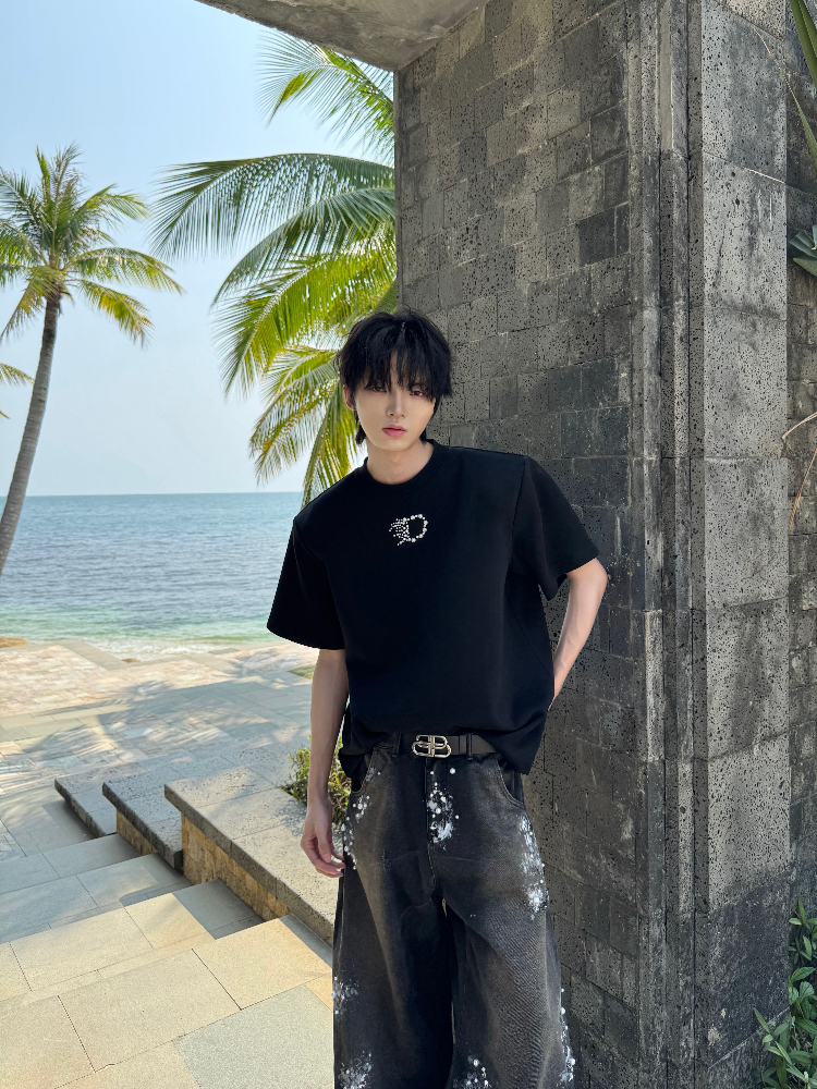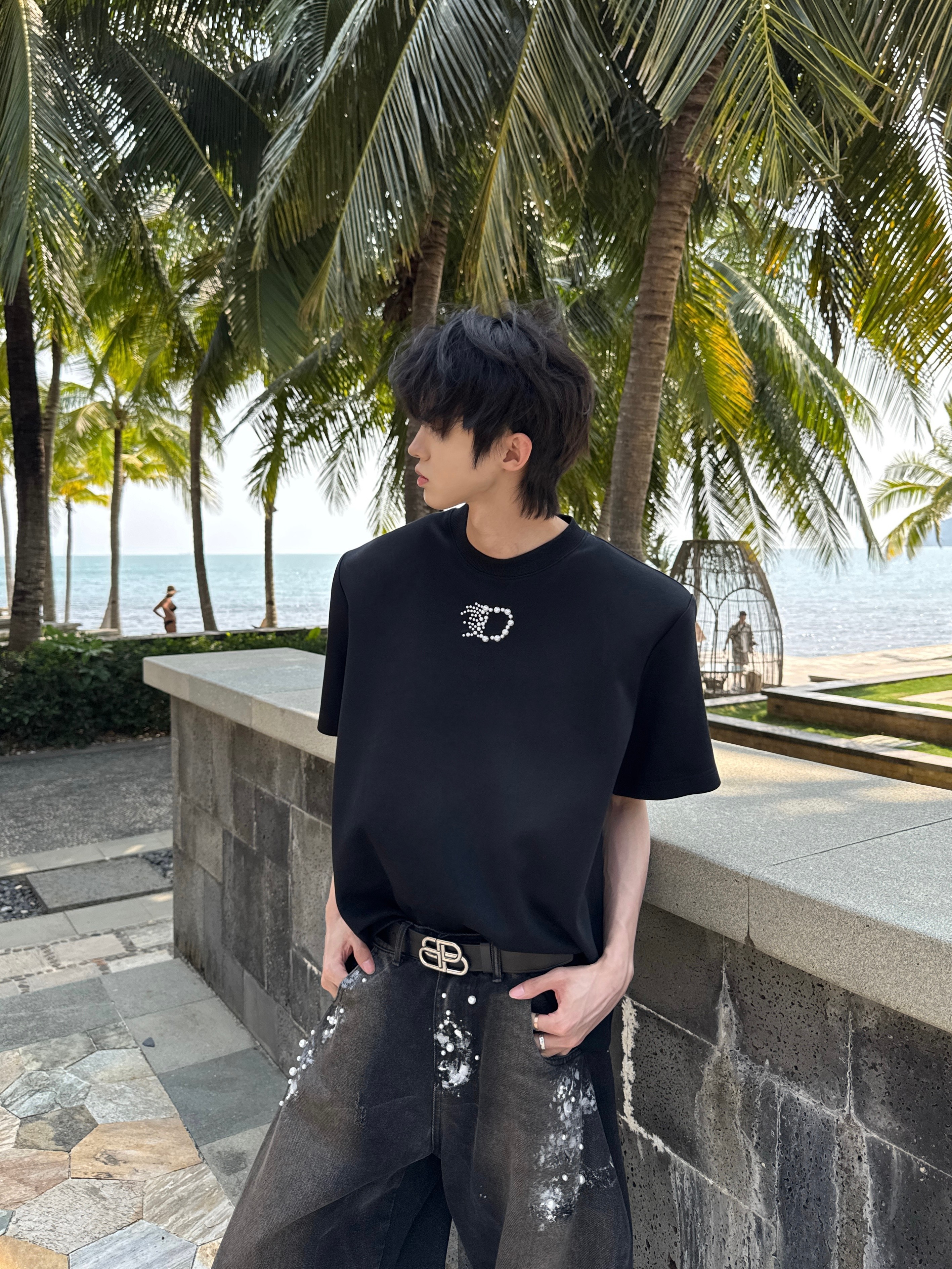 Pearl Embroidery Heavyweight Short Sleeve T-Shirt WN20742