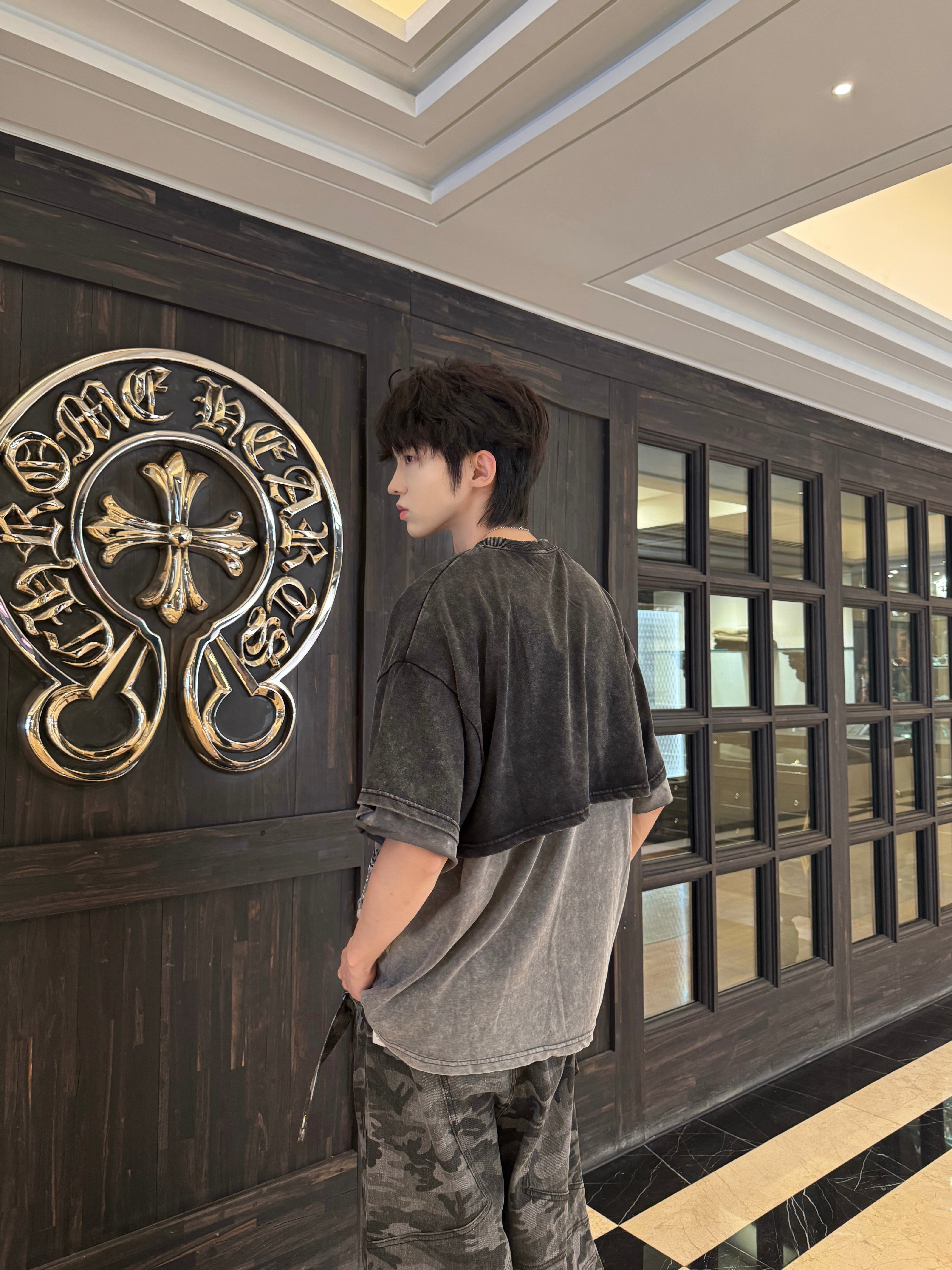 Fake Layered Letter Print Wash Oversize Short Sleeve T-Shirt WN20751