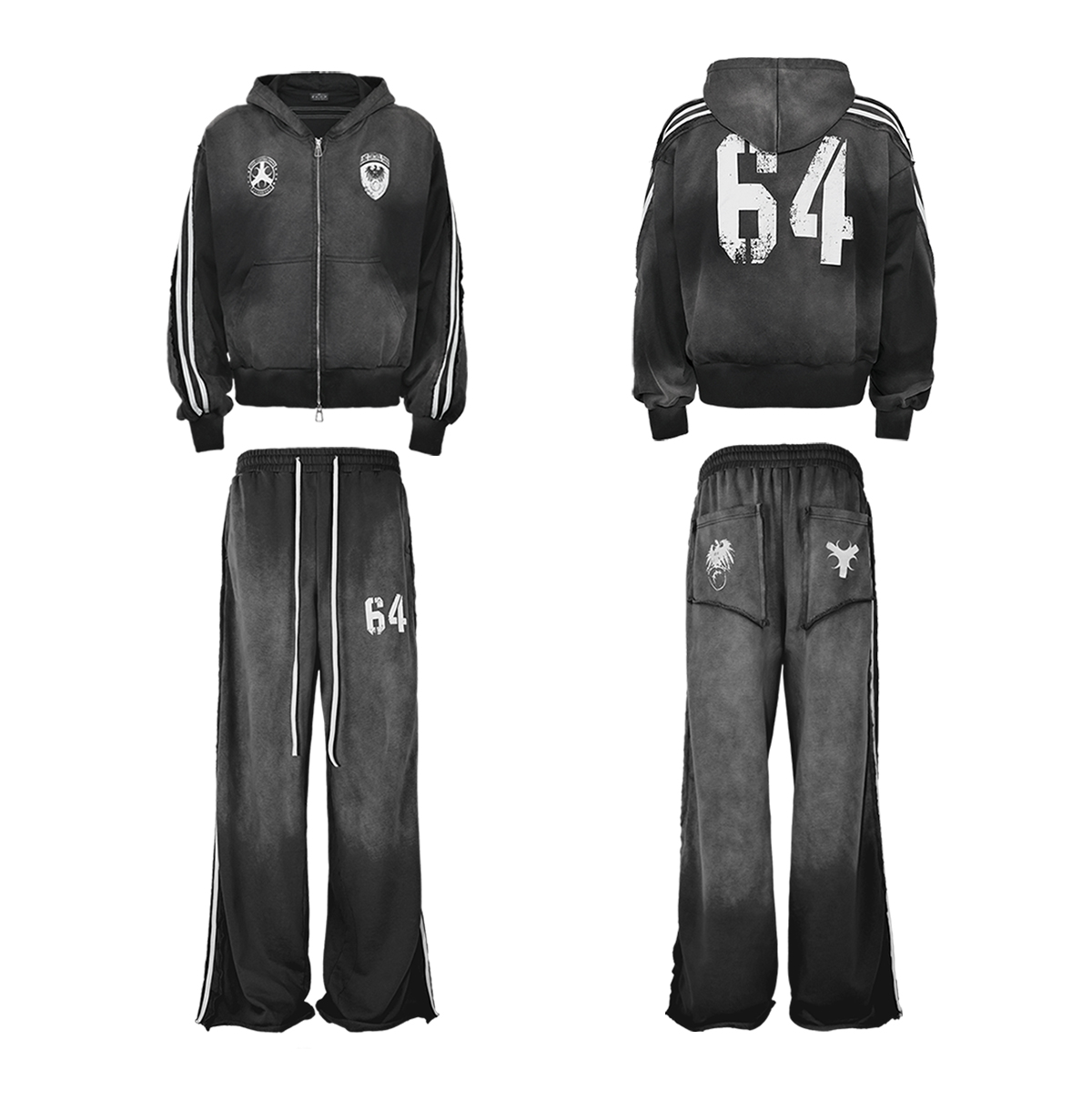 Washed Stripe Print Zipper Hoodie & Sweaetpants Setup WN20833