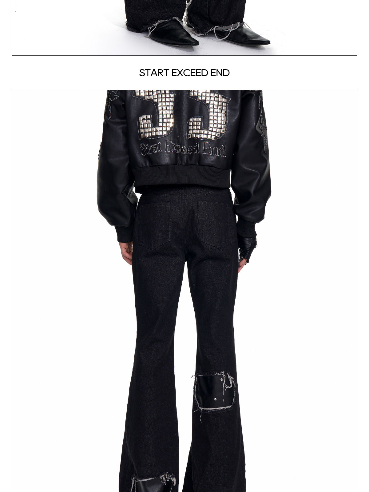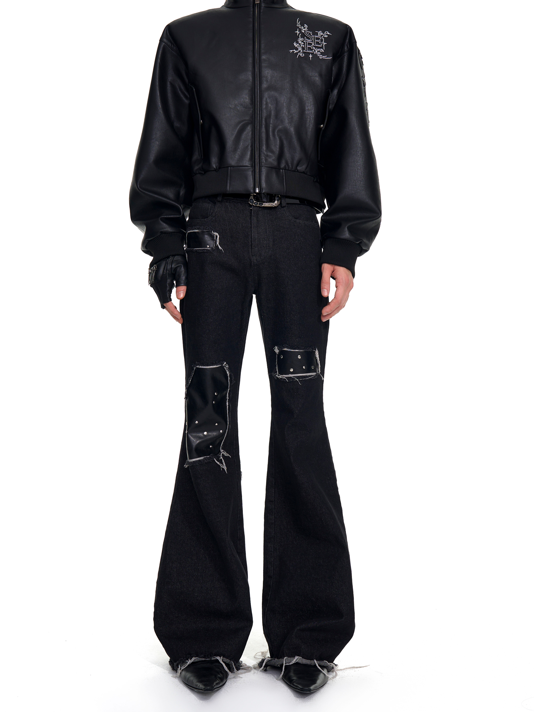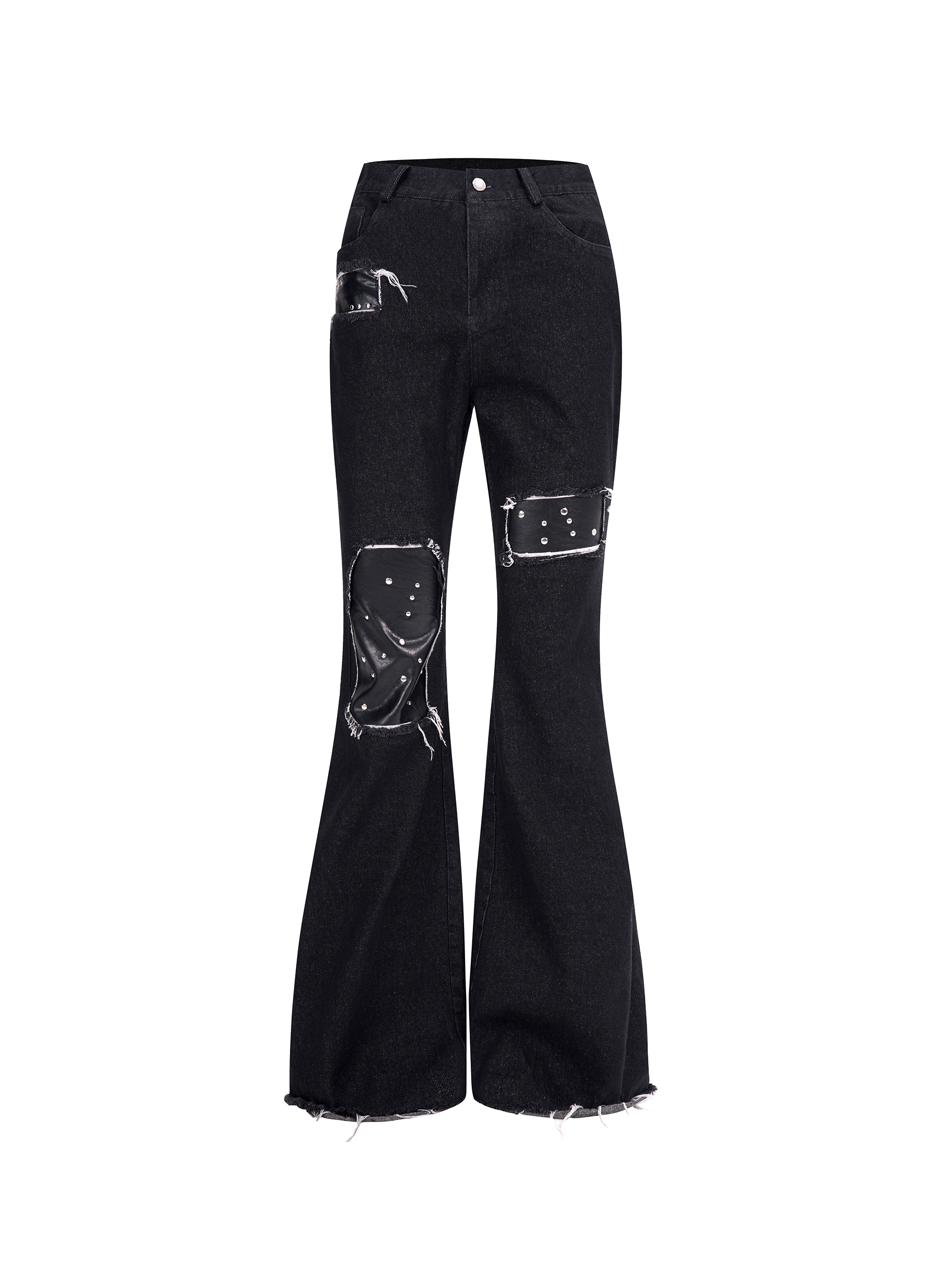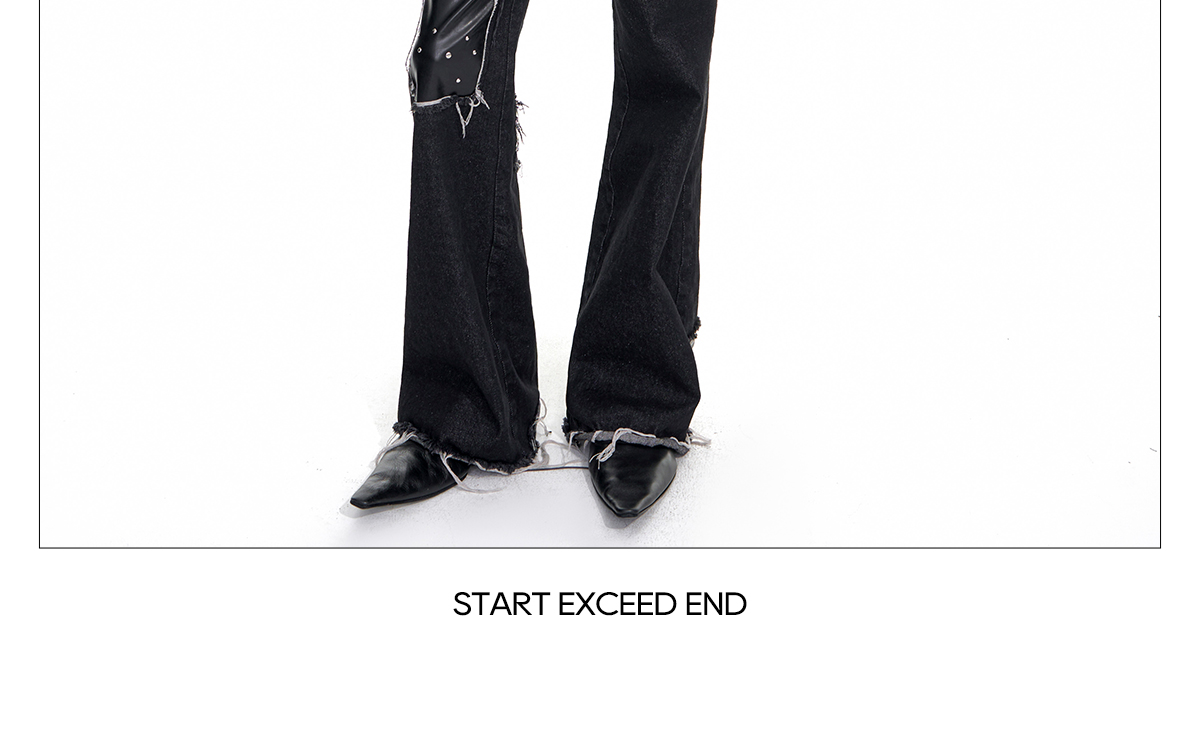 Studs Mix Fringe Flare Denim Jeans WN20943