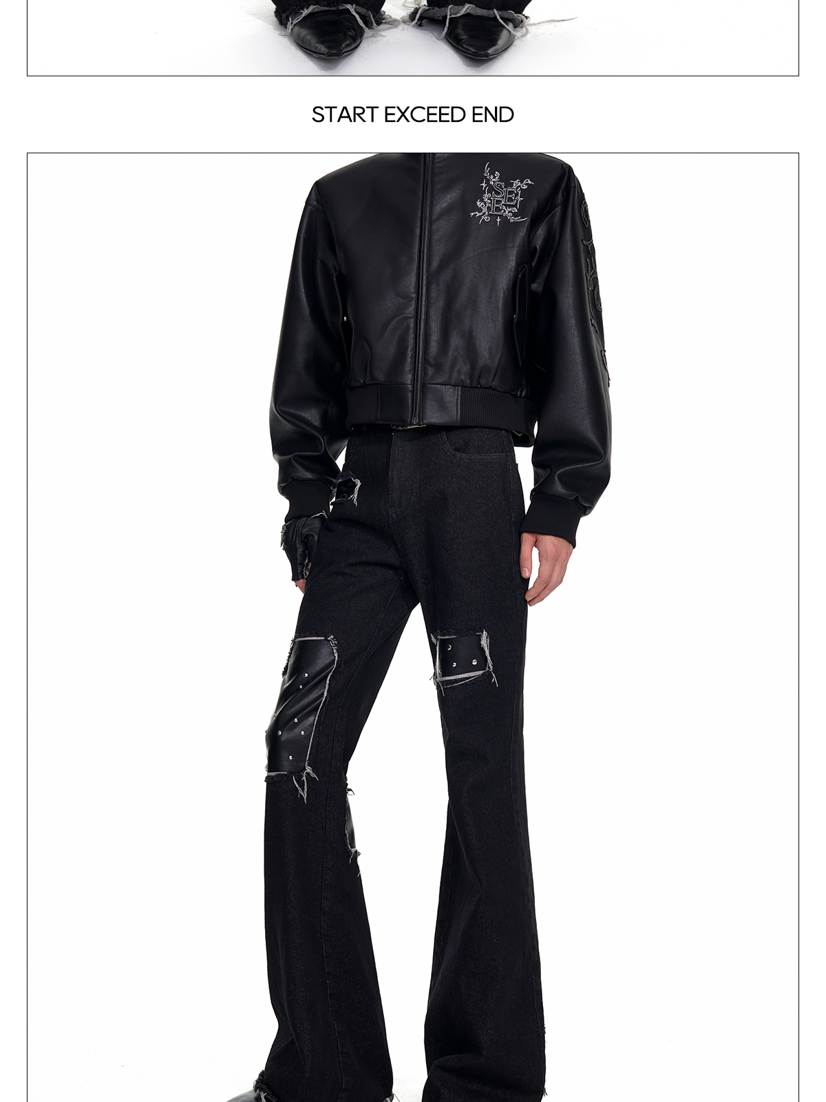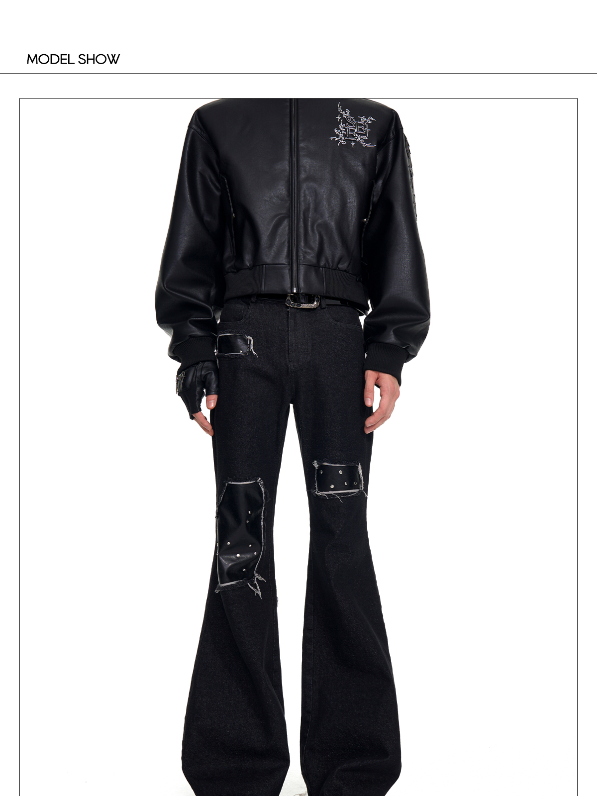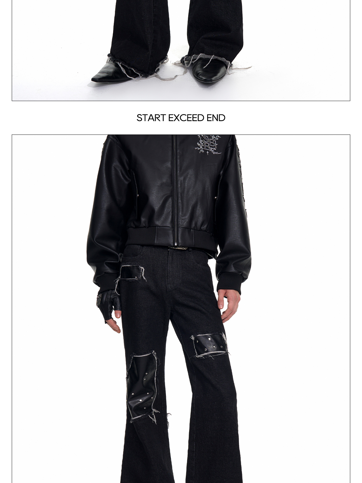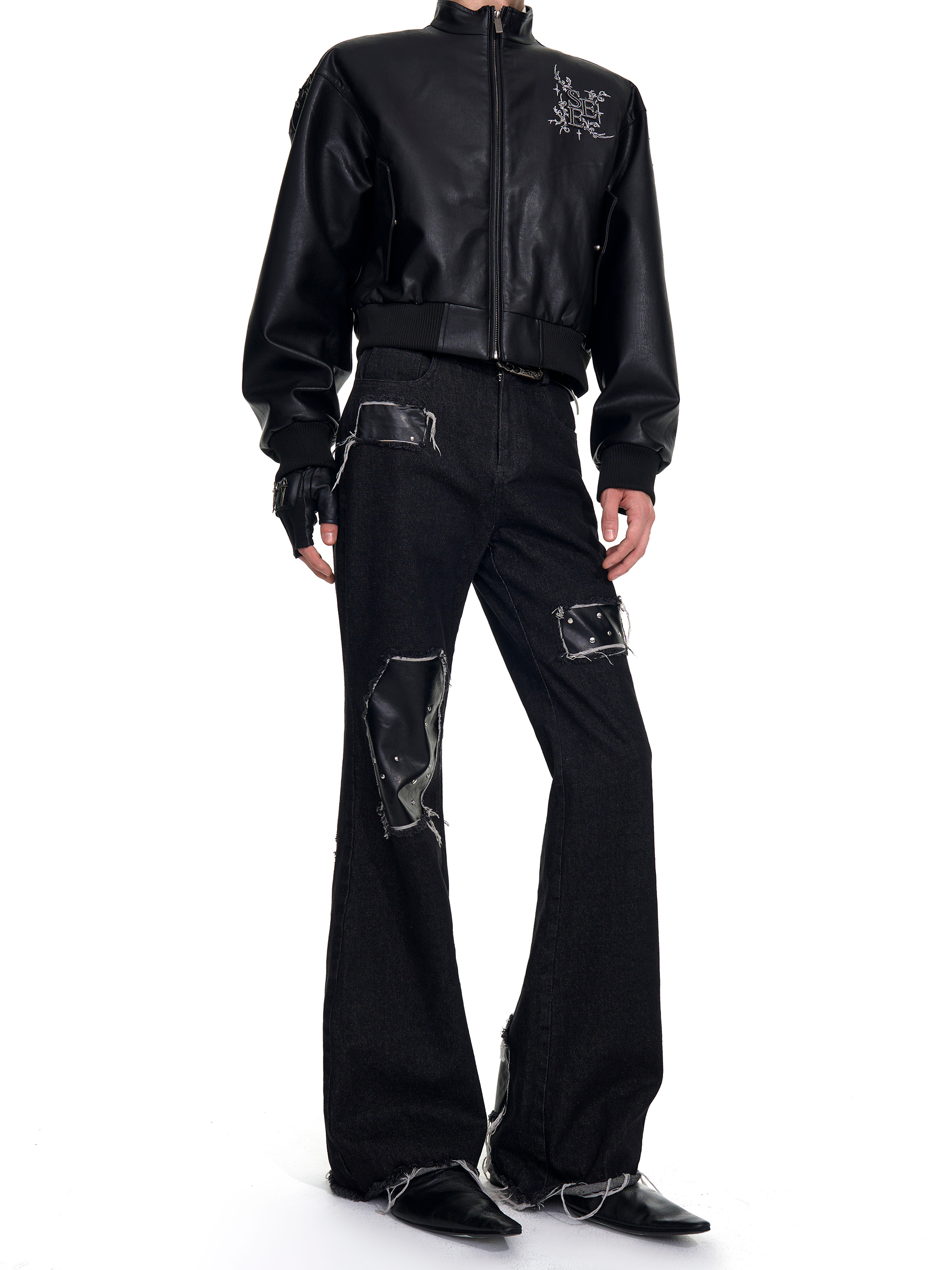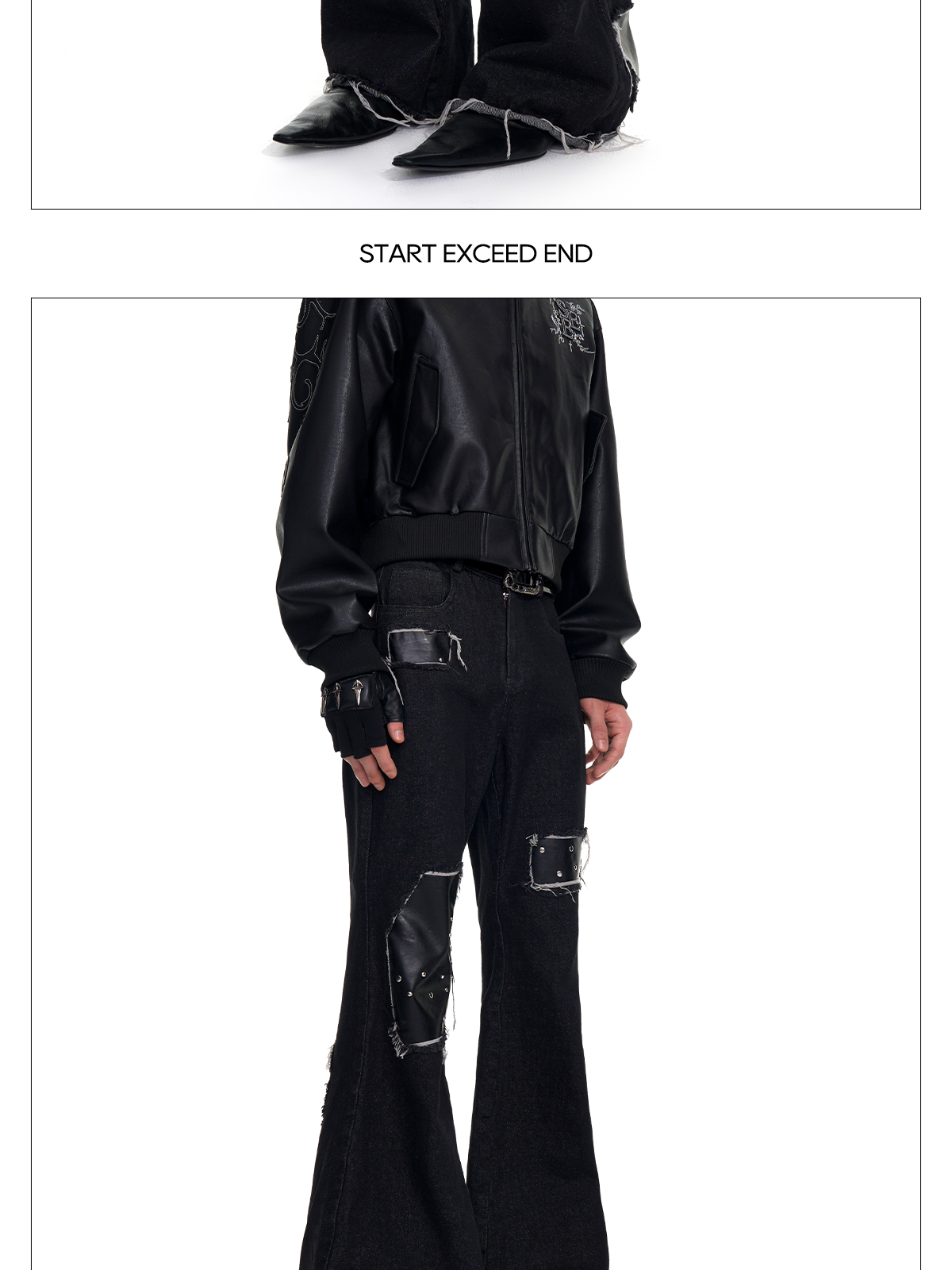 Studs Mix Fringe Flare Denim Jeans WN20943
