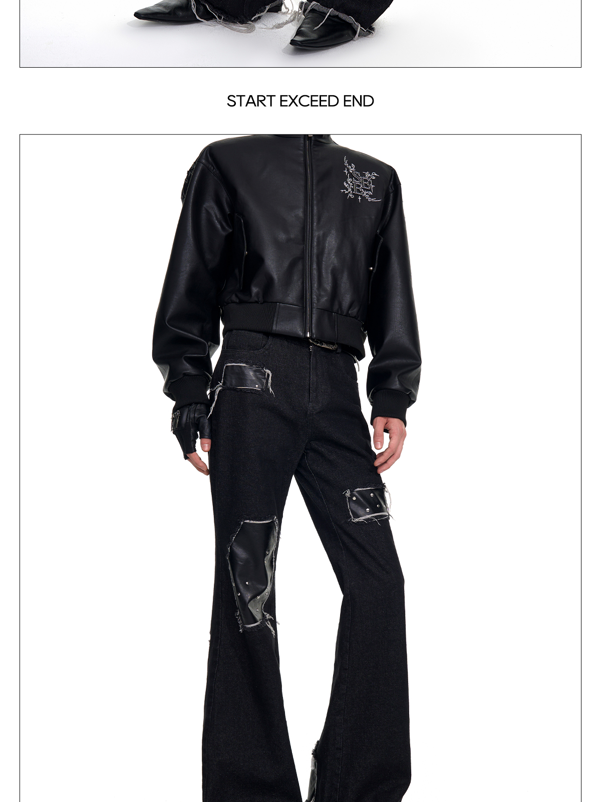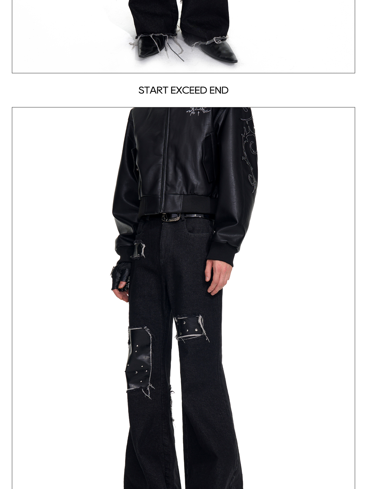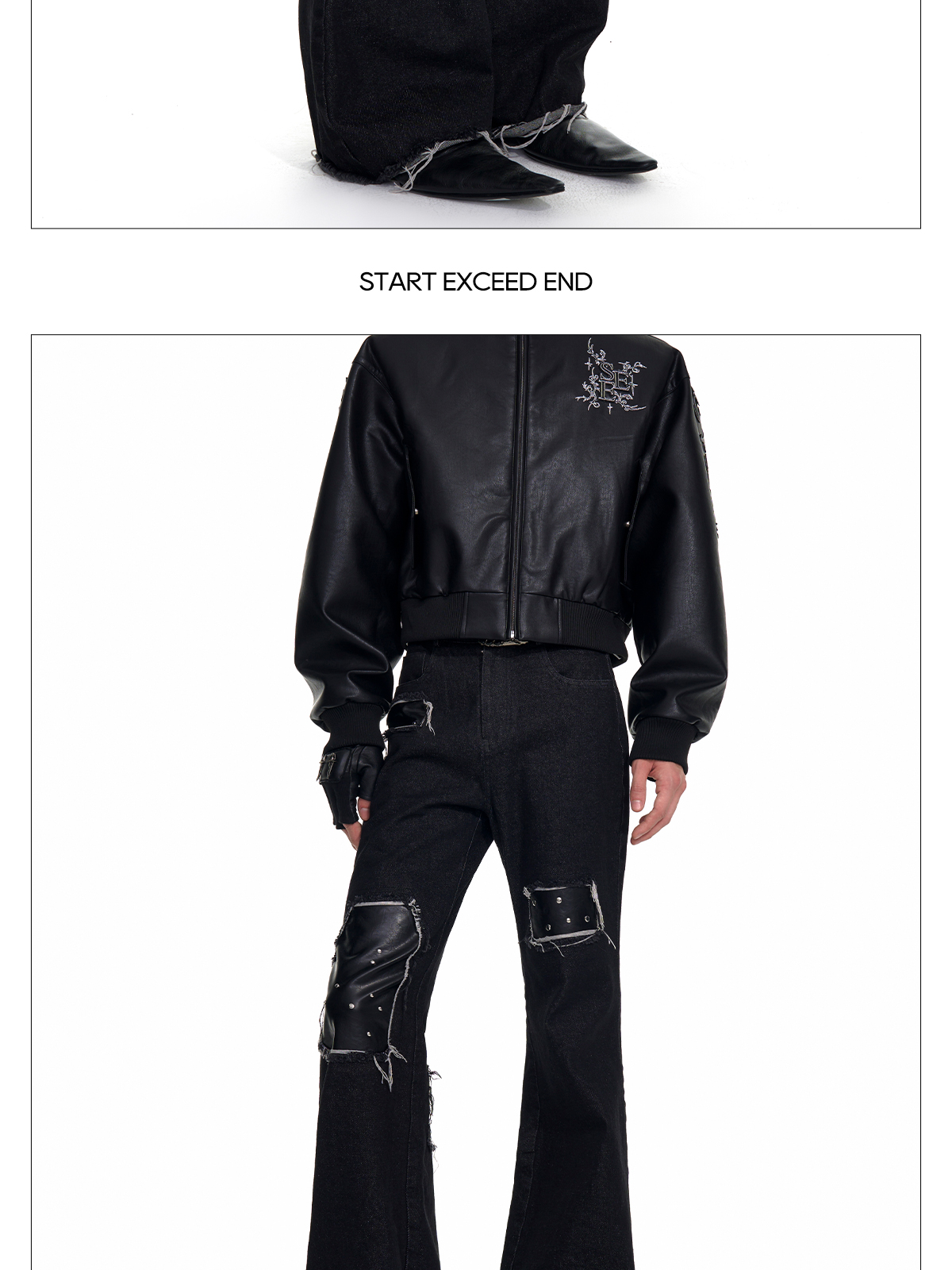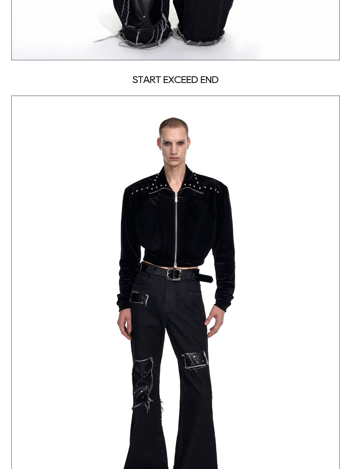 Studs Mix Fringe Flare Denim Jeans WN20943