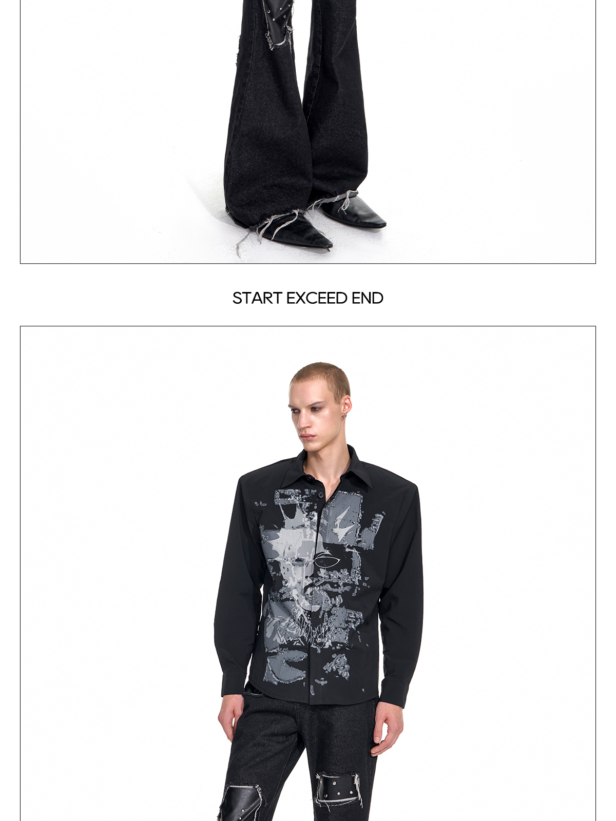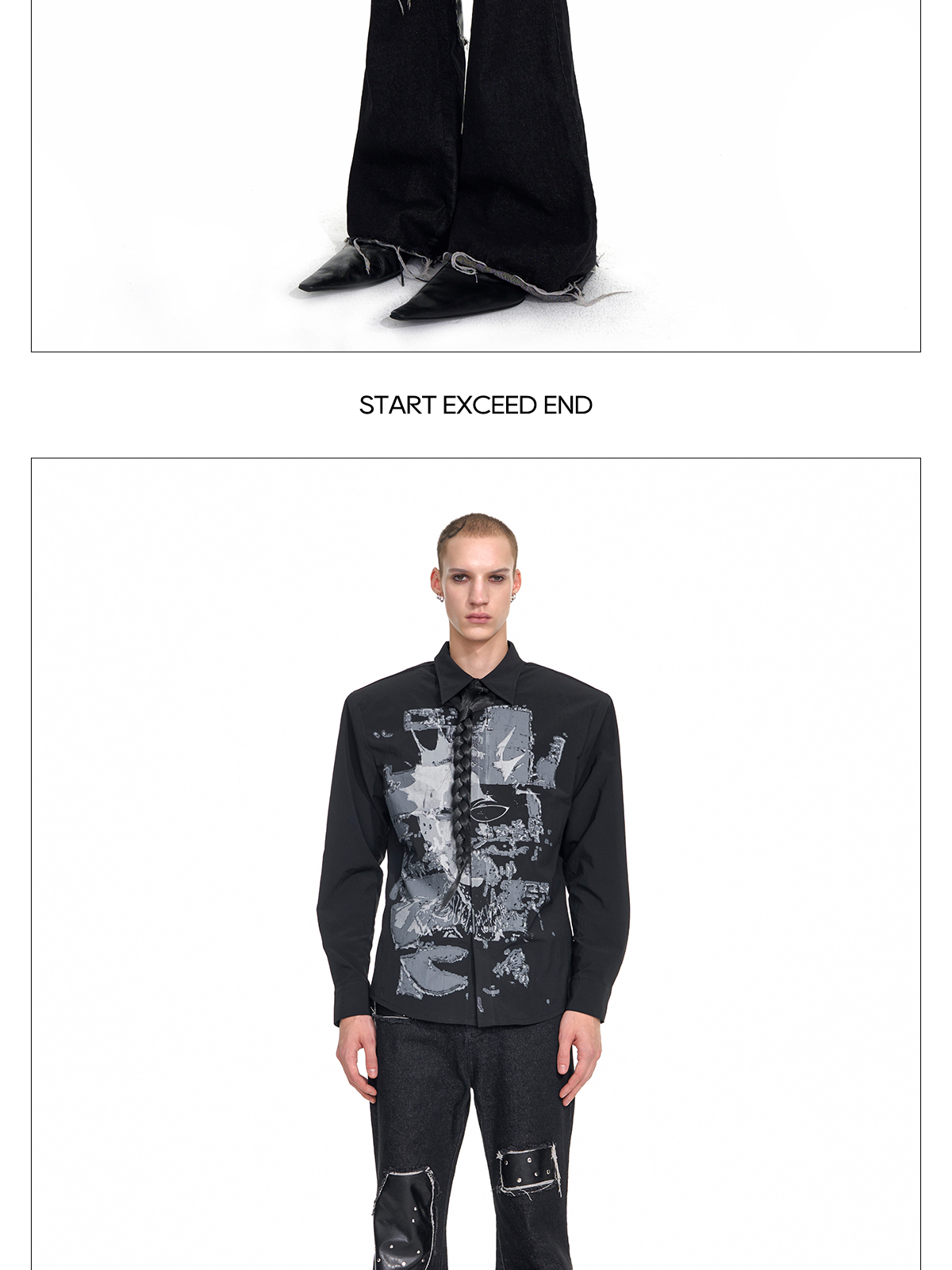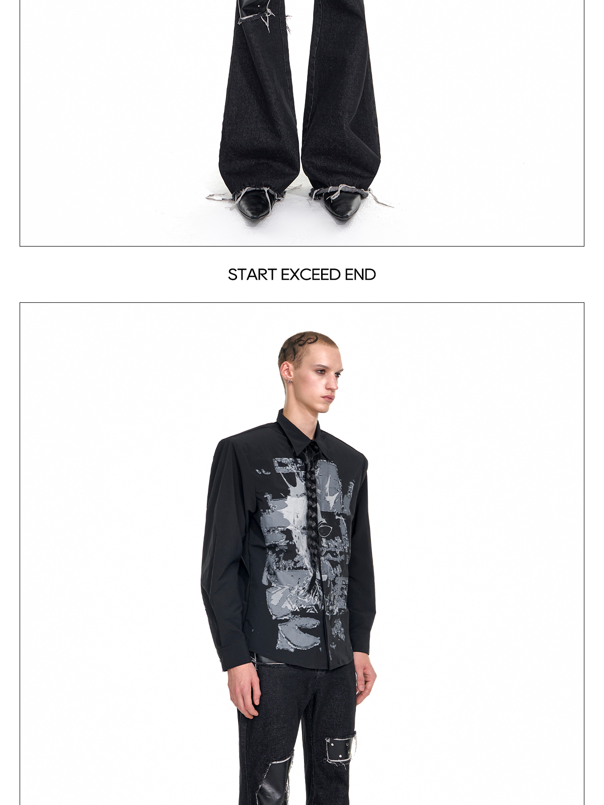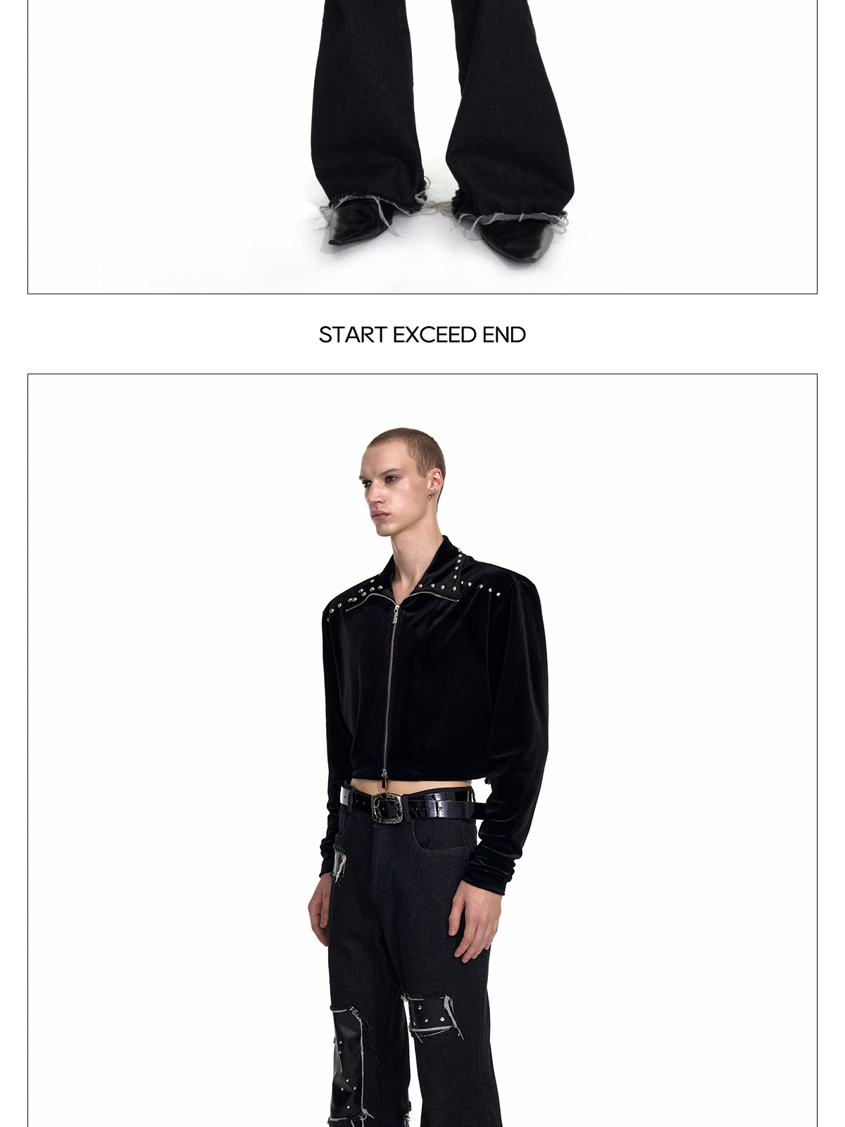 Studs Mix Fringe Flare Denim Jeans WN20943