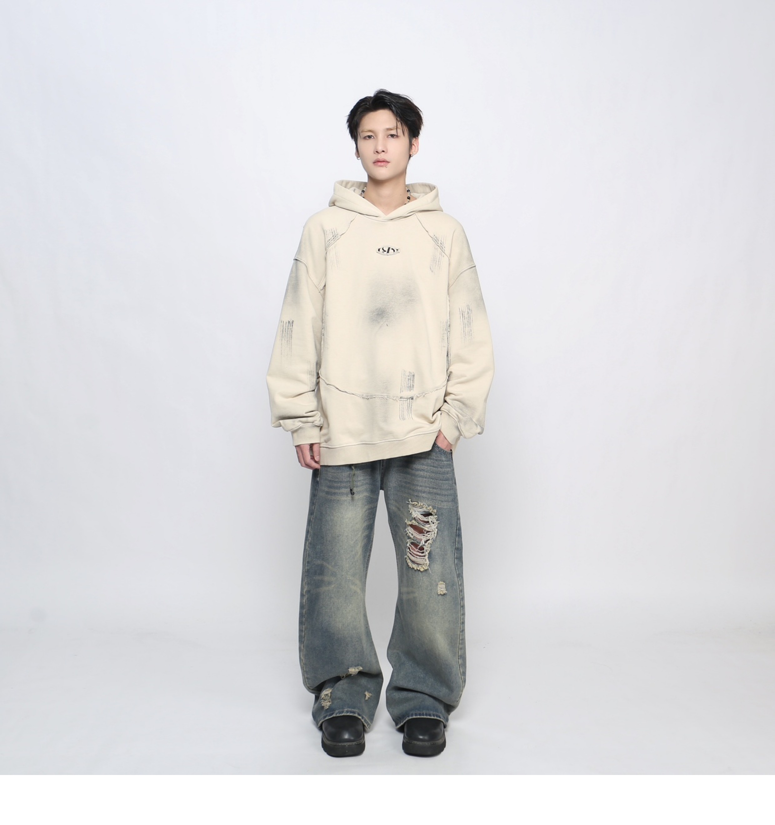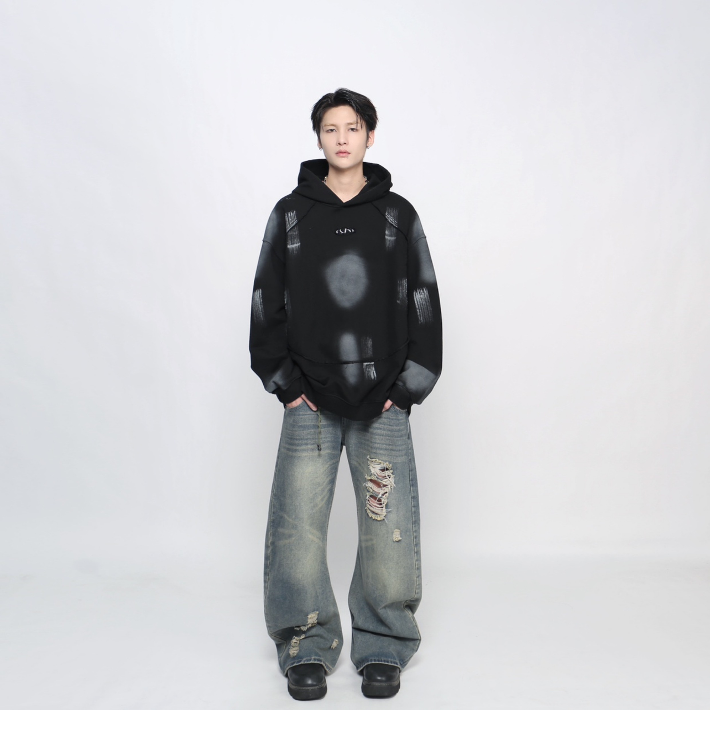 Spray Paint Damage Design Oversize Hoodie WN21039