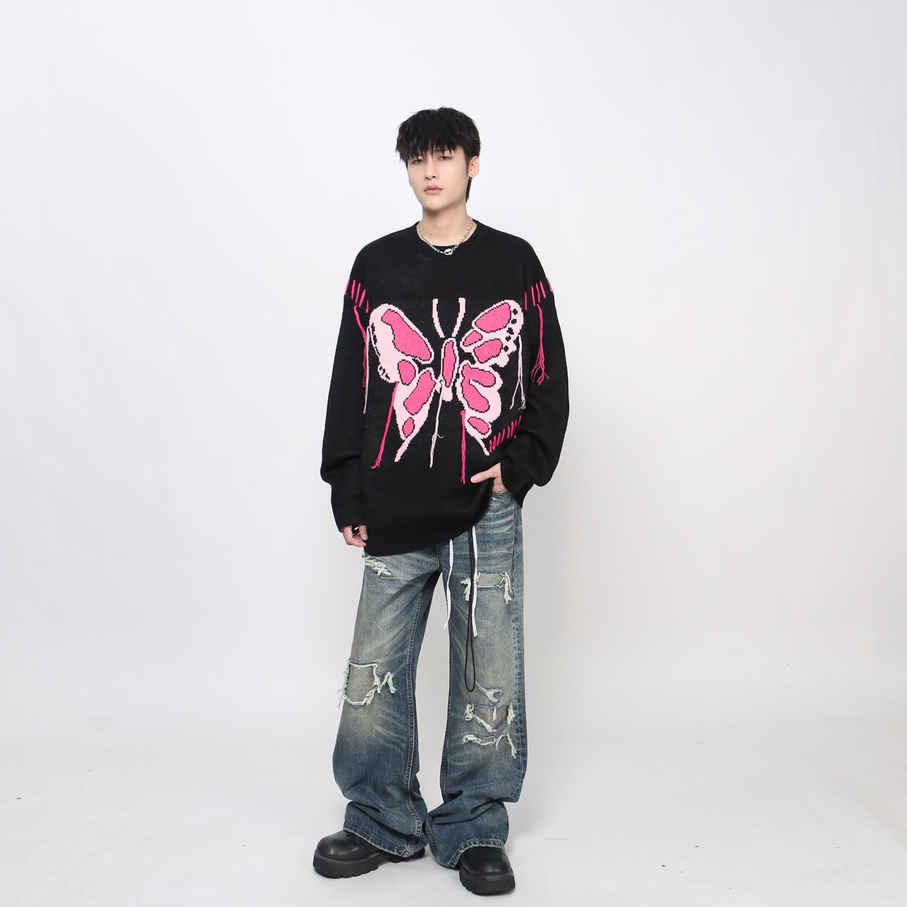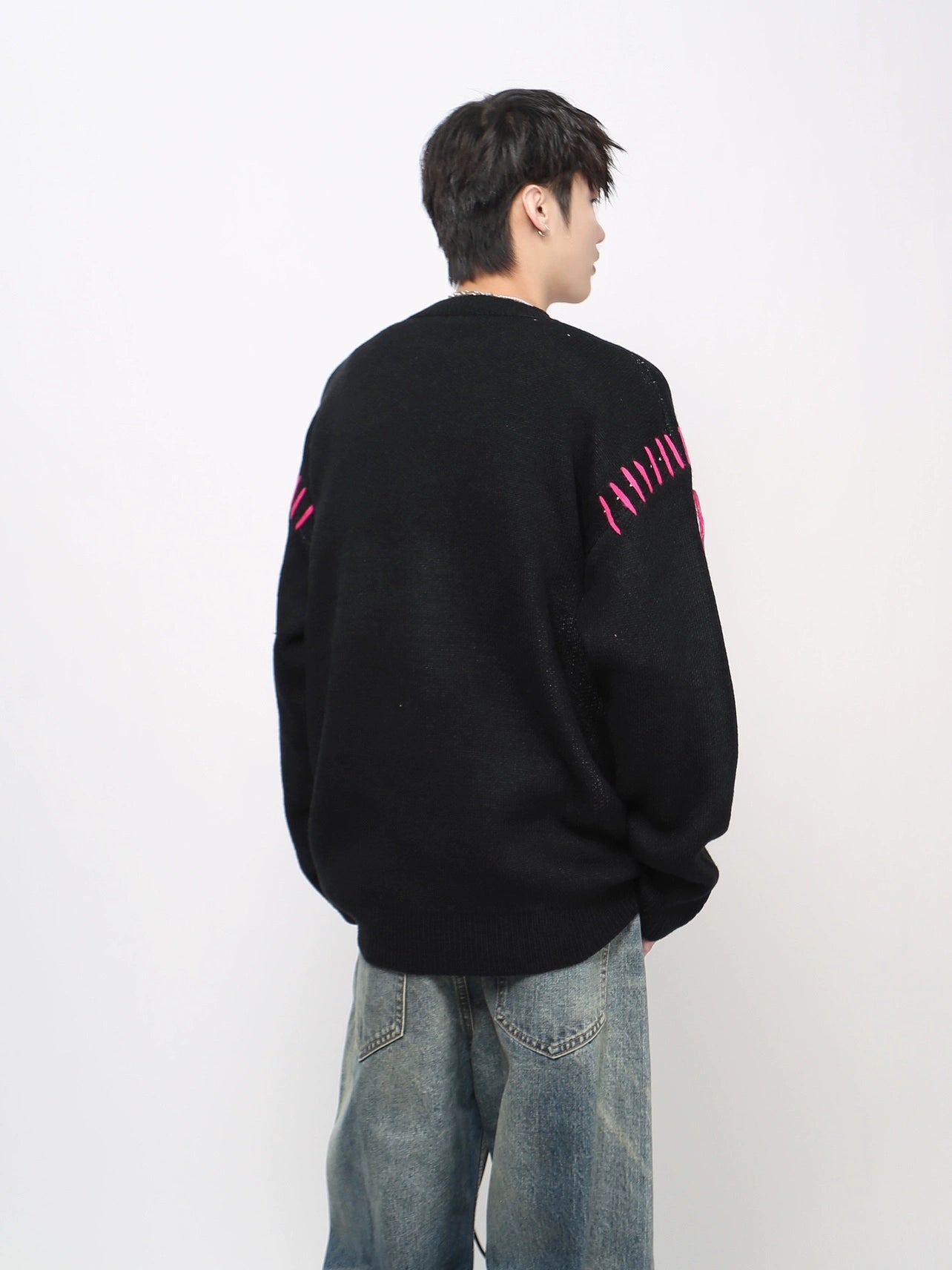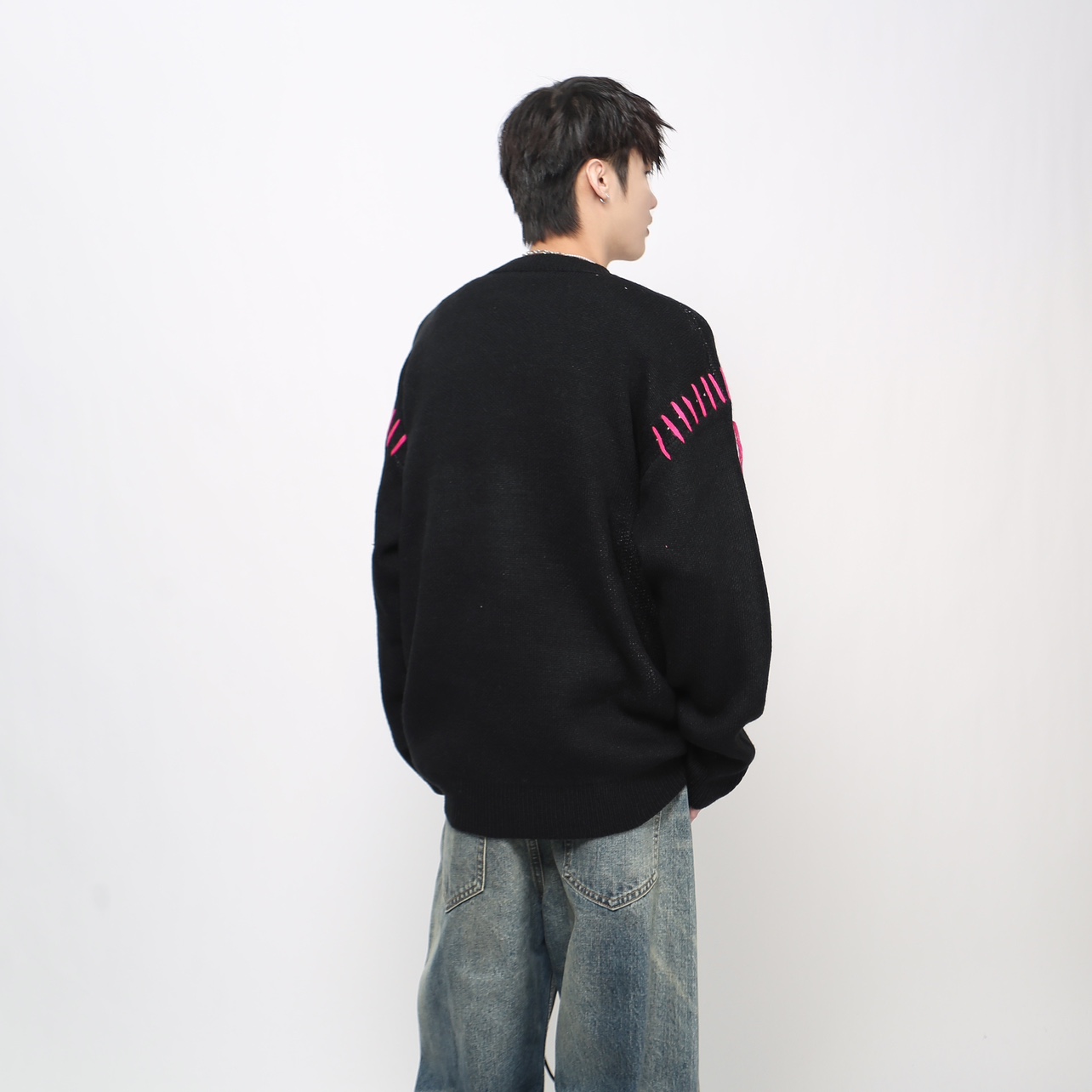 Contrast Oversize Jacquard Knit Sweater WN21056