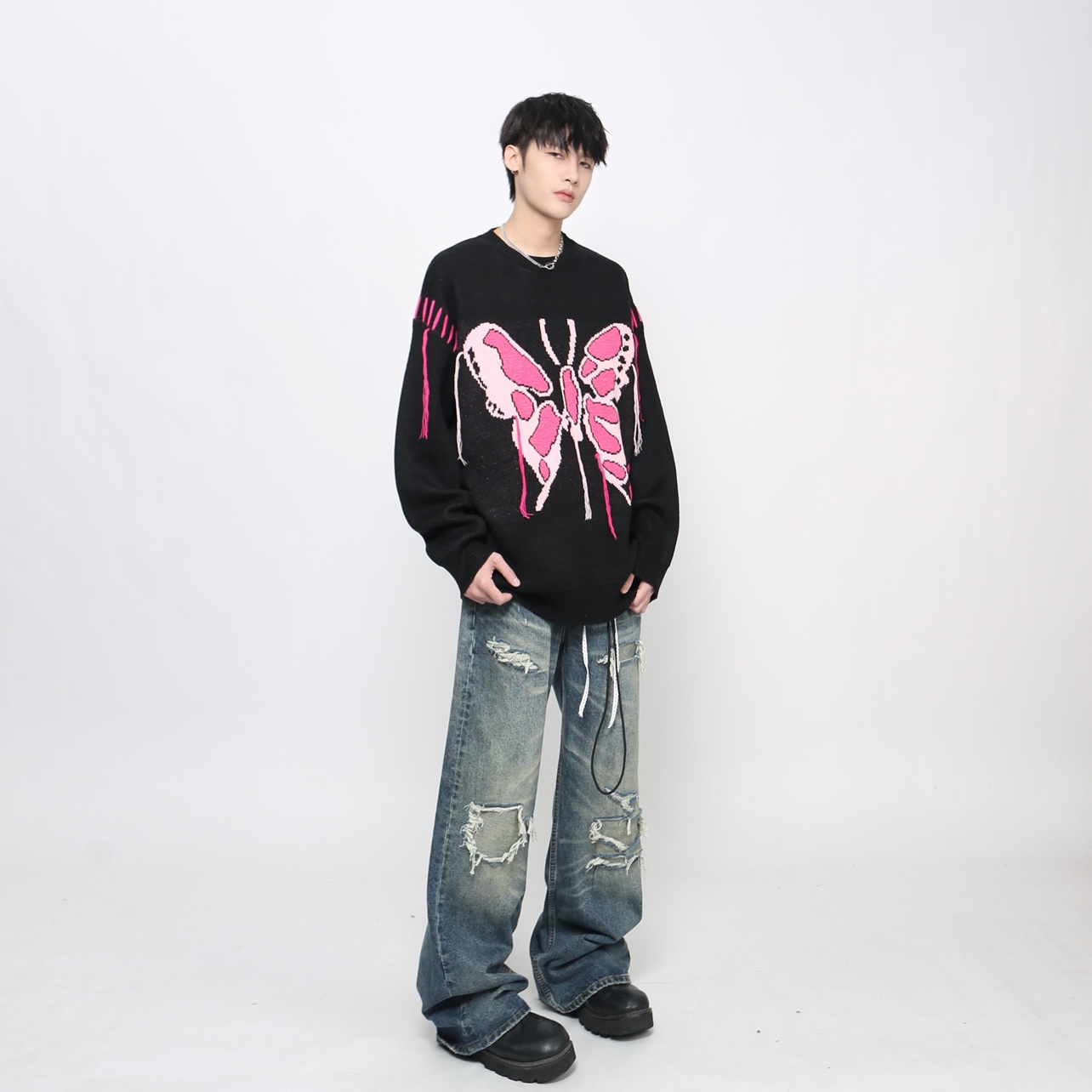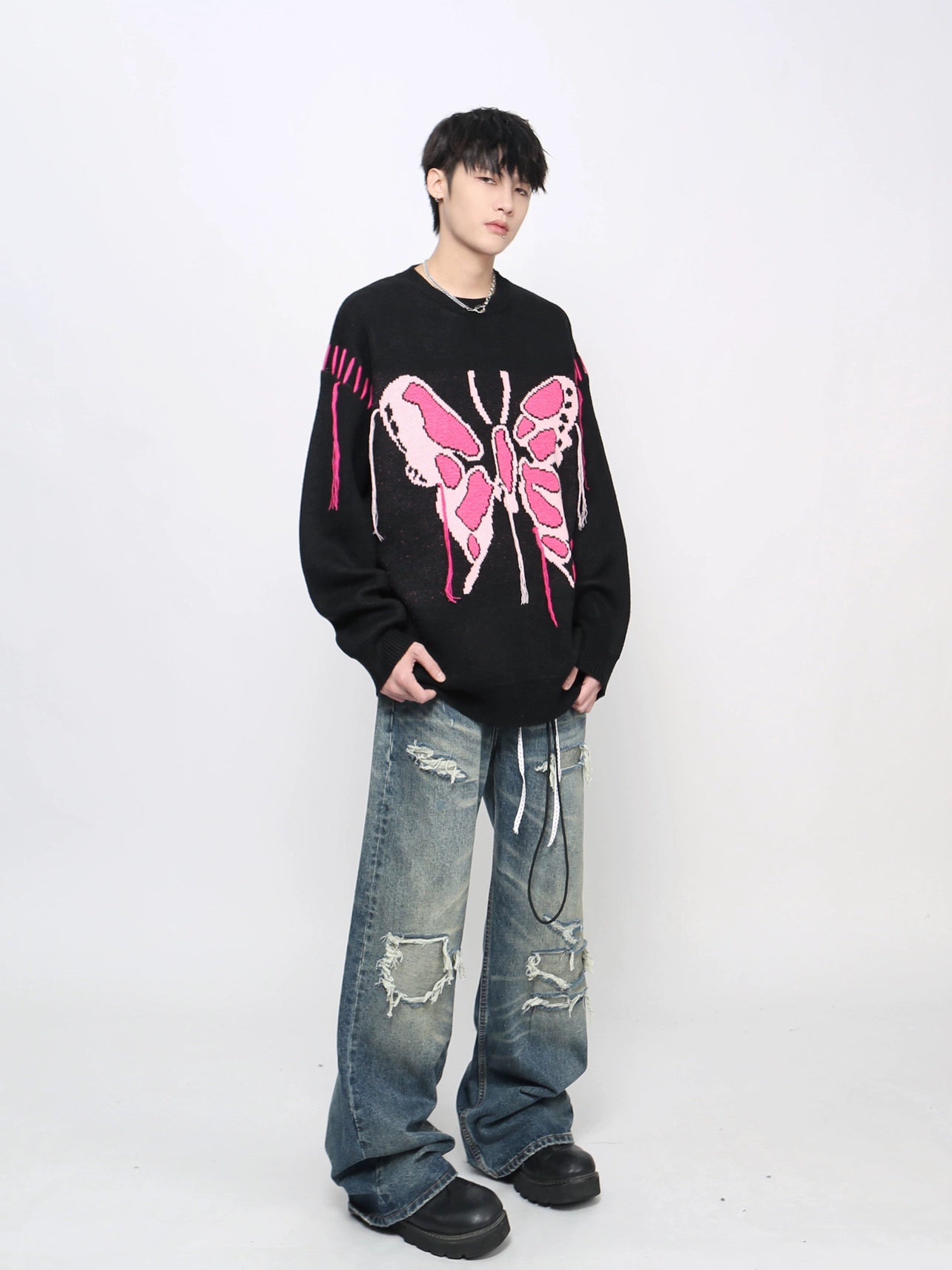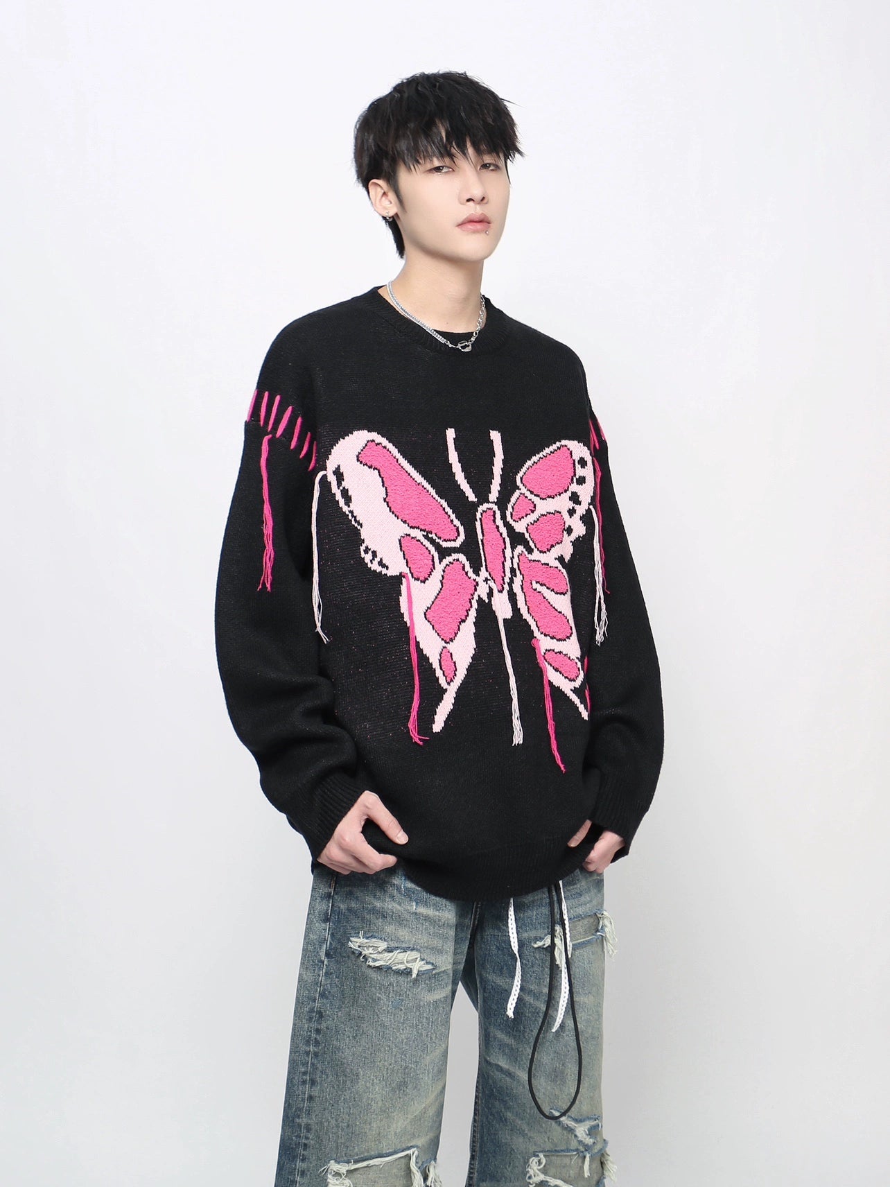 Contrast Oversize Jacquard Knit Sweater WN21056