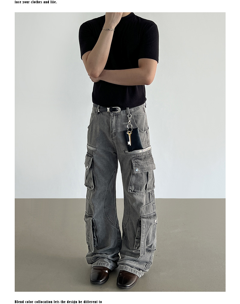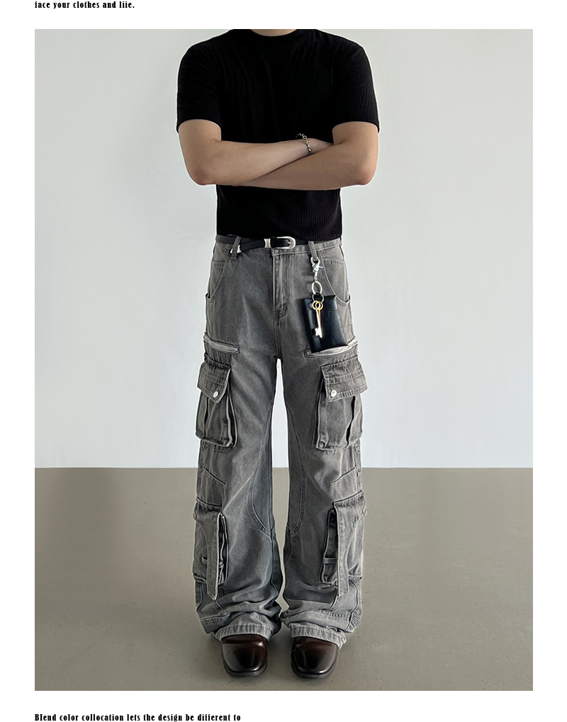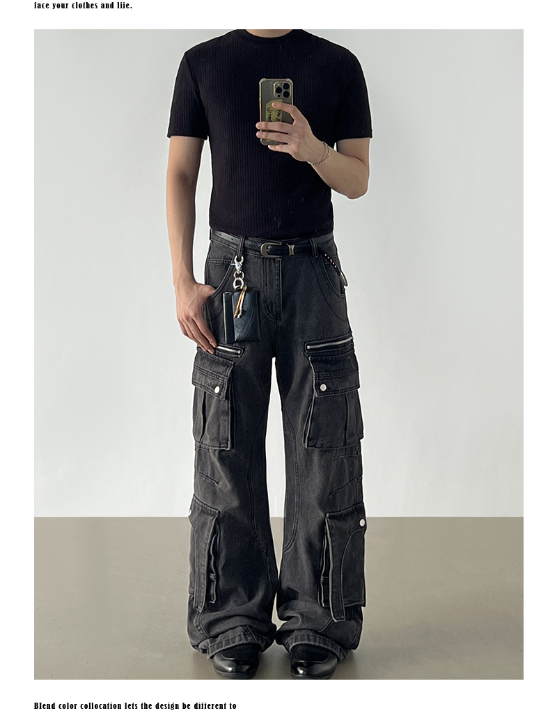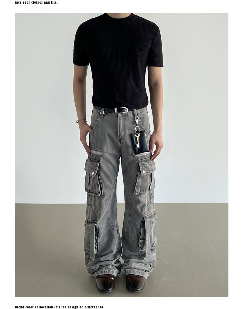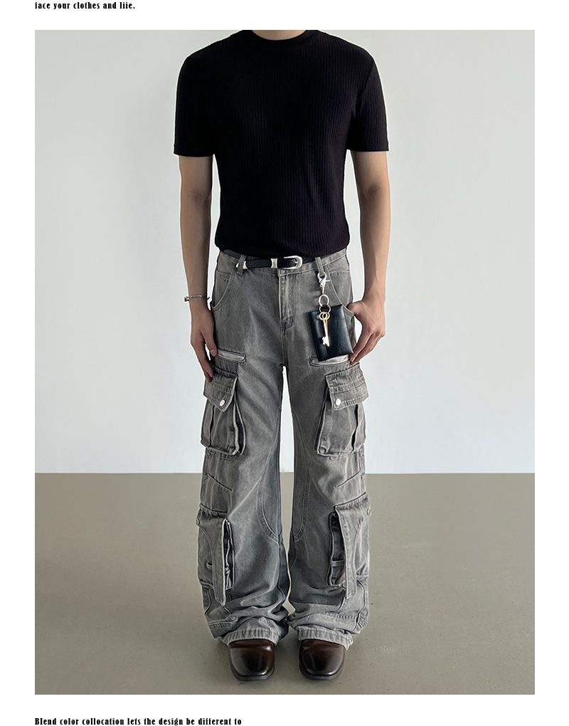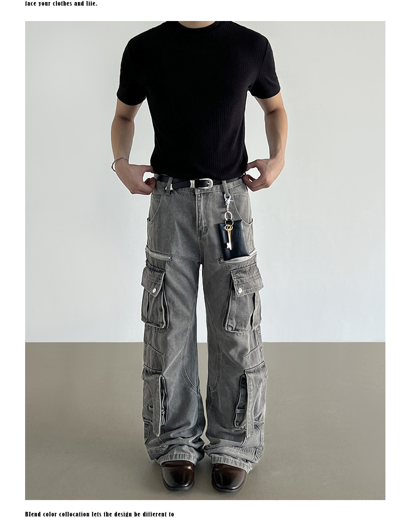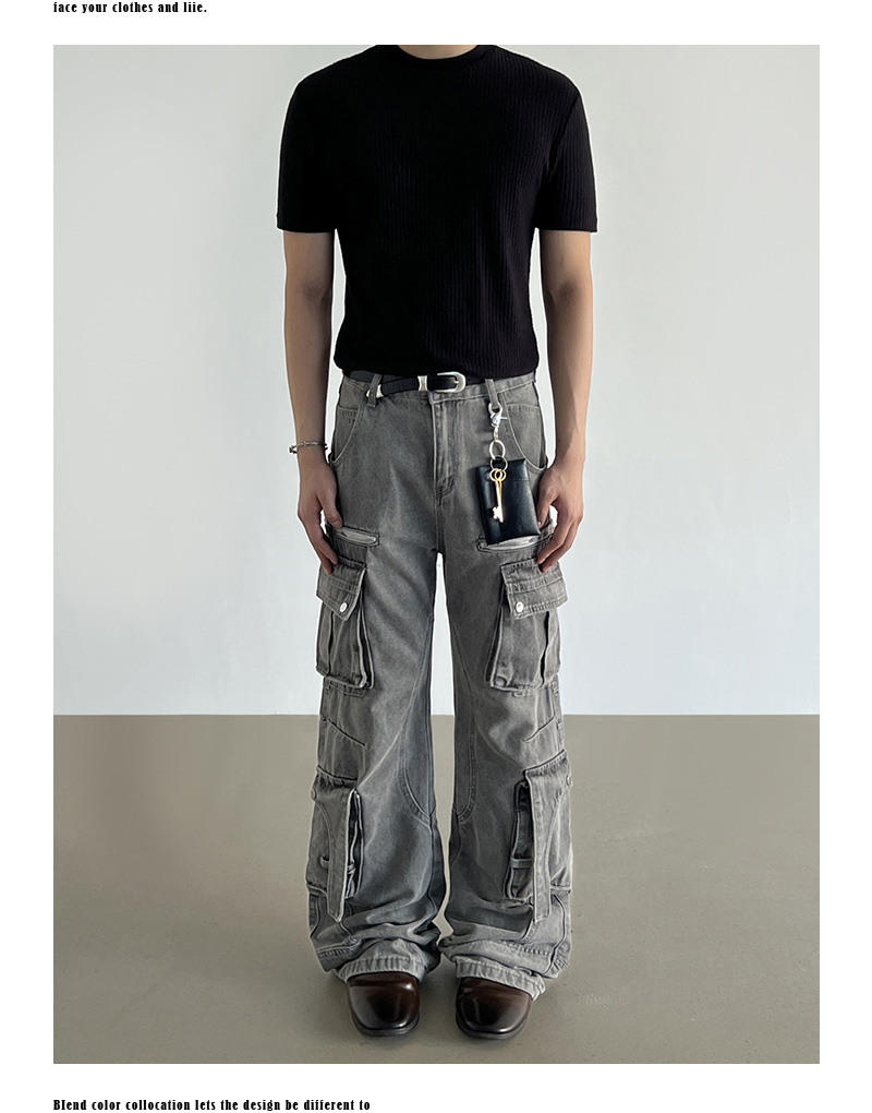 Washed Multi Pocket Denim Cargo Jeans WN21204