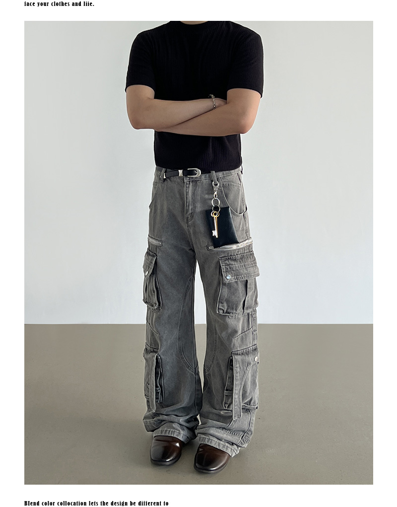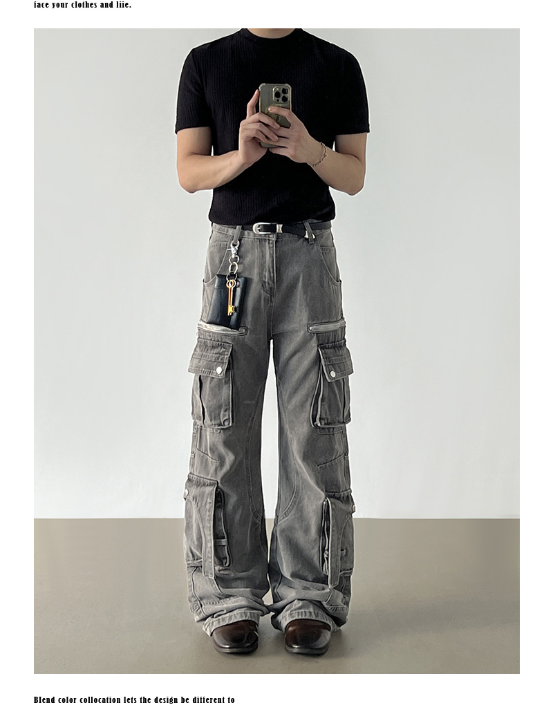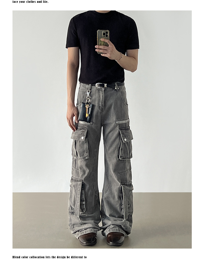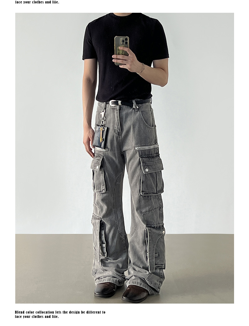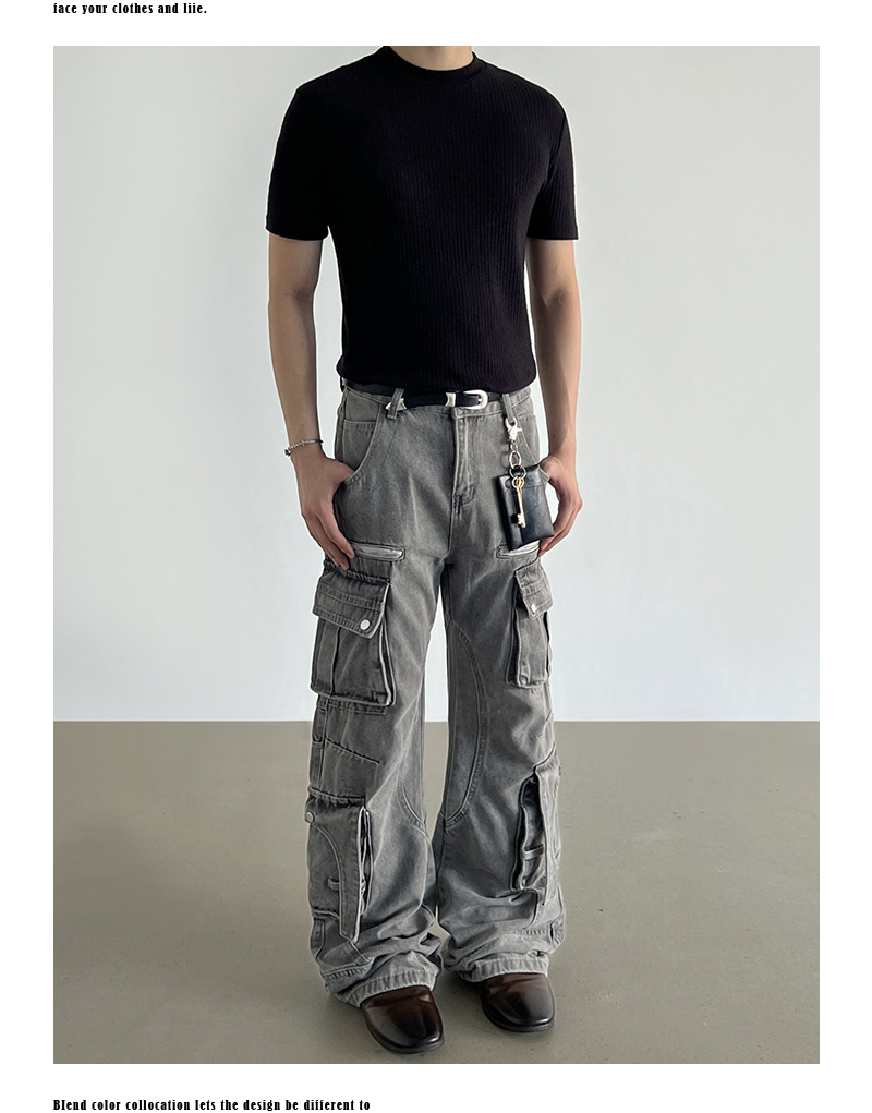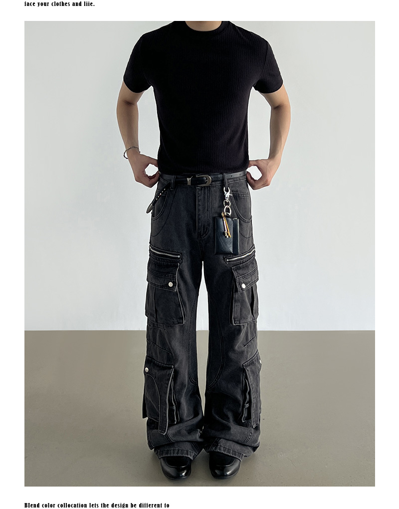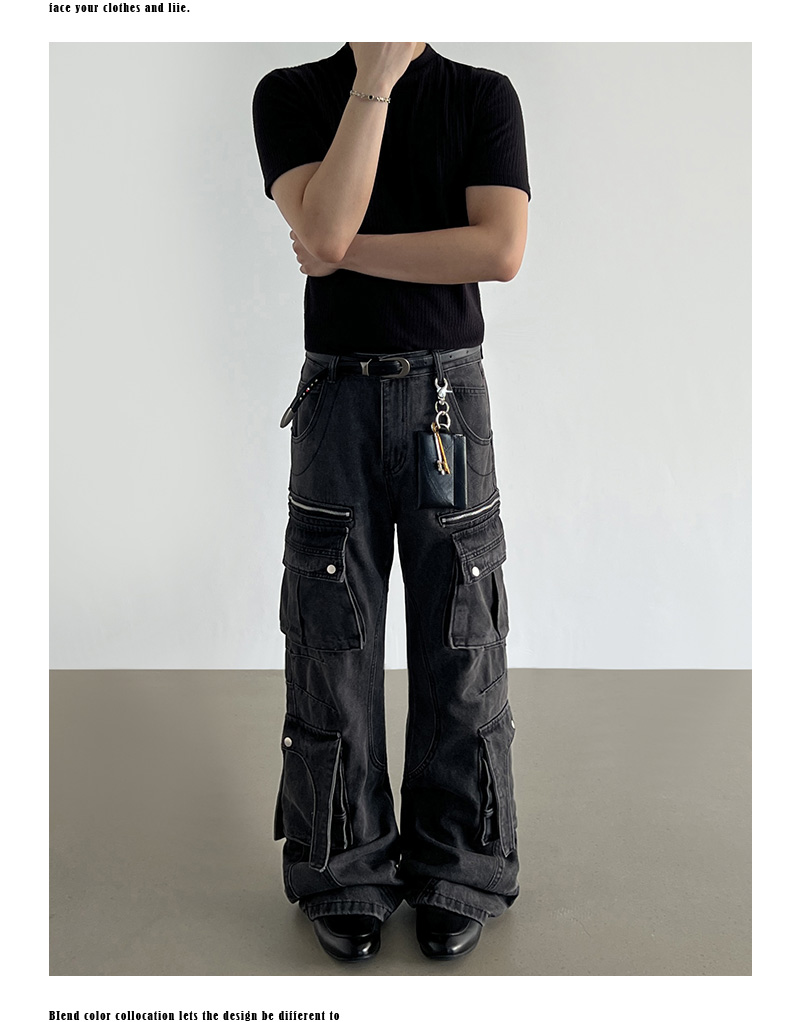Washed Multi Pocket Denim Cargo Jeans WN21204