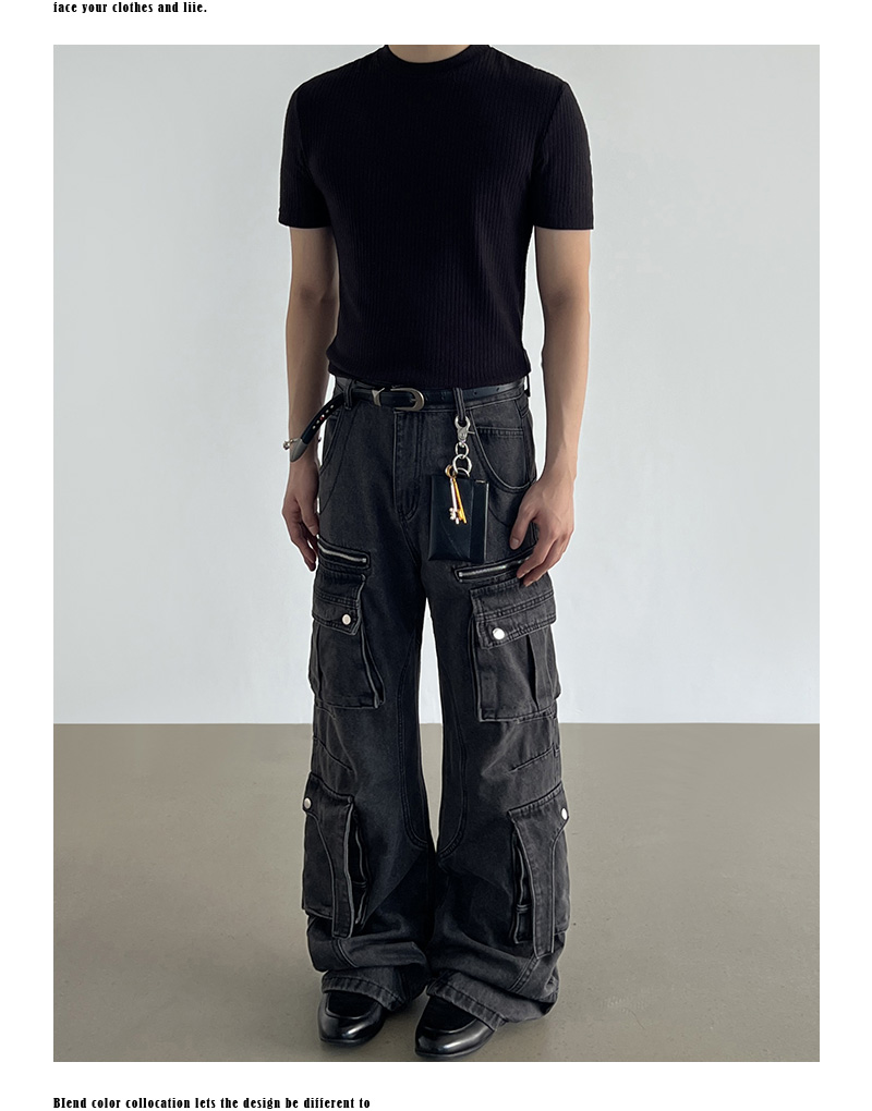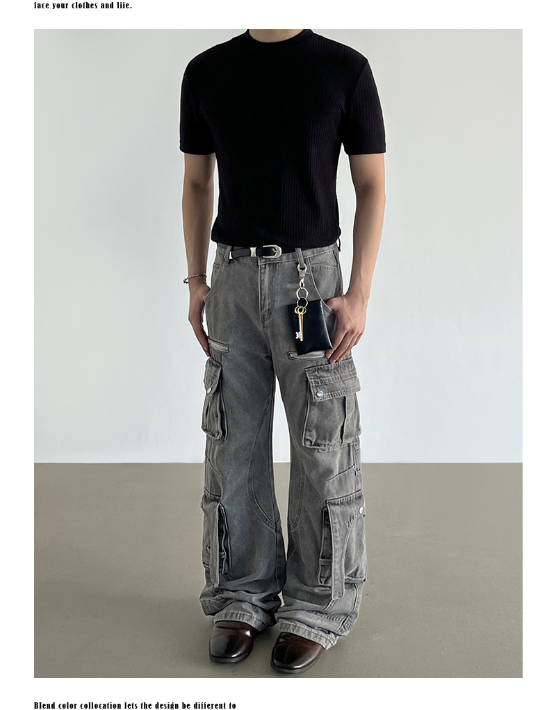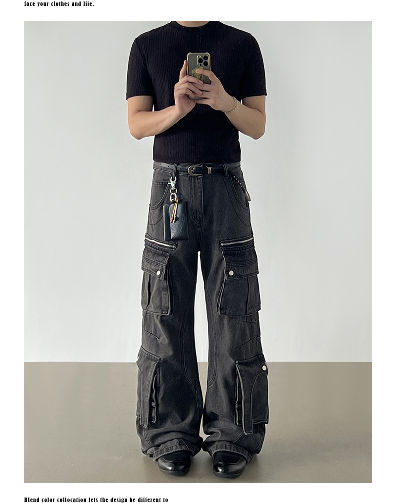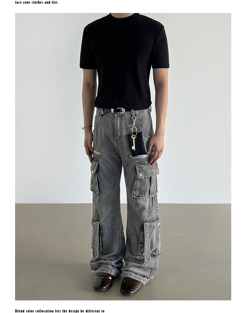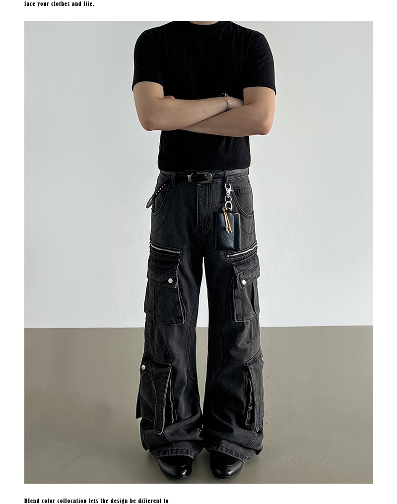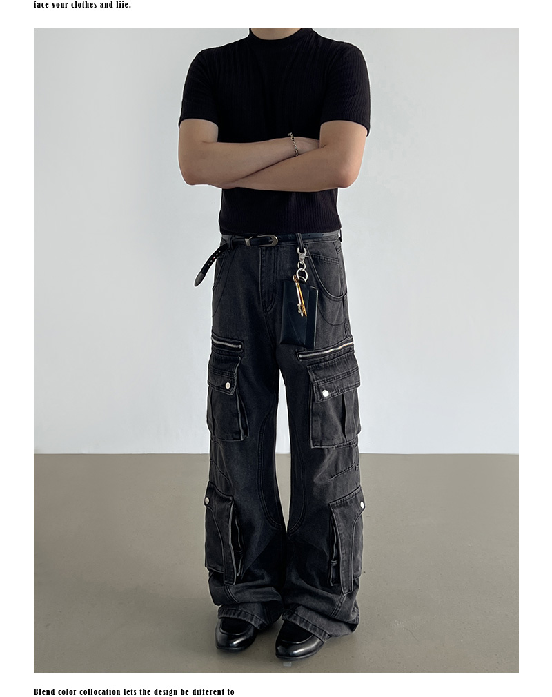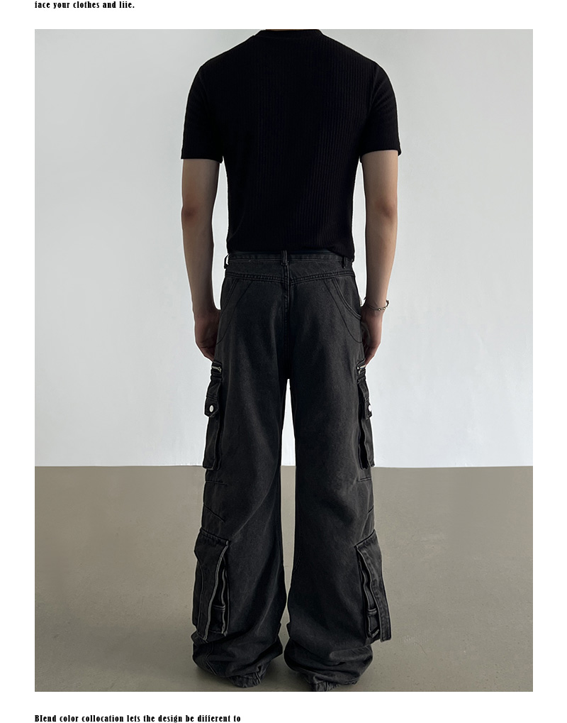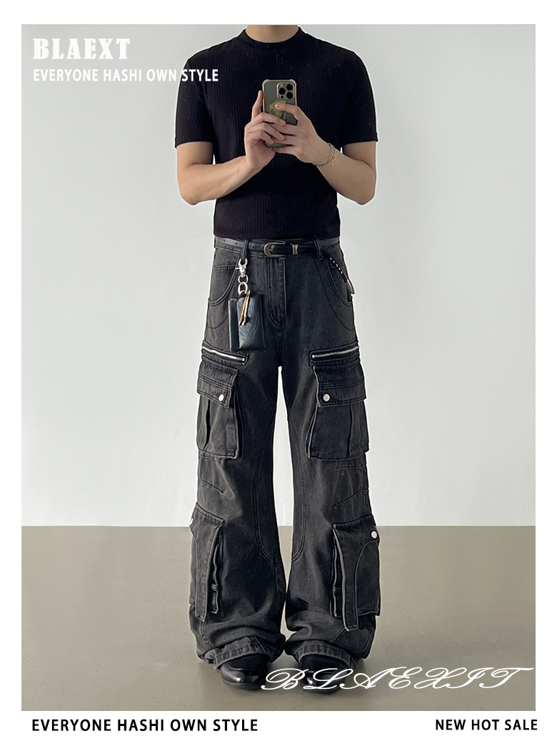 Washed Multi Pocket Denim Cargo Jeans WN21204