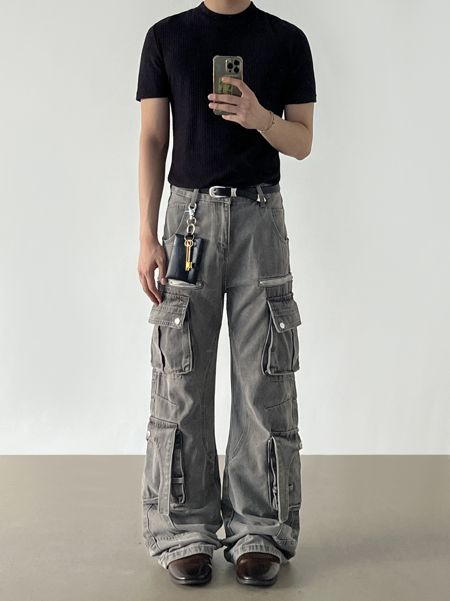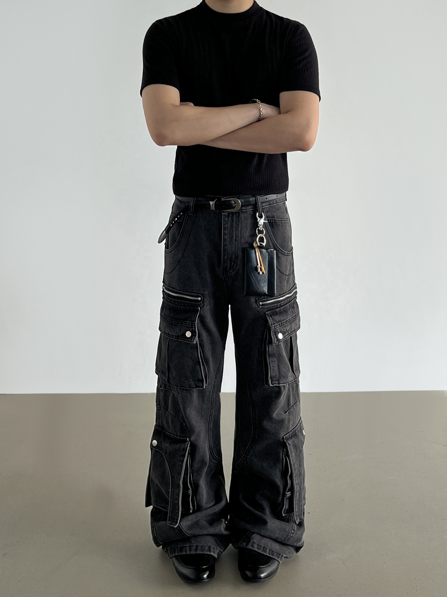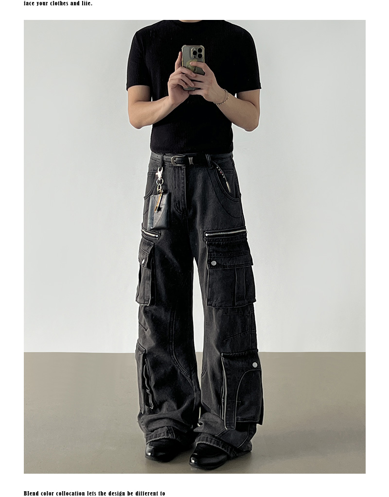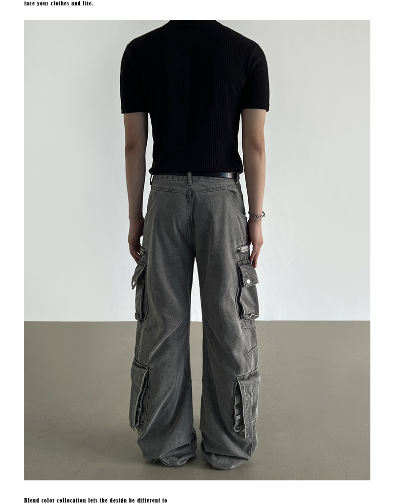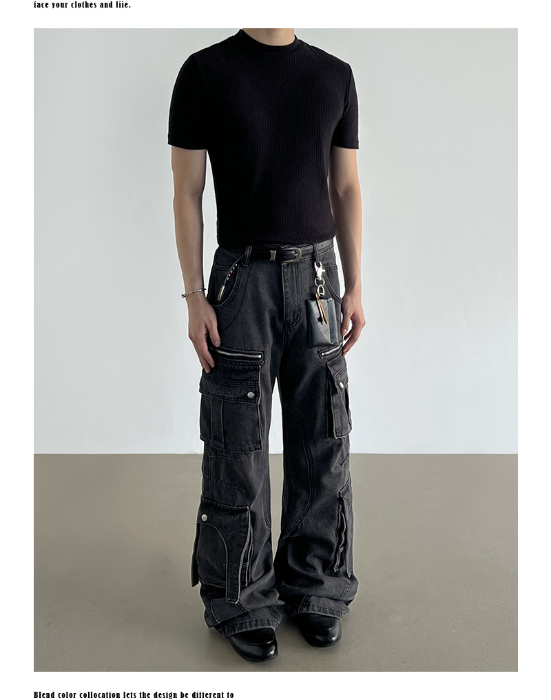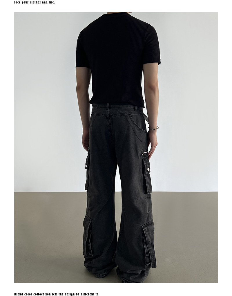 Washed Multi Pocket Denim Cargo Jeans WN21204