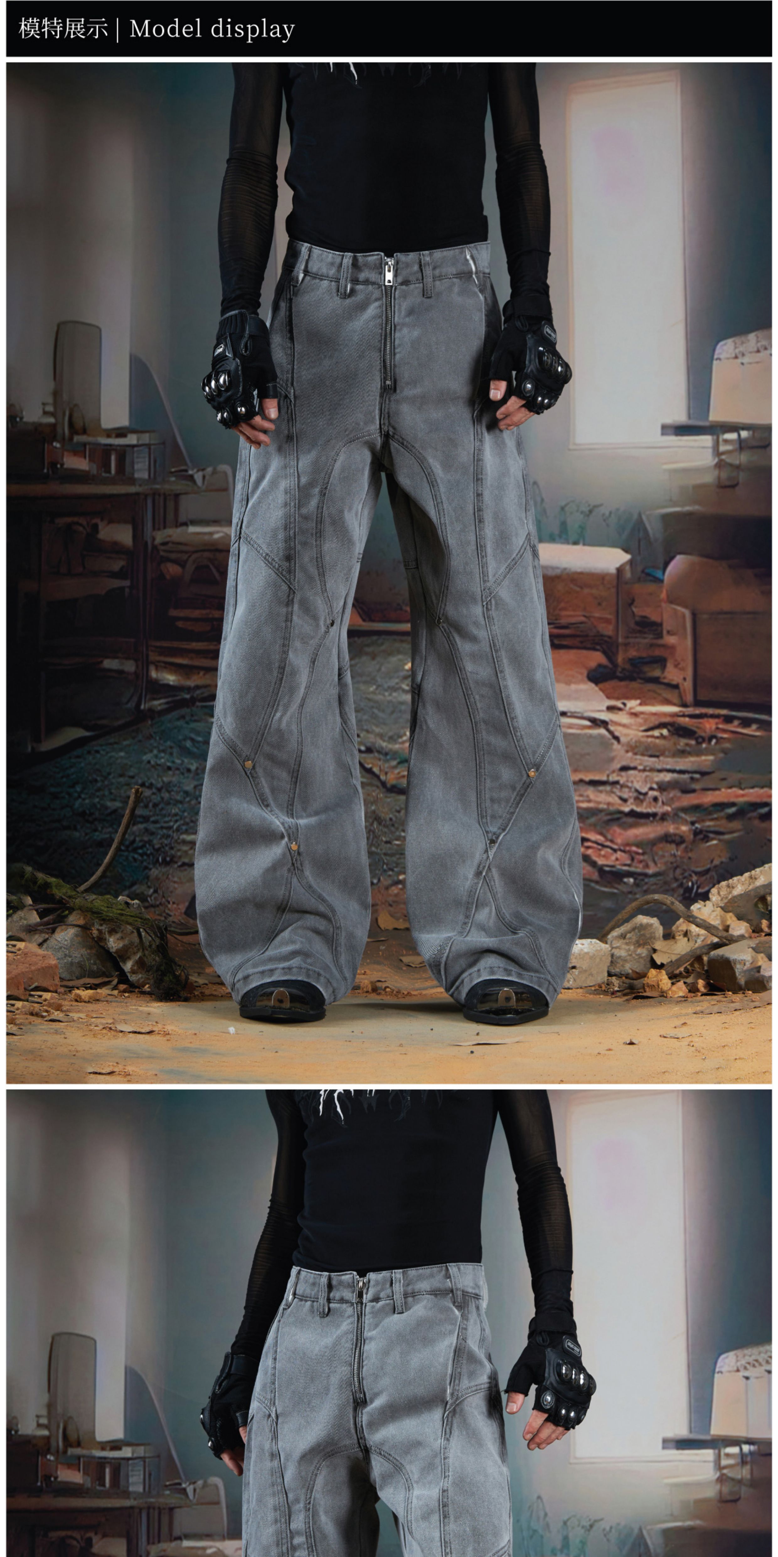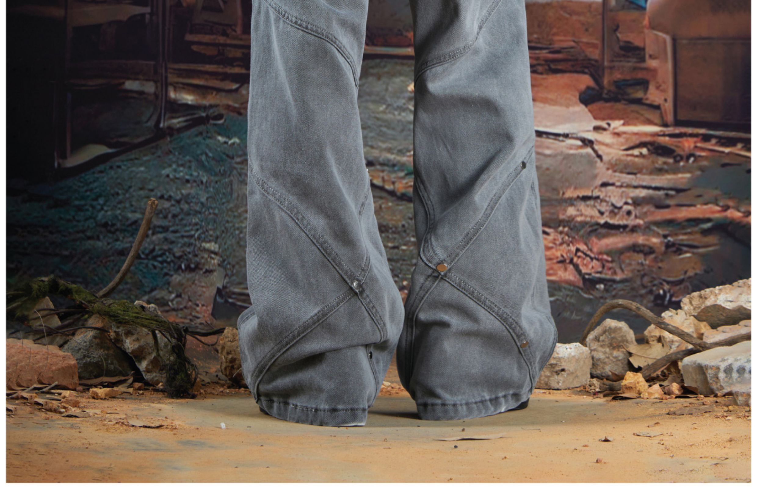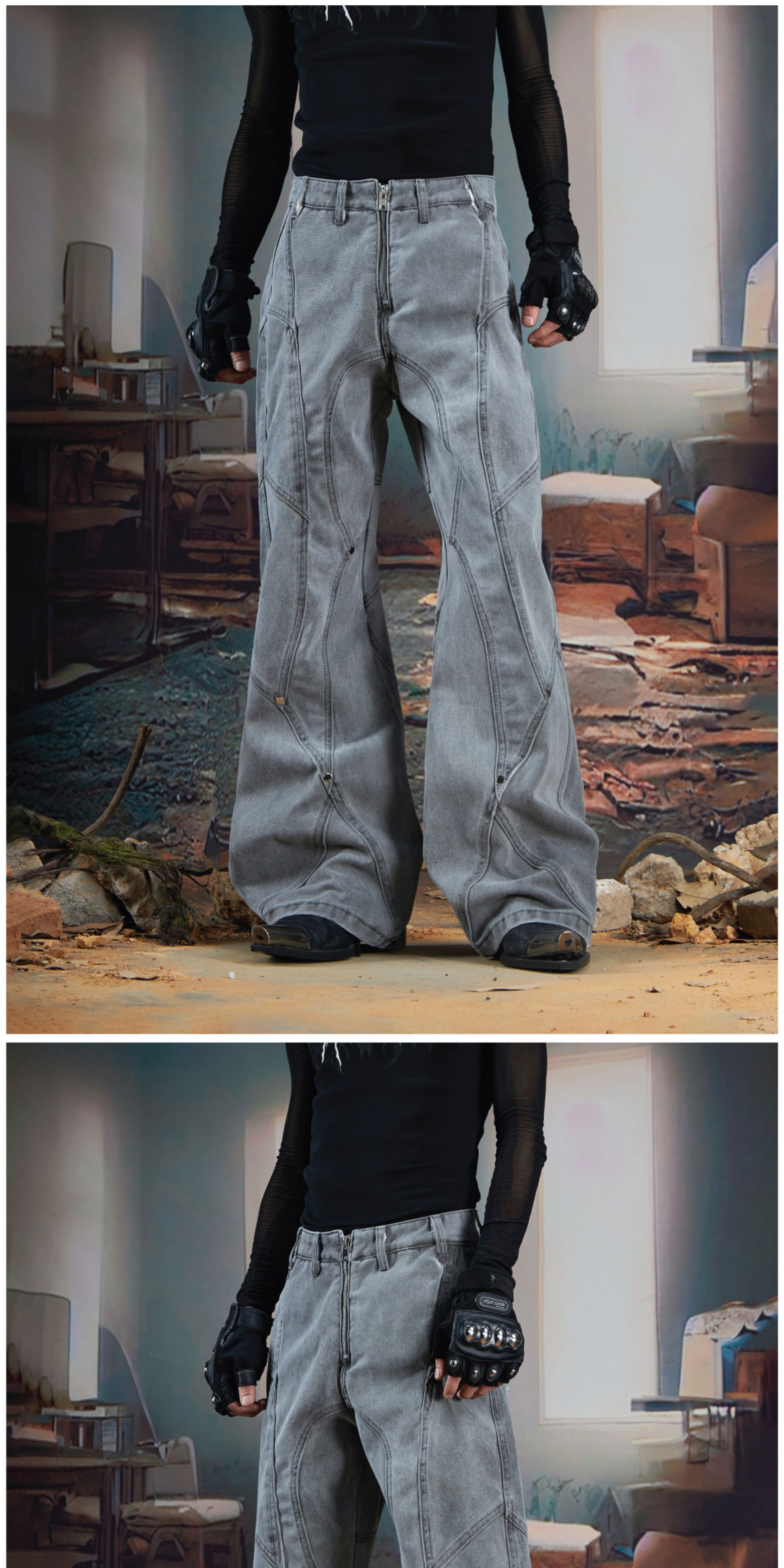Studs Deconstruction Washed Damage Flare Denim Jeans WN21364